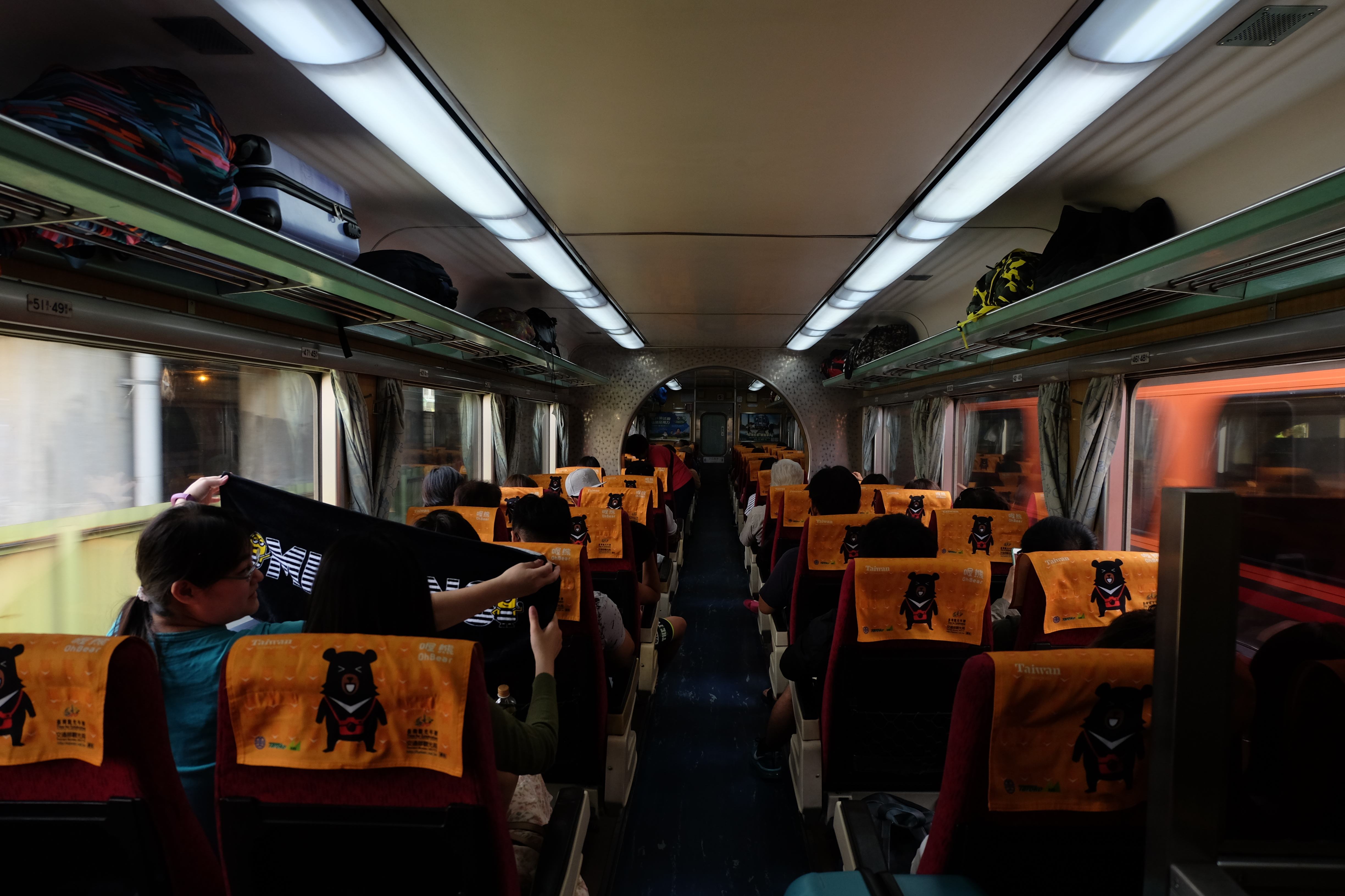 Trenurile taiwaneze… un alt motiv de surprindere pentru noi in aceasta tara avand in vedere faptul ca acestea arata ca si vagoanele de clasa 1. in Elvetia. Imaginati-va un tren foarte elegant si pe noi ca singurele exemplare de homo touristicus cu bocanci de drumetie, rucsacuri la patrat si fara loc. Da, trenurile aici sunt pline, noi nestiind asta am fost nevoiti sa cumparam 2 bilete fara loc. Insa nici o problema, rucsacurile noastre sunt suficient de mari pentru a fi refolosite pe post de scaun, banca, pat… in functie de situatie. In afara faptului ca am fost un pic profilati pe a le sta oamenilor care vroiau sa isi umple sticlele de apa in drum (singurul loc liber unde am putut pune rucsacul si a-l folosi pe post de banca fiind in fata rezervorului de apa) – Meta, ti-am preluat functia pentru o perioada scurta de timp 🙂 – calatoria a decurs fara nici o problema. Singurul aspect mai putin placut a fost faptul ca trenul s-a transformat intr-o zona periferica a Antarcticii de la jumatatea drumului incolo, temperatura aerului conditionat fiind intr-atat de joasa incat in ciuda temperaturilor de afara a trebuit sa scormonim dupa jachete serioase.
