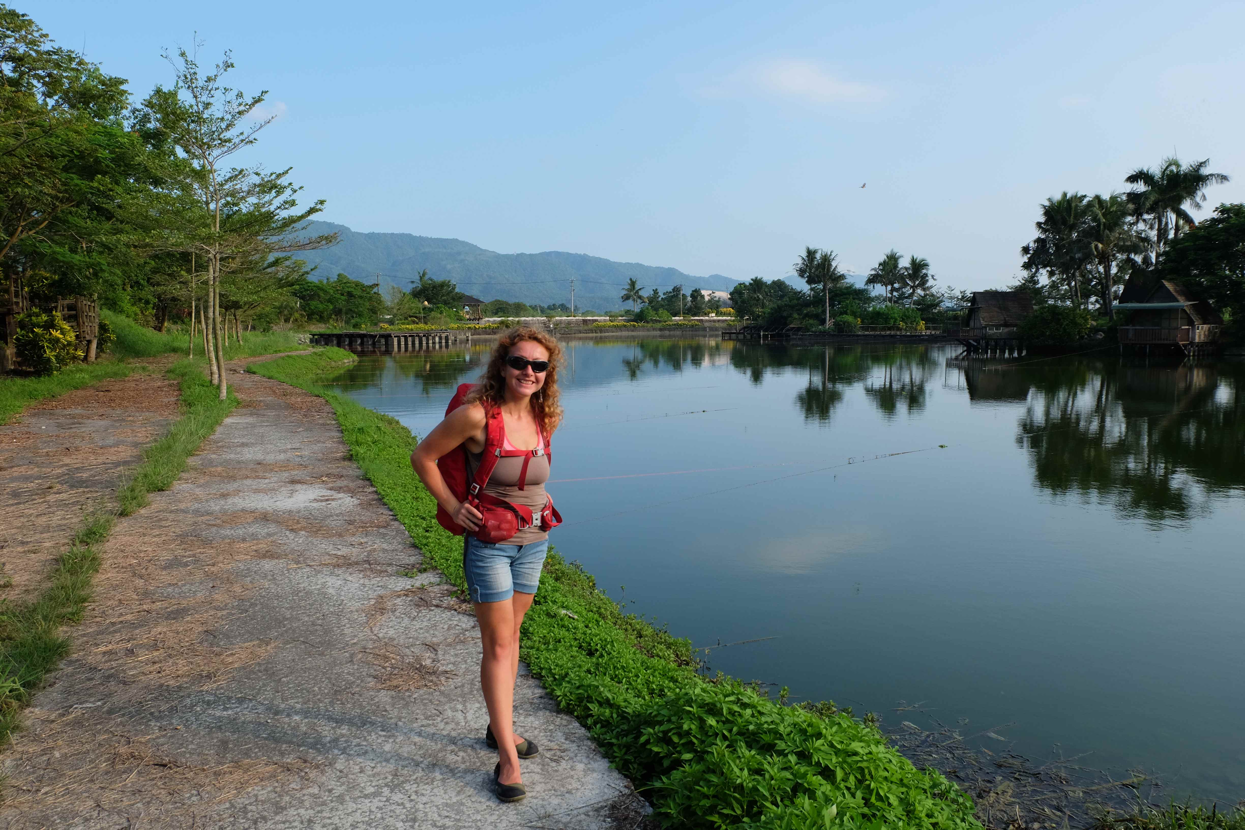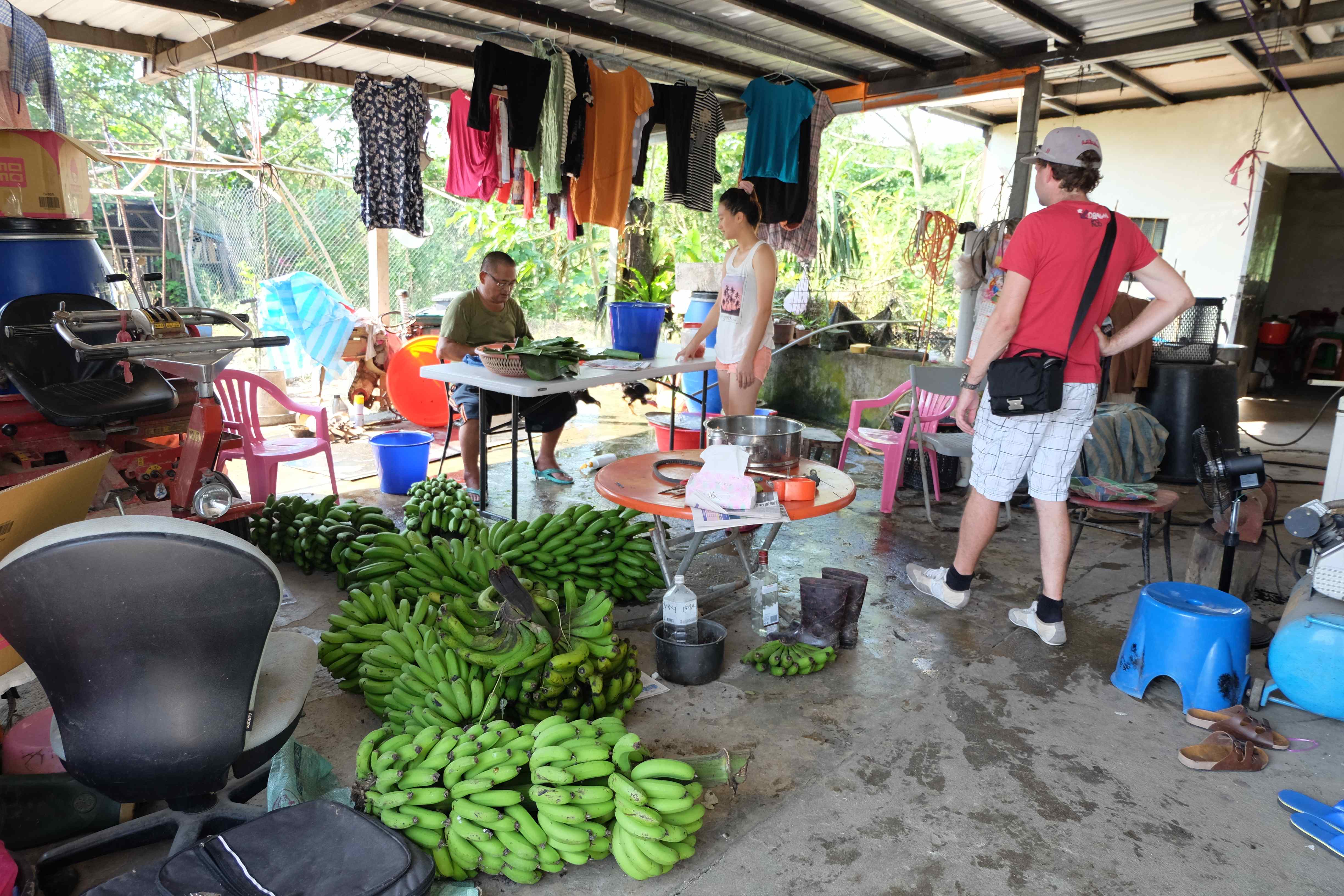 Interessant wurde es bei uns, als wir ausstiegen. Shoufeng, ein vom Rest der Welt vergessenes kleines Städtchen. Wer will schon hier aussteigen? Nur wir zwei. Was gibt es schon hier zu sehen? Nichts, aber hier hatten wir eine Gastgeberin gefunden. Unser ursprüngliches Ziel war es in Hualien, der grösseren Nachbarstadt zu übernachten, aber es ergab sich halt anders. Schlimm war es keinesfalls. Bis unsere Gastgeberin Feierabend und Zeit hatte uns zu treffen, erkundeten wir die durchaus ländliche und eher dorfähnliche Stadt. Kilometerlange Bananenfelder, Fischzucht und Reisplantagen prägten die Landschaft.