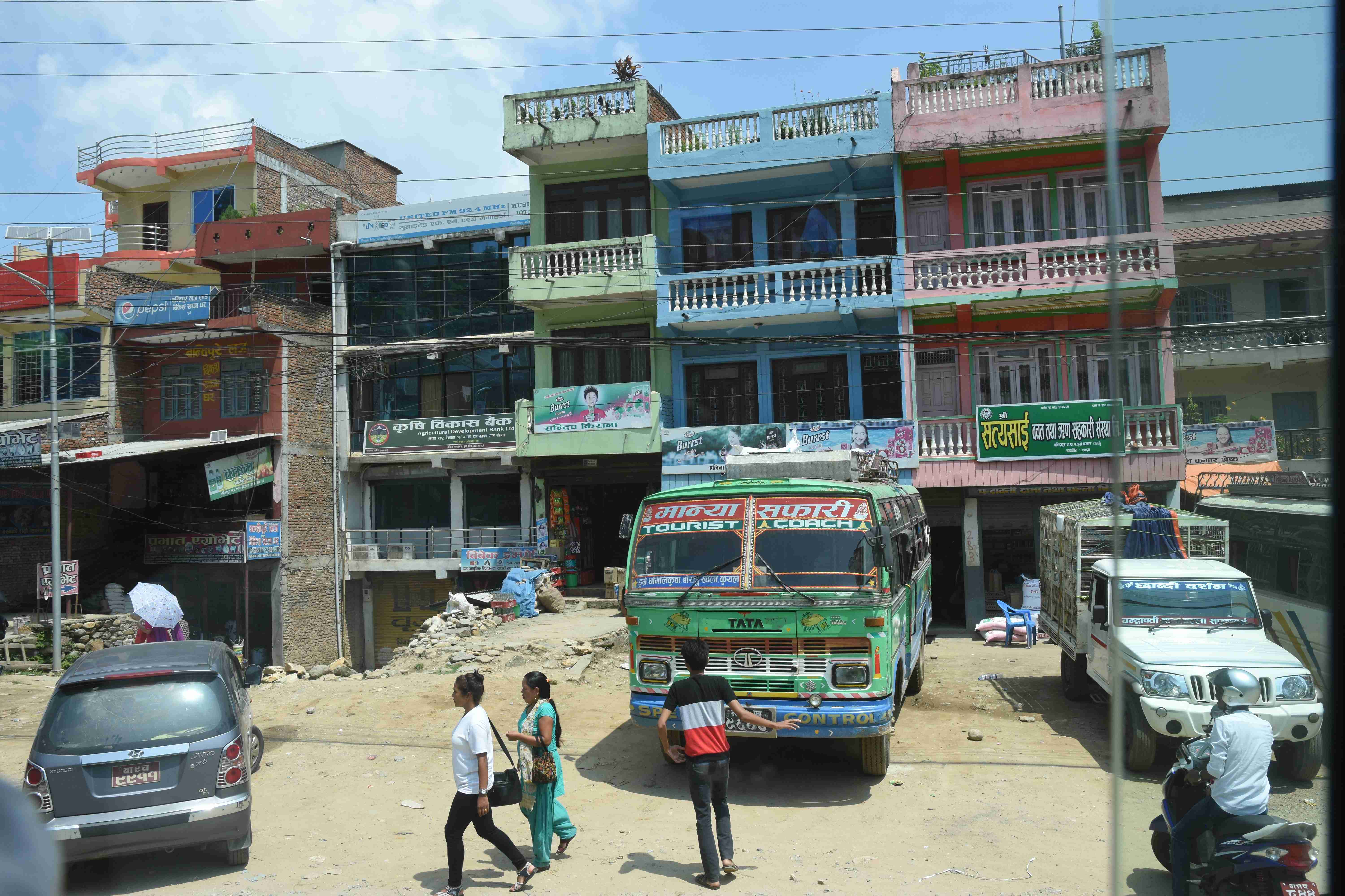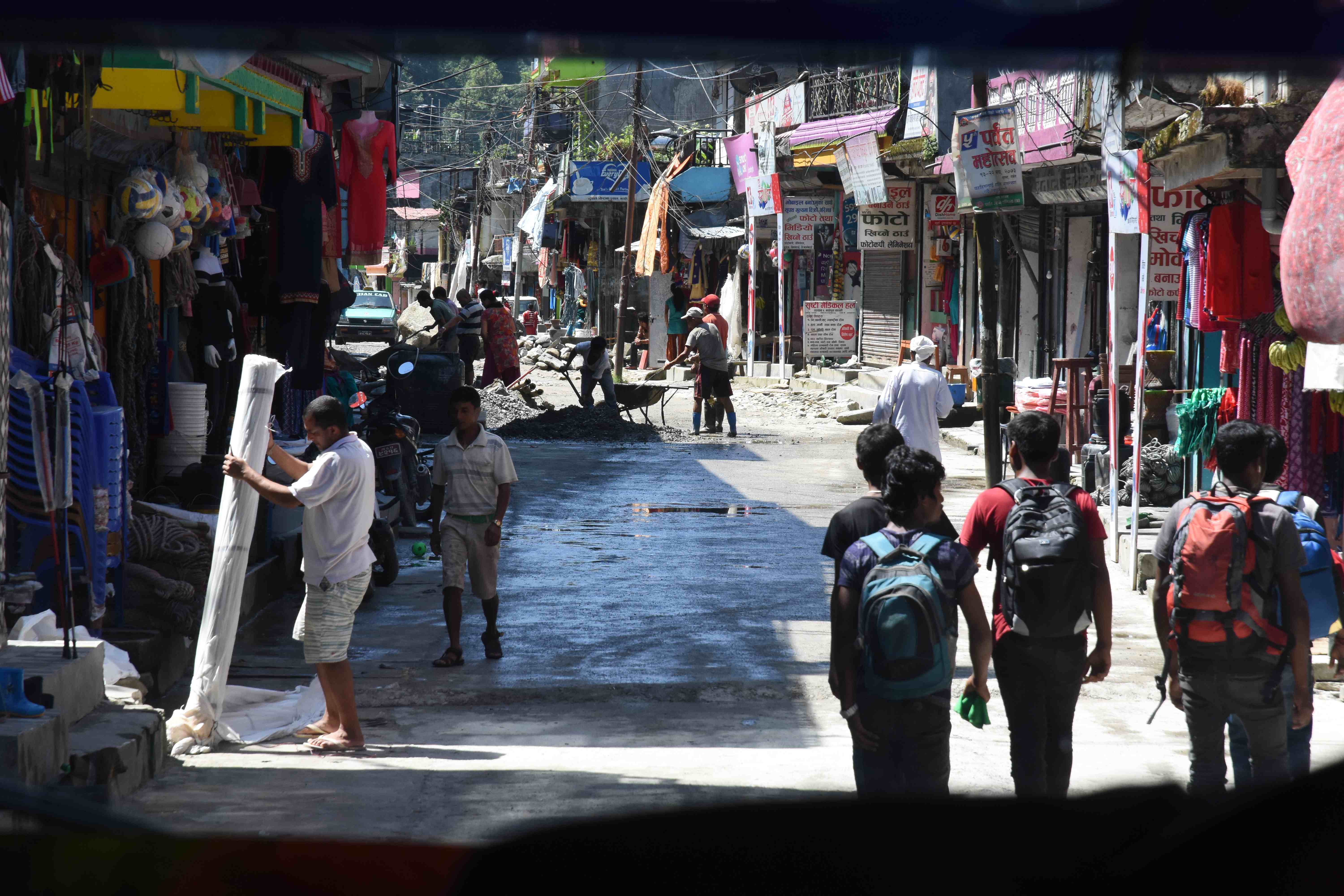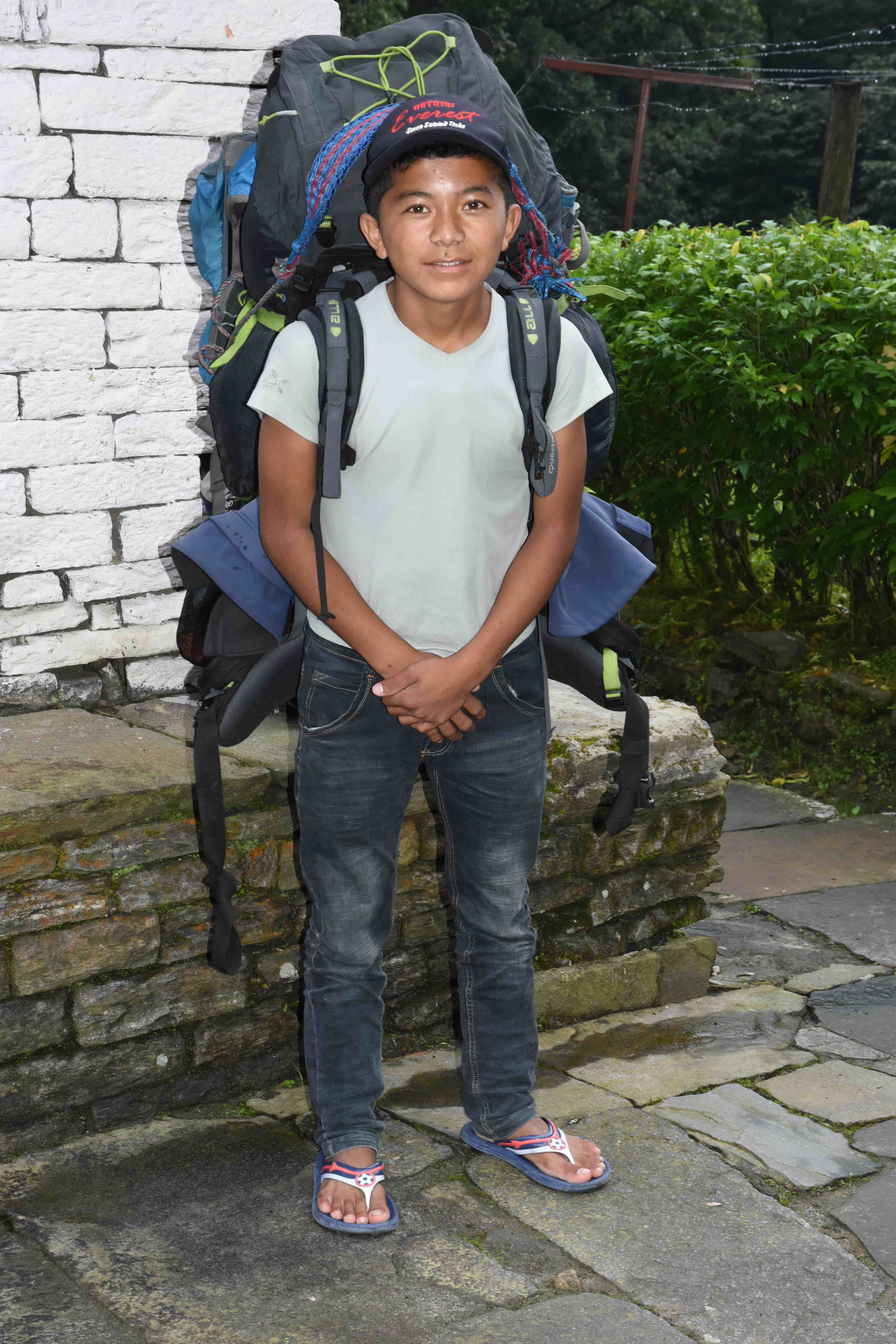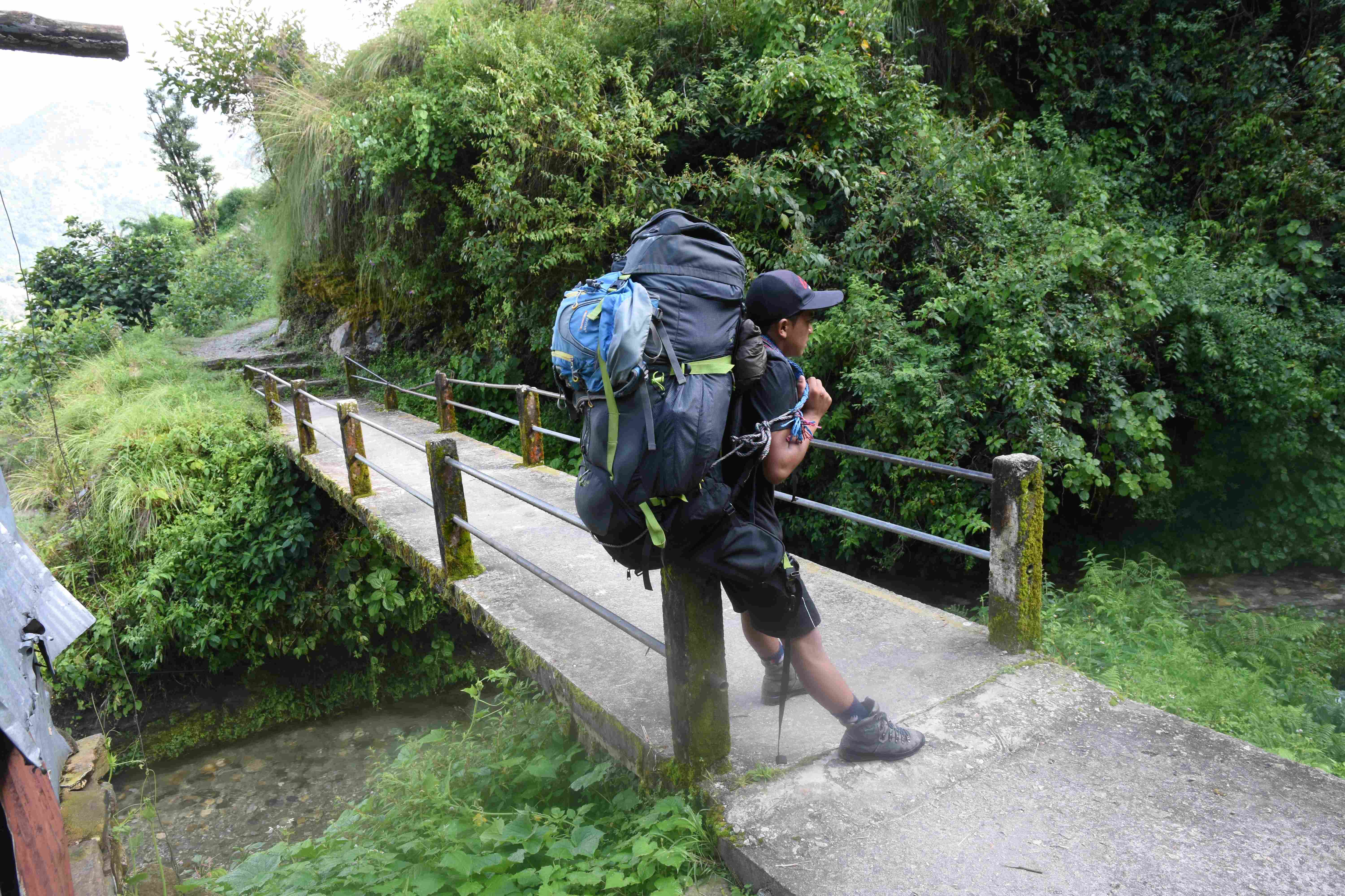 Am nächsten Tag hat unser Trekking begonnen. Am Morgen früh hat uns unser Guide im Hotel abgeholt und wir sind zur Busstation gegangen. Es ist eher eine Strasse als eine Busstation, an welcher sich die Busse aneinanderreihen, so etwa gegen 100 Stück. Unser vorreservierte Bus soll uns nach Pokhara bringen (ca. 10 Minuten suchen). Wir waren etwas schockiert, als wir unseren Porter an der Busstation getroffen haben, denn er ist nicht viel älter als 18! Der Guide hat uns fest versprochen, dass er sehr stark wäre. Wir hatten etwas schlechtes Gewissen, dass wir soviel eingepackt haben (für uns als Informatiker dürfen natürlich ein Notebook, eine Powerbank und diverse Ladekabel nicht fehlen).