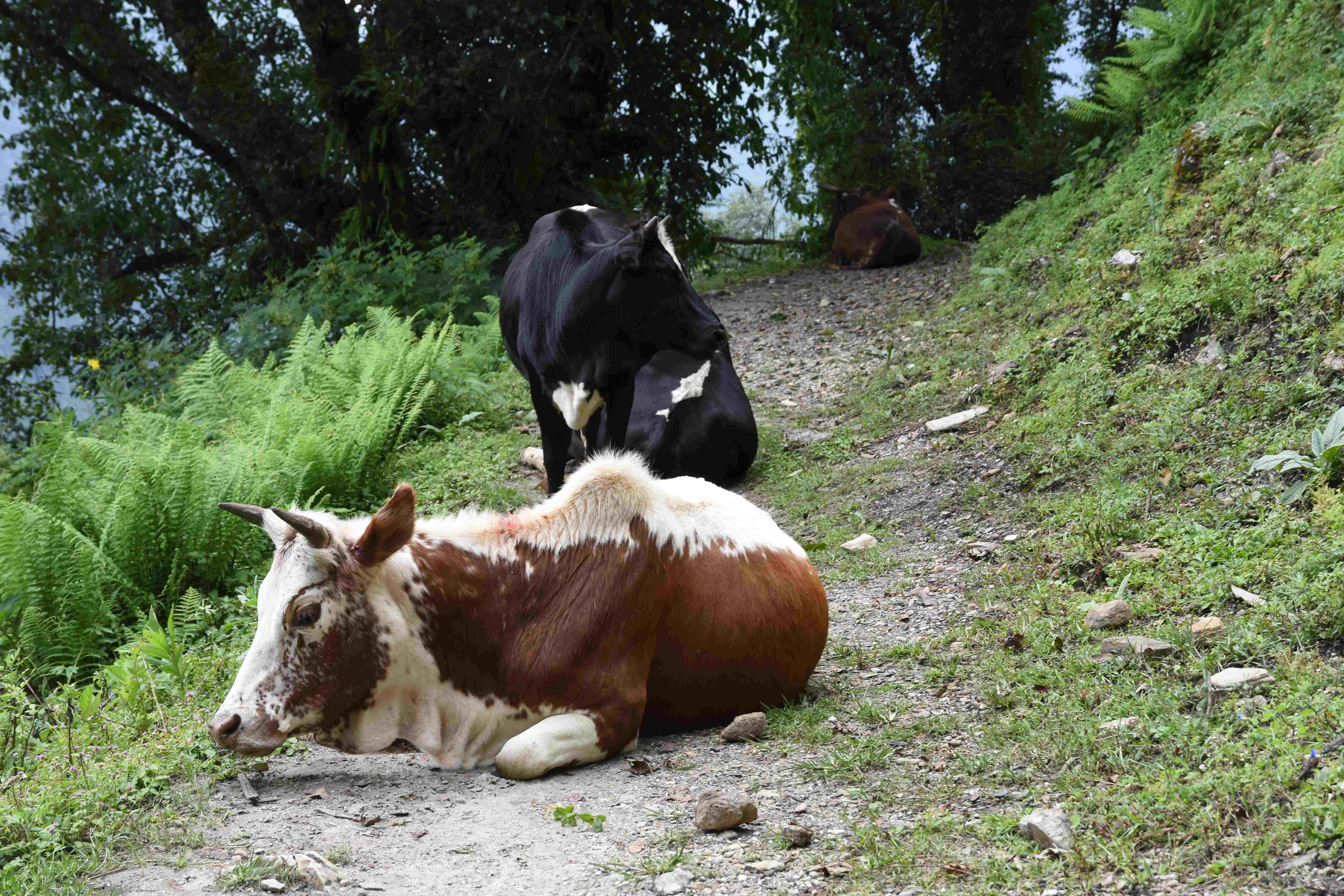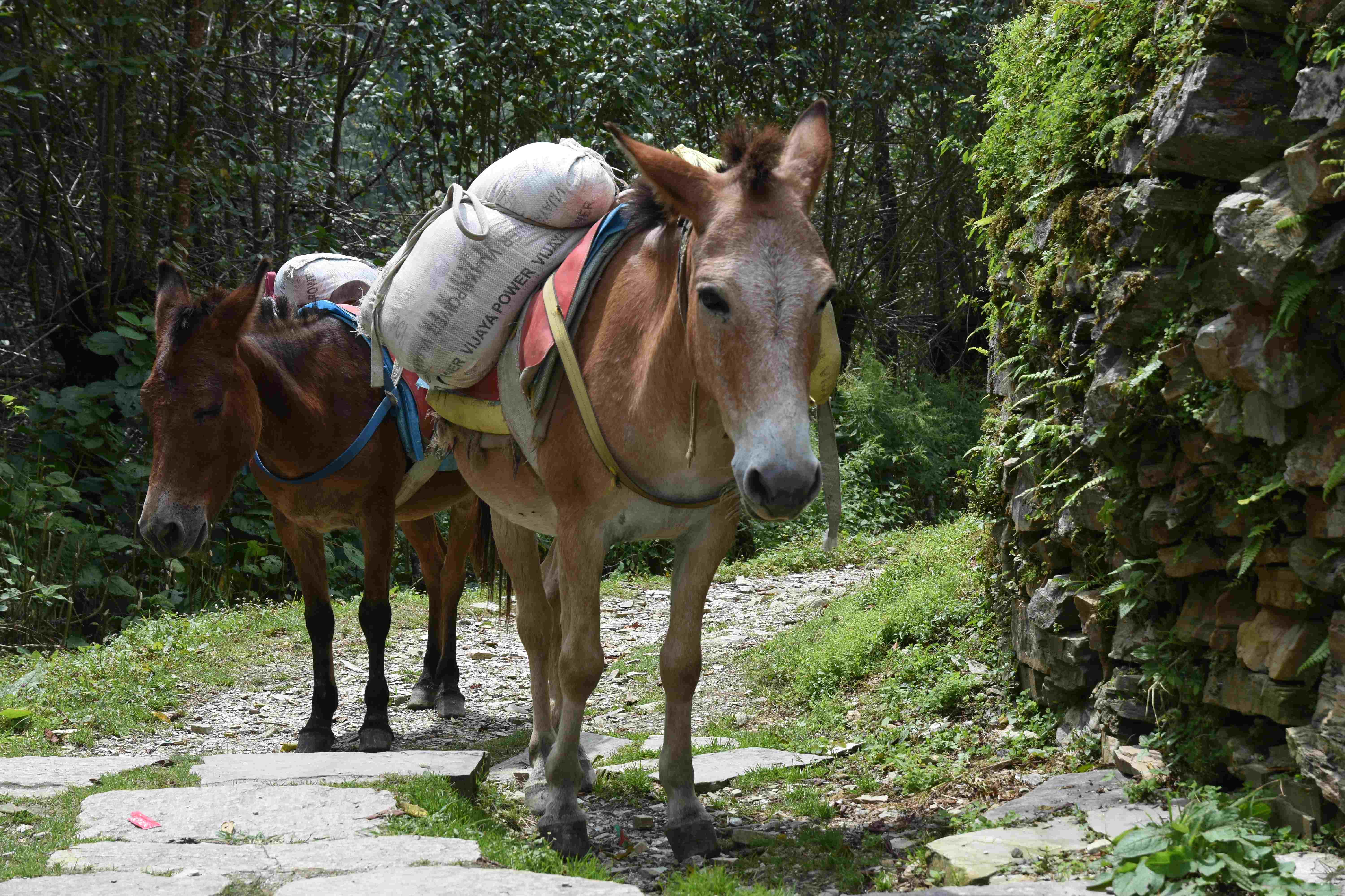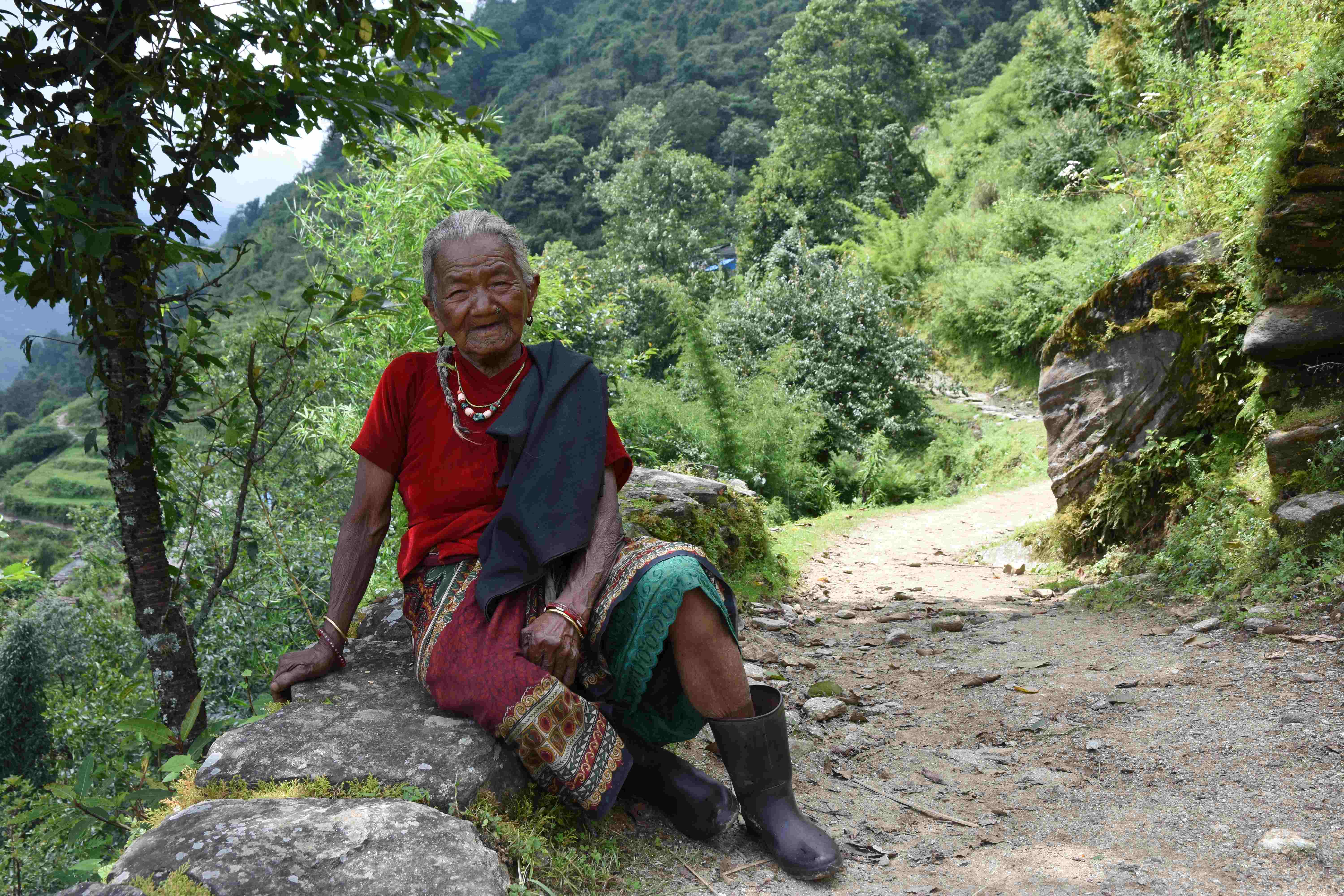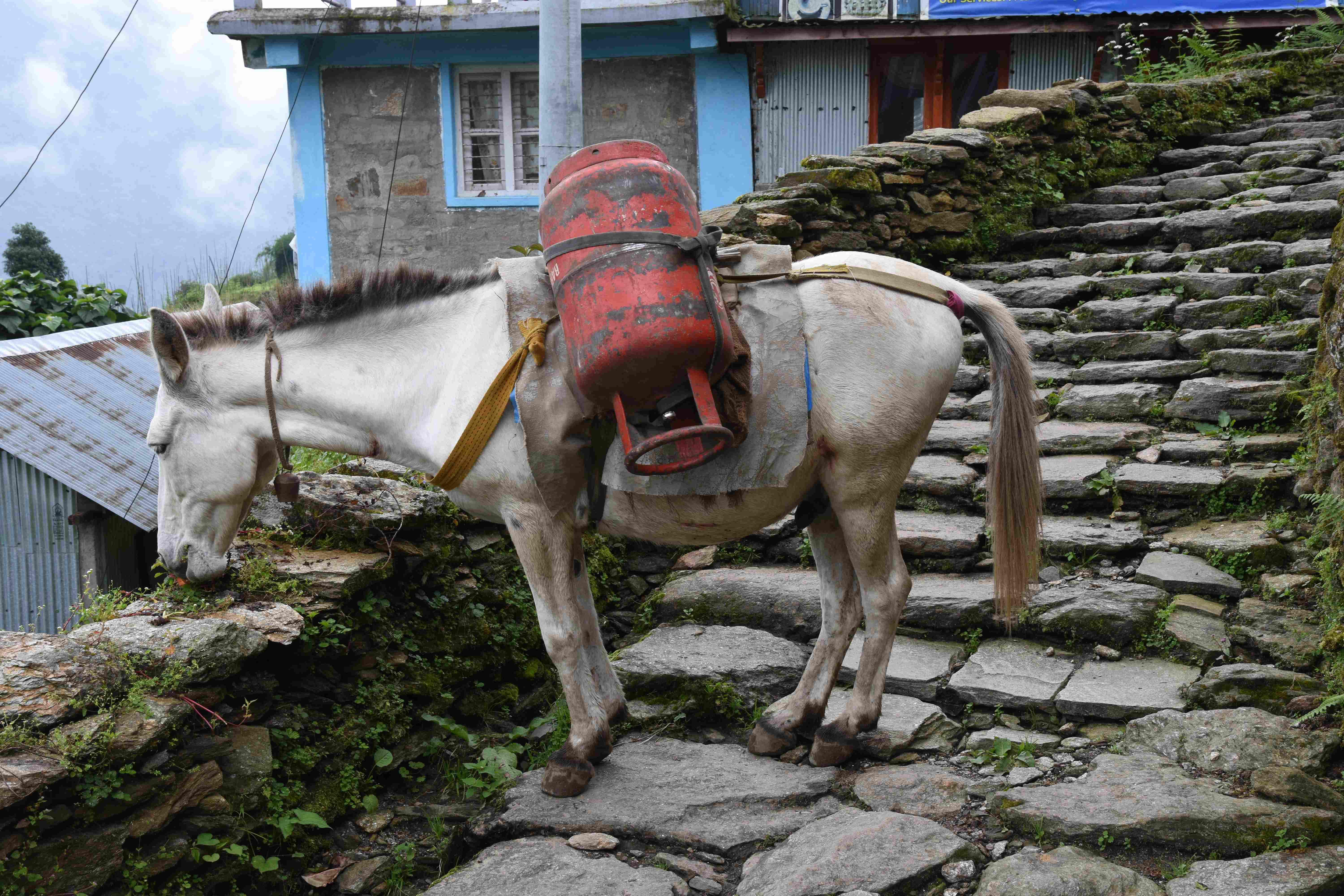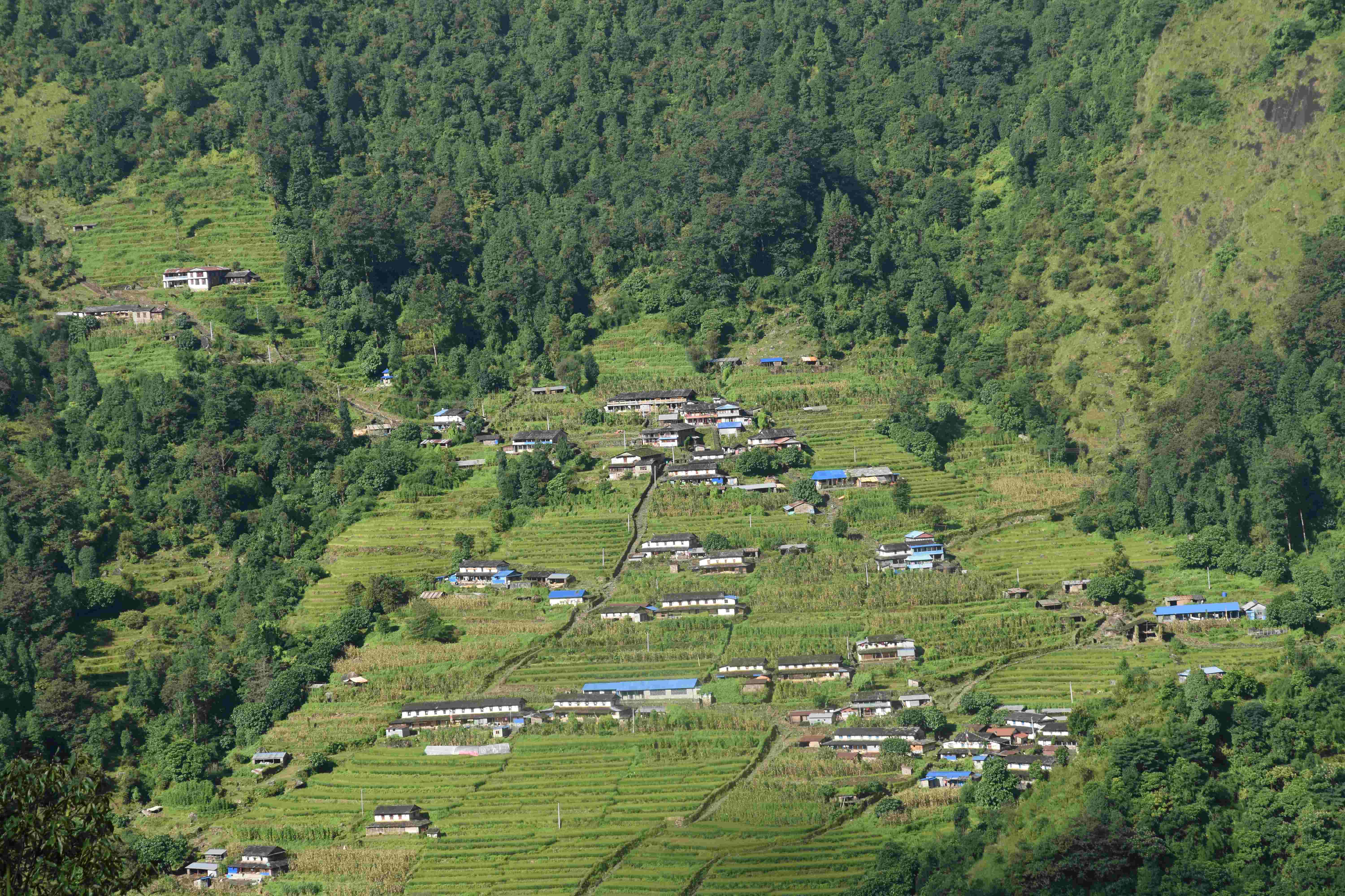 Wir haben also unsere Wanderung in Phedi gestartet. Es hat kein leichtes Angewöhnen gegeben: Uns hat eine steile Treppe, sehr hohe Luftfeuchtigkeit und hohe Temperaturen erwartet. Und die Treppen scheinen die Nepalis angetant zu haben: Sie werden uns die nächsten Tage begleiten. Und eine weitere Erkenntnis haben wir gemacht: Wenn gemäss dem Programm der Start bei 1000 m.ü.M. ist und die Übernachtung auf 1800 m.ü.M., heisst das nicht, dass man nur 800 Höhenmeter macht. Der Weg überquert verschiedene Täler und Hügel (sogar über das Ziel, zum oberen Beispiel über 2100 m.ü.M.) oder führt von der einen Flussseite zur anderen…und dazwischen gibts natürlich Treppen.