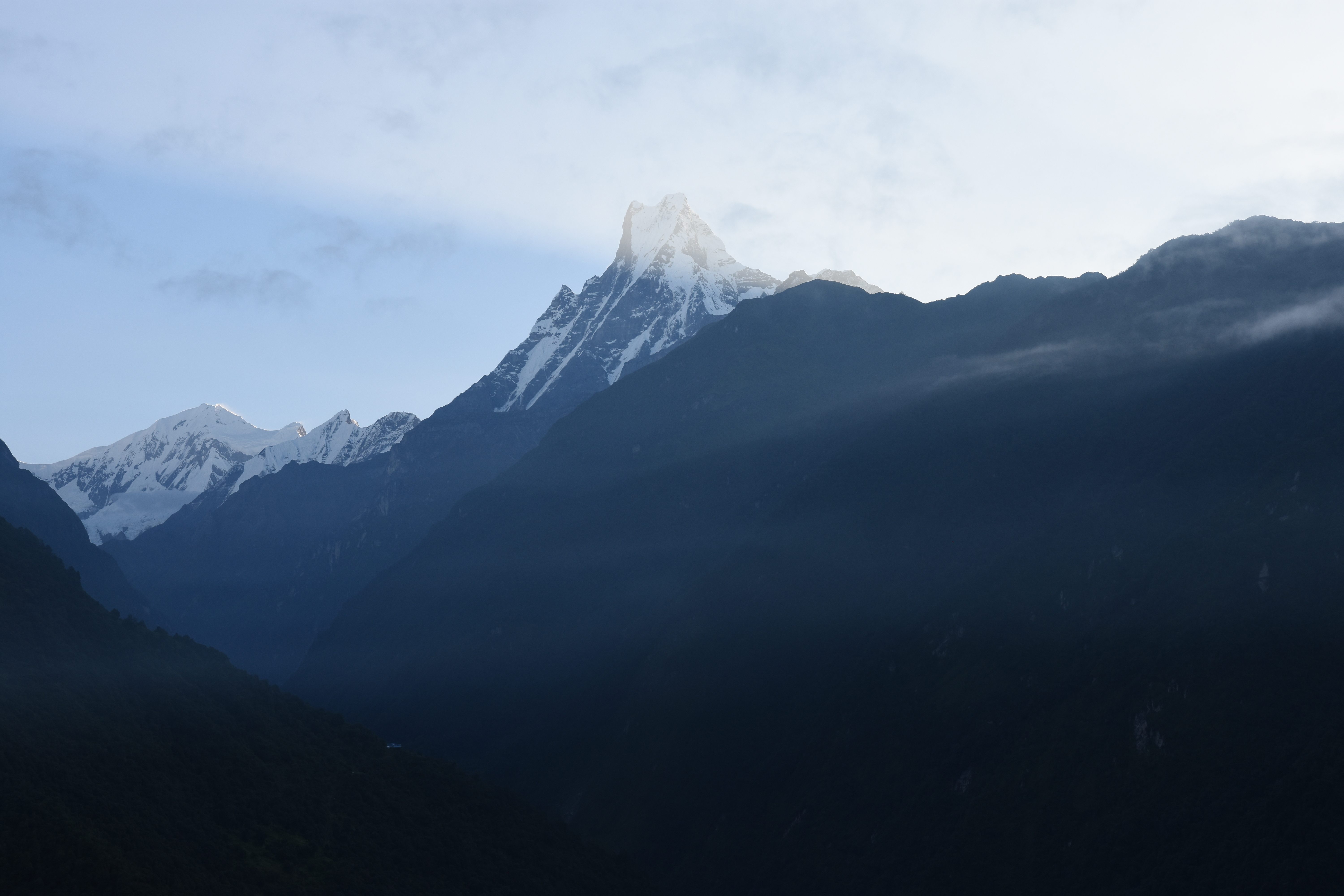 Am Samstag sind wir im ABC (Anapurna Base Camp) auf fast 4200 m.ü.M. angekommen. Auch hier gibts alle Angenehmlichkeiten: Warme Dusche, ein beheizter Essensraum, eine recht grosse Speisekarte und theoretisch WiFi (falls grad keine Wolken im Wege sind). Rafi und ich haben begonnen, Schach zu spielen (wie sich herausstellte, ist Rafi ein Profi) und ich habe normalerweise verloren (ausser wenn Rafi so nett war, und mich auf meine schlimmsten Fehler aufmerksamgemacht hat). Nach einiger Zeit hat uns eine ganze Gruppe Chinesen zugeschaut und Rafi und mir diverse Tipps und Strategieempfehlungen abgegeben. Am Schluss hat es noch ein Spitzenspiel zwischen Rafi und einem Guide gegeben (Details zum Ausgang des Spiels lassen wir hier weg).