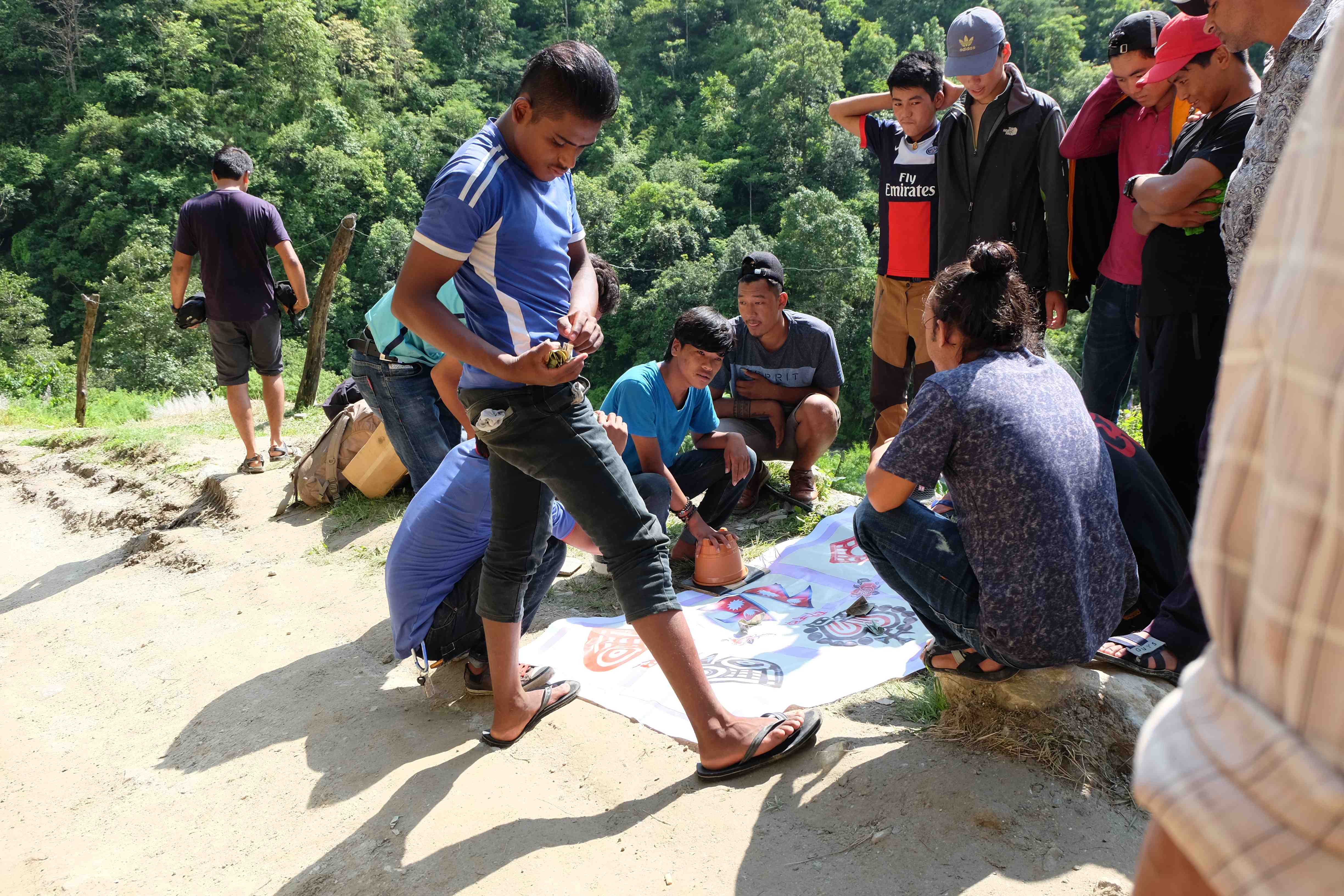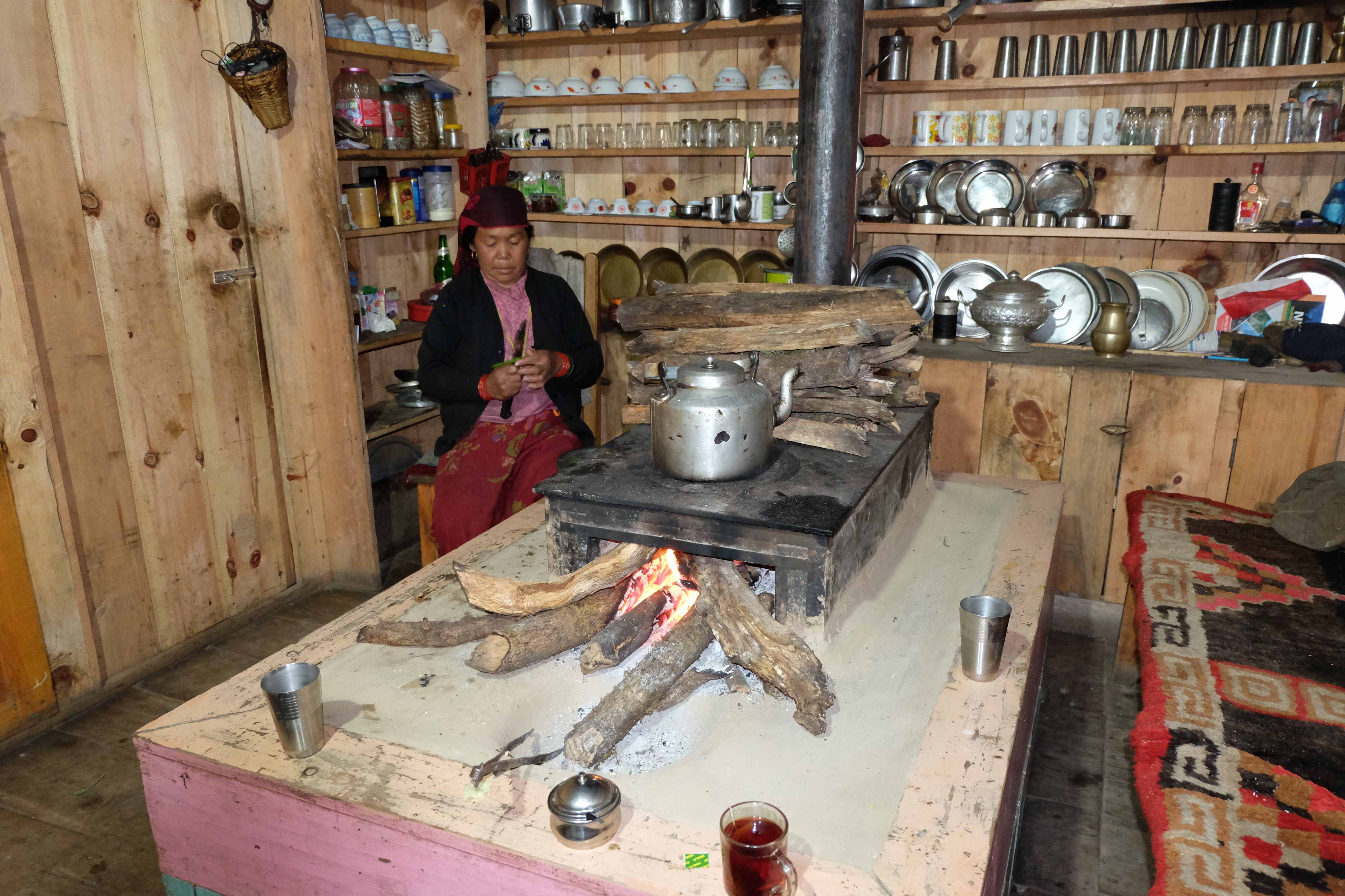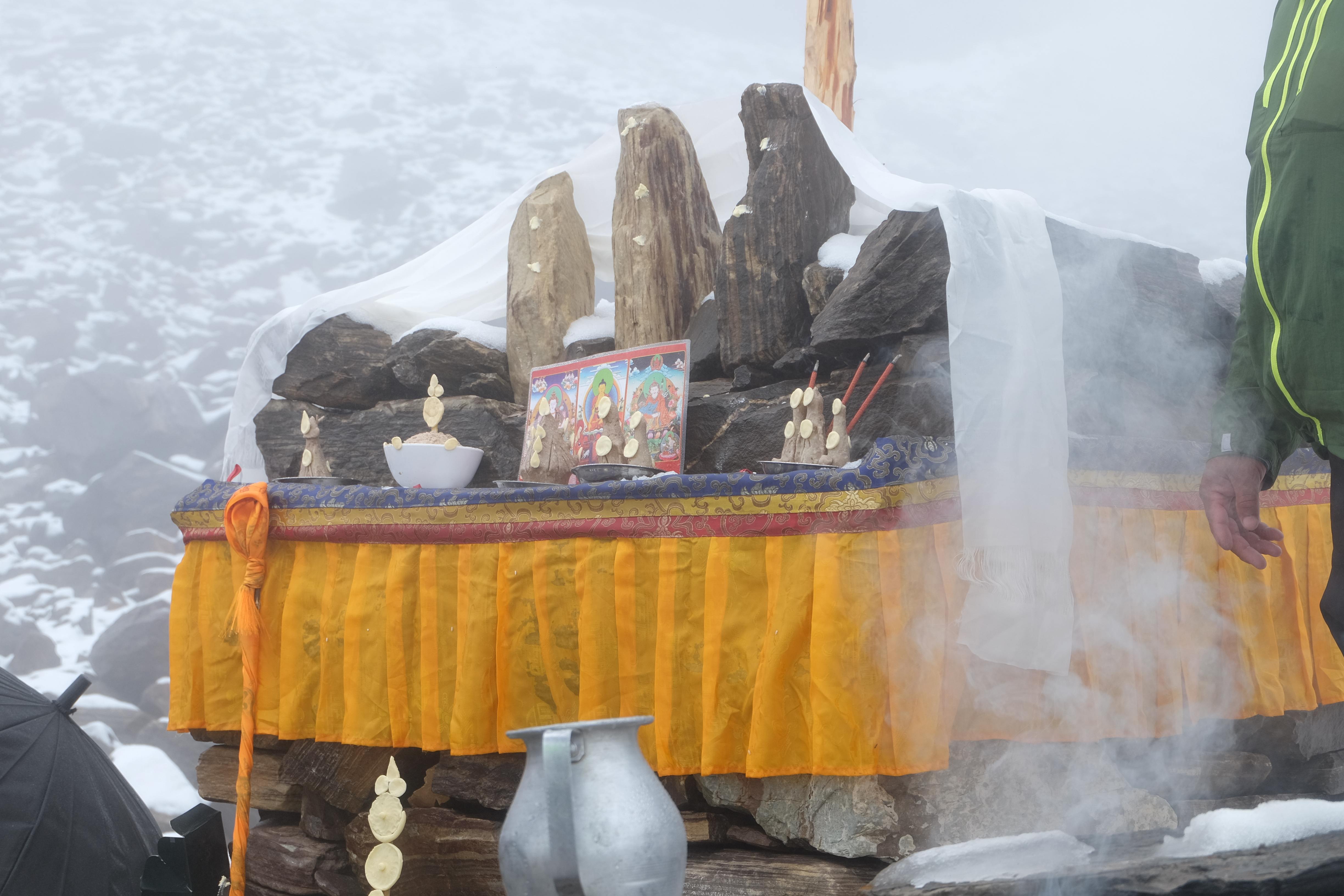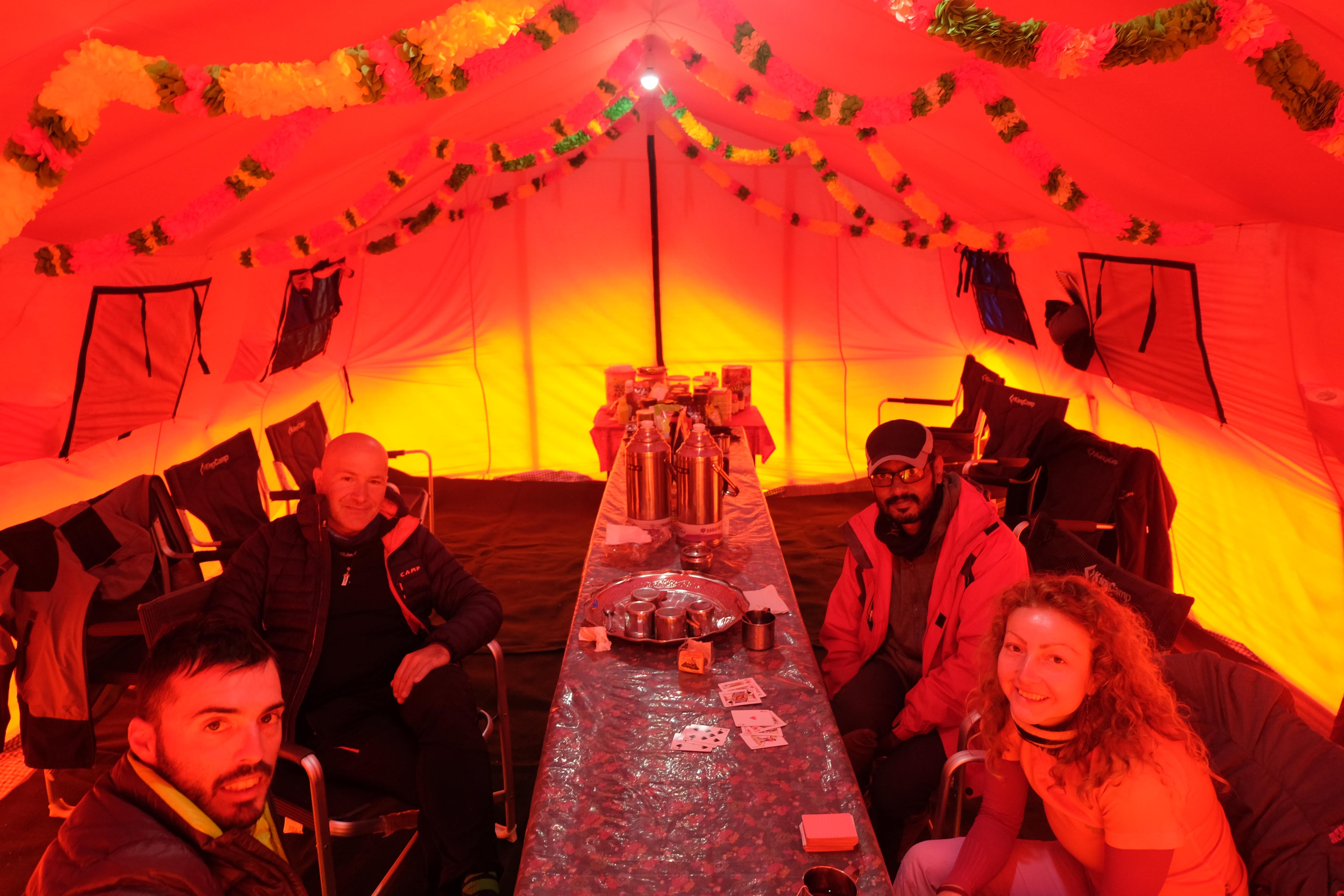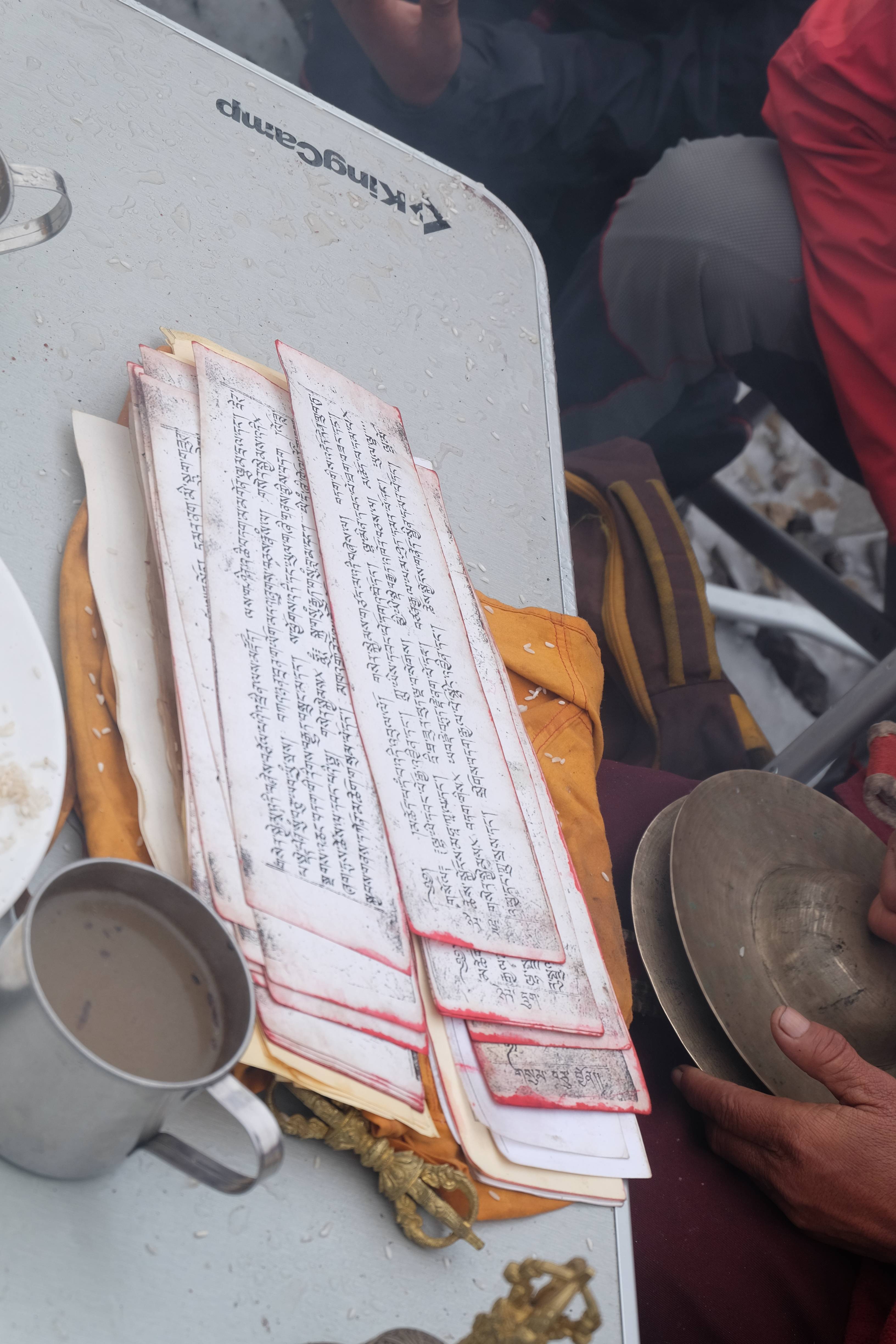 Eines von vielen westlichen Bergsteigern etwas oberflächlich, von den Sherpa allerdings als sine qua non wahrgenommenes Erlebnis ist die Pujah-Zeremonie. Dabei handelt es sich um ein für uns fremdes, allerdings ziemlich rührendes buddhistisches Ritual vor der Besteigung eines dermassen hohen Berges, während welches man dessen Geist um Gnade bittet und man sich von dessen Gott (jeder Berg hat seinen eigenen Gott) die Erlaubnis erhofft, ihn zu besteigen. An dem jeweiligen Tag wird nichts bestiegen, sondern gefeiert und getrunken. Das Alkohol-Trinken gehört an dem Tag dazu, wird aber von den westlichen Bergsteigern mit grossem Bedenken angeschaut, da dies nicht unbedingt dem durchgeplanten Trainingsprogramm eines Athleten vor einer solchen Herausforderung entspricht. Dass ich die einzige aus meinem 11-Personen Essenszelt-Team war, die zusammen mit den Sherpas ein Bier und ihre traditionelle „Sherpa-Suppe“ trank, sagt bereits viel aus.
