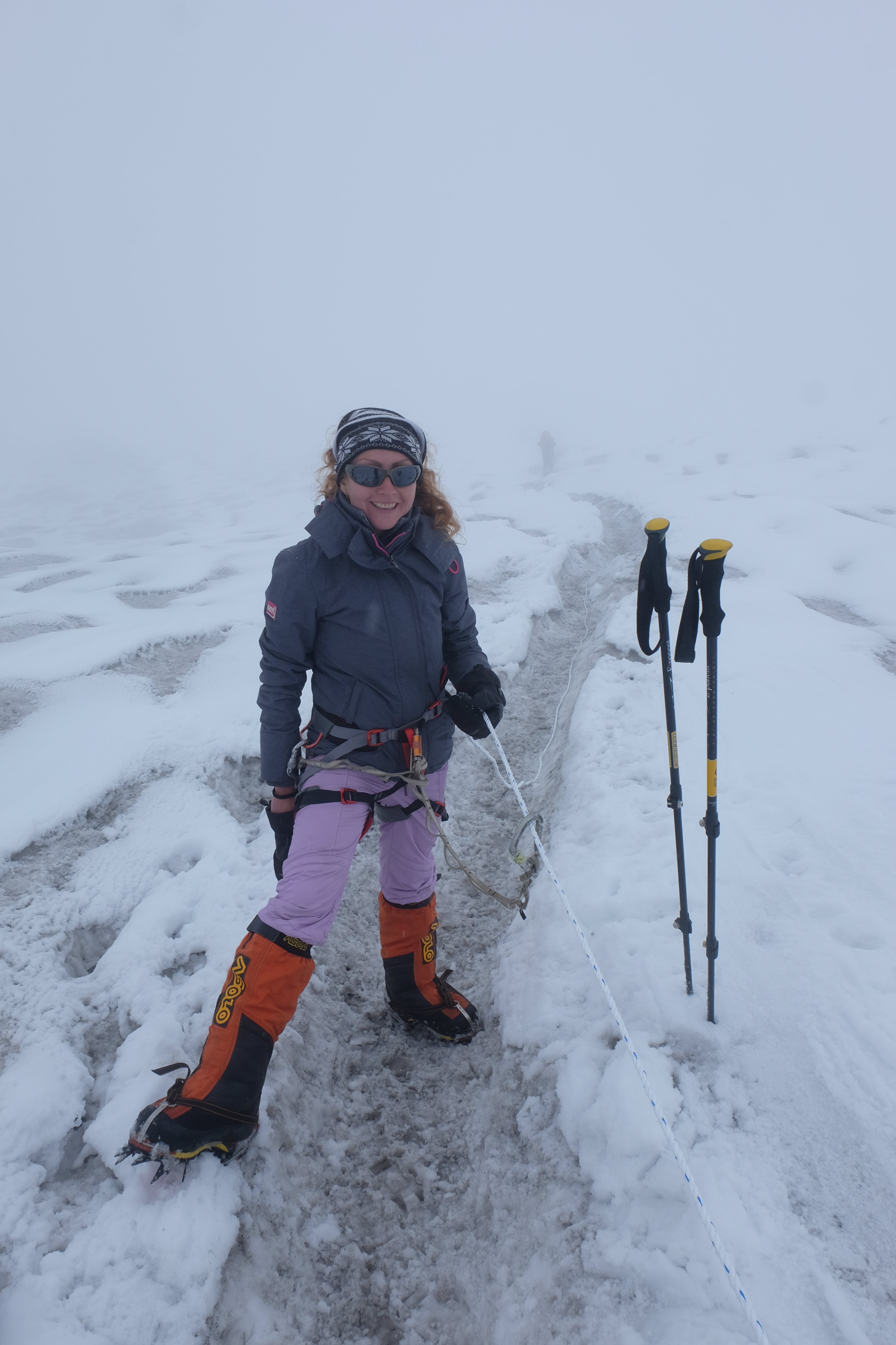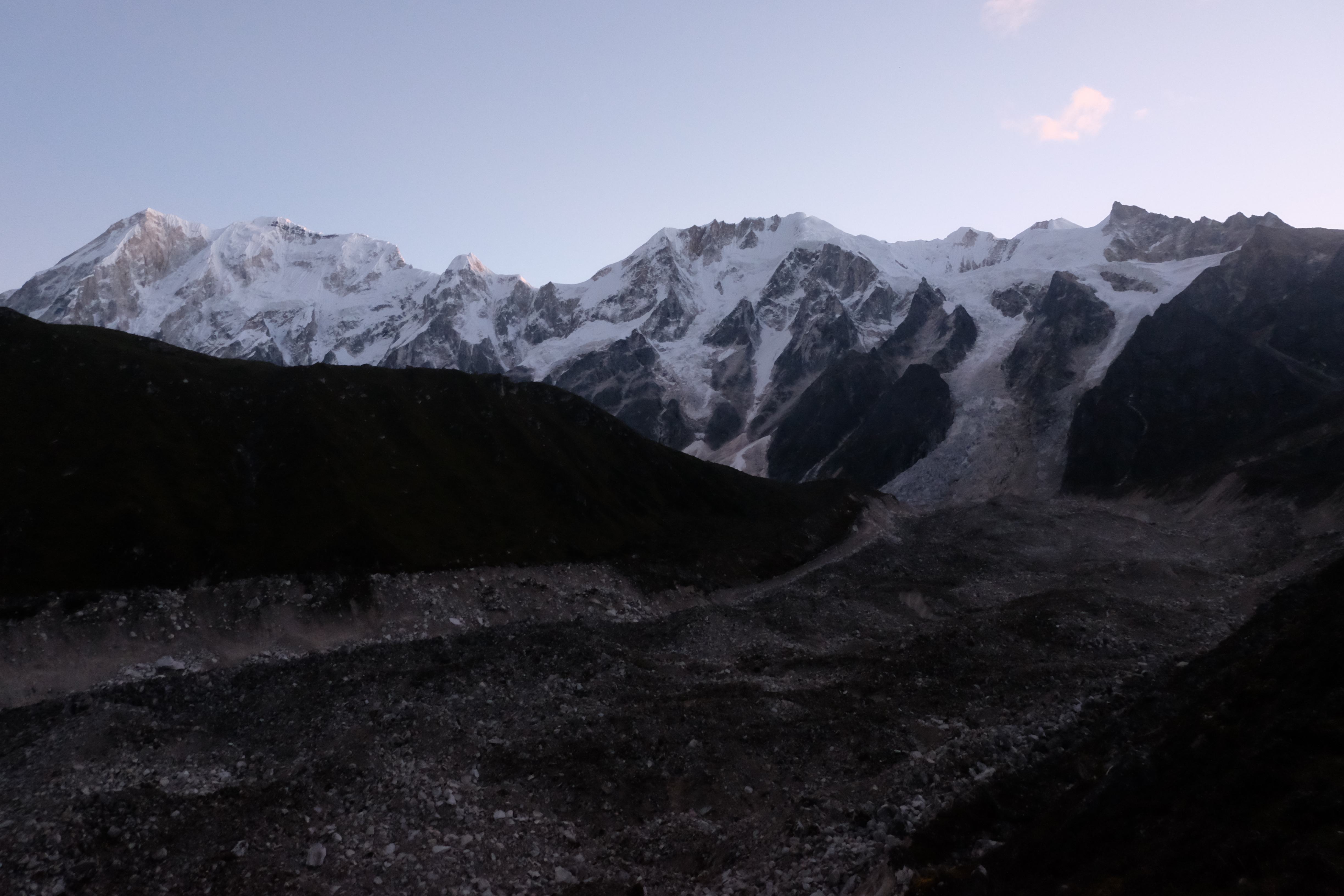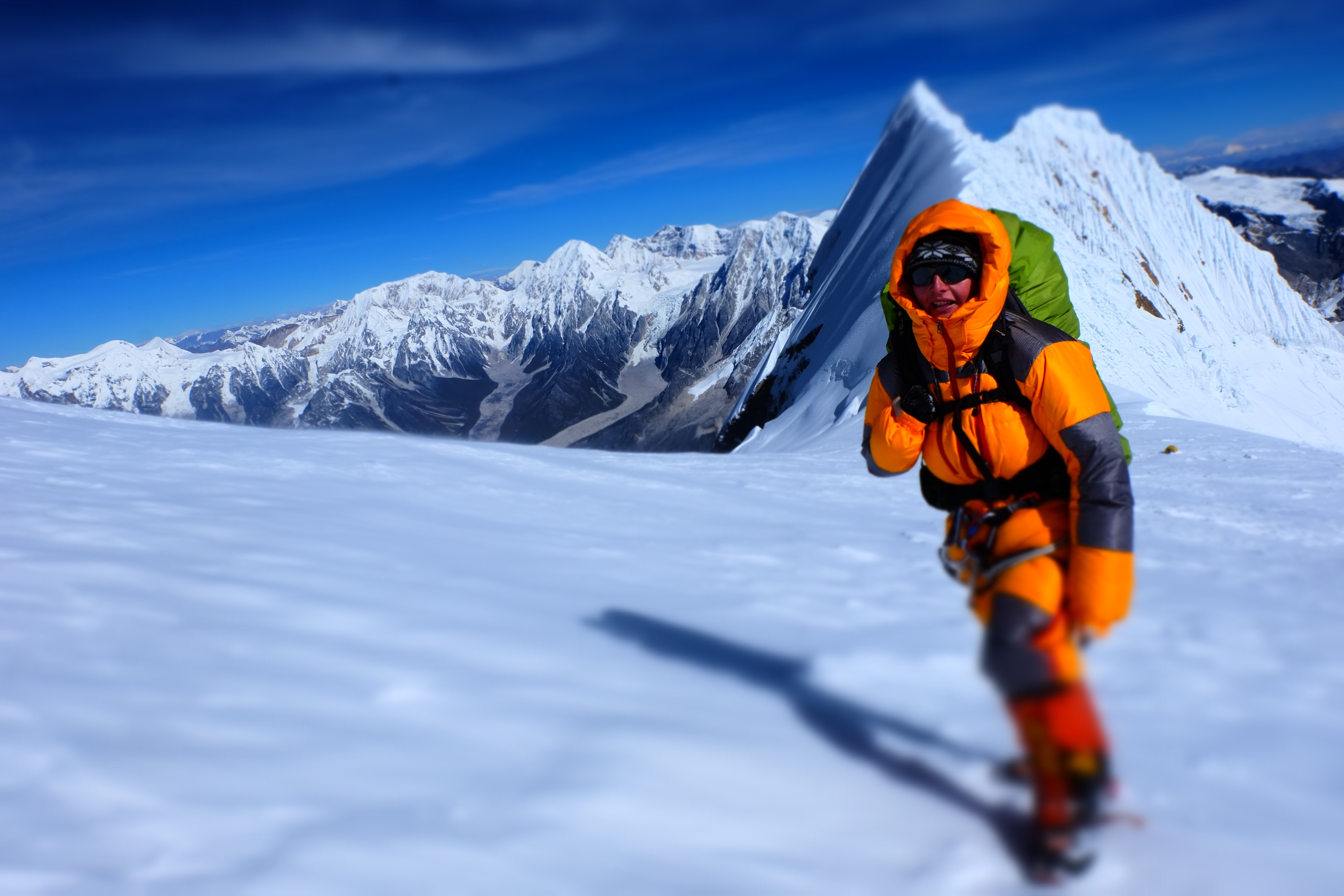 Bewältigt man sämtliche Hindernisse, wartet auf einen die letzte Nacht. Die Erschöpfung, Dunkelheit und Kälte schreien einem eigentlich in beide Ohren, man solle das Zelt nicht verlassen, der Gipfel flüstert lediglich mit einer kaum wahrnehmbaren Klang, er warte dort auf einen, lediglich eine letzte Anstrengung entfernt, nur eine… Schwierig zu hören, dieser Klang während man sich in der eisigen Kälte die Steigeisen anlegt. Man schaltet die Stirnlampe an in der Hoffnung diesen schwachen Klang mit einem Bild ergänzen zu können: ein Anblick des Gipfels. Dies bleibt einem allerdings noch lange verweigert… man muss lediglich diesem leisen Klang der Hoffnung Glauben schenken und einen Fuss nach dem anderen setzen. Komischerweise lässt (im Gegensatz) zu den anderen Tagen die Erschöpfung mit jedem Schritt nach. Je weiter man kommt, desto weniger müde man ist, desto lauter wird der Ruf des Gipfels. Sogar die Sonne wird aus ihrem Tiefschlaf geweckt und geht auf um einem zuzuschauen: schafft er es oder nicht? Und dann kommt plötzlich der schönste Augenblick: nicht der Gipfel selber, der wird vermutlich schnell sein, ein paar Fotos, Stress um den besten Augenblick ohne andere Leute dort oben, usw. Nein, der schönste Augenblick ist 15 Minuten vor dem Gipfel: wenn man diesen tatsächlich erblickt und sicher weiss, man wird es schaffen. Dann überwältigen einen alle Gefühle, die Erinnerungen und Gedanken an die Leute die man vermisst, aber deren Arme man fast hinaufstossen spürt… und dann kommen die Tränen.