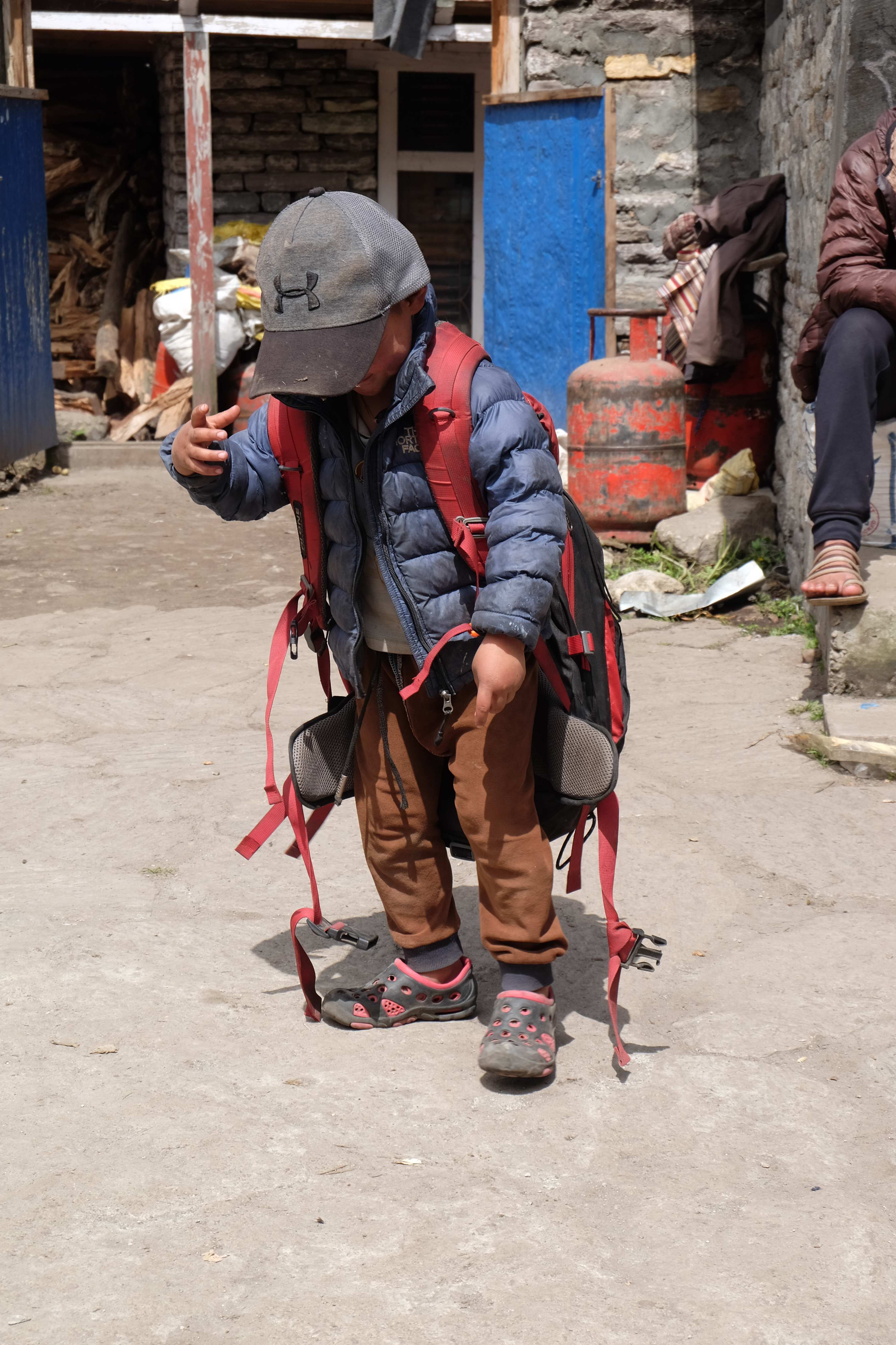 Trotz fabelhafter und sogar beinahe profimässiger Ausrüstung, die man die ganze Zeit mitschleift stellt man bei der Abfahrt in Kathmandu fest, dass man überhaupt nicht ausgerüstet ist für das, was auf einen zukommt: 1 Monat ohne die Nähe der Leute, die man gern und die einen gern haben… 1 Monat „alleine“ mit einem solch grossen Vorhaben. Es überwältigt einen, so dass man schnell zur Jammertante wird und sich 800 Minuten kauft um telefonisch mit oben erwähnten Leuten in Verbindung zu bleiben nur um später festzustellen, dass der Empfang inexistent ist.