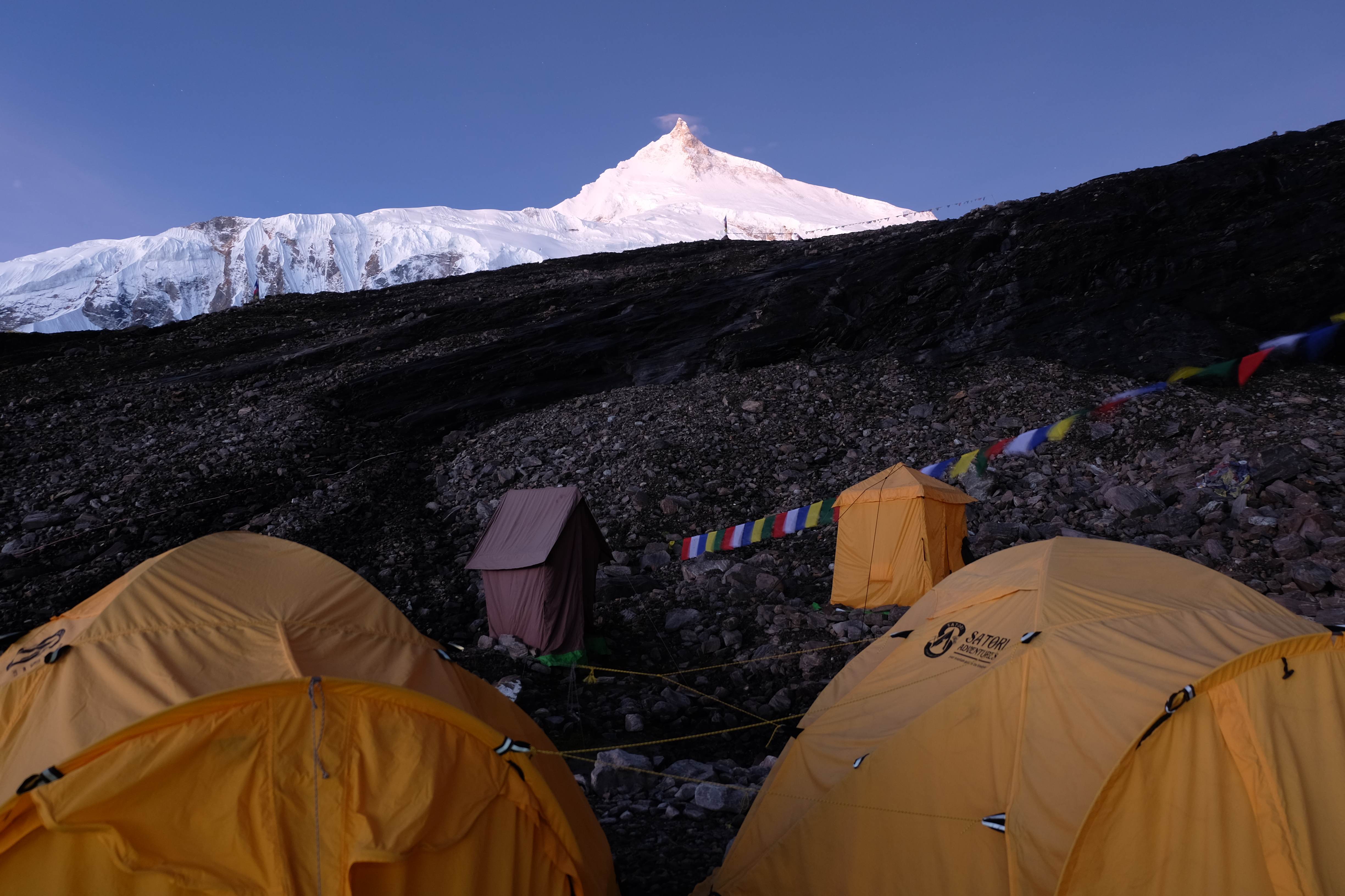Si totusi te avanti in aventura, imbratisezi riscul si necunoscutul, te bucuri si admiri peisajele, bati cu piciorul potecile care te duc greu, incet dar sigur pana in tabara de baza al muntelui respectiv si iti tii un moment suflarea inainte de a inainta si mai mult: treaba devine serioasa! Tot ceea ce inainte era doar un plan, o idee, un concept acum s-a materializat si este concret, real, palpabil. Aceasta seriozitate a situatiei creste cand vine momentul sa iti schimbi culcusul: de la patucurile calde si primitoare ale cabanelor de munte la corturile din tabara de baza. Insa mare e bucuria in momentul in care atingi aceasta tabara de baza, e un sentiment unic, de nedescris cand zaresti “ciupercutele” galbene care formeaza noul nostru “acasa.” Intr-un mod paradox, acolo te simti in siguranta in ciuda nesigurantei aventurii in sine. Te cufunzi intr-o alta lume si te lasi fascinat, cu atat mai mult cu cat are si izul dulce al primei dati: prima data intr-o tabara de baza, prima data inconjurata de atatia “alpinisti”, primul meu optmiar.