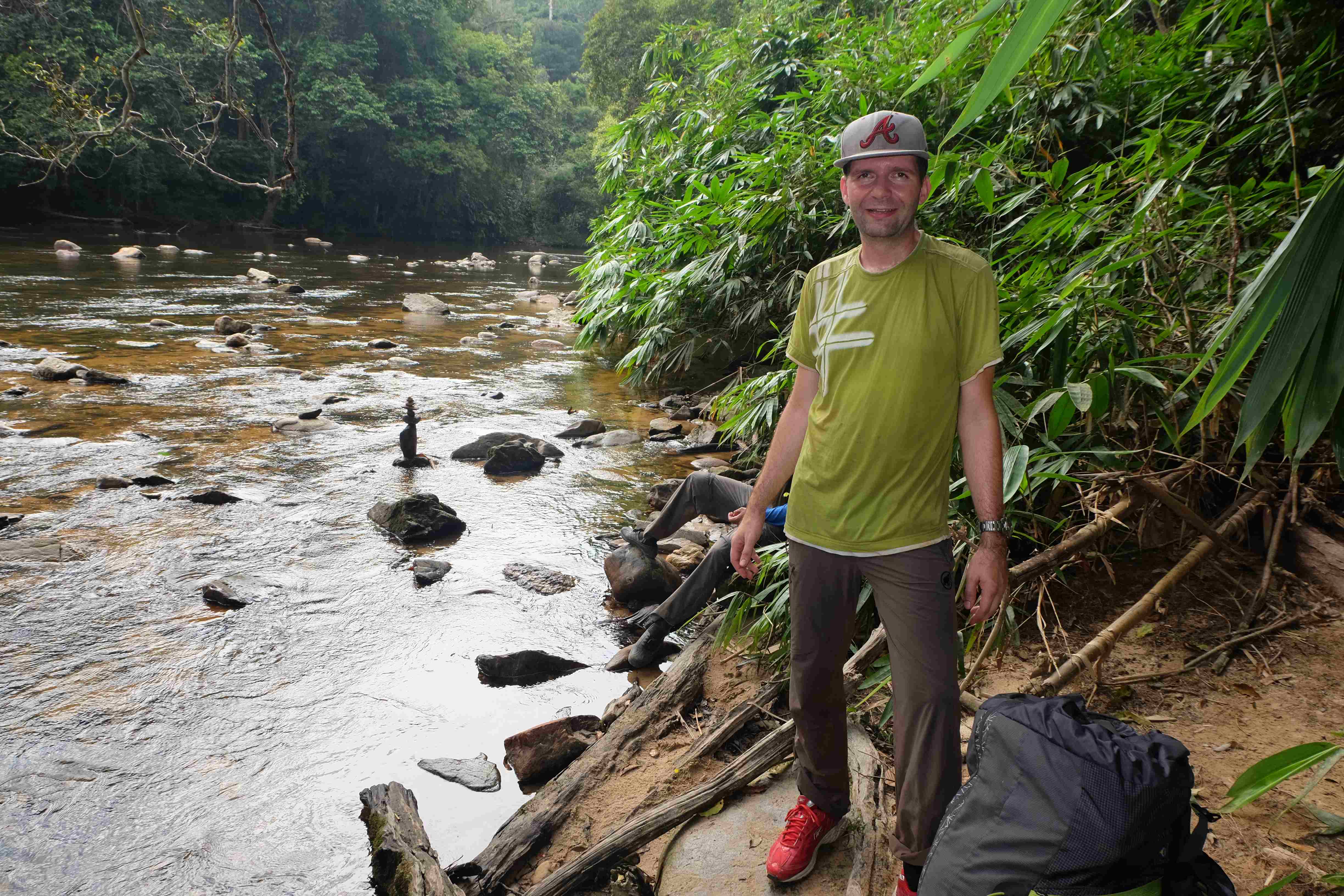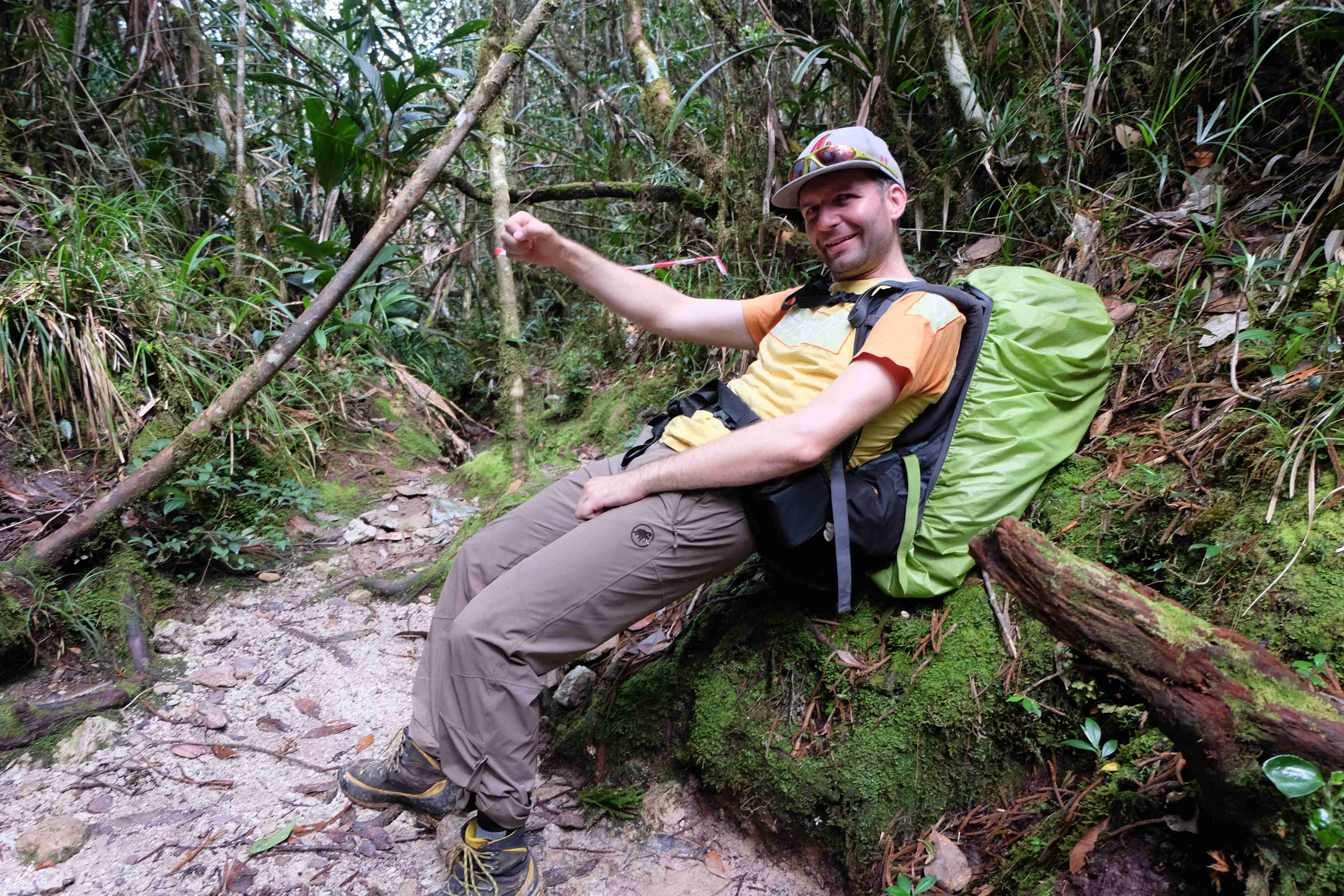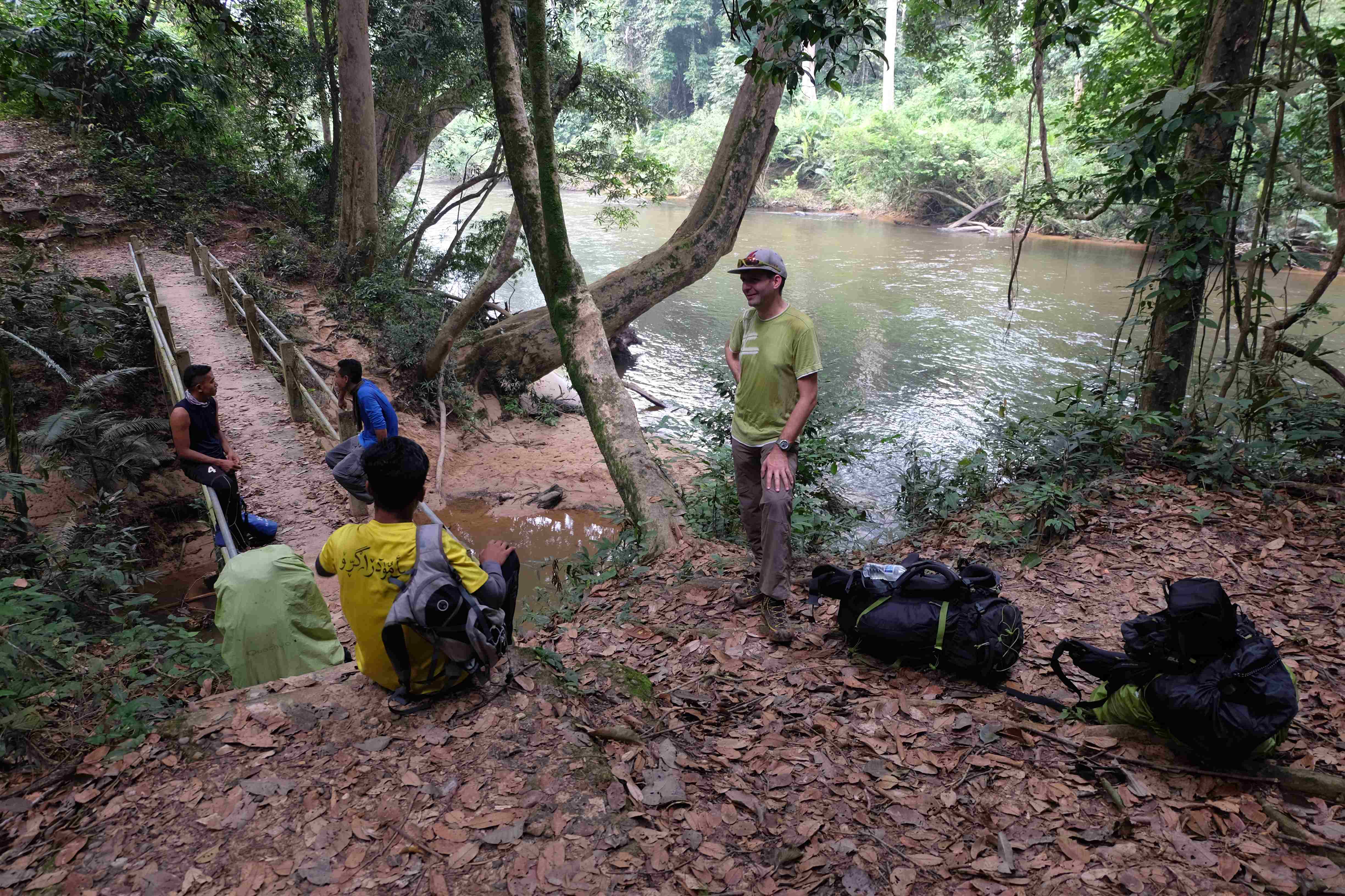 Nach diesen „homo touristicus“ typischen Aktivitäten beschlossen wir allerdings, dass wir „homo Rambo“ spielen wollen und eher die harte Seite des Dschungels erfahren indem wir tief hineindringen und einige Nächte mit Hab und Gut (nämlich Zelt und Essen) dort übernachten. Was für eine bessere Route dafür, als jene auf den höchsten Berg der Halbinsel: Gunung Tahan, der lächerliche 2183 m misst. Ein Spaziergang … und ein wenig Dschungelerlebnis dazu (dachten wir uns Idioten!) Sehr selbstsicher und unserer Fitness bewusst lachten wir sämtliche Touranbieter aus, als sie entsetzt reagierten, weil wir die von ihnen standardmässig in 7 Tagen angebotene, 110 km lange Tour auf derer 5 kürzen wollten. „Die Typen waren noch nie auf einem Berg“, dachten wir uns… es sind lächerliche 2000m, bitte schön! Die Apres-Ski Bar in Saas Fee ist ja fast auf der Höhe! 🙂 Wir kommen aus der Heimat der Alpen, verfügen über 8000er Erfahrung, sind sehr sportlich, fahren mit dem Velo an einem Tag von Zürich nach Genf, in 12 Tagen von der Schweiz nach Rumänien… das wird für uns ein Kinderspiel sein! Eigentlich bräuchten wir gar keinen Guide, den nehmen wir nur wegen des dichten Dschungels und des nicht unbedingt markierten Weges. Natürlich fanden wir ziemlich schnell einen Guide, der (verrückt genug war und) einwilligte, die Tour mit uns in 5 Tagen zu machen. Für noch Verrücktere gäbe es ja die gleiche Variante als Sportveranstaltung: ein Ultra-Marathon, den einige in unter 24 h absolvieren. Also nichts wie los: 2 „homo Rambo“ und ein Guide gingen einkaufen – Essensvorräte und eine minimale Campingausrüstung muss her. Stellt ihr euch schon die Action-Hintergrundmusik und den Silvester Stallone vor, der seine gesamte Kampfausrüstung vorbereitet? So hat das nämlich bei uns ausgesehen :-):