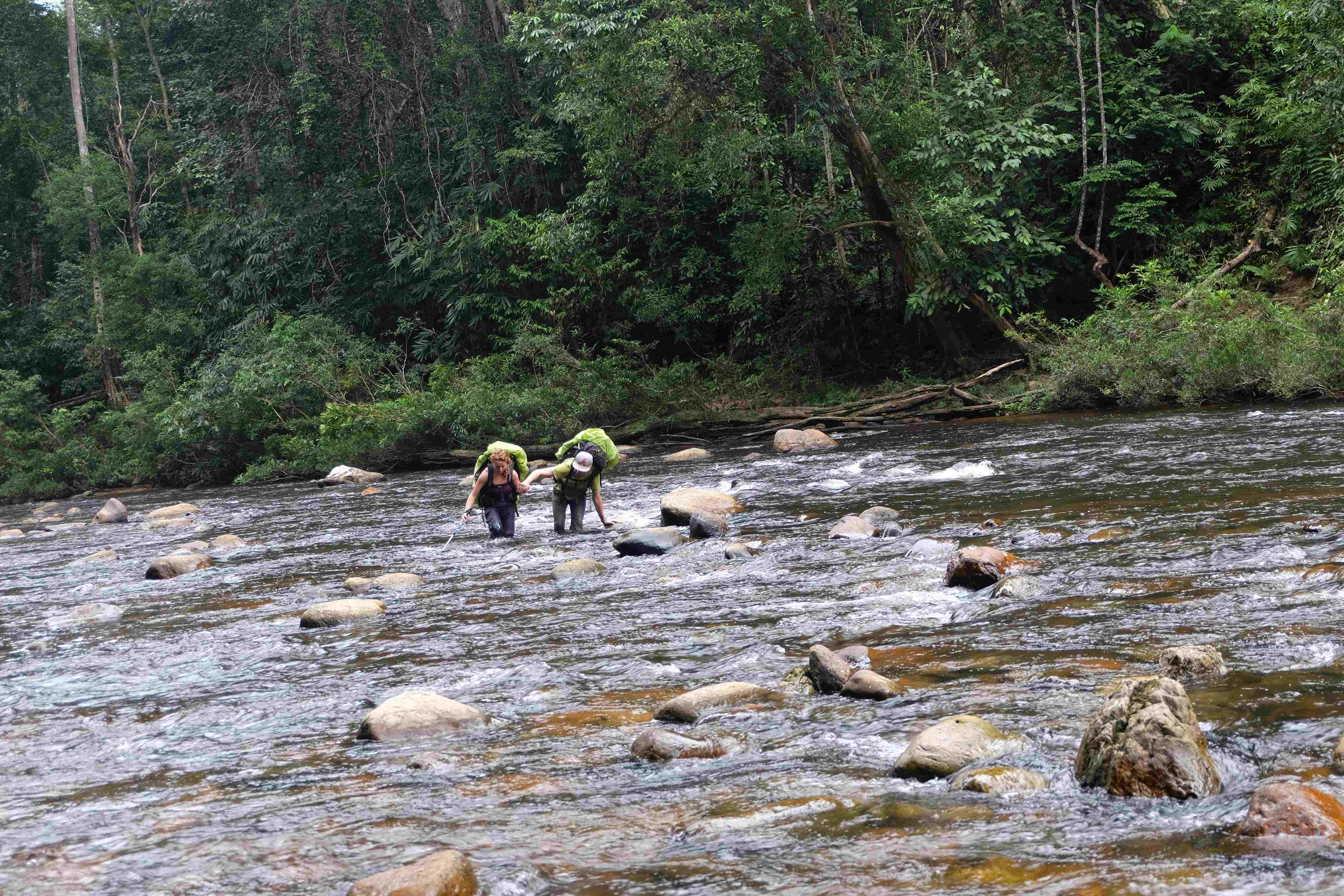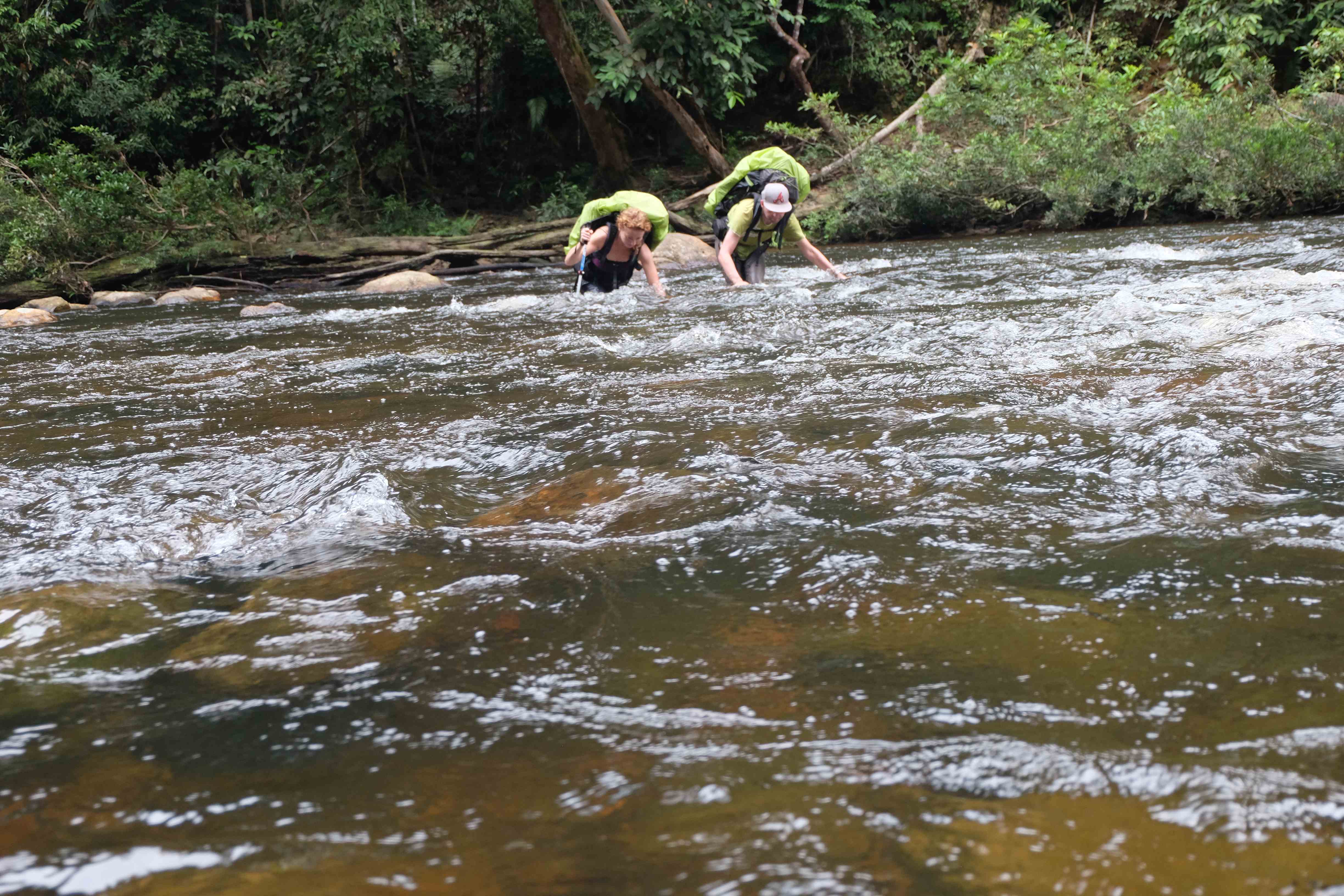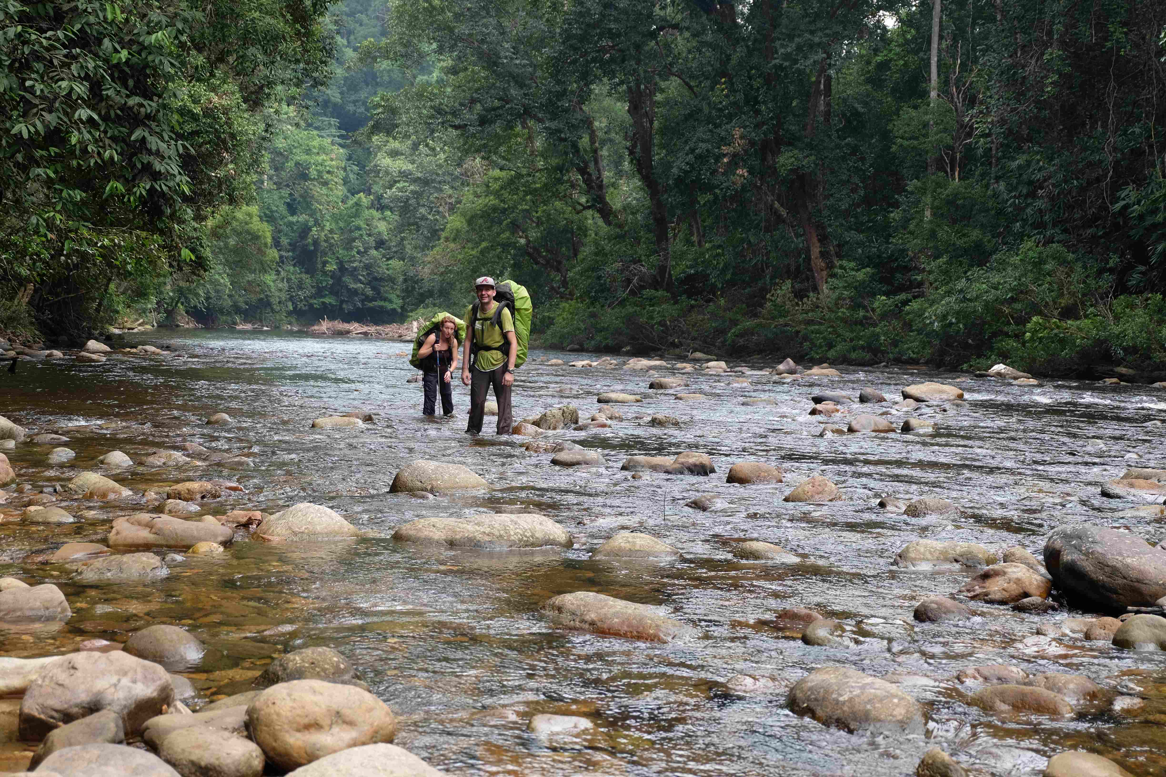 Nach diesen „homo touristicus“ typischen Aktivitäten beschlossen wir allerdings, dass wir „homo Rambo“ spielen wollen und eher die harte Seite des Dschungels erfahren indem wir tief hineindringen und einige Nächte mit Hab und Gut (nämlich Zelt und Essen) dort übernachten. Was für eine bessere Route dafür, als jene auf den höchsten Berg der Halbinsel: Gunung Tahan, der lächerliche 2183 m misst. Ein Spaziergang … und ein wenig Dschungelerlebnis dazu (dachten wir uns Idioten!) Sehr selbstsicher und unserer Fitness bewusst lachten wir sämtliche Touranbieter aus, als sie entsetzt reagierten, weil wir die von ihnen standardmässig in 7 Tagen angebotene, 110 km lange Tour auf derer 5 kürzen wollten. „Die Typen waren noch nie auf einem Berg“, dachten wir uns… es sind lächerliche 2000m, bitte schön! Die Apres-Ski Bar in Saas Fee ist ja fast auf der Höhe! 🙂 Wir kommen aus der Heimat der Alpen, verfügen über 8000er Erfahrung, sind sehr sportlich, fahren mit dem Velo an einem Tag von Zürich nach Genf, in 12 Tagen von der Schweiz nach Rumänien… das wird für uns ein Kinderspiel sein! Eigentlich bräuchten wir gar keinen Guide, den nehmen wir nur wegen des dichten Dschungels und des nicht unbedingt markierten Weges. Natürlich fanden wir ziemlich schnell einen Guide, der (verrückt genug war und) einwilligte, die Tour mit uns in 5 Tagen zu machen. Für noch Verrücktere gäbe es ja die gleiche Variante als Sportveranstaltung: ein Ultra-Marathon, den einige in unter 24 h absolvieren. Also nichts wie los: 2 „homo Rambo“ und ein Guide gingen einkaufen – Essensvorräte und eine minimale Campingausrüstung muss her. Stellt ihr euch schon die Action-Hintergrundmusik und den Silvester Stallone vor, der seine gesamte Kampfausrüstung vorbereitet? So hat das nämlich bei uns ausgesehen :-):