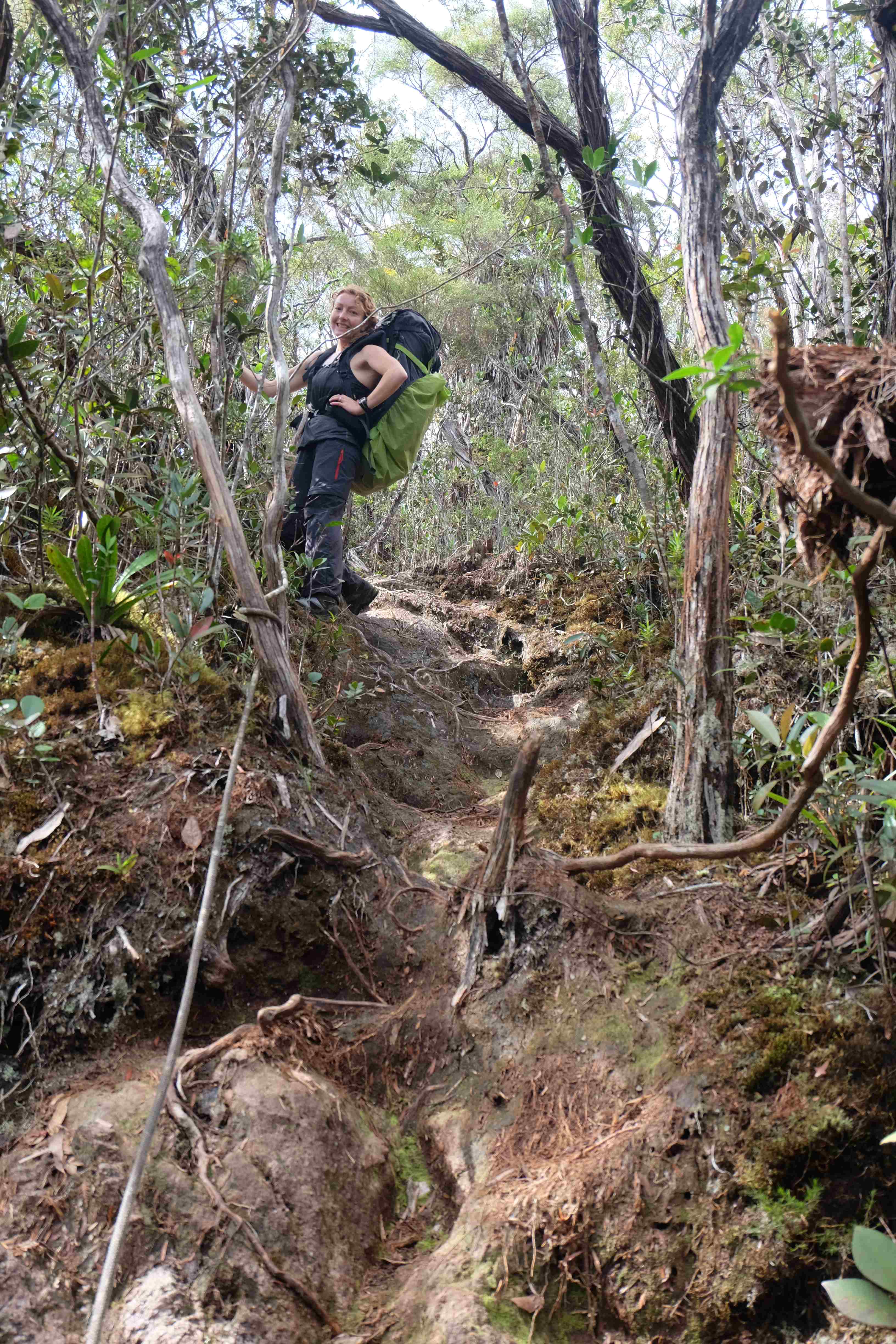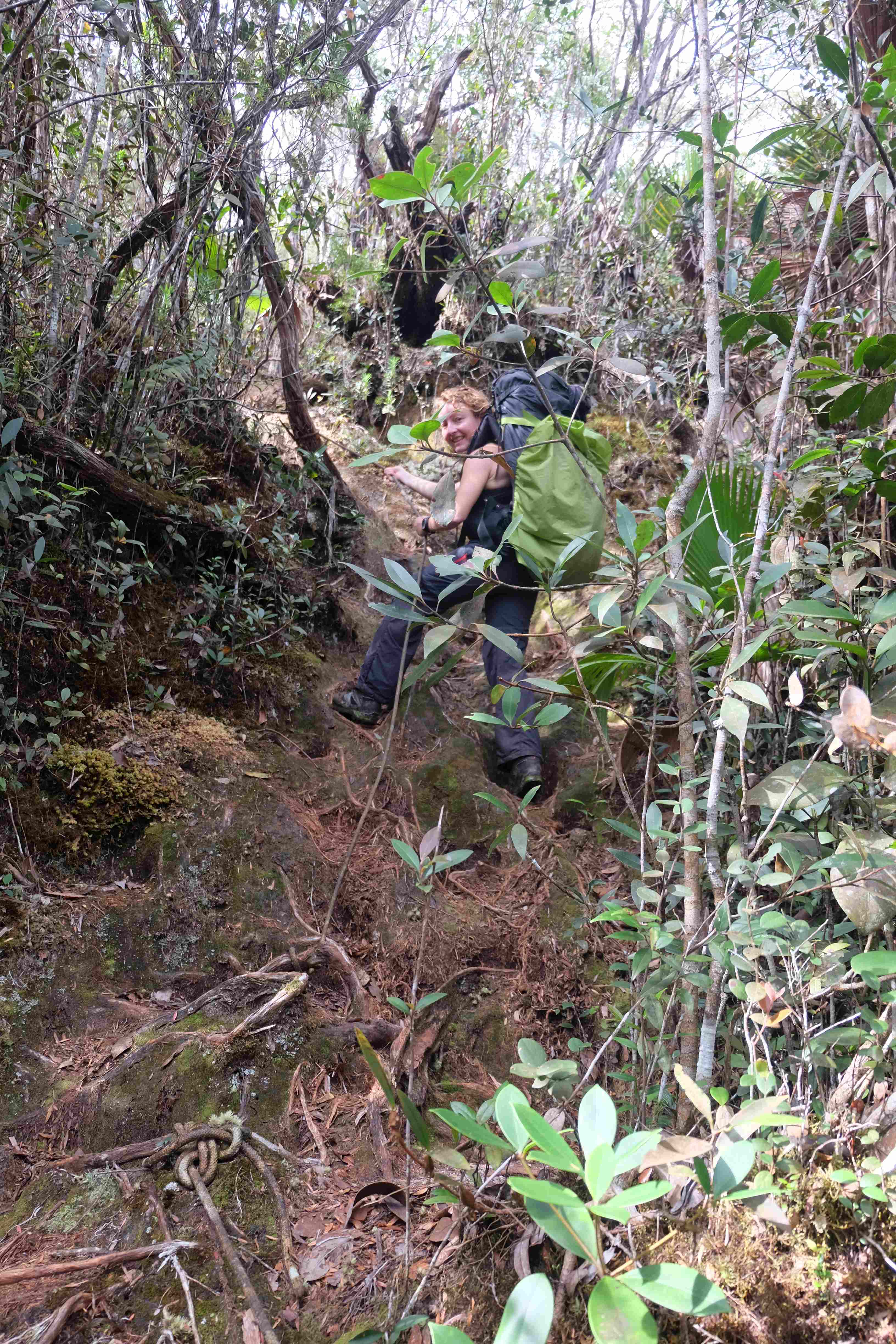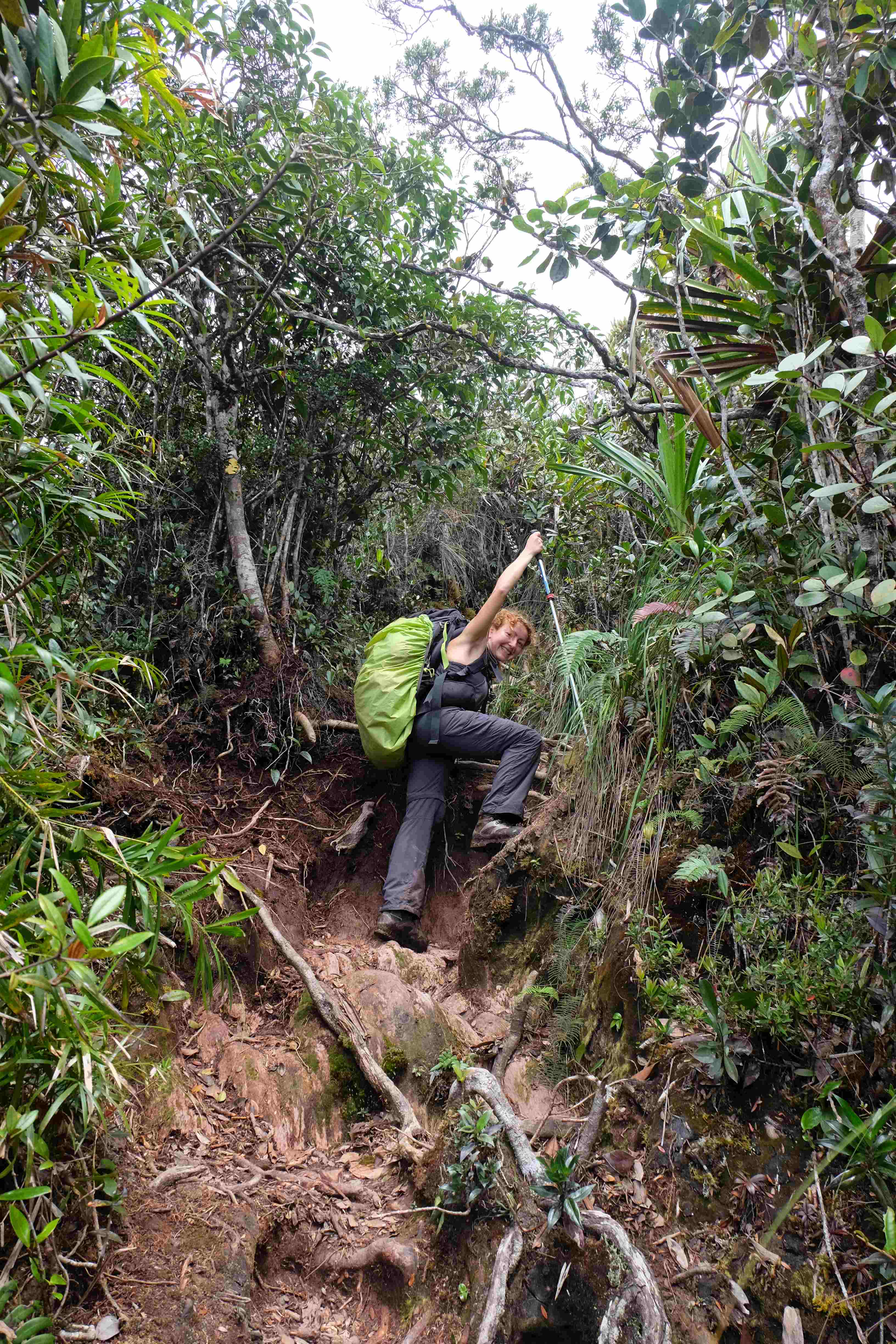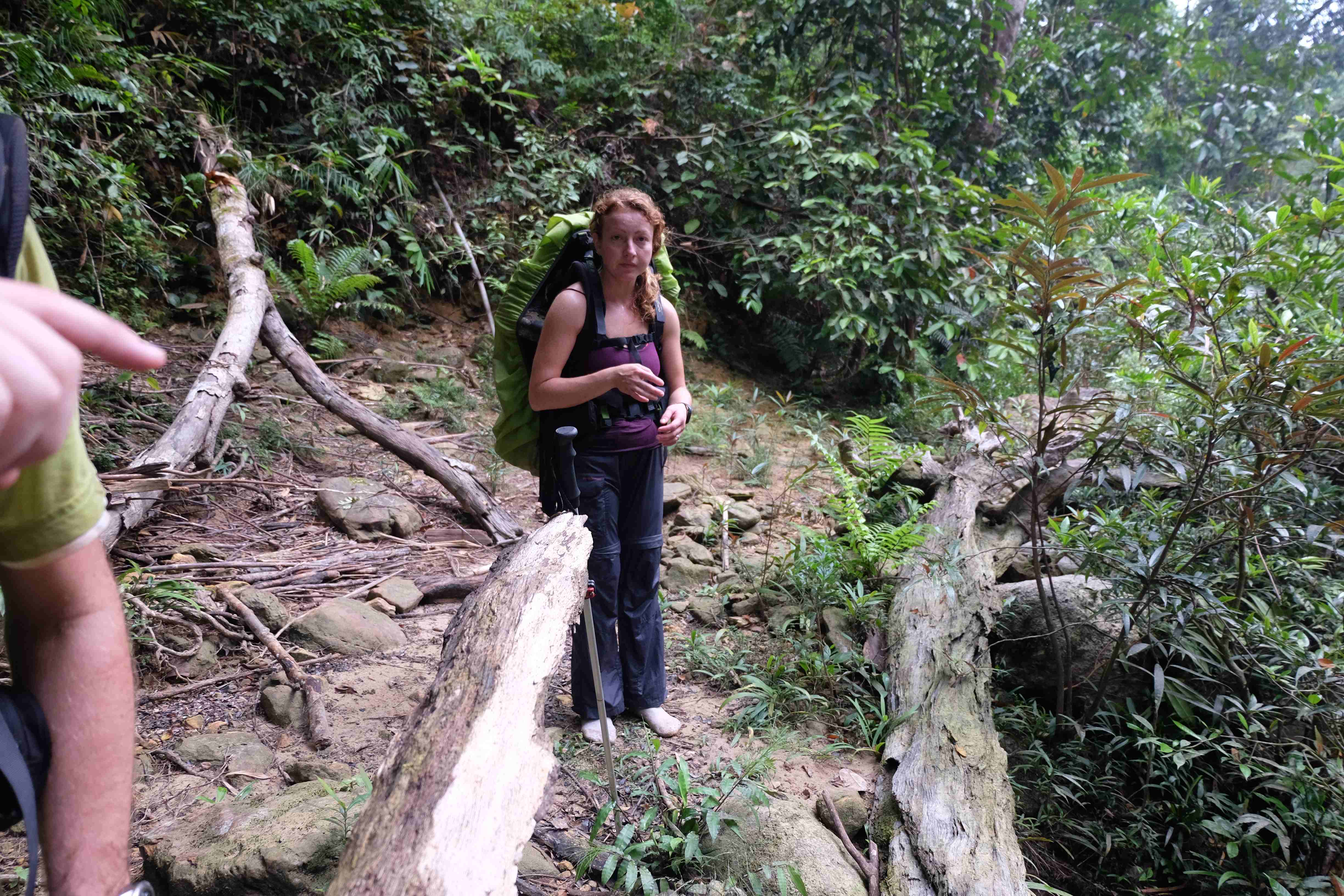 Es geht los! Am Morgen darauf verliessen wir das kleine Dschungeldorf Kuala Tahan und machten uns auf den langen Weg zum Summit. Das klingt lächerlich, oder? Summit eines 2000ers… Nach der ersten Stunde wurde uns allerdings klar: wir waren Idioten! Der Summit und der Berg an sich mögen wohl lächerlich sein, die Höhe ein Kinderspiel, der Dschungel aber, den wir in seiner gesamten Länge durchqueren mussten um den Berg zu erreichen: tödlich! Dass man hier nach 5 minütiger Bewegung direkt unter eine Dusche gestellt und gebadet wird, das gilt für diese Tour nicht. Eher: man wird unter einen Wasserfall gestellt und mit heissem, salzigem Wasser durchnässt während man mit kochender, 90% Feuchtigkeit enthaltender Luft angeblasen wird. Währenddessen erhält man etliche Saugnäpfe an den Fussgelenken befestigt, die einem eine kostenlose Blutentnahme anbieten: sog. Blutegel (engl. Leech), die unbemerkt den Weg in die Schuhe und Socken finden und sich an deinem Blut vollsaugen. Das Ganze ist allerdings erst die Aufwärm-Phase. Jetzt wird es richtig ernst: wenn man leichter ist, da man weniger Blut im Körper mittragen muss, fängt man an für Olympia Hürdenspringen zu trainieren. Das Training muss aber immer viel anstrengender und krasser sein, als die Probe an sich. Wie man das im Dschungel schafft? Man nehme gefallene Baumstämme in allen möglichen Durchmessern und Höhen und platziere sie quer über den Laufpfad. Man bringe dann 2 Idioten wie Rafi und Ina, die sich für Rambo 2 hielten und die Tour machen wollten und schaue dann ihnen zu, wie sie alle 10 m darüber springen müssen. Aufgrund der teilweise sehr grossen Durchmesser oben erwähnter Stämme wurde des Öfteren für die Gymnastik-Bodenübungen der nächsten Olympischen Spiele, insbesondere für Spagat trainiert. 🙂 Hat man diese ersten Babyübungen hinter sich, muss man das Ganze etwas härter machen, man will ja Rambo sein, oder? Also kommt „etwas“ Schlamm ins Spiel. Mit „etwas“ als Mengenangabe ist in etwa eine Quantität gemeint, um die gesamte Elefantenbevölkerung Asiens glücklich zu machen und ihr tägliche paradiesische Schlammbäder zu ermöglichen. Damit man sich nicht beschweren kann, dass man die ganze Zeit dreckige Kleider anhat, darf man sich den Schlamm natürlich auch wegwaschen, nämlich in den etlichen Flussüberquerungen, die einem bevorstehen wenn man sich für diese Tour entscheidet. Naive Rambo-Möchtegerns wie ich, die meinten, man könne doch einen Fluss barfuss überqueren werden hier eines Besseren belehrt: mit Rucksack, Wasser bis an der Taille und höllisch starken Strömungen auf die andere Uferseite zu kommen ist viel einfacher gesagt als getan. Dazu kommt noch die Tatsache, dass man voller Blasen an den Füssen ist, da die Wanderschuhe und Socken nie trocknen konnten und somit mehr und mehr rieben. Meint ihr, das war`s schon? Dann habt ihr aber die nassen Kleider vergessen, die über Nacht nie trockneten und morgens pflötschnass seiend wieder angelegt werden mussten. Ach ja, und unseren Gestank, der so stark war, dass er sogar die Mücken fernhielt. Und zum krönenden Abschluss: der Besteigungsteil des Ganzen! Irgendwie muss man ja auf die 2000 Höhenmeter kommen. Leider nicht einem Wanderweg folgend, wie wir es uns vorgestellt hatten, sondern an einem Tag, praktisch an einem Stück fast vertikale Felswände erklimmend, sich an Seilen hochziehend, (diesmal vertikal) Spagat machend … und natürlich dies x Mal wiederholend, da es vor dem Gipfel unzählige Male auf und ab ging. Na ja… kurz zusammengefasst: wir bestiegen einen 2000er aber mit sicherlich 5000 Höhenmetern! Den Schwierigsten der Welt vermutlich, wie lächerlich das auch klingen mag! Wir sahen und erlebten genug Dschungel für eine ganze Weile jetzt, wurden nicht zu Rambos sondern zu blasen-gequälten Wesen, die kaum noch einen Rucksack anlegen und Treppen laufen können, ohne dass es schmerzt… aber wir schafften unsere Tour in heldenhaften und horrenden 5 Tagen! Einmal und nie wieder! 7 Tage sind vermutlich für diese Tour erträglich und damit man sie noch geniessen kann (inkl. einiger schöner Pausen und Fotos oder Kleider in der Sonne trocknen) muss mit 9 oder 10 Tagen kalkuliert werden. Hier eine Foto-Dokumentation unseres Leidens. Lasst euch nicht von unserem Lächeln und der schönen Natur beirren: es war wortwörtlich eine Qual! 🙂
