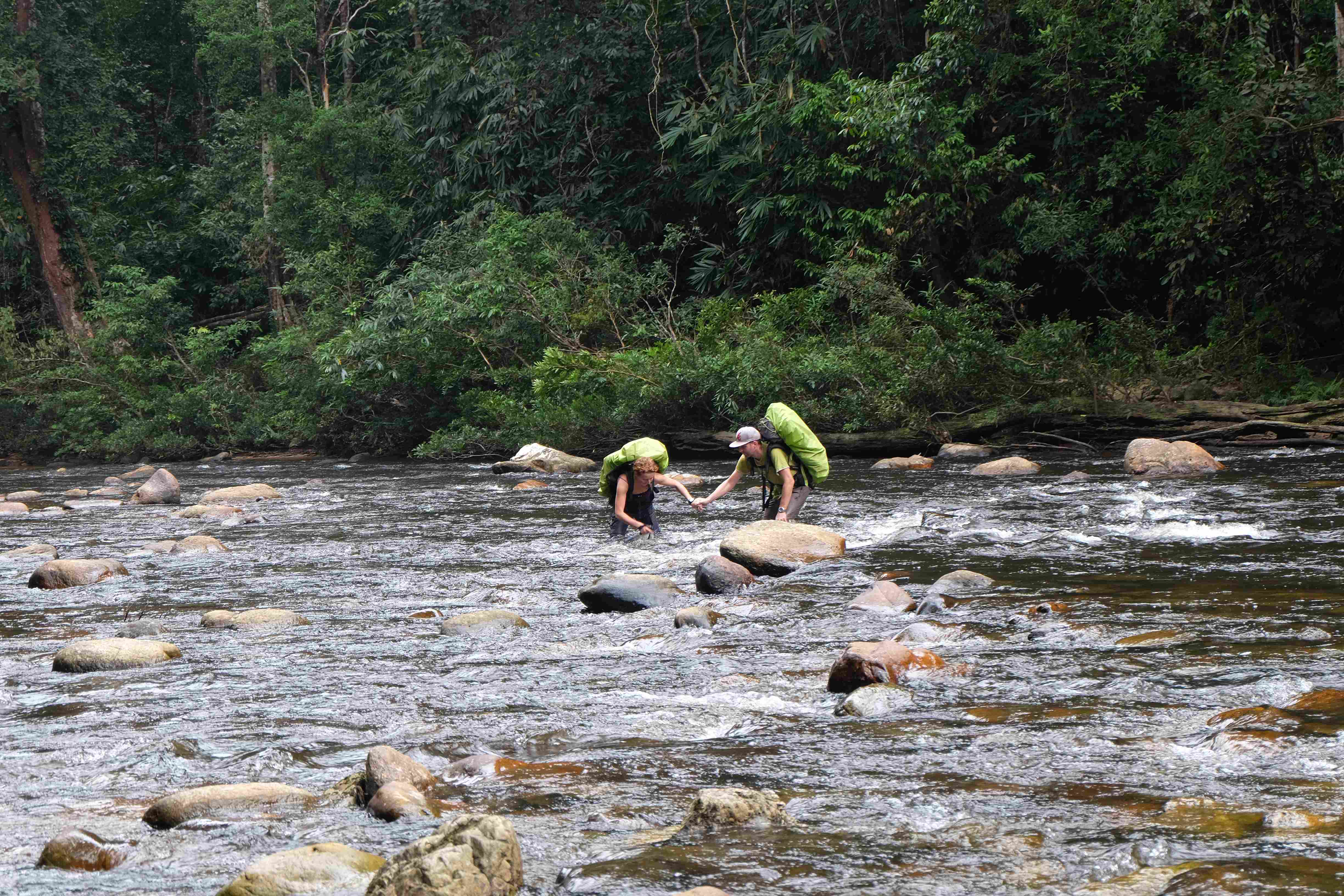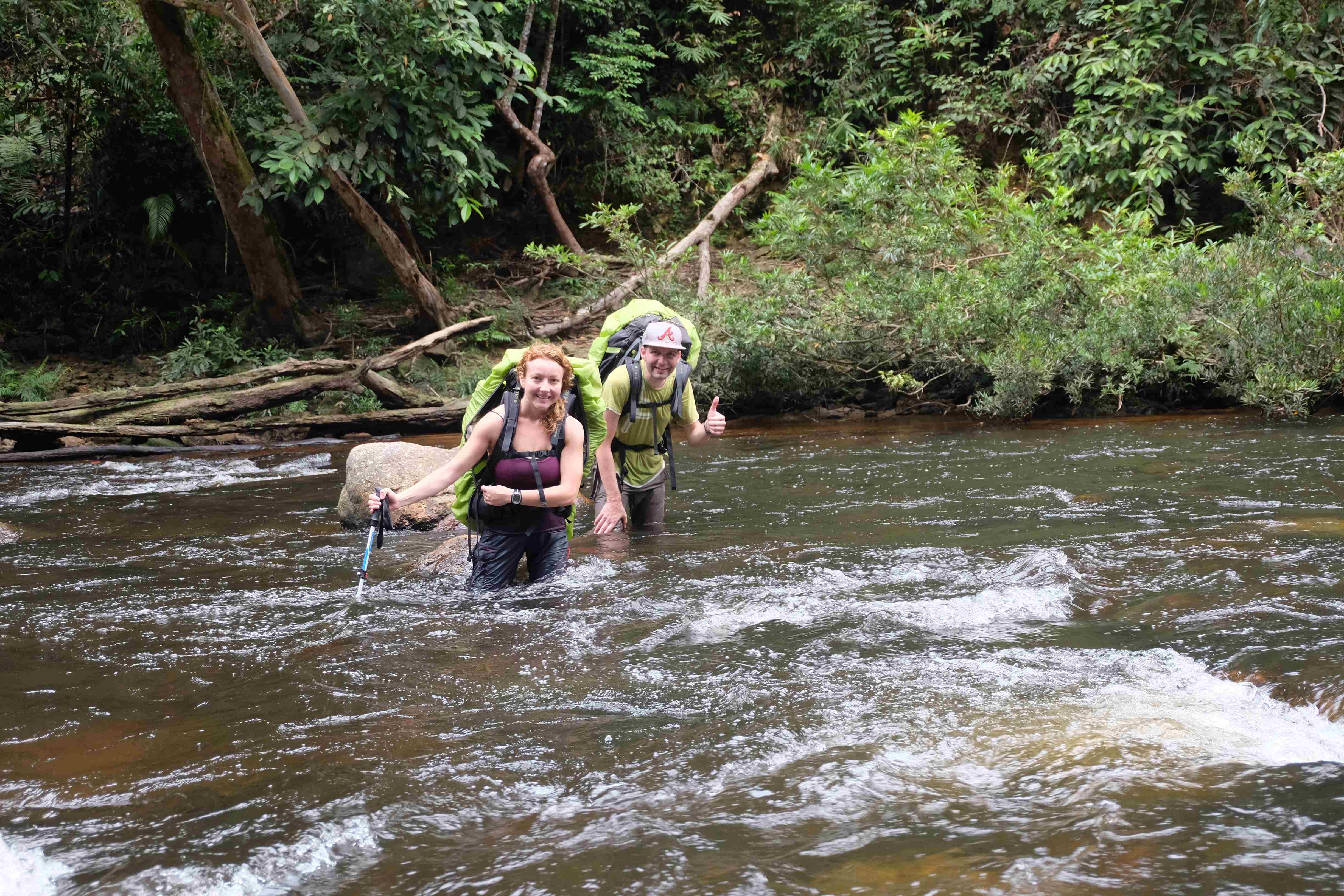 Pornim la drum! In dimineata urmatoare am lasat micul sat la poalele junglei pe nume Kuala Tahan in urma si am pornit spre culme. Ce ridicol suna: culmea unui doimiar… Dupa prima ora deja a fost clar pentru noi: am fost niste idioti! Culmea si muntele in sine poate ca sunt de o dificultate ridicola, altitudinea floare la ureche, insa jungla pe care trebuia sa o traversam in toata splendoarea si lungimea ei pentru a ajunge la acest munte: ucigatoare! Afirmatia anterioara cum ca dupa nici macar 5 minute in miscare esti pus sub un dus tropical si imbaiat nu este valabila pentru acest traseu. Aici sunt alte practici: esti pus sub o cascada si udat cu apa fierbinte si sarata in timp ce se sufla pe tine cu aer fiert cu o umiditate de 90%. Intre timp ti se ataseaza niste ventuze la incheieturile picioarelor care iti iau sange pe gratis: asa numitele lipitori (engl. Leech) care ti se strecoara neobservate in sosete si pantofi si iti sug sangele pana explodeaza de pline ce sunt. Aceasta este insa abia incalzirea. Acum abia treaba devine serioasa: cand esti mai usor si nu mai ai de carat atatia litri de sange cu tine pentru ca lipitorile te-au ajutat, incepi sa te antrenezi pentru urmatoarele jocuri olimpice la disciplina de obstacole. Antrenamentul insa intotdeauna trebuie sa fie mai dur si mai solicitant decat proba in sine. Cum reusesti acest lucru in jungla? Iata reteta: se iau trunchiuri de copaci cu toate diametrele posibile, se plaseaza diagonal pe carare, se aduc doi idioti precum Rafi si Ina care se cred Rambo 2 si au dorit sa parcurga acest traseu si se observa cum acestia trebuie sa sara la fiecare 10 metri peste copaci. Datorita diametrelor adesea enorm de mari ale trunchiurilor, antrenamentul a fost unul combinat: nu doar pentru proba de obstacole ci si pentru cea de gimnastica la sol, exercitiul cel mai des efectuat fiind sfoara.:-) Dupa ce s-au absolvit aceste exercitii de incepatori trebuie ridicata dificultatea antrenamentului, la urma urmelor doar vrem sa devenim Rambo, nu? Deci apare “ceva” noroi. Cand spun „ceva” ma refer de fapt la o cantitate suficienta pentru a face fericita intreaga populatie de elefanti de pe continentul asiatic si a-i oferi zilnic ocazia de a se imbaia si tavali prin noroi. Ca sa nu te poti plange ca trebuie sa ai pe tine tot timpul haine murdare de namol ti se ofera posibilitatea de a le spala in traversarile de rau care te asteapta pe traseu. Aspiranti naivi la titlul de Rambo ca si mine, care au fost de parere ca este floare la ureche sa treci raurile din jungla descult aveau sa afle ca s-au inselat amarnic: cu rucsacul plin, cu apa pana in talie si cu niste curenti infernali este un calvar sa atingi malul opus. Mai mult decat atat, esti plin de basici la picioare pentru ca bocancii nu ti s-au uscat niciodata pe parcursul traseului si in toate aceste zile i-ai incaltat uzi, acestia frecandu-se de pielea calcaielor si a talpilor. Credeti ca aici s-a terminat totul? Atunci ati uitat de hainele ude care nu reuseau sa se usuce niciodata peste noapte din cauza umiditatii excesive, astfel incat dimineata te asteptau ude leoarca. Ah da, si putoarea pe care noi o emanam deja, care se pare ca a inceput sa functioneze pe post de substanta anti-tantari… pana si pentru ei a fost prea mult! 🙂 Si bineinteles, cireasa de pe tort: partea de catarat si escaladat! Doar trebuie sa ajungi cumva la cei 2000m din jungla de la nivelul marii. Din pacate nu pe o poteca de drumetie, asa cum ne-am imaginat noi, ci practic intr-o singura zi si intr-o bucata, totul deodata pe stanci aproape verticale, tragandu-te in sus si ajutandu-te de sfori fixate pe peretii muntelui, de data aceasta facand sfoara – nu doar o data – pe vertical si bineinteles repetand toate acestea la nesfarsit pentru ca inainte de a ajunge pe culme ai urcat si coborat enspe dealuri si alte culmi. Pe scurt: am escaladat un doimiar insa cu vreo 5000m diferenta de nivel. Probabil l-am escaladat pe cel mai greu din lume, indiferent de cat de ridicol suna. Am vazut si experimentat pe piele proprie suficienta jungla incat sa nu ne fie dor de aceasta pentru o buuuuuuna bucata de timp, nu am devenit Rambo ci niste fiinte chinuite de basici si rani la picioare si la spate care abia mai pot sa mearga de durere… insa am reusit sa ne parcurgem traseul in timpul record si eroic de 5 zile. Prima si ultima data! 7 zile sunt probabil un timp suportabil pentru acest traseu, insa daca vrei sa savurezi totul, sa ai timp sa faci pauze, sa faci poze si din cand in cand sa iti usuci hainele in soare trebuie sa ai 9-10 zile la dispozitie. Aici va lasam pozele care ne-au documentat chinul. Nu va lasati furati sau inselati de zamabetul nostru sau frumusetea peisajului: a fost o tortura in adevaratul sens al cuvantului! 🙂