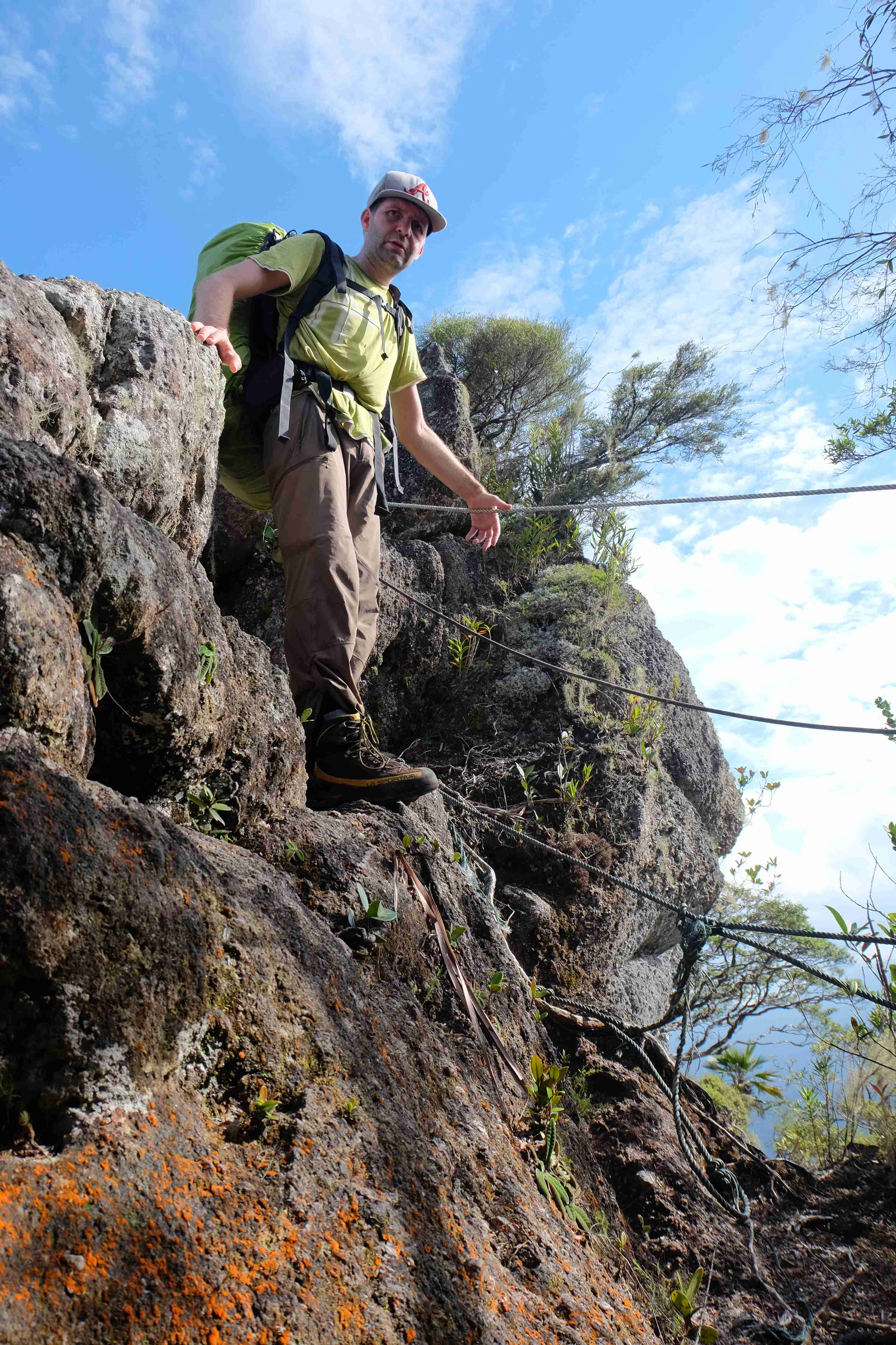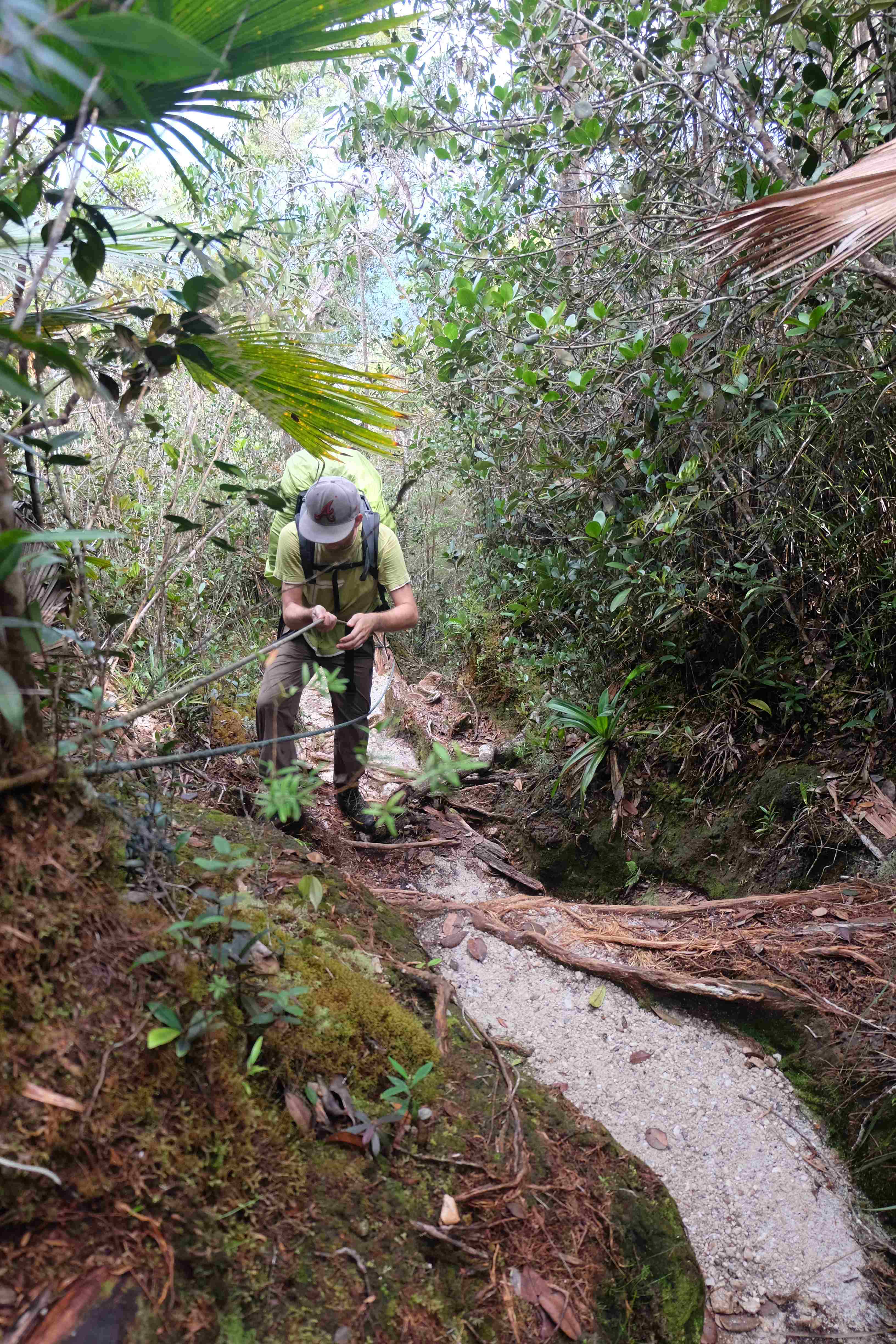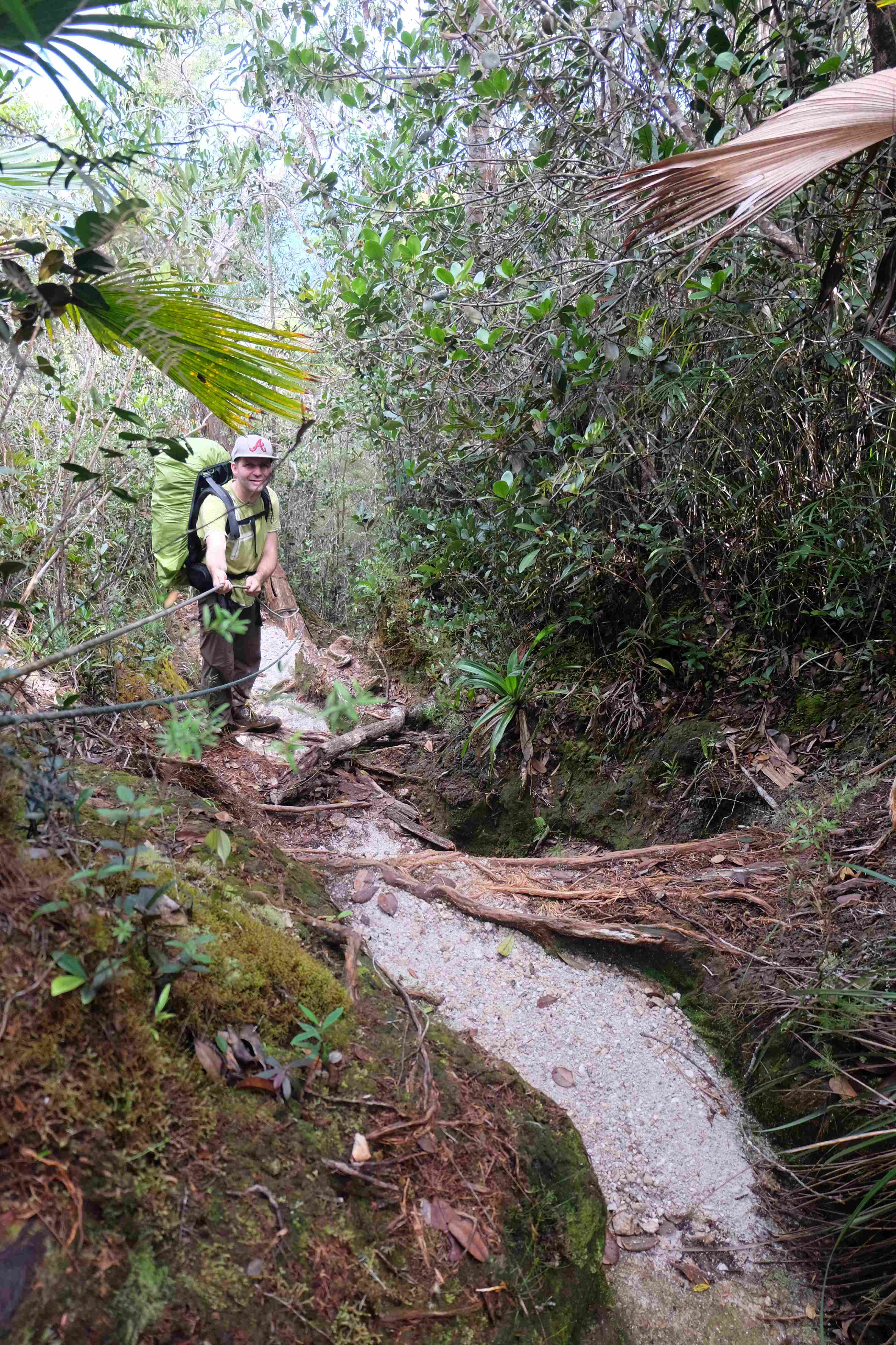 Dupa aceste activitati tipice pentru un „homo touristicus“ am decis insa ca noi de fapt vrem sa facem pe „homo Rambo” si sa cunoastem partea dura, hardcore a junglei, sa patrundem de-a dreptul in ea pana in adancuri si sa petrecem innoptam acolo cu toate boarfele (respectiv cort si mancare). Ce traseu mai potrivit pentru un asemenea proiect decat cel mai inalt varf al peninsulei: Gunung Tahan care are altitudinea ridicola de 2183m. O plimbare … si un pic de gust de jungla (ne-am zis noi ca doi idioti in sinea noastra!) Foarte siguri pe noi si constienti de forma noastra fizica si de rezistenta noastra am ras pe seama tuturor agentiilor si organizatorilor de trasee care le ofereau acest traseu de 110 km turistilor in 7 zile si care reactionau foarte indignati si surprinsi la dorinta noastra de a-l parcurge in doar 5 zile. „Astia in mod sigur nu au fost niciodata pe un munte” ne-am gandit noi… sunt doar 2000m amarati, haideti odata! Barul de apres-ski din Saas Fee este aproape la aceeasi altitudine! 🙂 Noi venim din patria Alpilor, avem experienta la 8000m, suntem foarte sportivi, am reusit Zürich-Geneva intr-o zi cu bicicleta, Zürich-Romania in 12… pentru noi va fi floare la ureche acest traseu. De fapt nici nu am avea nevoie de ghid, ne-am decis sa il luam doar pentru ca este vorba de jungla deasa si de un traseu nu totdeauna foarte bine marcat. Bineinteles ca am gasit foarte repede un ghid suficient de nebun sa accepte propunerea noastra de a parcurge totul in 5 zile. Pentru cei si mai nebuni: o data pe an se organizeaza o cursa aici, un fel de ultra-maraton in care se poate parcurge aceasta distanta in mai putin de 24 de ore! Zis si facut: 2 homo Rambo si un ghid merg la cumparaturi – avem nevoie de provizii si de un cort. Va imaginati deja muzica de actiune din fundal si pe Silvester Stallone care isi pregateste intregul arsenal de lupta? Cam asa a aratat aceasta etapa la noi :-):