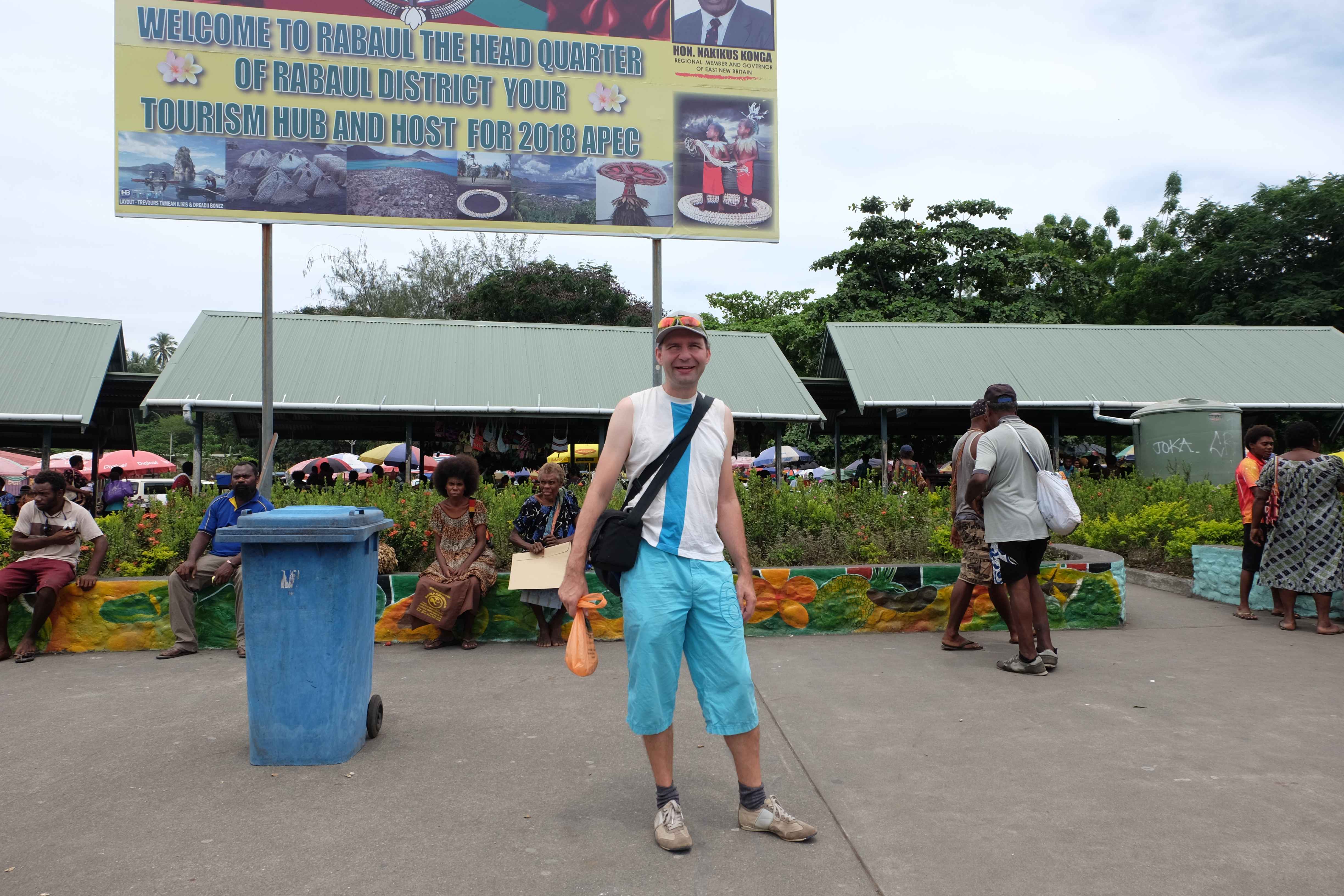 Rabaul soll früher die wichtigste Stadt der Region gewesen sein, nach dem Vulkanausbruch 1994 jedoch lediglich ein Schatten dessen, was sie einst war. Das ganze Leben, das Zentrum des Geschehens wurde in das benachbarte Kokopo verlegt. Städte? Na ja, wie bereits beim Port-Moresby Eintrag erwähnt eher ländliche Siedlungen, wo man als Ausländer und vor allem homo weissus in aller Munde steht und mindestens wie eine Erscheinung aus der letzten Star-Wars Folge bewundert wird. 🙂 Die Überraschung, der Stolz und die Freude, die unsere dortige Anwesenheit bei den Einheimischen auslöste verblüfften uns. War es tatsächlich noch möglich, dass man mit einem Lächeln und einem Zurückwinken derartige Emotionen bei den Leuten auslöst? Unsere Verblüffung endete in Sprachlosigkeit als ein Einheimischer, den wir nach dem Weg zu einem Supermarket fragten uns die Busfahrt dorthin zahlte und uns mit den Worten verabschiedete: „sollte ich oder ein anderer Fremder in eurem Land unterwegs sein, tut dasselbe!“ Sind wir tatsächlich in Papua Neu-Guinea, das von allen als hochgefährlich eingestufte Gebiet, der von Primitivismus, Armut und Unkultur geprägte Ort? Es sieht eher so aus, als hätten sie – im Gegensatz zu uns Westlichen – den einen Schulunterricht namens Hilfsbereitschaft nicht geschwänzt.