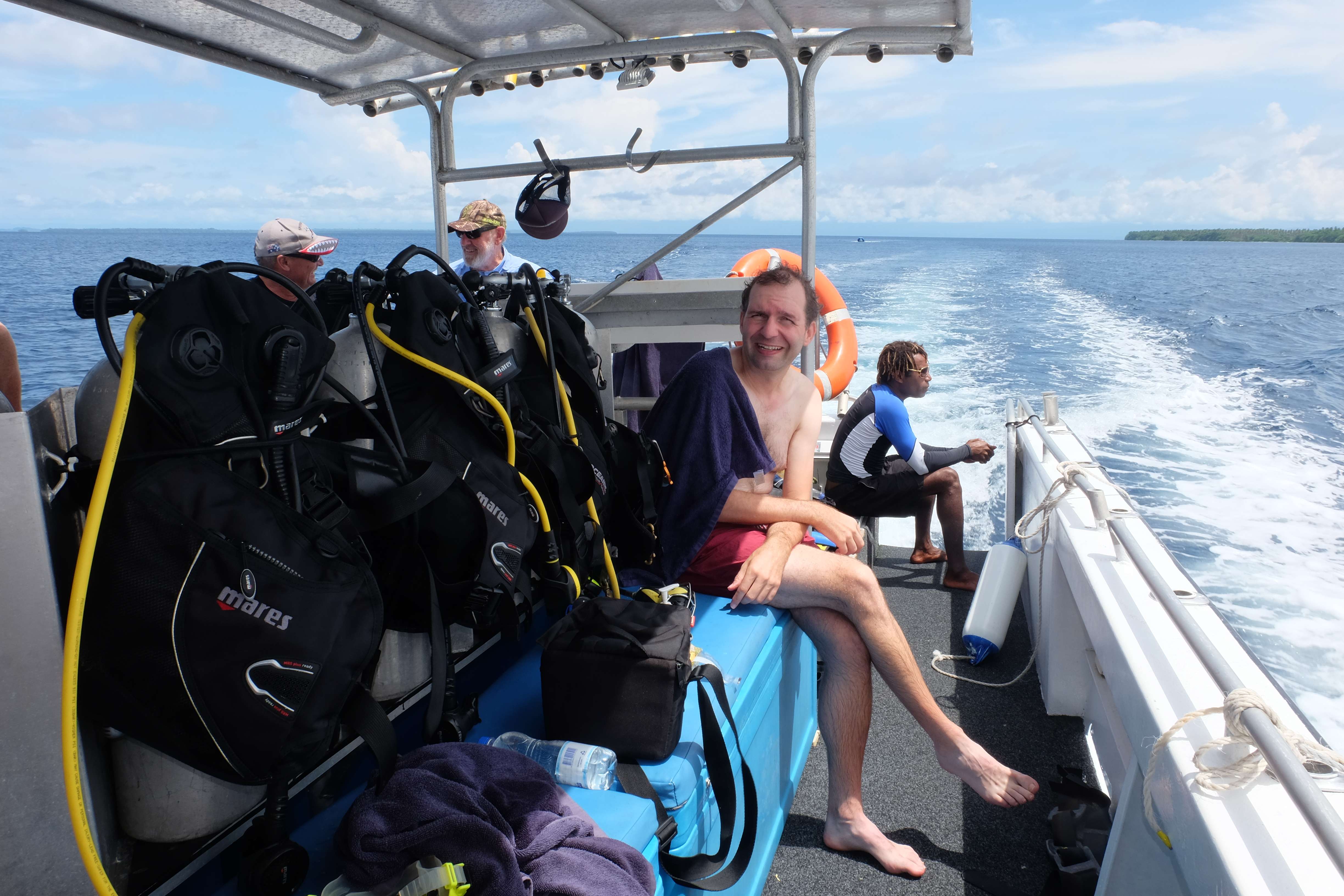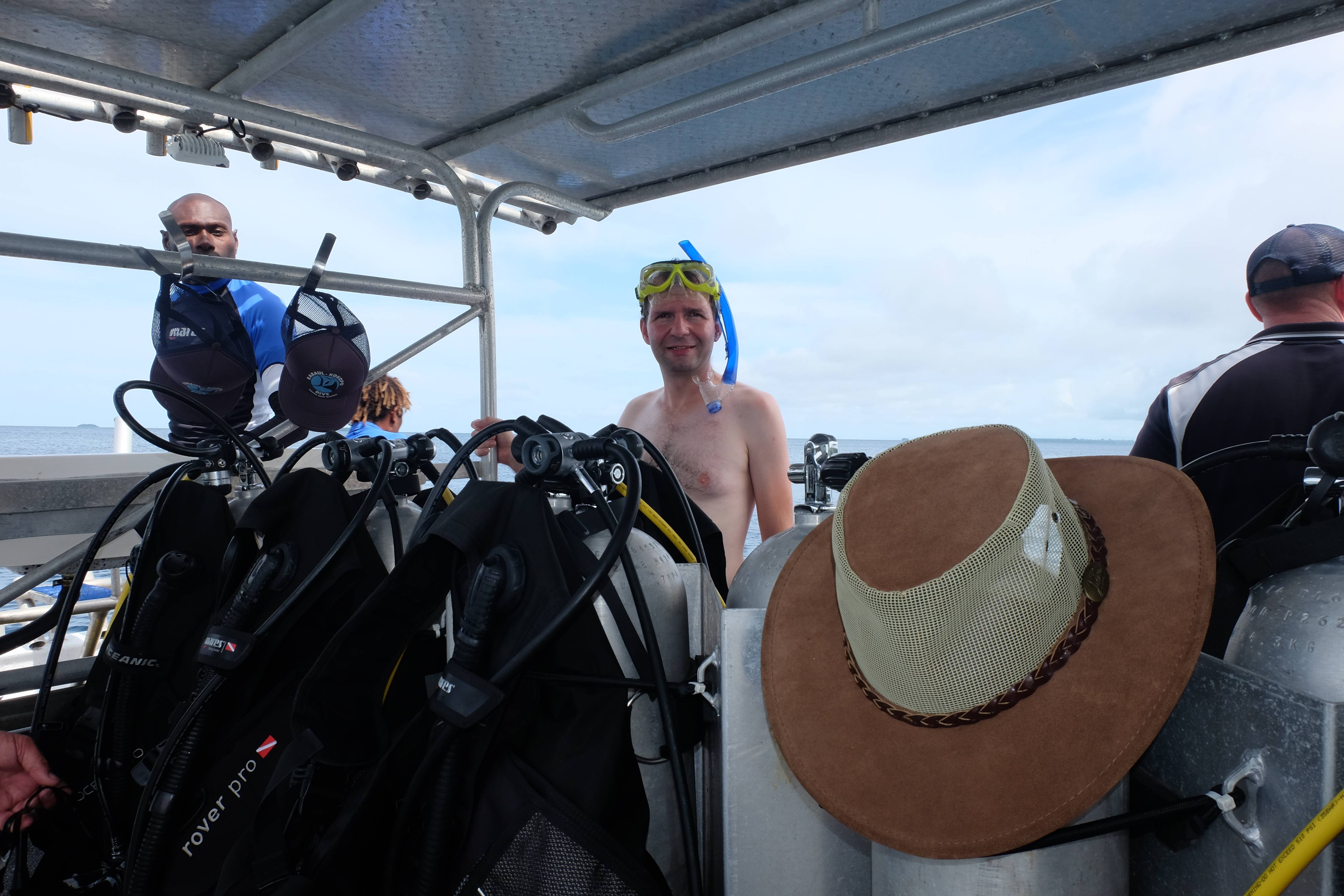 Rabaul war wieder mal eine Tauchdestination, also wurde viel Geld auf dem Boden des Meeres gelassen. 🙂 Gelohnt hat es sich auf jeden Fall: unabhängig von den 4 Australiern in der Tauchgruppe, welche andauernd vom Divemaster an einem anderen Ort gefischt und schlussendlich von ihm an der Tauchjacke regelrecht mitgezogen werden mussten, genoss ich jeden einzelnen Tauchgang und entdeckte ein völlig neues Farbenspektrum in der Unterwasserwelt. Ausserdem waren Rafi und ich zum ersten Mal zusammen am Tauchen… hoffentlich ein sich oft wiederholendes Erlebnis!