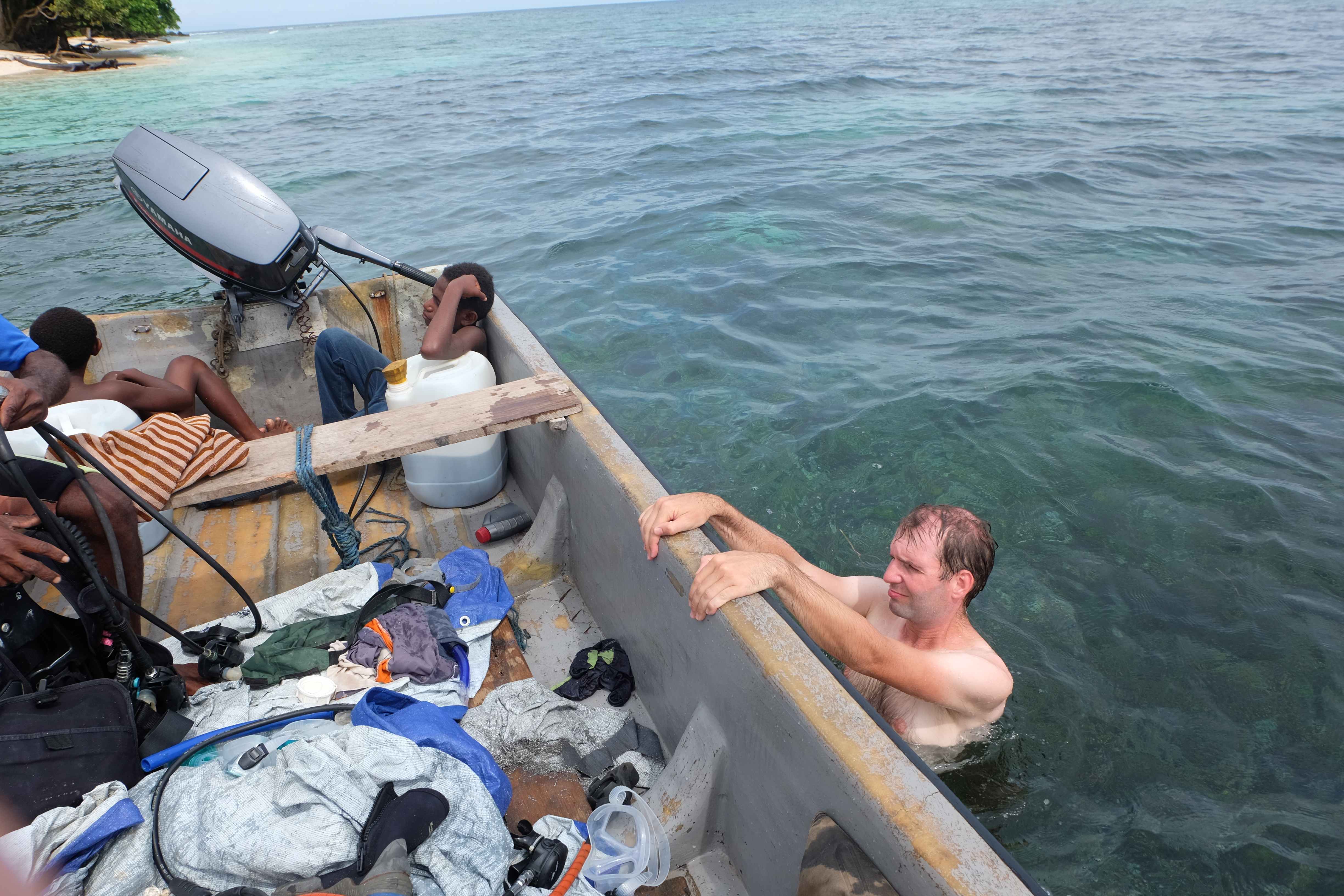 Avand in vedere ca mai aveam cateva zile la dispozitie, m-am decis sa mai cheltui ceva bani aici – de parca nu fusese deja destul – si – pentru ca acesta este ridicat in slavi ca fiind unul dintre cele mai bune si frumoase locuri din lume pentru asa ceva – sa mai fac niste scufundari. De data aceasta – dupa multa munca de cercetare pe internet si multe zbateri pana am ajuns la informatie – insula Mushu din apropiere de Wewak avea sa fie destinatia subacvatica. Singurul dezavantaj: singurul tip pe o raza de 1000 de km care avea un echipament de scafandru si pe care l-am gasit doar cu chiu cu vai nu avea un compresor propriu in apropiere, trebuind sa bata drumul 9 ore cu barca pentru a umple cilindrele de oxigen si alte 9 ore pentru a reveni. Nu l-am invidiat deloc, insa noua acest mic inconvenient ne-a dat timp sa ne odihnim, sa ne relaxam si sa il asteptam – cum stabiliseram – ziua urmatoare pe mal, la punctul de intalnire al barcilor cu bateriile incarcate.