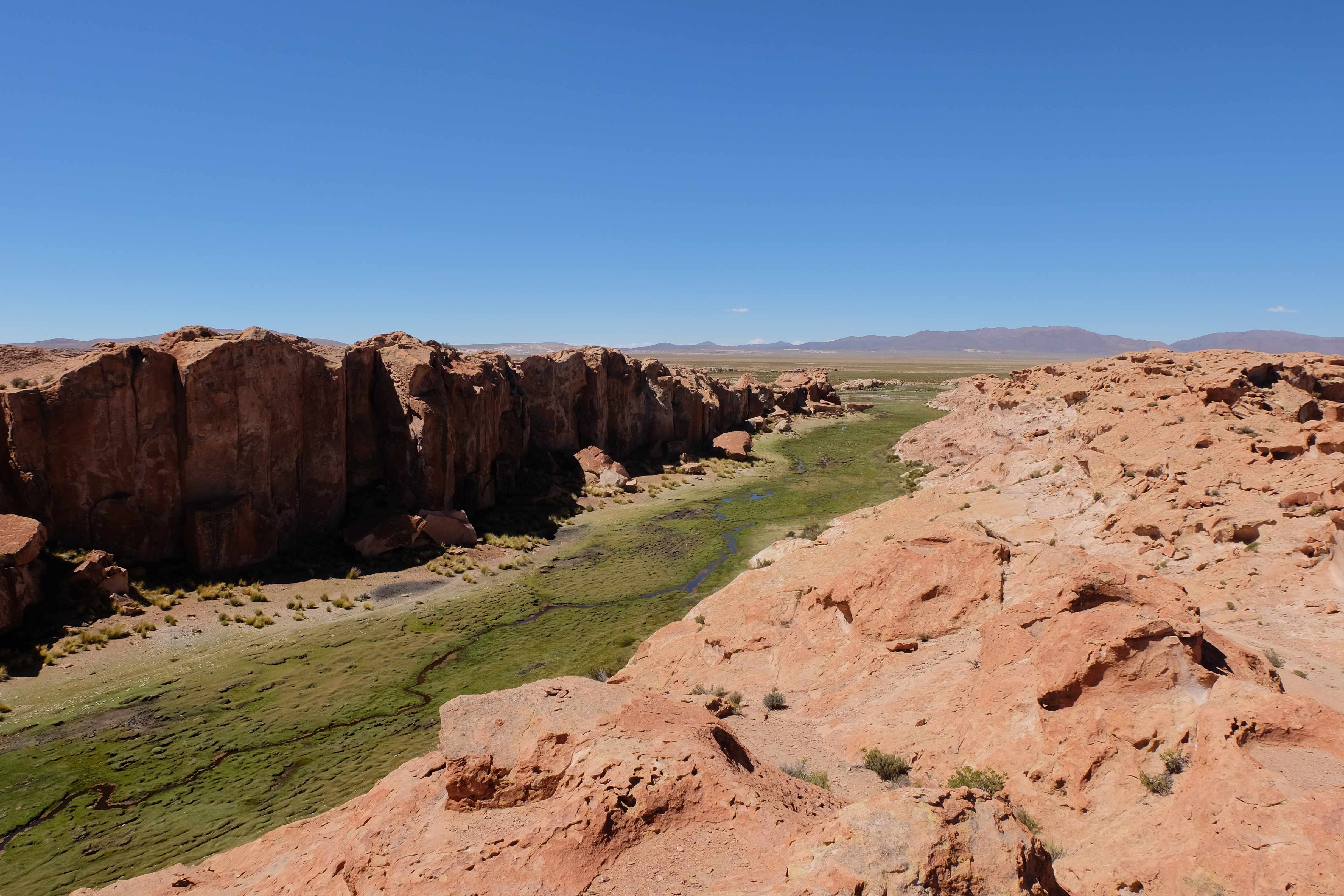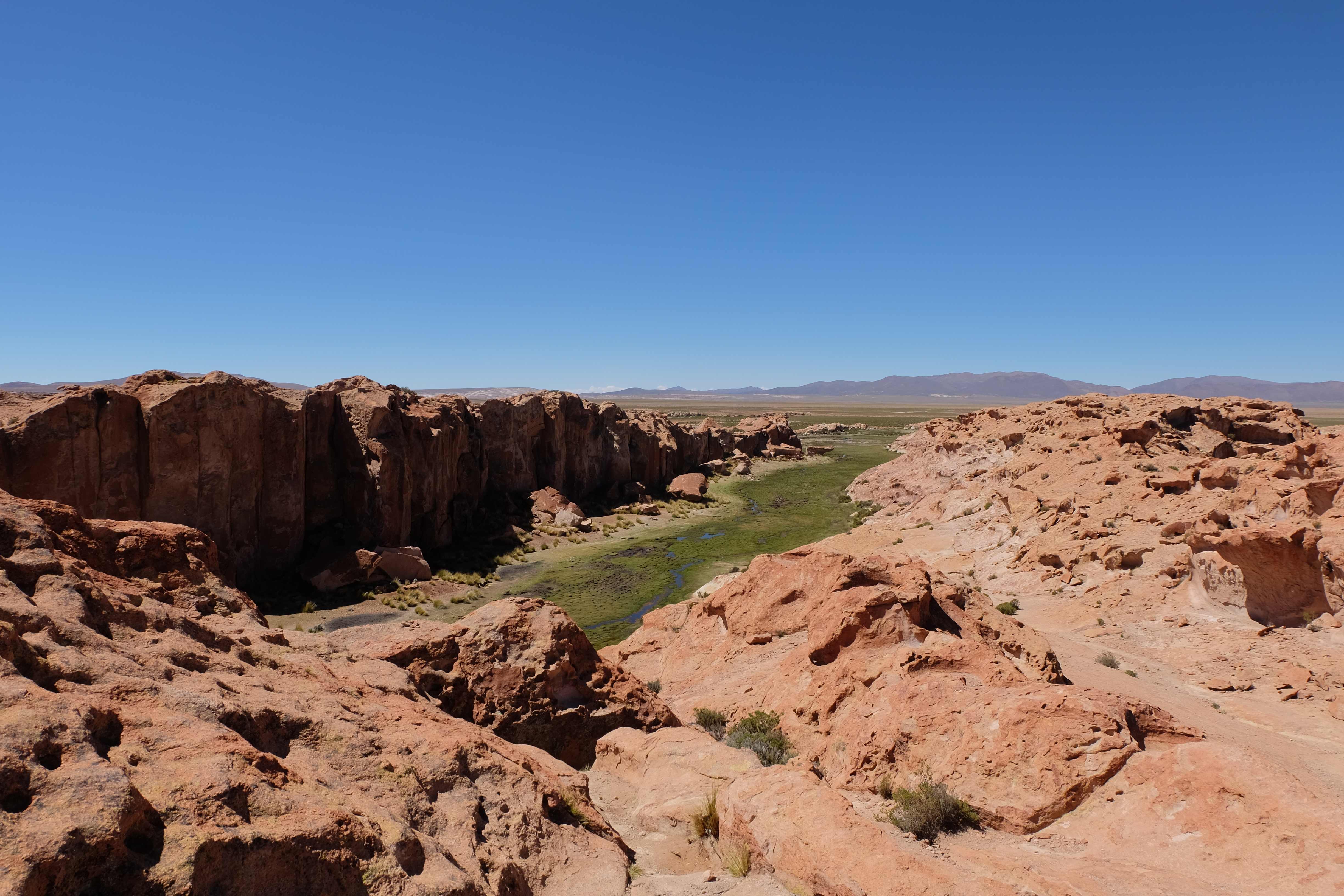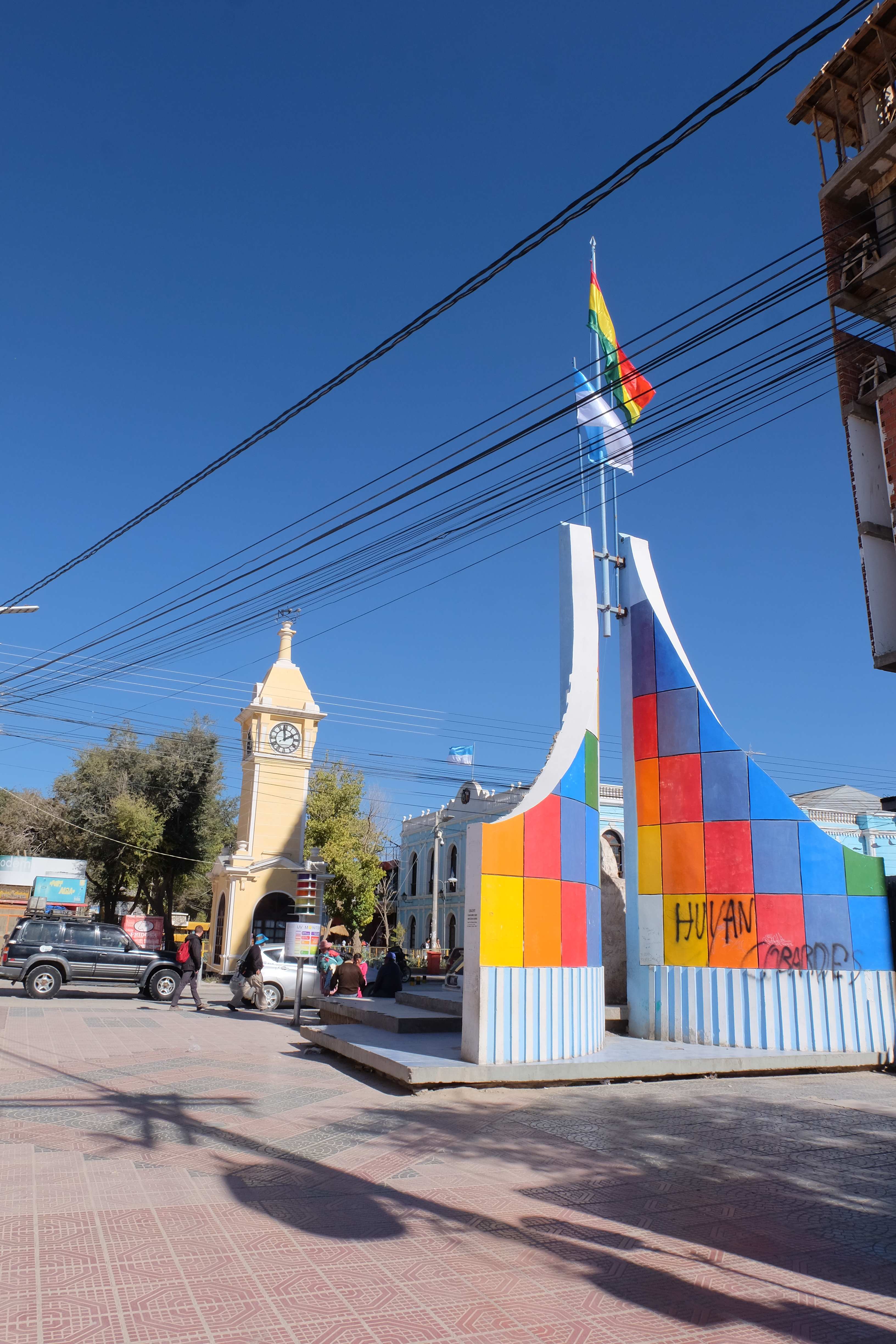 Brrrrrr und Zzzzzzzz… Übersetzung: in Decken eingemummt um der Kälte nächtlicher Busreisen durch die Atacama-Wüste trotzen zu können machten wir die Augen zu, verstellten unsere Rückenlehne im Versuch einer horizontalen Stellung nachzuahmen und schliefen totmüde ein. Bye bye Chile, hallo Bolivien! Oder so dachten wir zumindest, bis wir an der Grenze ankamen. Während es auf der chilenischen Seite relativ unkompliziert zu- und herging (die Chilenen waren einfach glücklich uns loszuwerden!) :-), schienen die Bolivianer etwas pingeliger zu sein. Der gesamte Bus musste geleert werden, jeder musste seine Gepäcksstücke selber zu einer Scanner-Maschine tragen und sie anschliessend (falls nichts Aussergewöhnliches detektiert wurde) wieder in den Bus platzieren. Darauf folgte die normale Passkontrolle. Ausser dass es ziemlich aufwändig war, kam uns allerdings nichts komisch vor. Bis ich dran kam und voller Freude dem Zollbeamten meinen Pass hinstreckte. Dieser nahm ihn, studierte ihn, als hätte er gerade einen Brief aus dem All in der Hand gehabt, starrte seinen Monitor an, analysierte erneut meinen Pass, diesmal aber so genau, dass ich dachte, er würde bald aufstehen, Handschuhe anlegen und diesen in ein Labor zu weiteren Untersuchungen bringen – und sprach: „sie brauchen ein Visum!“ Hääää? Wie bitte? Nun war ich diejenige, die eine ausserirdische Nachricht aus dem All erhielt. „Sie brauchen ein Visum, Sie können nicht einreisen!“ wiederholte er bestätigend, wobei ich dann vermutlich erst anfing das gesamte Spektrum an Temperaturen im Körper zu spüren – und zwar gleichzeitig – und kurz davor war, in Panik zu geraten. In meiner Naivität entgegnete ich: „Rumänien ist aber ein EU-Mitglied, dies bereits seit 2007“… und fing noch an dem Typen bilateral-orientierte Zolllektionen zu erteilen: „bis 2017 hatten wir und Bulgarien zwar einen Sonderstatus, ab 2017 jedoch geniessen wir sämtliche Privilegien und haben den genau gleichen Status wie die EU-Gründerstaaten…“ Hach, dachte ich mir, nun sollte er es endlich schnallen, dass er einen Fehler gemacht hatte! 🙂 Von der anderen Seite kam jedoch nur ein noch lauteres und etwas genervtes: „Sie brauchen ein Visum, Sie sind Gruppe 2!“ Dann sah ich das an seinem Schalter angeklebte, bereits abgenutzte und nicht mehr so aktuell scheinende Papier, welches sämtliche Länder in Visumsgruppen unterteilte. Während die Schweiz sowie sämtliche EU-Länder in der glücklichen und hochrängigen Gruppe 1 waren und somit mit lediglich einem Lächeln einreisen konnten, befand sich Rumänien – und siehe da, Bulgarien – in der weniger privilegierten 2. Gruppe, die eines im Voraus erhaltenen Visums bedurfte oder aber dieses vor Ort für einen Schnäppchenpreis von 100 USD beantragen konnte. Meine Vermutung? Der Wechsel des internationalen Status für Rumänien und Bulgarien fand vor zu kurzer Zeit statt, als dass alle Zollpunkte in abgelegenen Regionen Südamerikas davon Wind bekamen, da diese vermutlich einmal alle 2 Jahre ihre Papiere neu ausdrucken und ihr System aktualisieren. 🙂