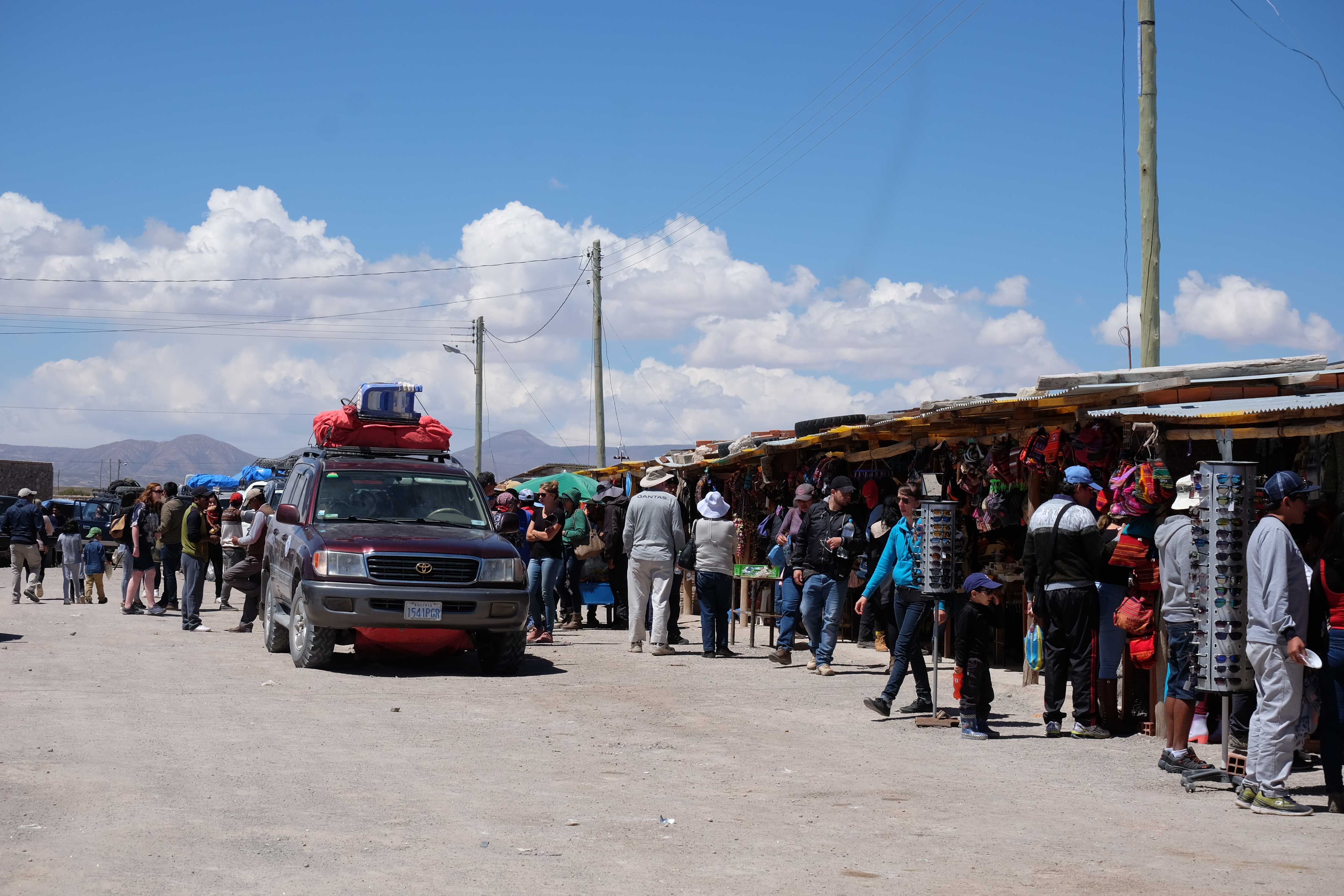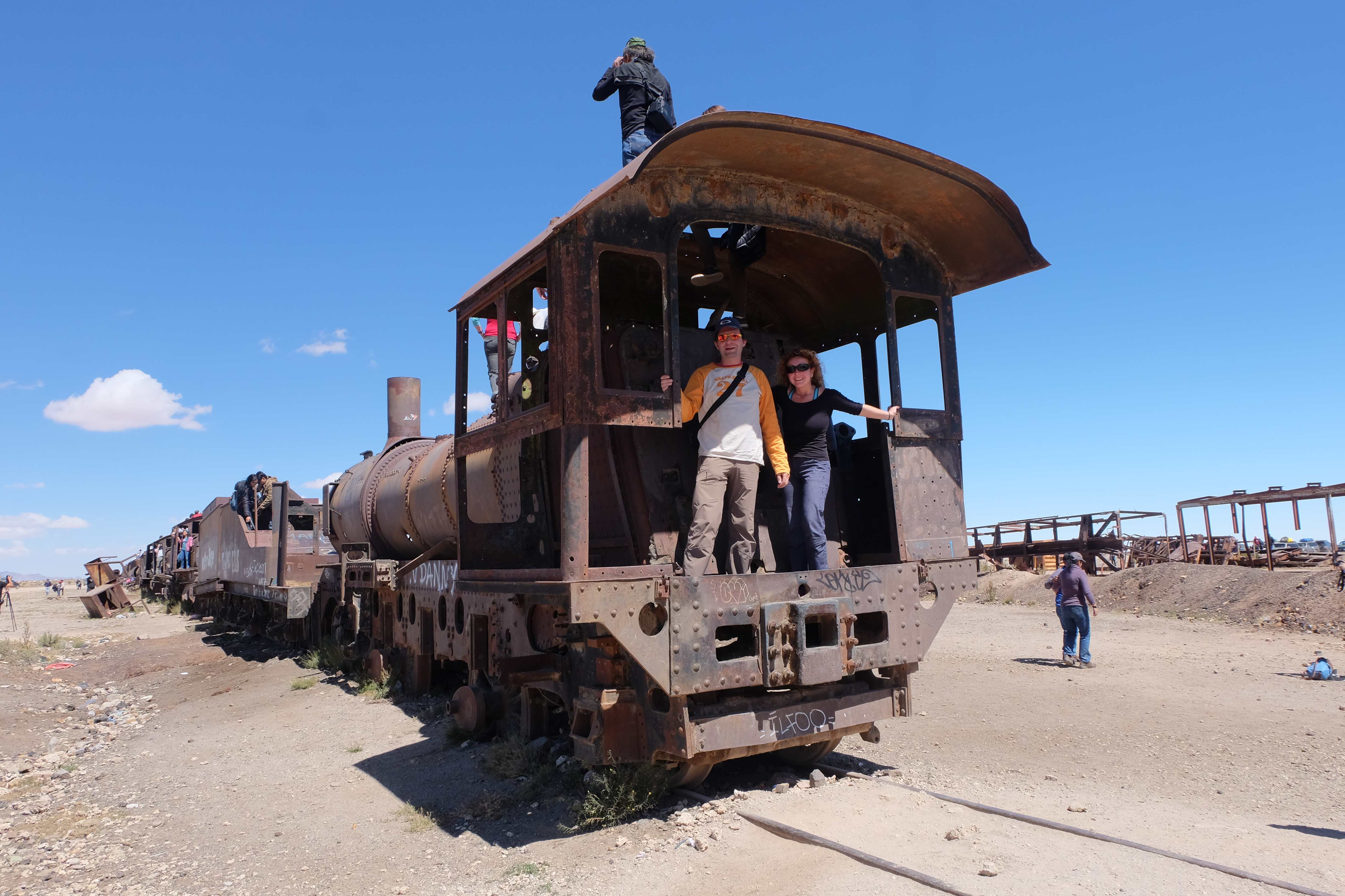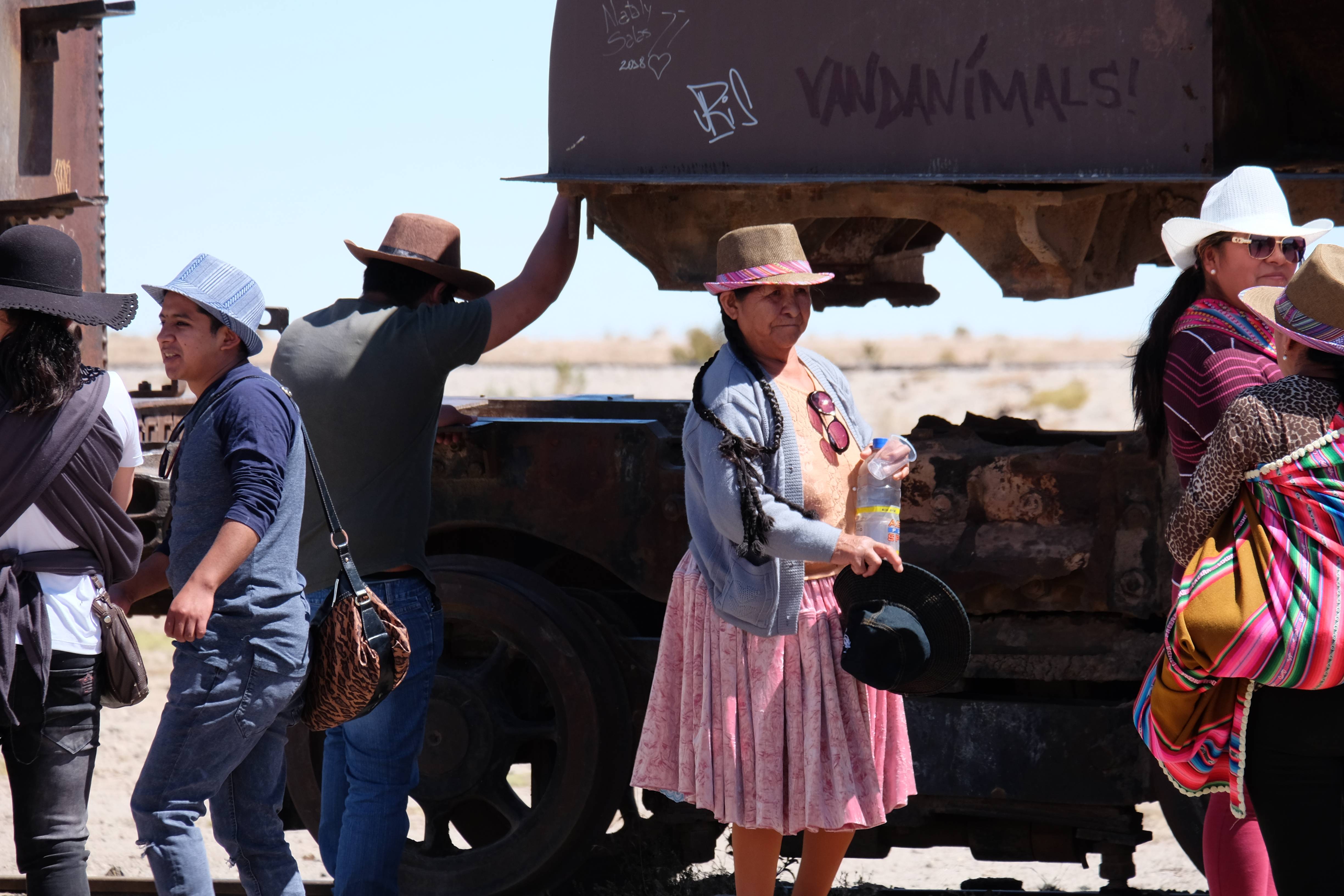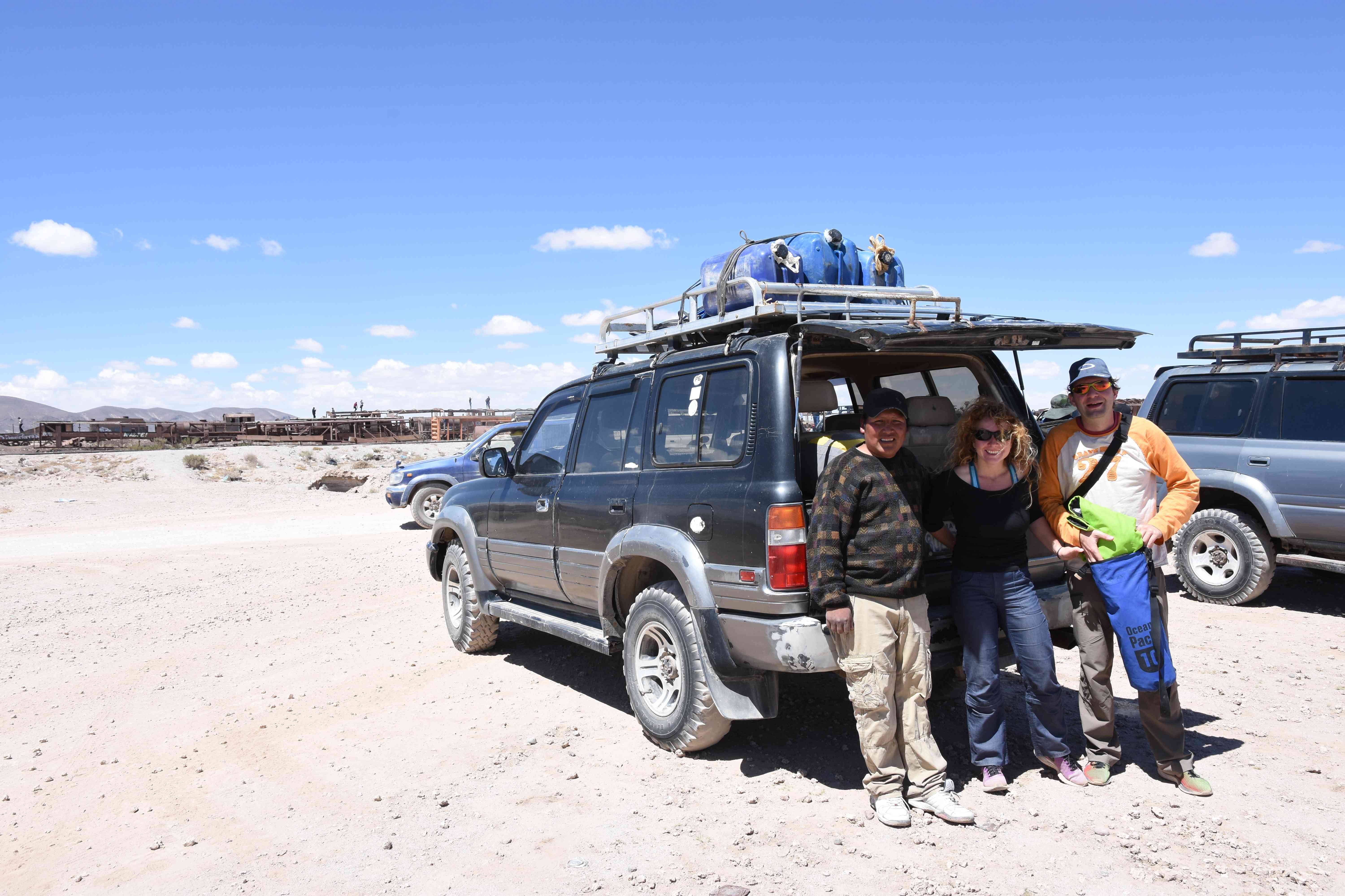 Unsere Tour fing sehr gemütlich an, wir lernten unseren Chauffeur (ein sehr netter Typ) und die anderen 3 Mitreisenden kennen – und dabei blieb es plus minus während der ganzen Reise: beim ursprünglichen „Hallo“… sagen wir mal so, wir hatten nicht unbedingt die gesprächigsten 3-Läuse-Tourkollegen der Welt! 🙂 Der erste Halt war ein Zug-Friedhof – zwar cool, aber ohne Wow-Effekt – wo alte Minen- und Passagierenfahrzeuge gelagert wurden, sowie ein Halt in einem Dorf mit traditionellen Produkten. Na ja, Touristen-Quatsch dachten wir uns… und hofften, dass es im Laufe des Tages besser werden sollte!