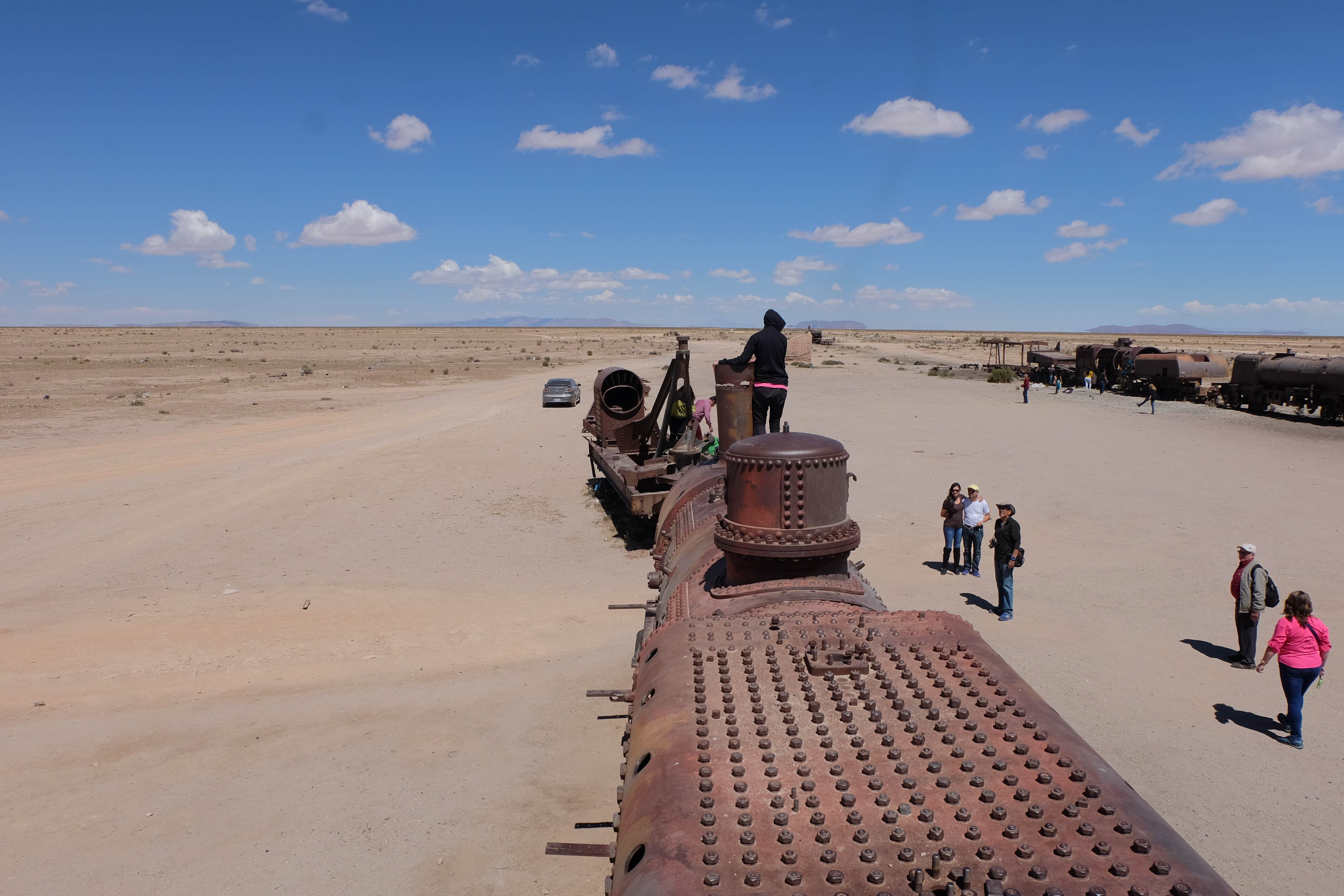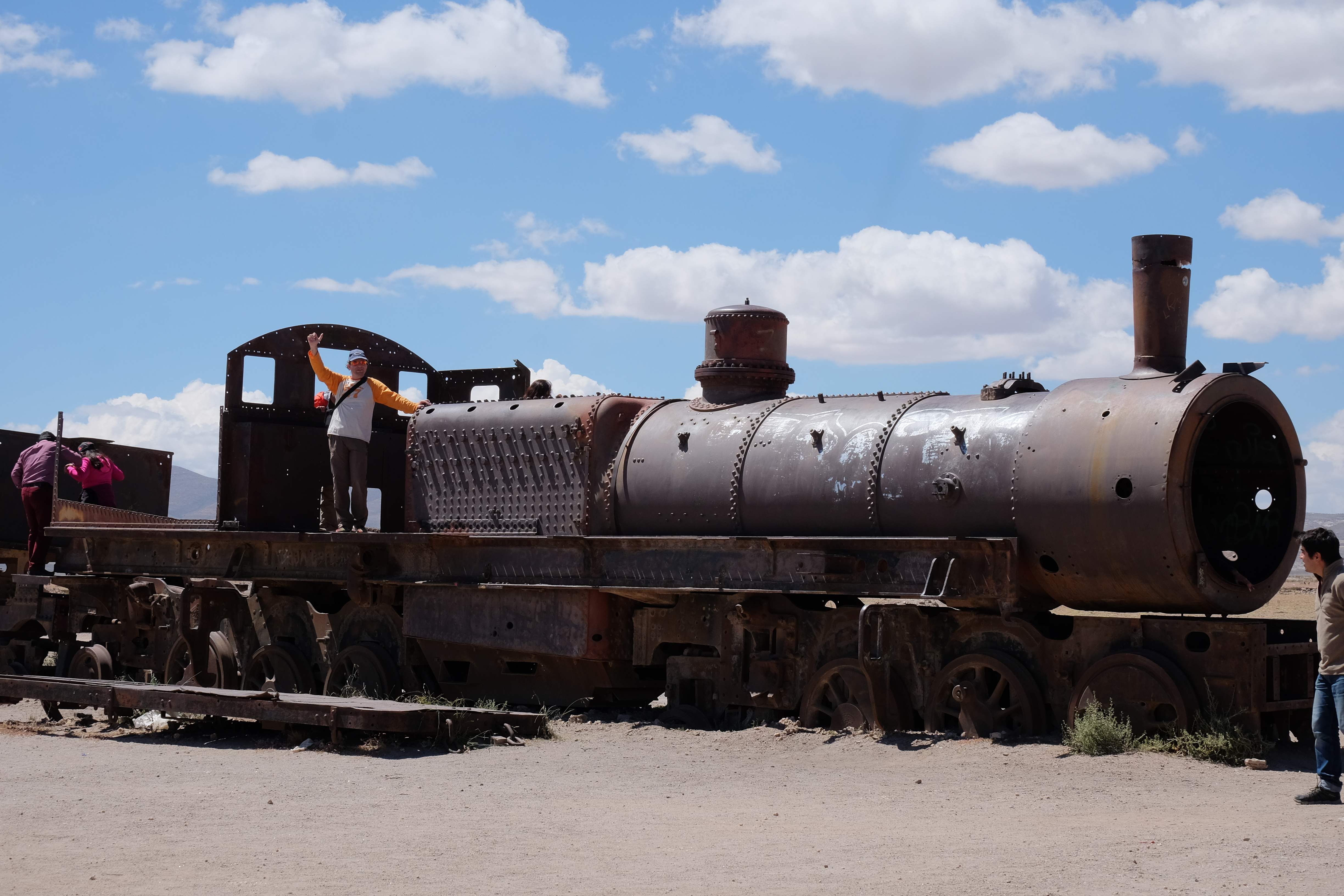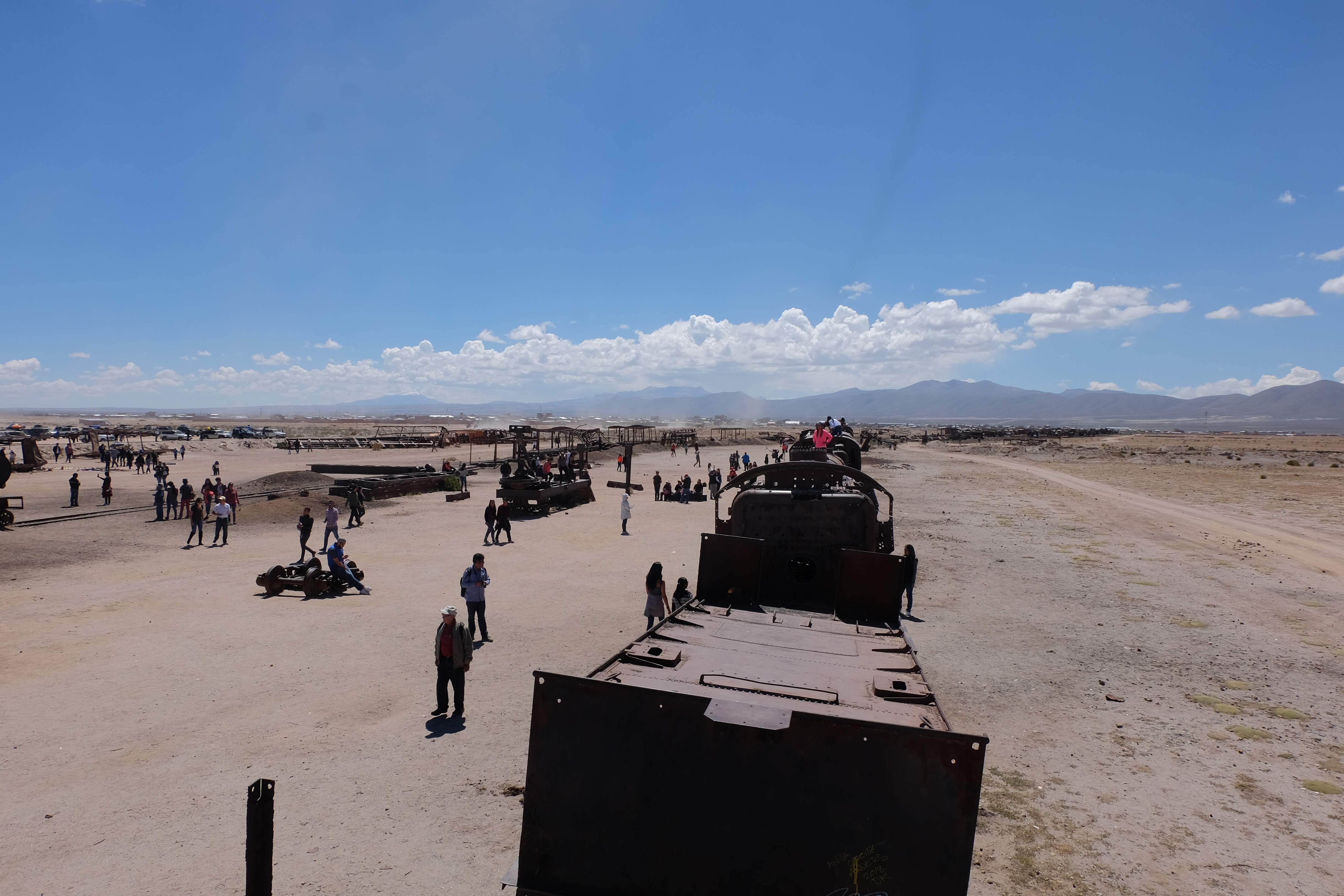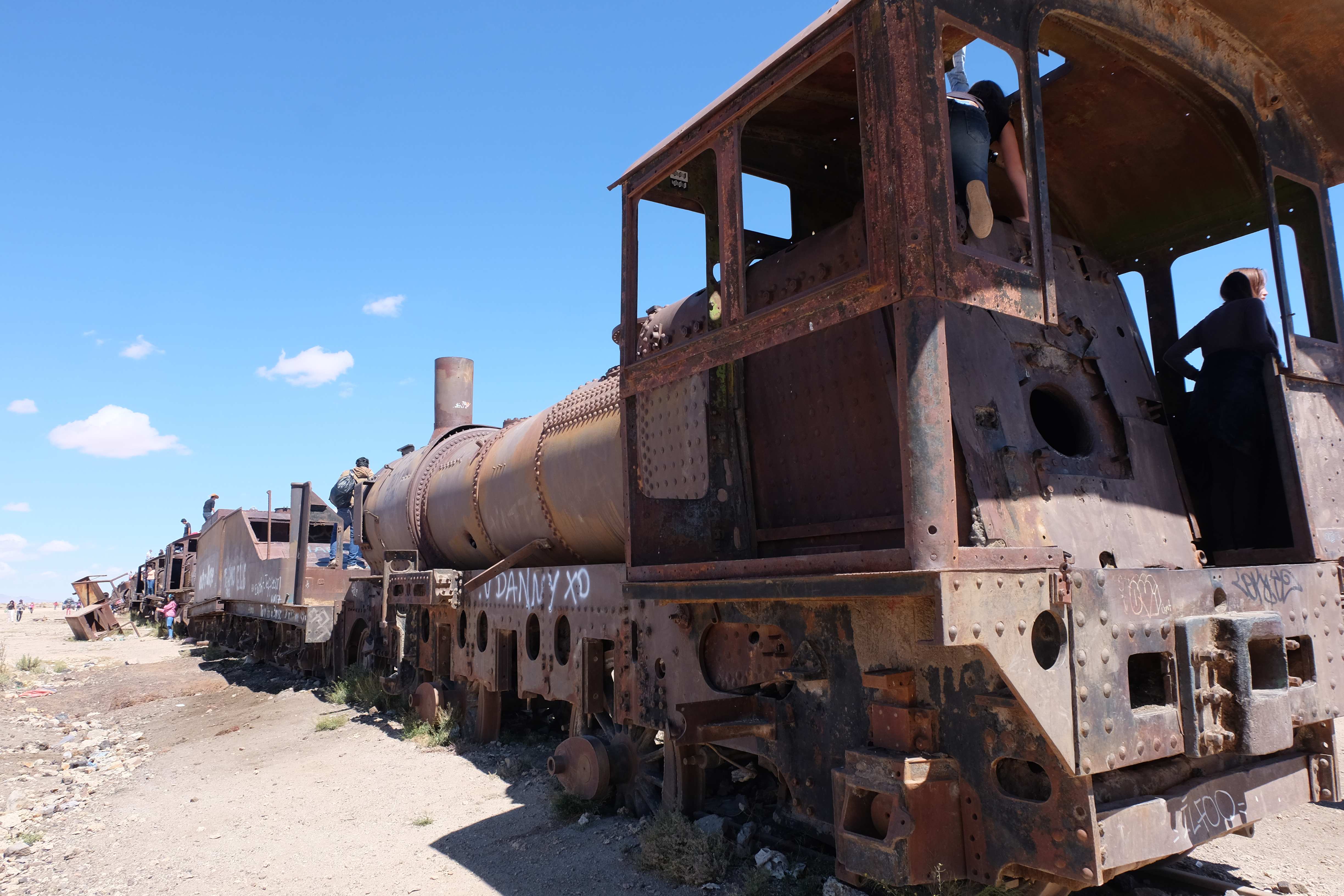 Unsere Tour fing sehr gemütlich an, wir lernten unseren Chauffeur (ein sehr netter Typ) und die anderen 3 Mitreisenden kennen – und dabei blieb es plus minus während der ganzen Reise: beim ursprünglichen „Hallo“… sagen wir mal so, wir hatten nicht unbedingt die gesprächigsten 3-Läuse-Tourkollegen der Welt! 🙂 Der erste Halt war ein Zug-Friedhof – zwar cool, aber ohne Wow-Effekt – wo alte Minen- und Passagierenfahrzeuge gelagert wurden, sowie ein Halt in einem Dorf mit traditionellen Produkten. Na ja, Touristen-Quatsch dachten wir uns… und hofften, dass es im Laufe des Tages besser werden sollte!