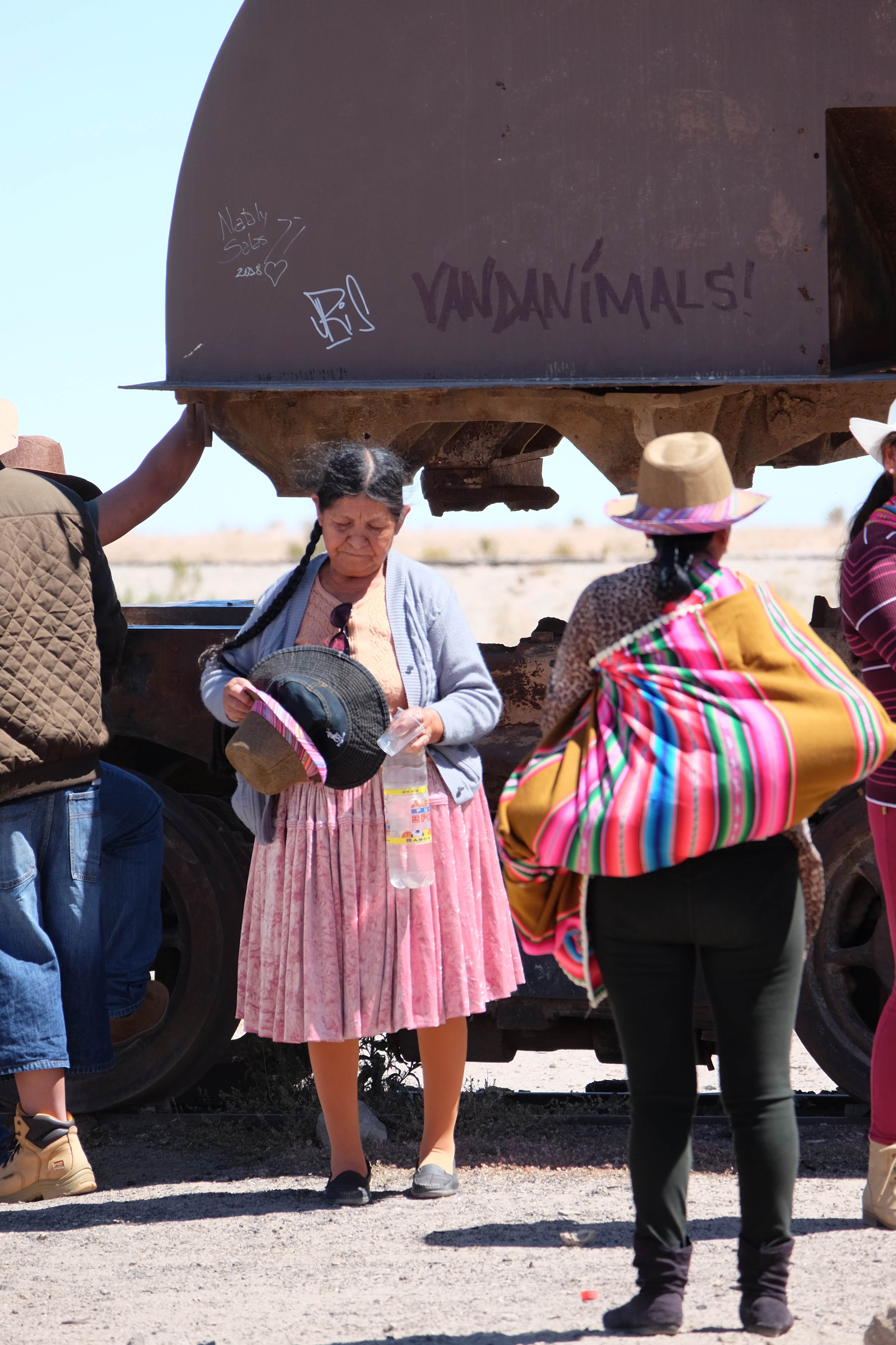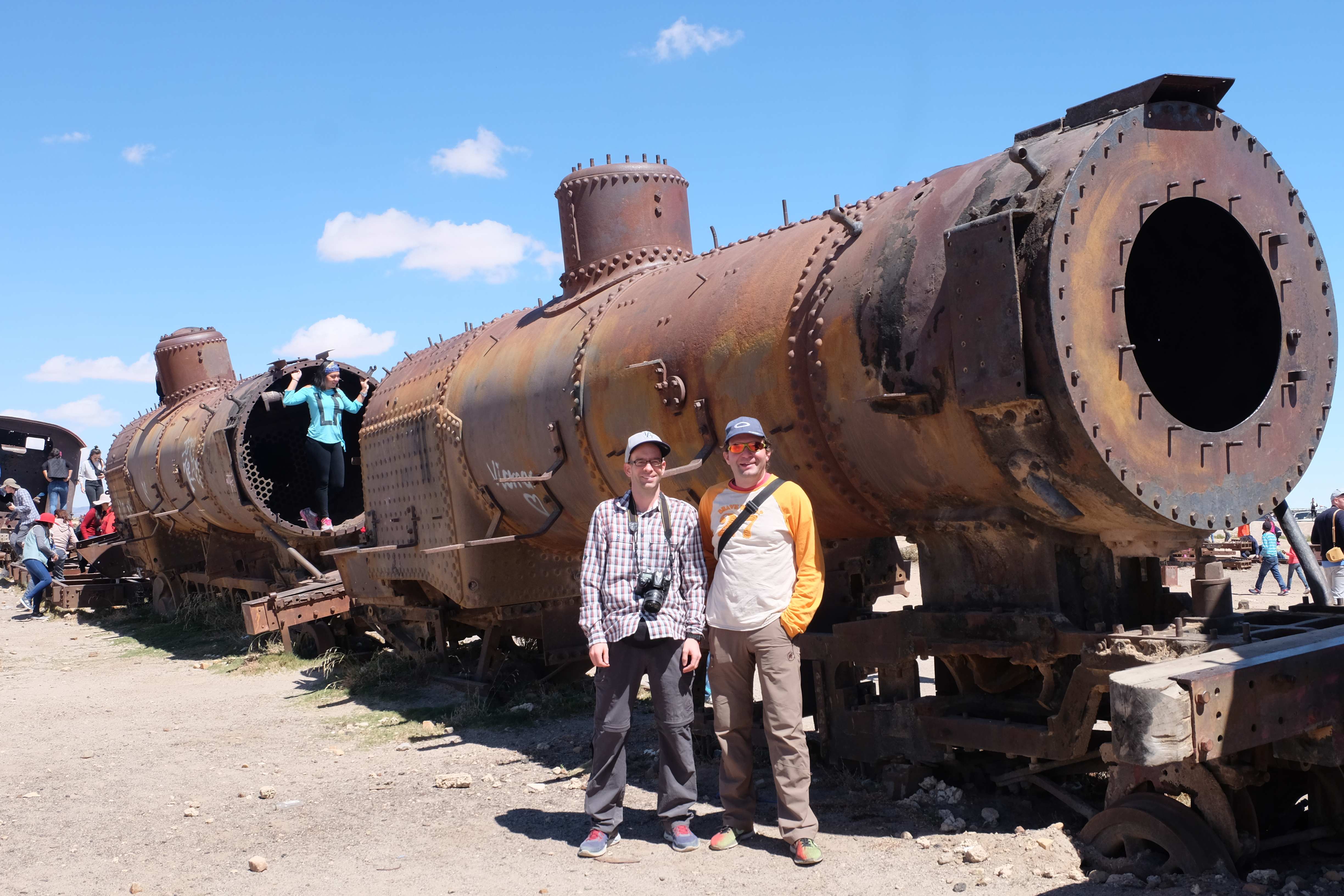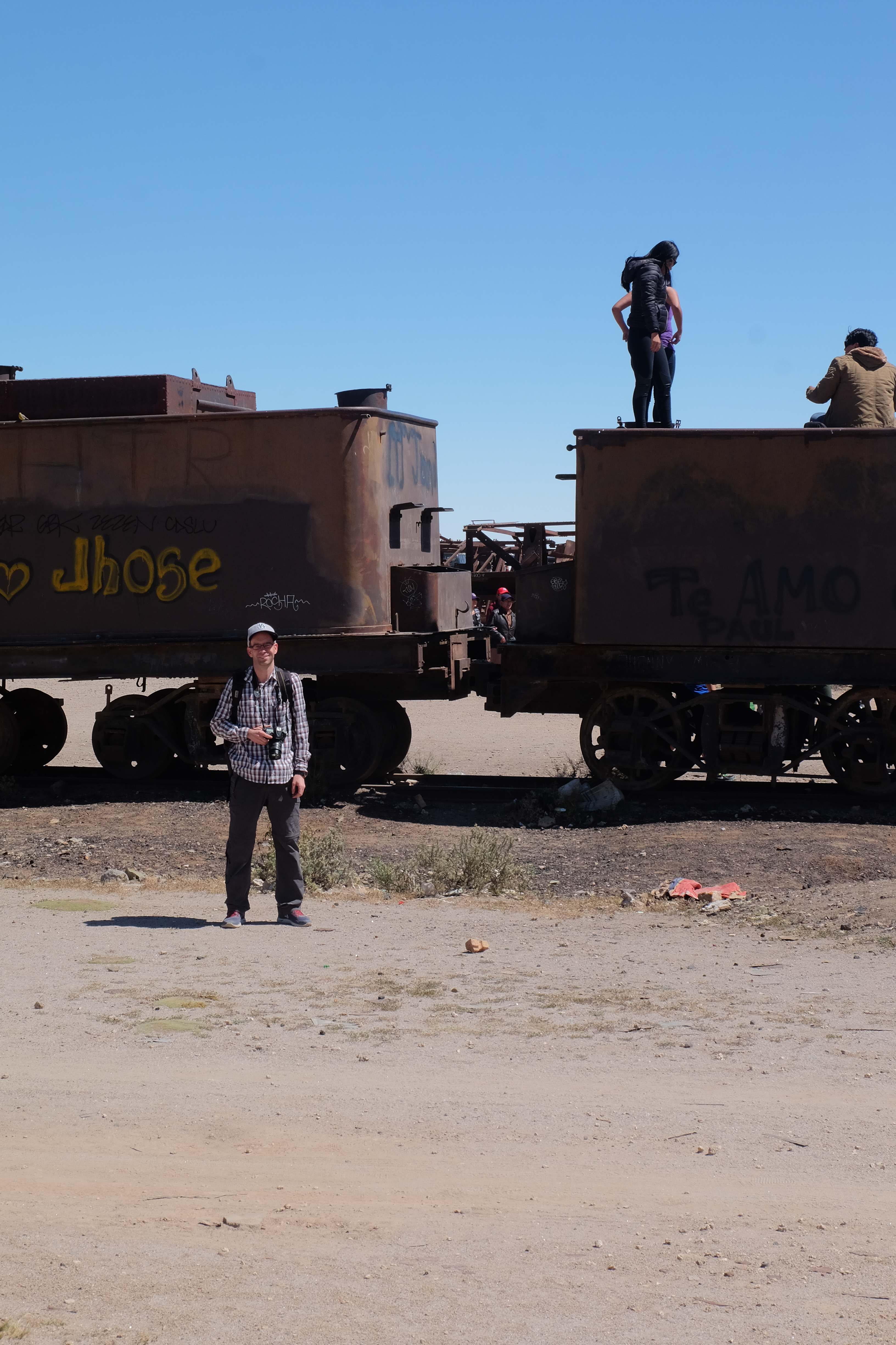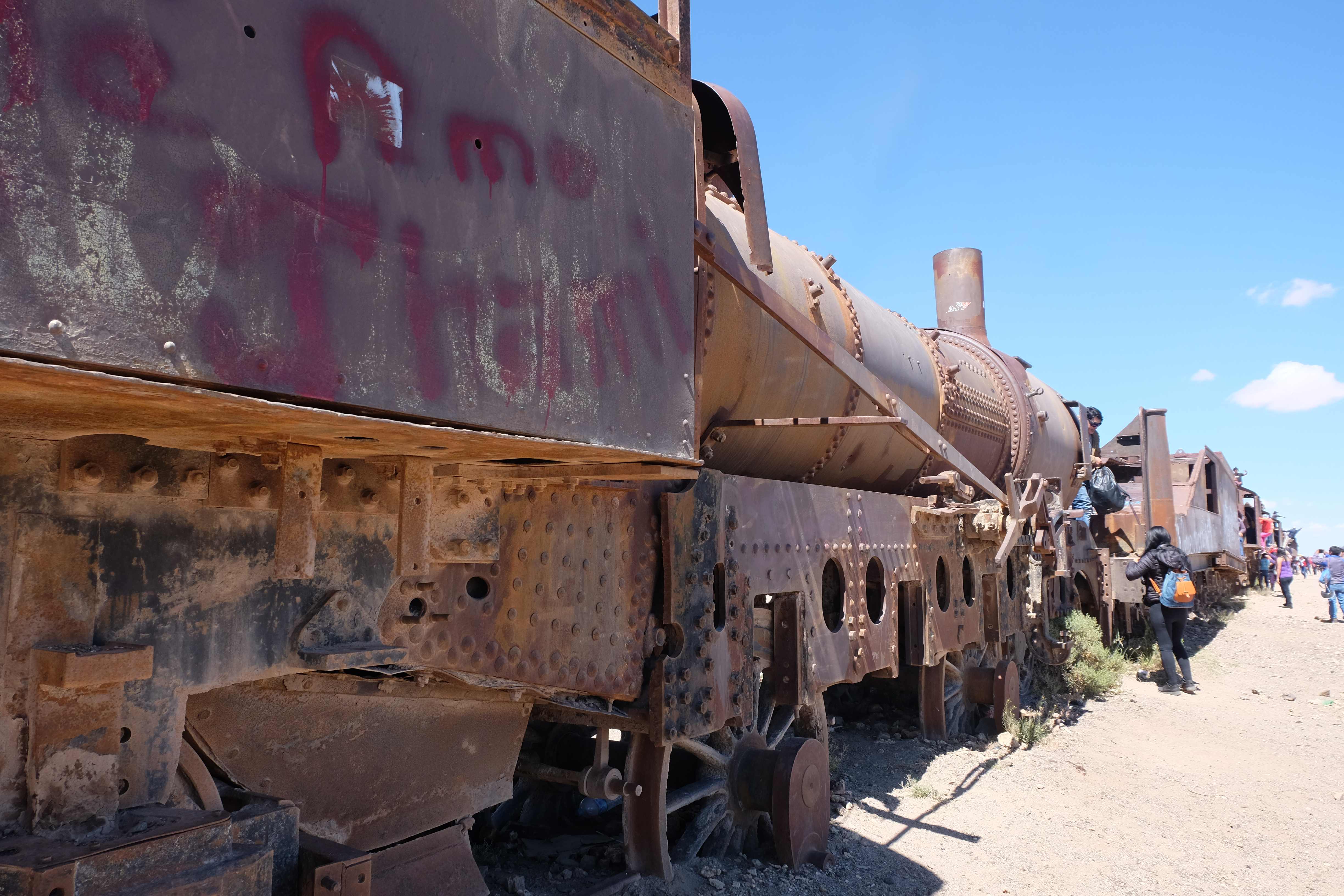 Unsere Tour fing sehr gemütlich an, wir lernten unseren Chauffeur (ein sehr netter Typ) und die anderen 3 Mitreisenden kennen – und dabei blieb es plus minus während der ganzen Reise: beim ursprünglichen „Hallo“… sagen wir mal so, wir hatten nicht unbedingt die gesprächigsten 3-Läuse-Tourkollegen der Welt! 🙂 Der erste Halt war ein Zug-Friedhof – zwar cool, aber ohne Wow-Effekt – wo alte Minen- und Passagierenfahrzeuge gelagert wurden, sowie ein Halt in einem Dorf mit traditionellen Produkten. Na ja, Touristen-Quatsch dachten wir uns… und hofften, dass es im Laufe des Tages besser werden sollte!