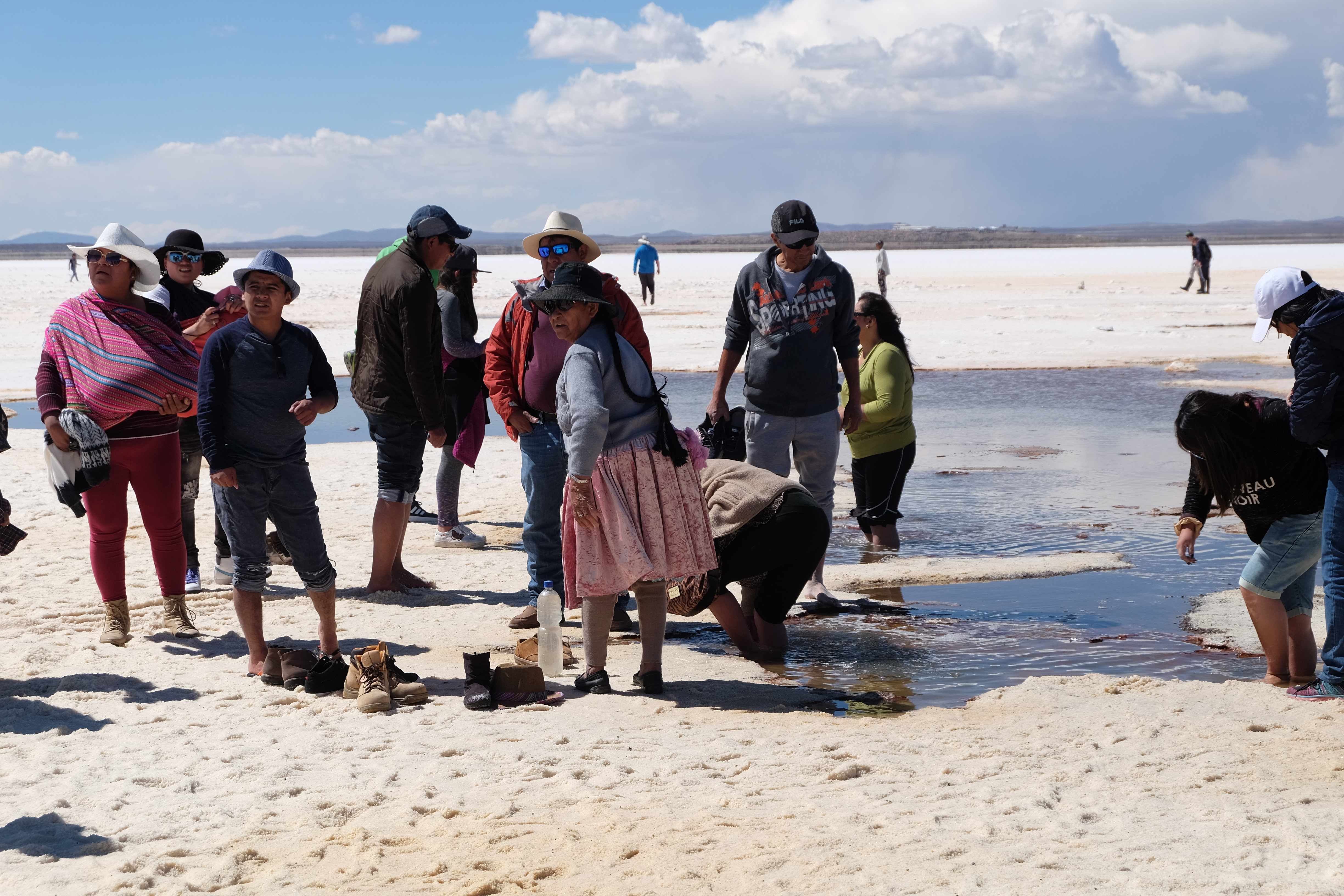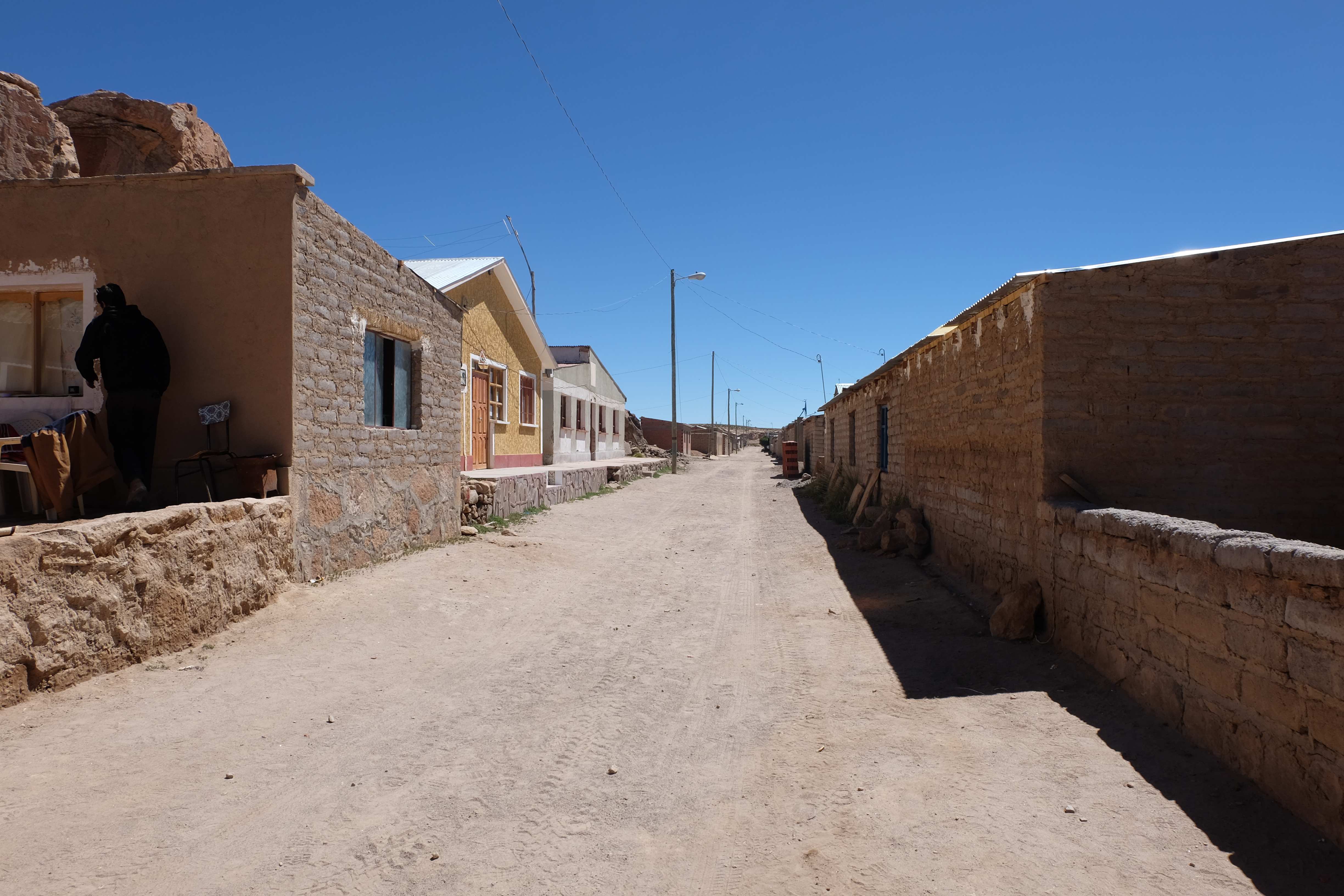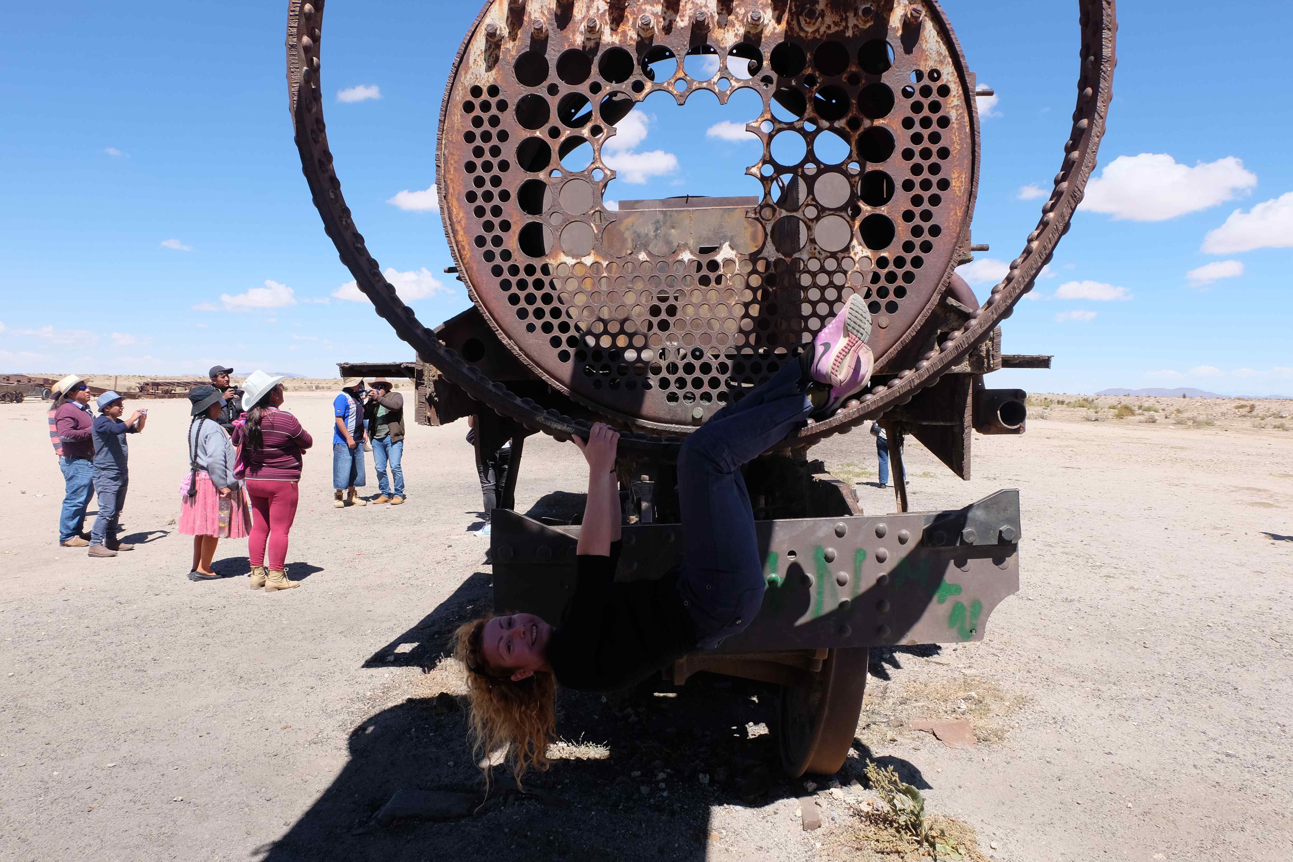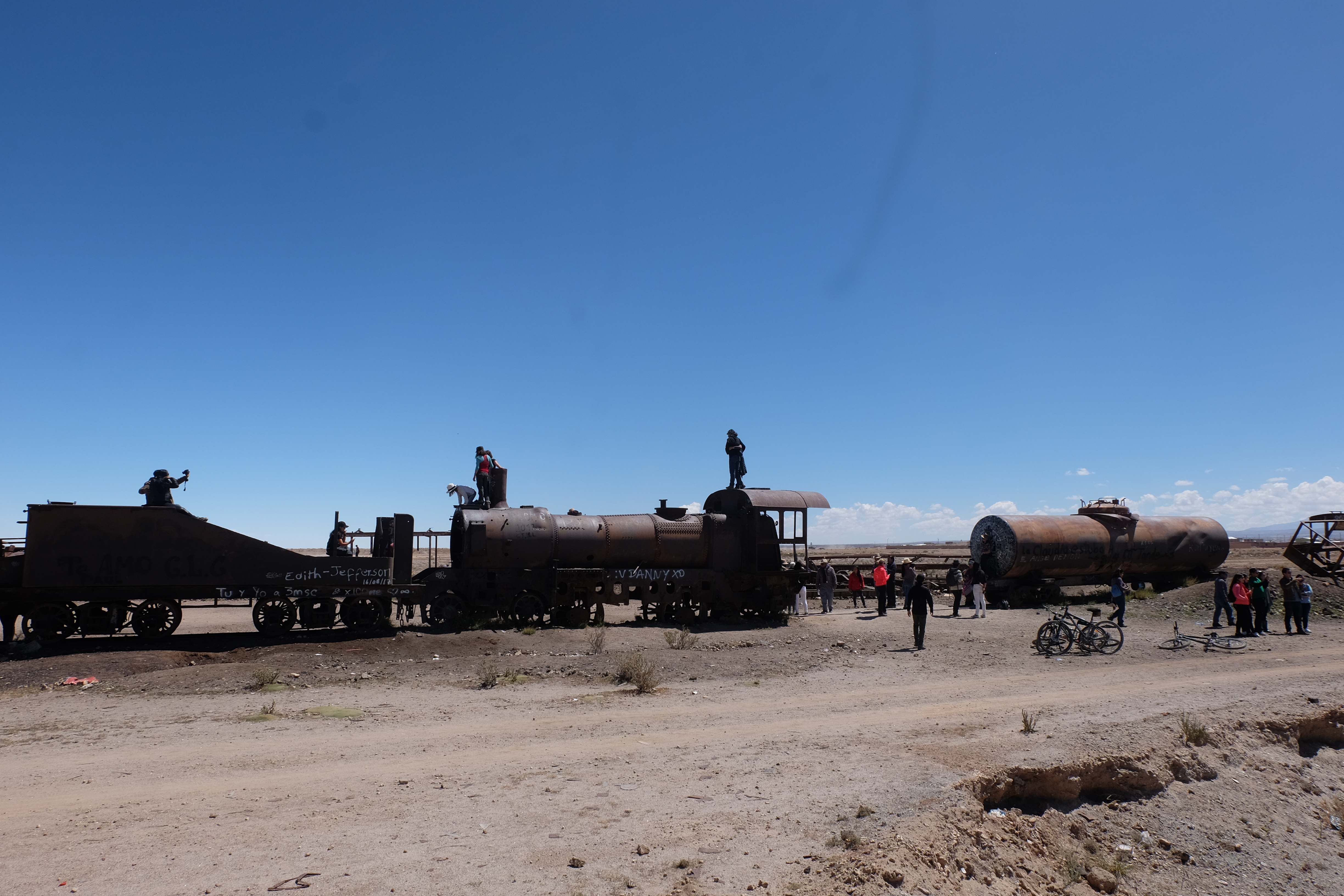 Unsere Tour fing sehr gemütlich an, wir lernten unseren Chauffeur (ein sehr netter Typ) und die anderen 3 Mitreisenden kennen – und dabei blieb es plus minus während der ganzen Reise: beim ursprünglichen „Hallo“… sagen wir mal so, wir hatten nicht unbedingt die gesprächigsten 3-Läuse-Tourkollegen der Welt! 🙂 Der erste Halt war ein Zug-Friedhof – zwar cool, aber ohne Wow-Effekt – wo alte Minen- und Passagierenfahrzeuge gelagert wurden, sowie ein Halt in einem Dorf mit traditionellen Produkten. Na ja, Touristen-Quatsch dachten wir uns… und hofften, dass es im Laufe des Tages besser werden sollte!