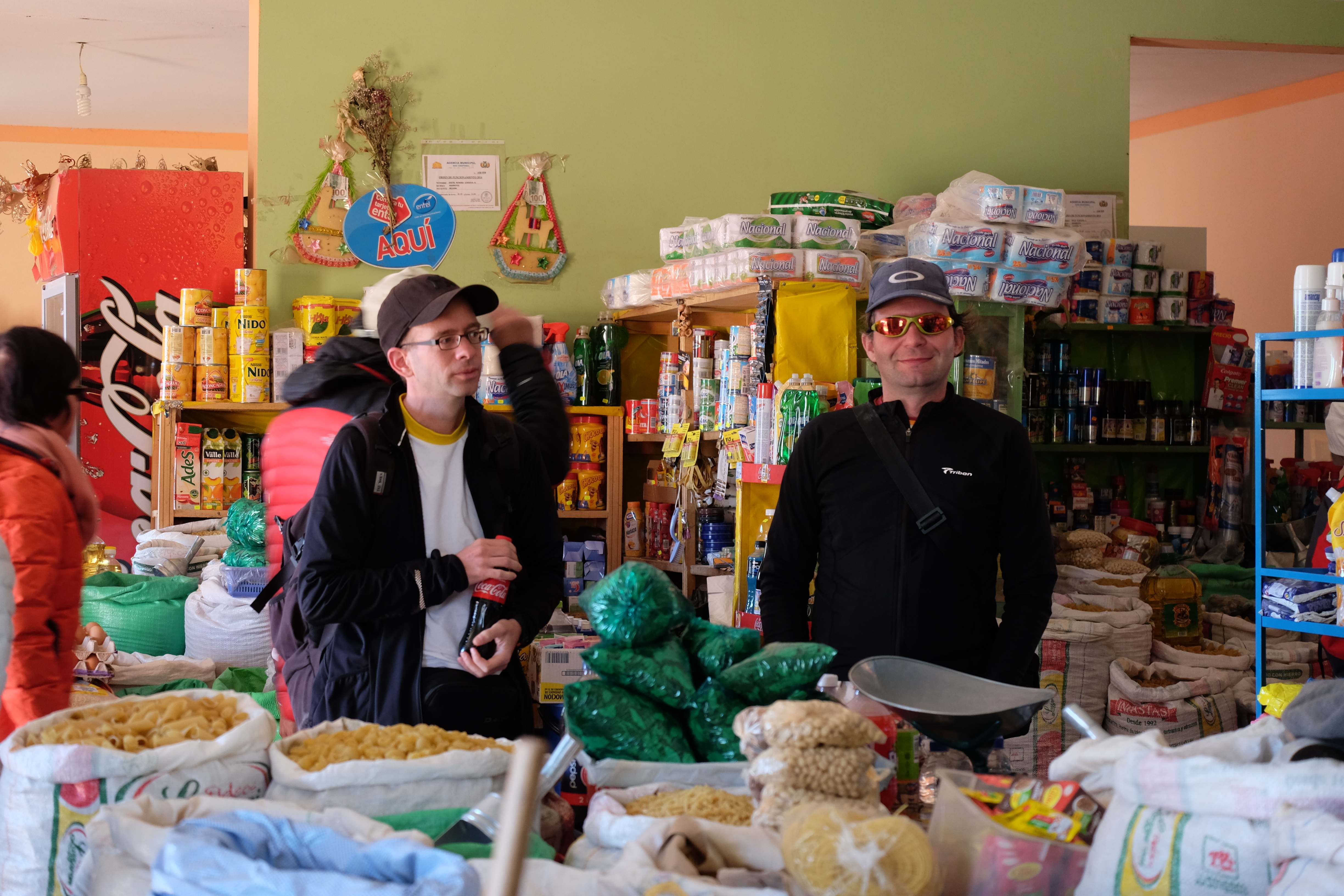 Inainte de a ne cufunda in lumea viselor si de a recupera macar cateva ore de somn, a urmat insa antrenamentul de preinfarct numarul 2 – de parca nu ar fi fost de ajuns cu interdictia de intrare in tara! Ina piticot di Rafi piticut s-au indreptat fain frumos spre bancomatul din sat pentru a scoate ceva banuti. In timp ce lui Rafi ii reusise, Ina piticot scormonise deja prin tot ghiozdanul pentru a-si gasi card-ul pe care parca il inghitise pamantul! Dupa ce m-am linistit putin mi-am dat seama ca nu pamantul, ci bancomatul din Buenos Aires il inghitise! Hmmm, va fi oarecum dificil sa scot bani in Bolivia atata timp cat card-ul meu se afla in Argentina! 🙂 Bancomatele in America de Sud sunt setate intr-un mod foarte periculos pentru uitucii ca si mine: prima data iti vin banii, dupa care chitanta si doar la sfarsit ti se returneaza card-ul, ceea ce inseamna ca este foarte usor (mai ales cand te numesti Ina :-)) sa il uiti acolo. Hmmm… ca norocul ca posta elvetiana este pregatita pentru asemenea clienti uituci si este dispusa sa trimita un nou card la o adresa oarecare in America de Sud. Bucurosi ca am reusit sa trecem si peste acest obstacol, ne-am cufundat in bratele lui Mos Ene…