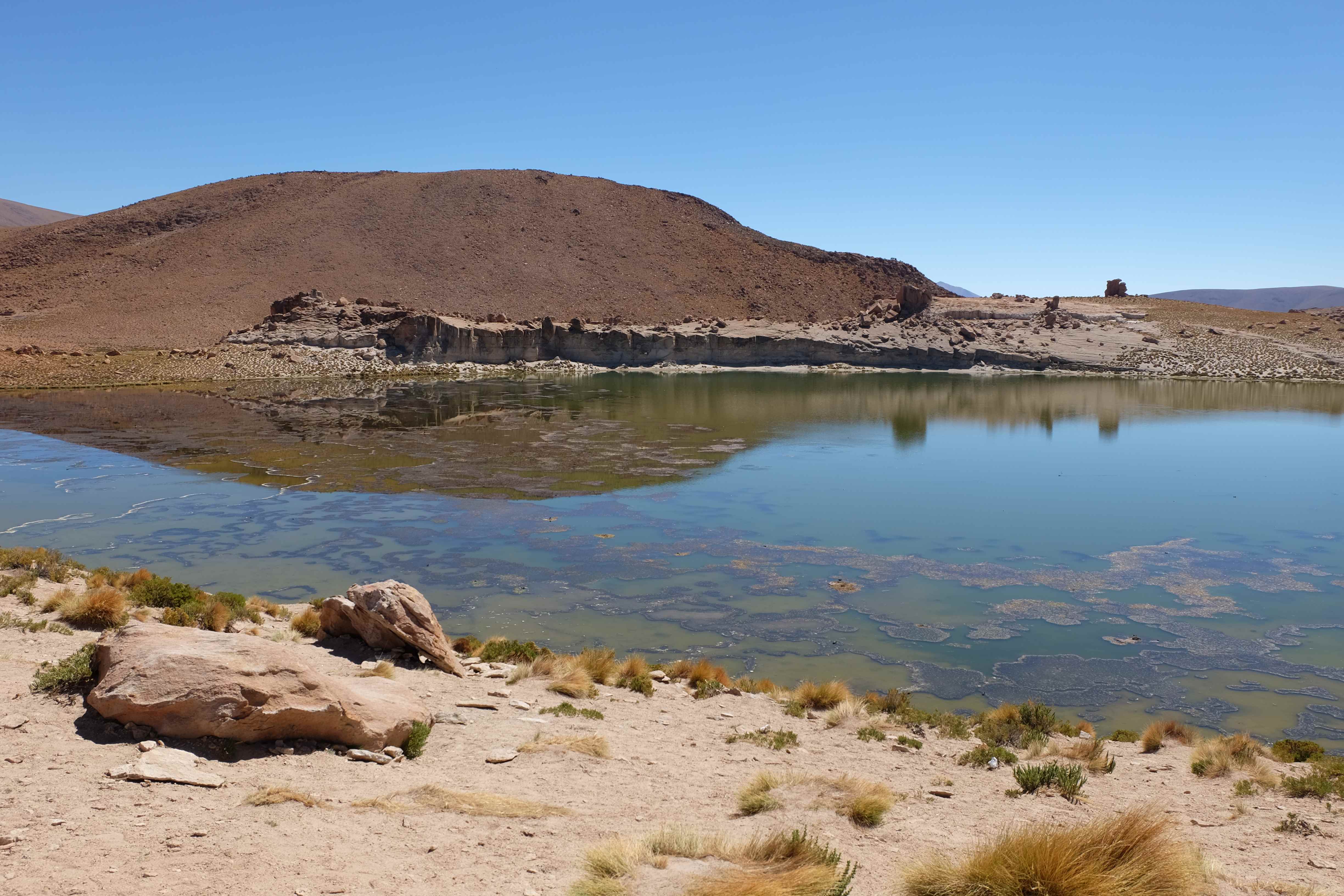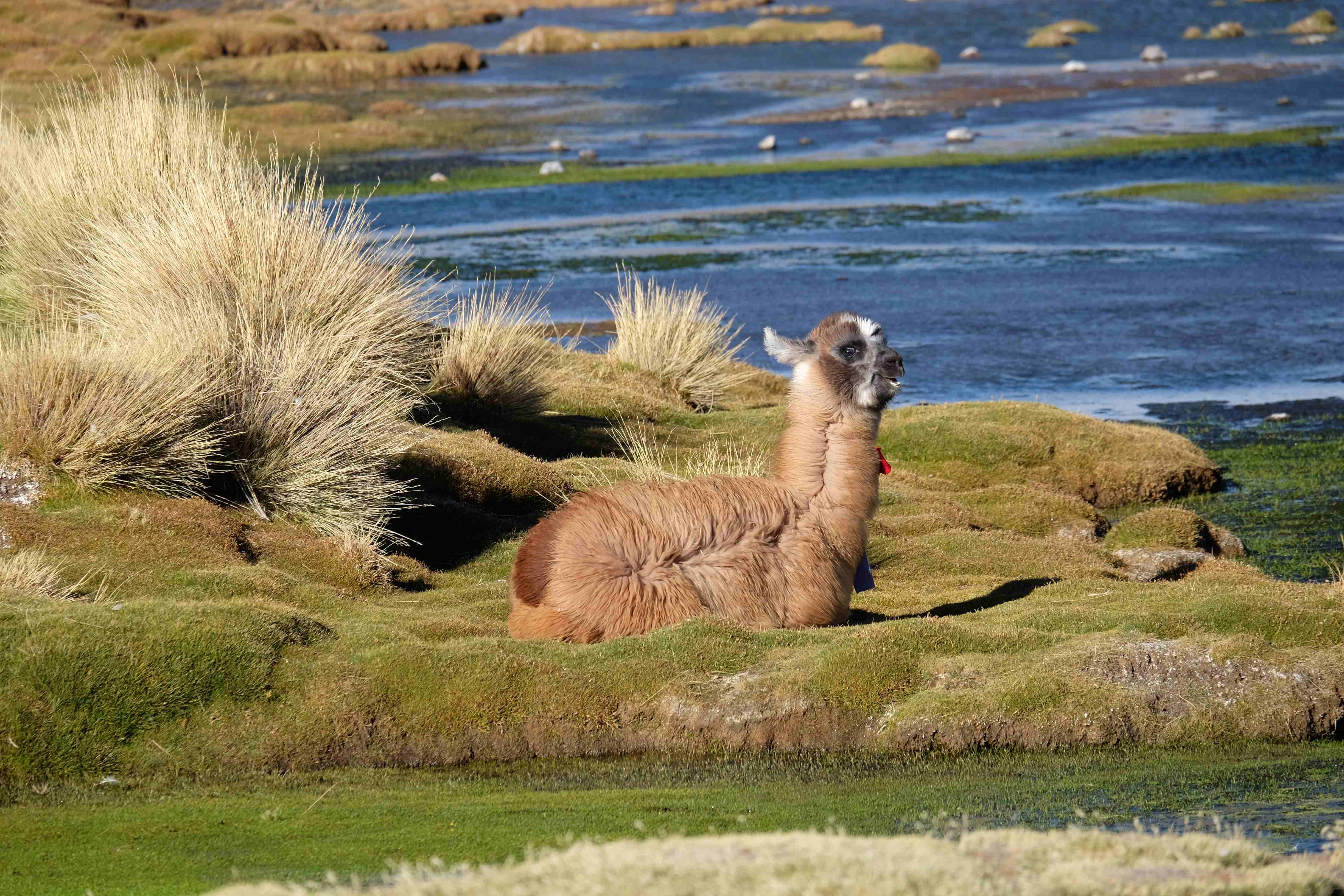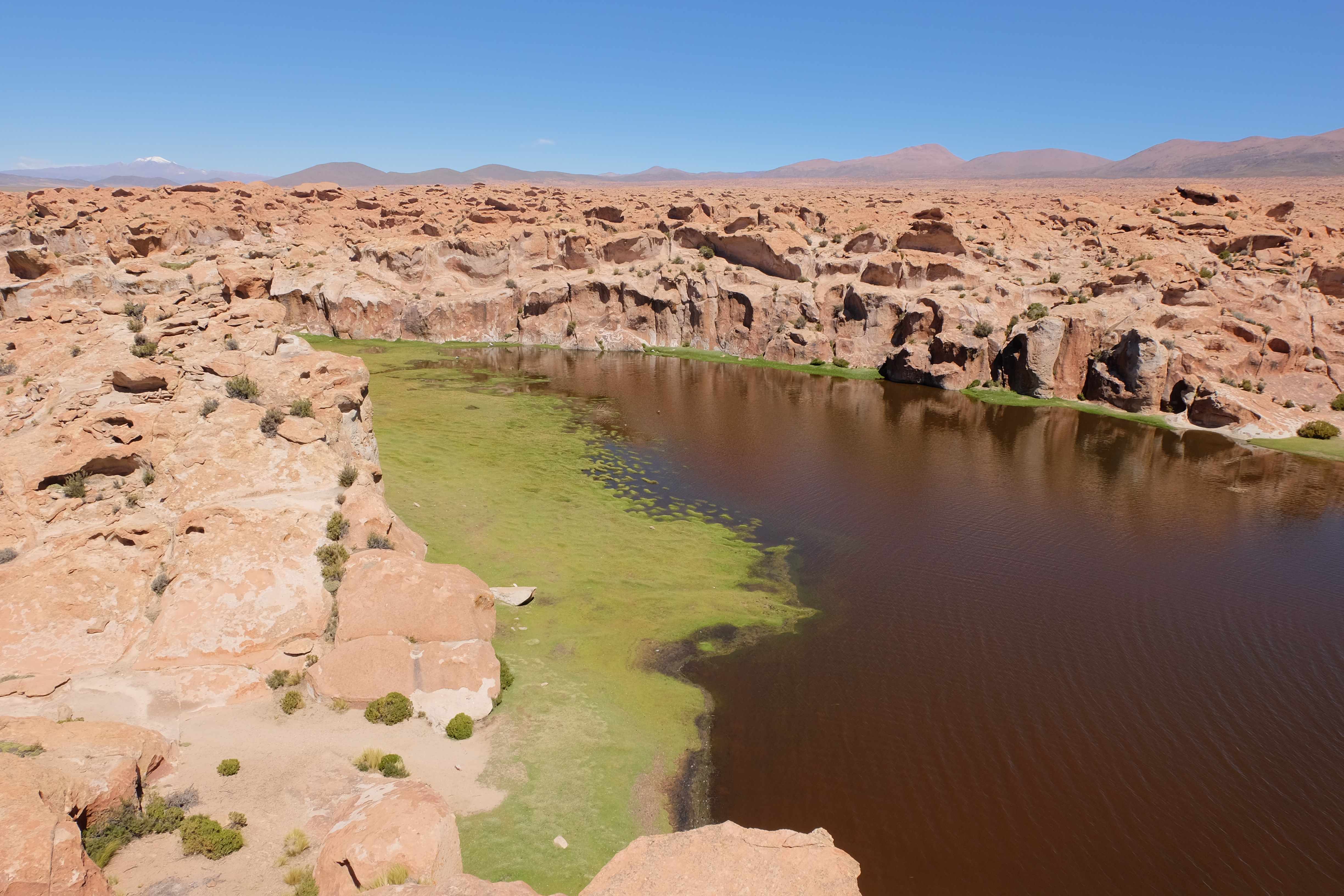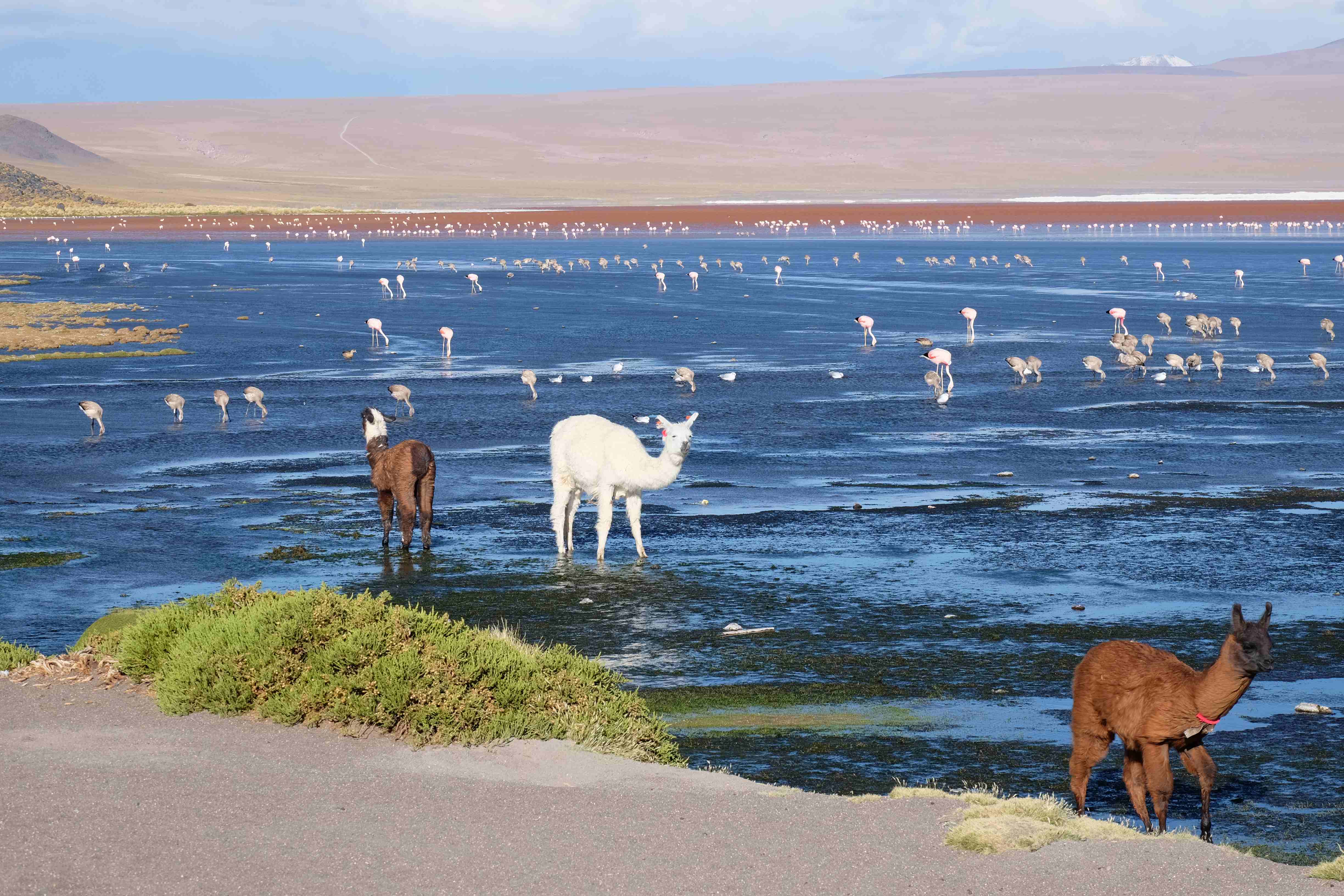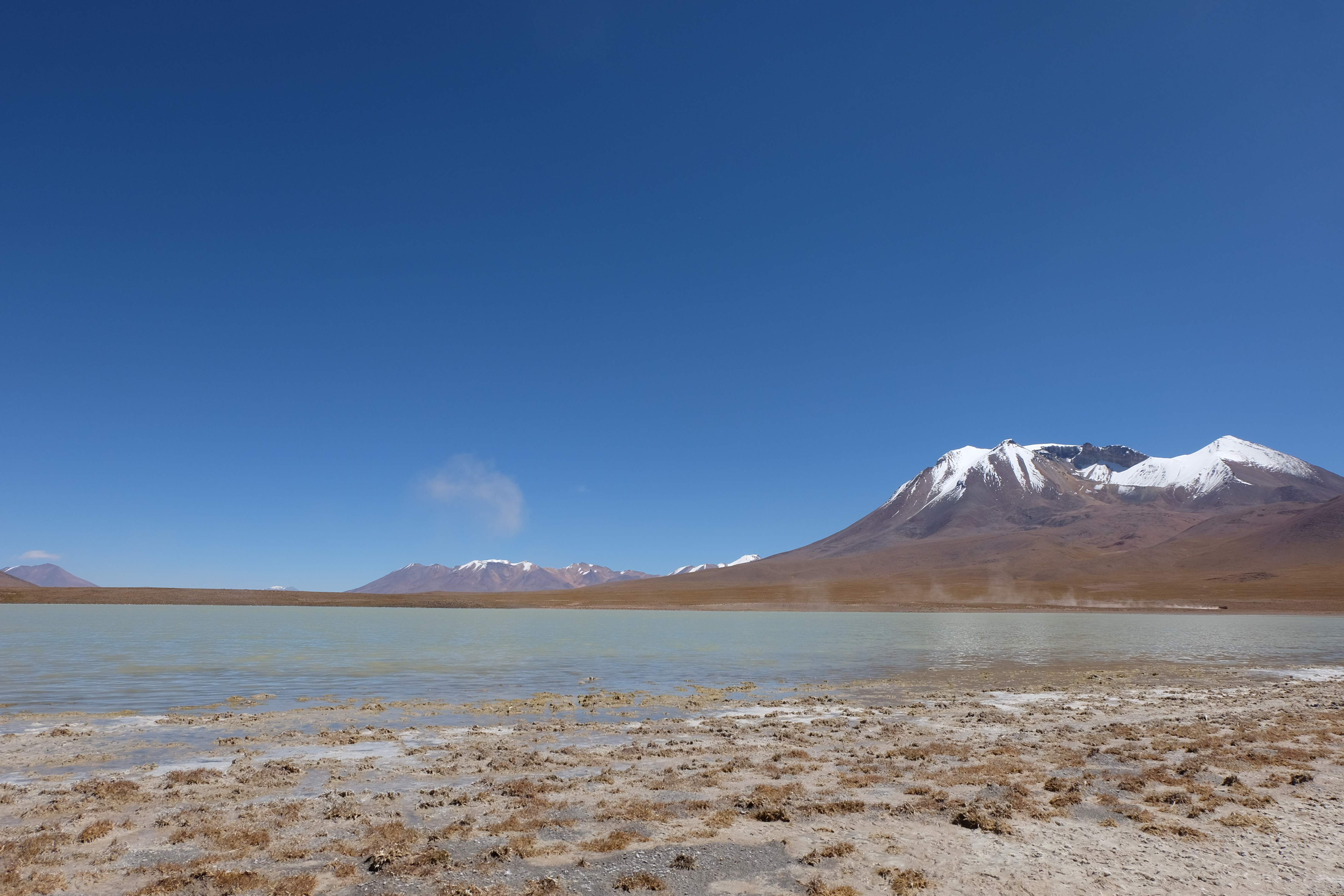 Kunst? Farbenpracht? Malerei? All diese Begriffe erhalten hierzulande eine neue Definition, spätestens wenn man an diesem Ort ankommt: Laguna Colorada. Monet mit seinen eindrücklichen impressionistischen Gemälden war ein Baby, nicht einmal ein Lehrling der Natur hätte er sein können. Auf einer Höhe von knapp 5000 m, in welcher der Wind sich unbedingt behaupten möchte und die Landschaft dermassen unfreundlich gestaltet, fing die Mutter Erde an die Symphonie der Farben zu komponieren. Sie mischte das Blau des eiskalten Wassers mit dem leidenschaftlichen Rot der Meeresalgen, welche fast sagen wollten, dass es trotz Kälte im Meer viele Geheimnisse zu entdecken gibt. Sie mischte das Hellblau des vor lauter Schönheit erstarrten Himmels mit dem seltenen Grün der mutigsten Pflanzen, die sich trotz Witterungen entschieden da zu blühen und zum Wunderklang beizutragen. Und als dieser Rahmen bereit war, warf sie einige Farbentöne hinein: die zart-rosafarbigen Flamingos, welche aus lauter Neugierde die Meeresgeheimnisse zu kennen immer mehr von den roten Algen assen und somit immer rötlicher wurden; die weissen, braunen und schwarzen Lamas, welche einen doch daran erinnern sollten, dass man sich im Herzen der Gebirge befand und die weissen Wolken, leere Gedankenblasen, welche die Sprachlosigkeit des menschlichen Wesen vor einer solchen Schönheit verkörperten. Da war das Meisterwerk der Mutter Natur vollbracht, die Symphonie der Farben eine Tatsache und ihr Klang einfach magisch. Aber hört doch selber zu: