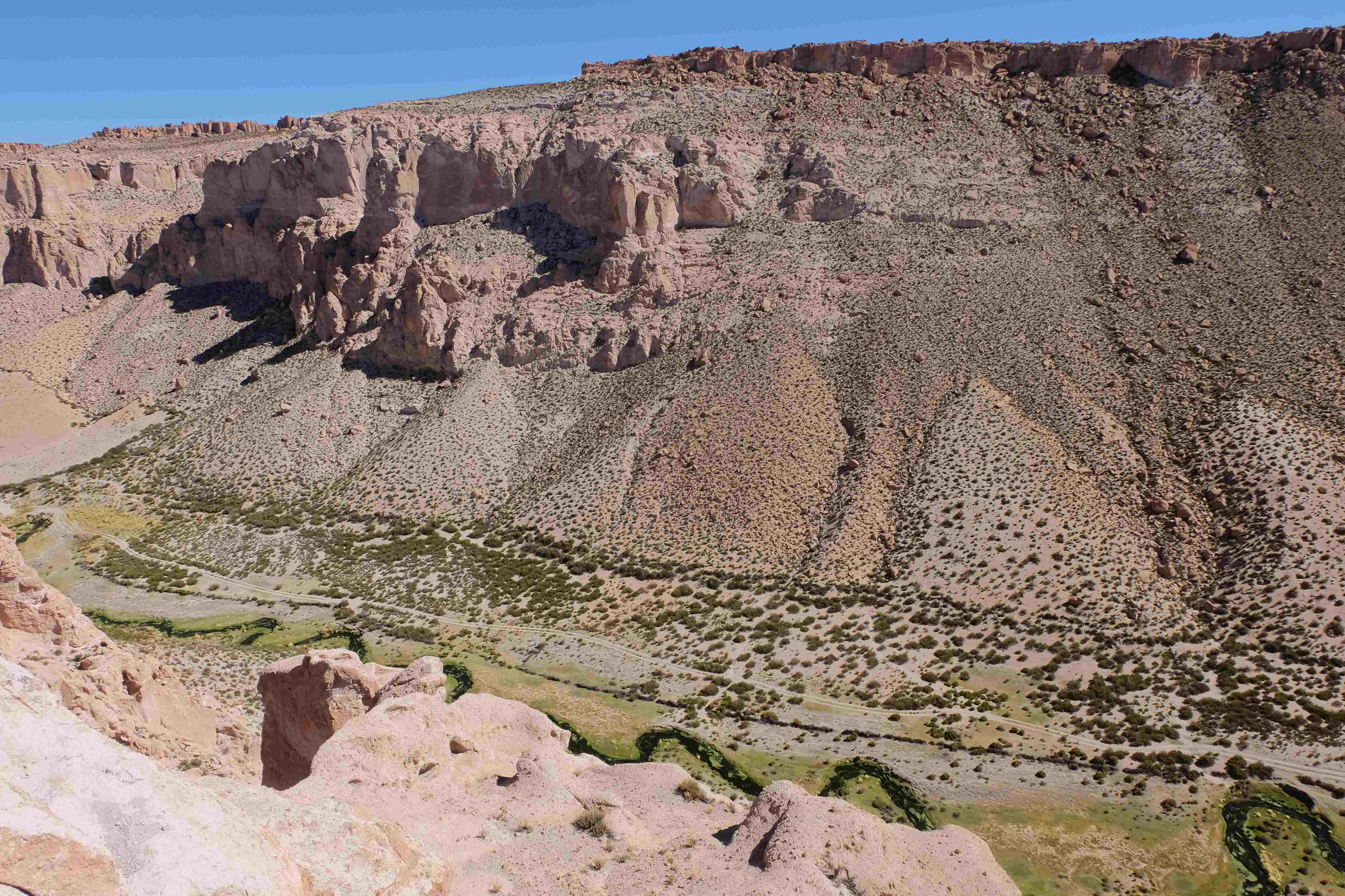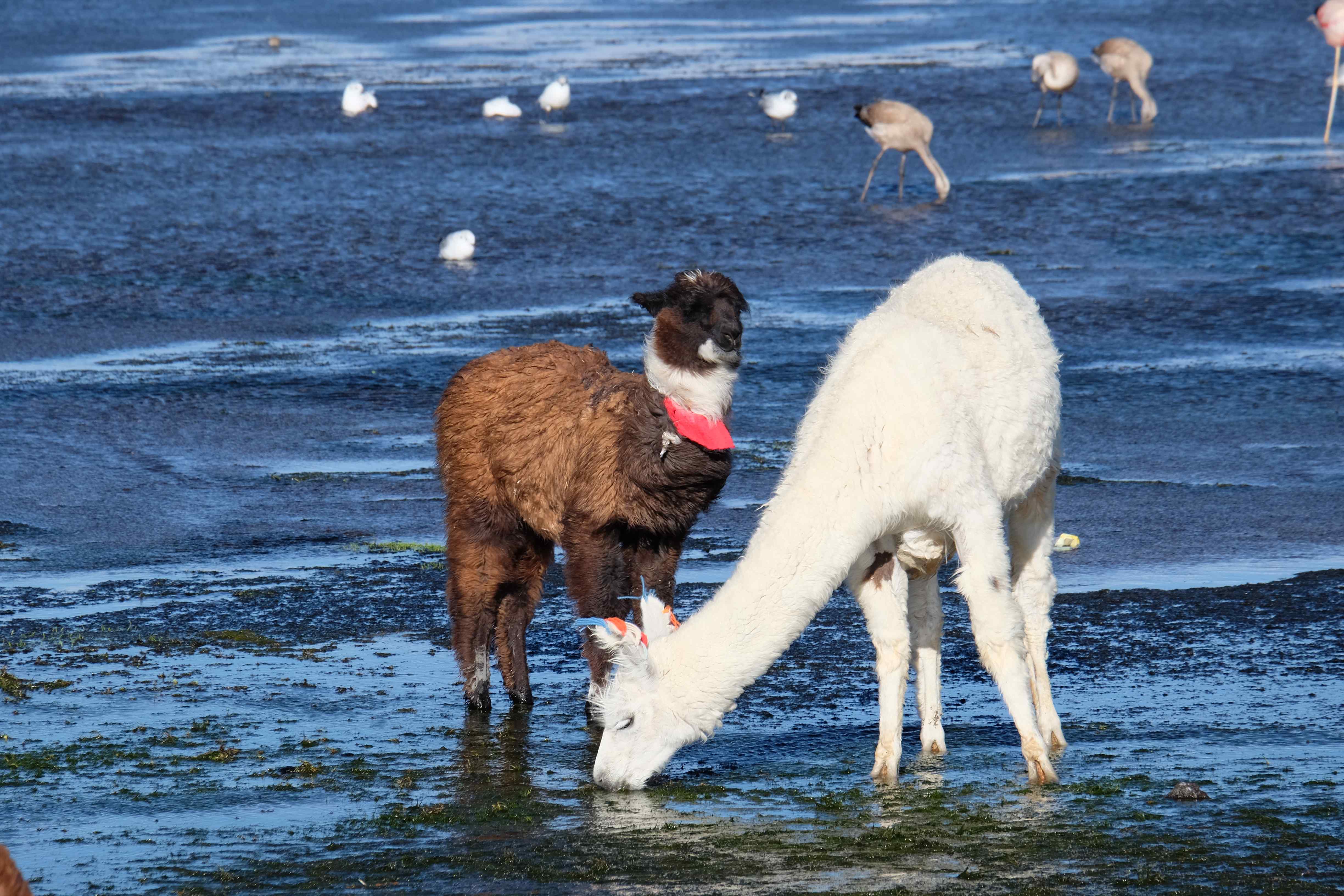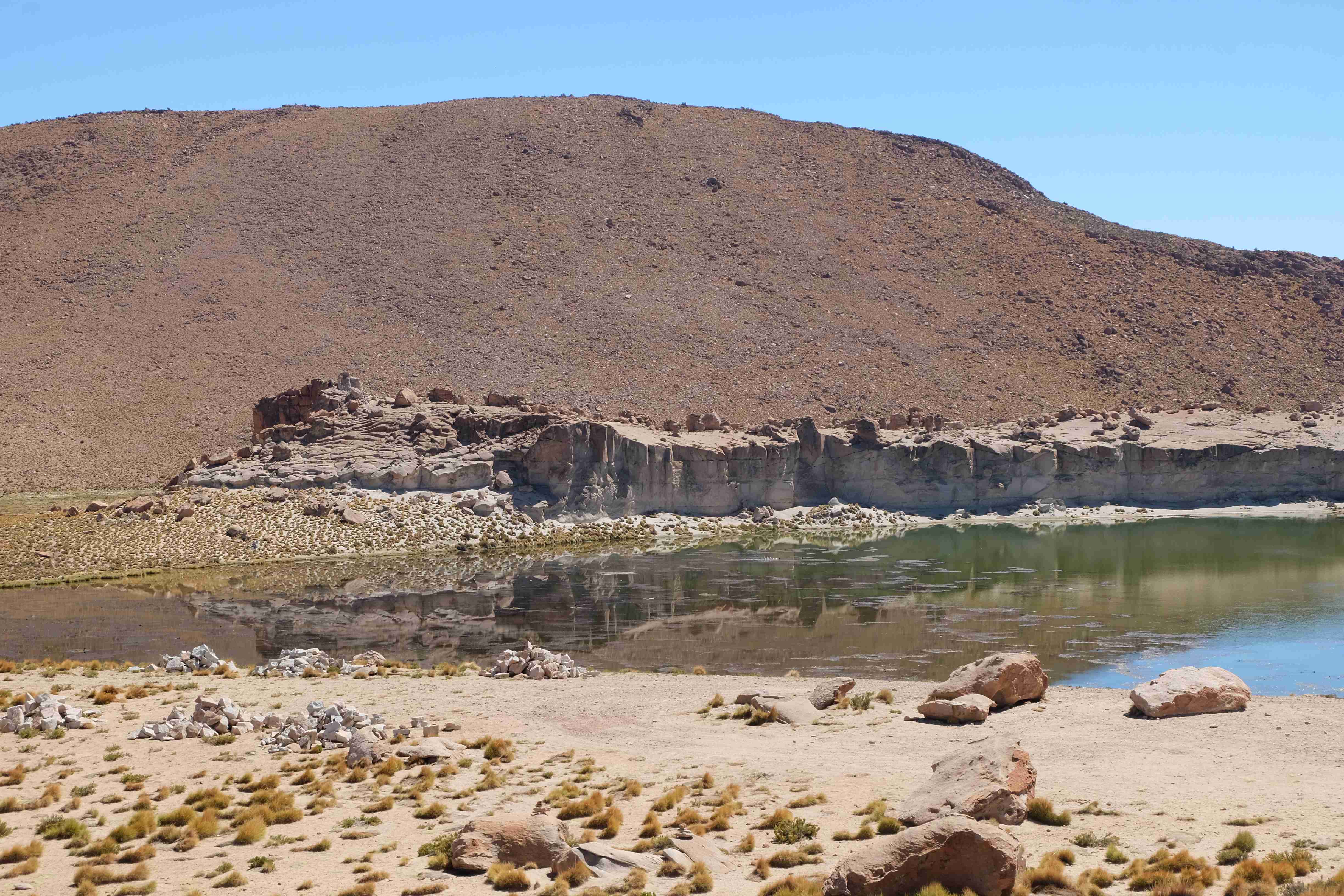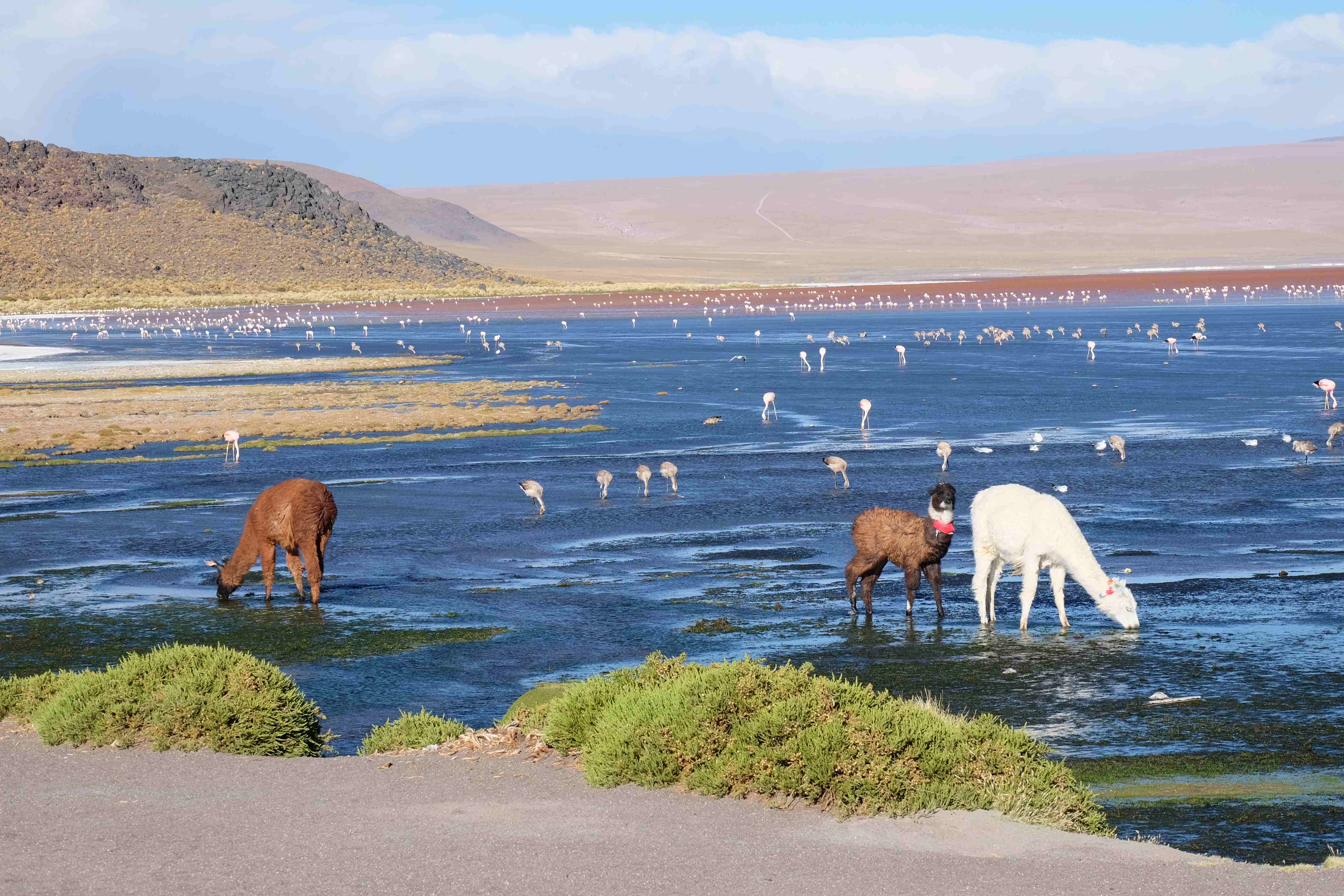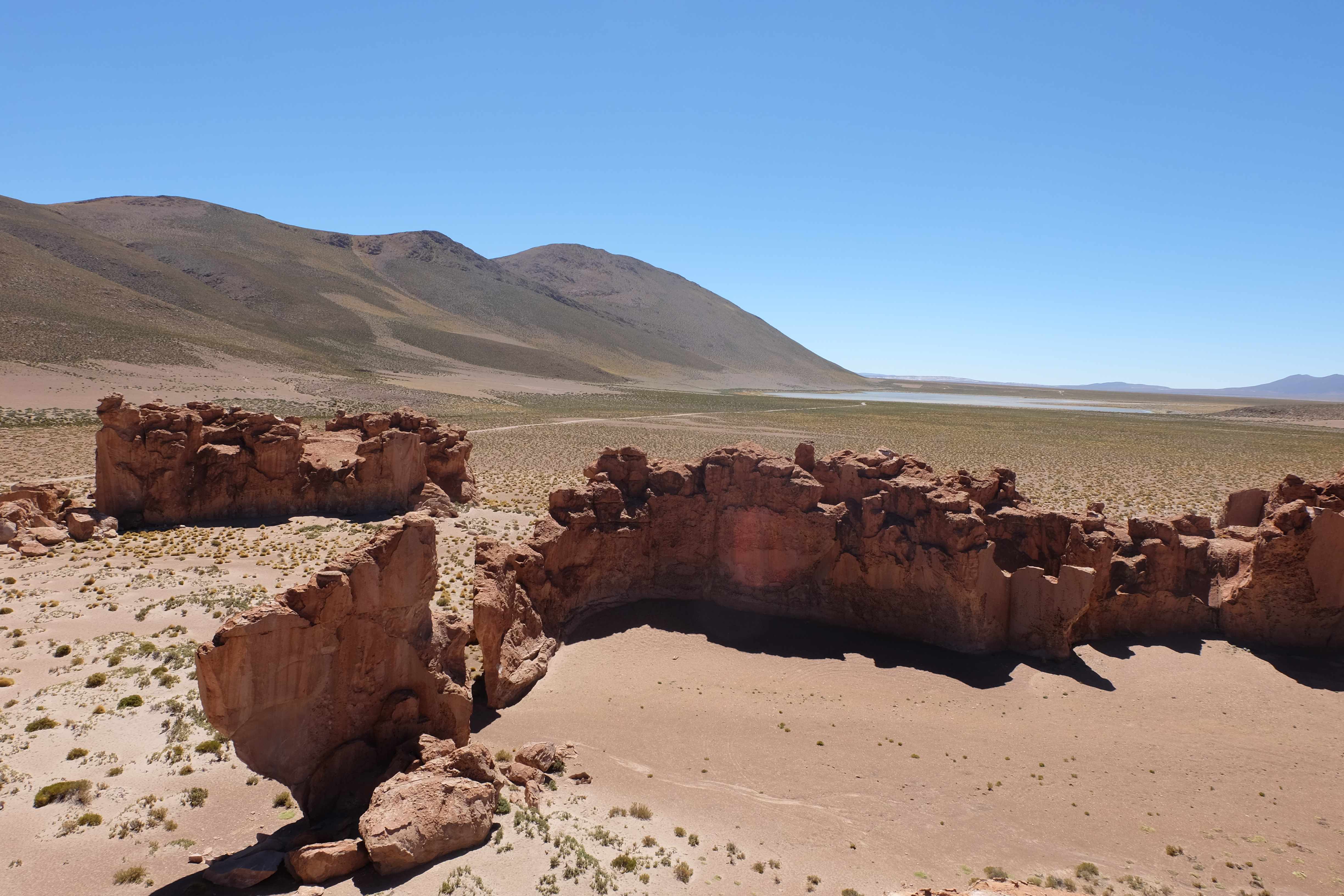 Kunst? Farbenpracht? Malerei? All diese Begriffe erhalten hierzulande eine neue Definition, spätestens wenn man an diesem Ort ankommt: Laguna Colorada. Monet mit seinen eindrücklichen impressionistischen Gemälden war ein Baby, nicht einmal ein Lehrling der Natur hätte er sein können. Auf einer Höhe von knapp 5000 m, in welcher der Wind sich unbedingt behaupten möchte und die Landschaft dermassen unfreundlich gestaltet, fing die Mutter Erde an die Symphonie der Farben zu komponieren. Sie mischte das Blau des eiskalten Wassers mit dem leidenschaftlichen Rot der Meeresalgen, welche fast sagen wollten, dass es trotz Kälte im Meer viele Geheimnisse zu entdecken gibt. Sie mischte das Hellblau des vor lauter Schönheit erstarrten Himmels mit dem seltenen Grün der mutigsten Pflanzen, die sich trotz Witterungen entschieden da zu blühen und zum Wunderklang beizutragen. Und als dieser Rahmen bereit war, warf sie einige Farbentöne hinein: die zart-rosafarbigen Flamingos, welche aus lauter Neugierde die Meeresgeheimnisse zu kennen immer mehr von den roten Algen assen und somit immer rötlicher wurden; die weissen, braunen und schwarzen Lamas, welche einen doch daran erinnern sollten, dass man sich im Herzen der Gebirge befand und die weissen Wolken, leere Gedankenblasen, welche die Sprachlosigkeit des menschlichen Wesen vor einer solchen Schönheit verkörperten. Da war das Meisterwerk der Mutter Natur vollbracht, die Symphonie der Farben eine Tatsache und ihr Klang einfach magisch. Aber hört doch selber zu: