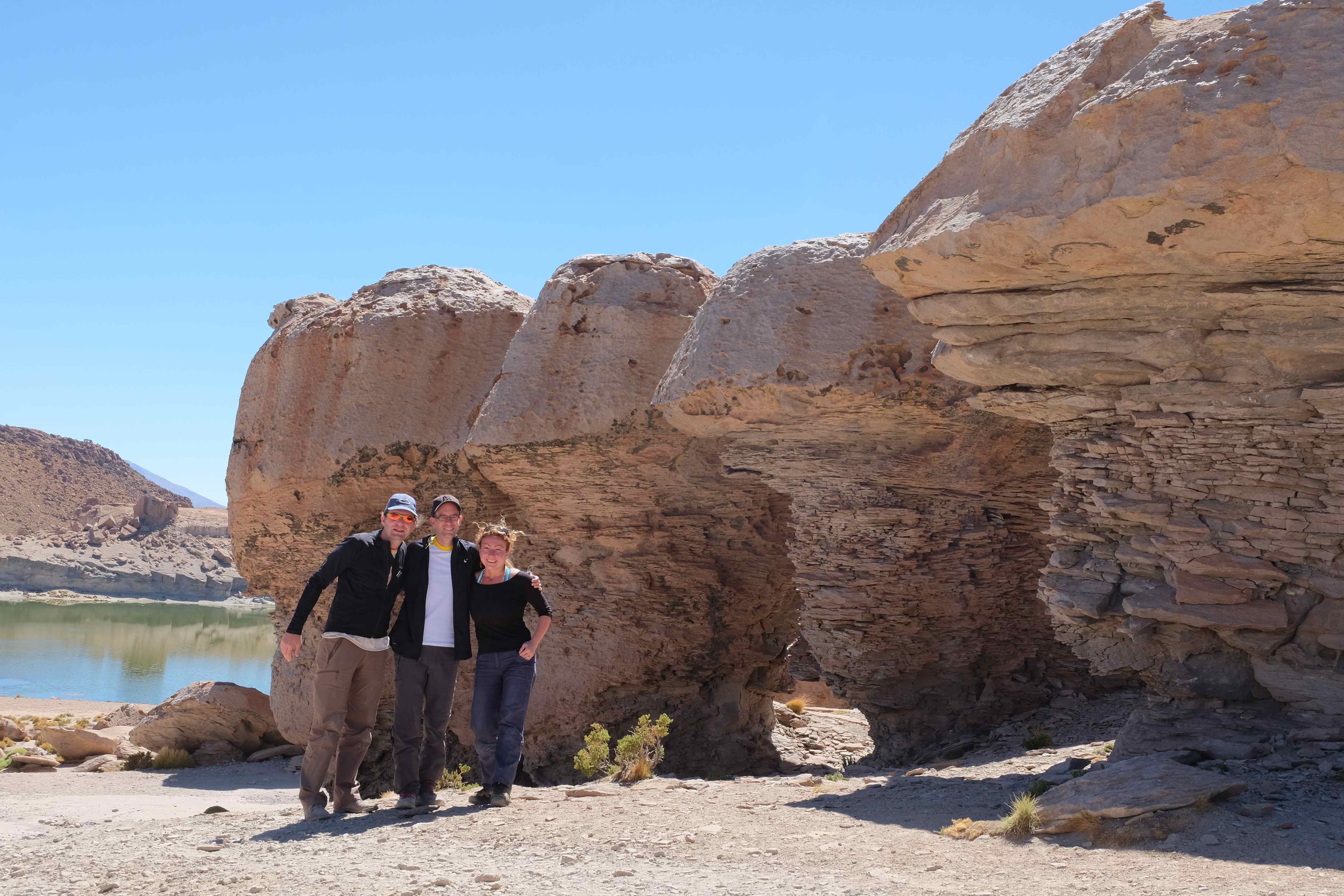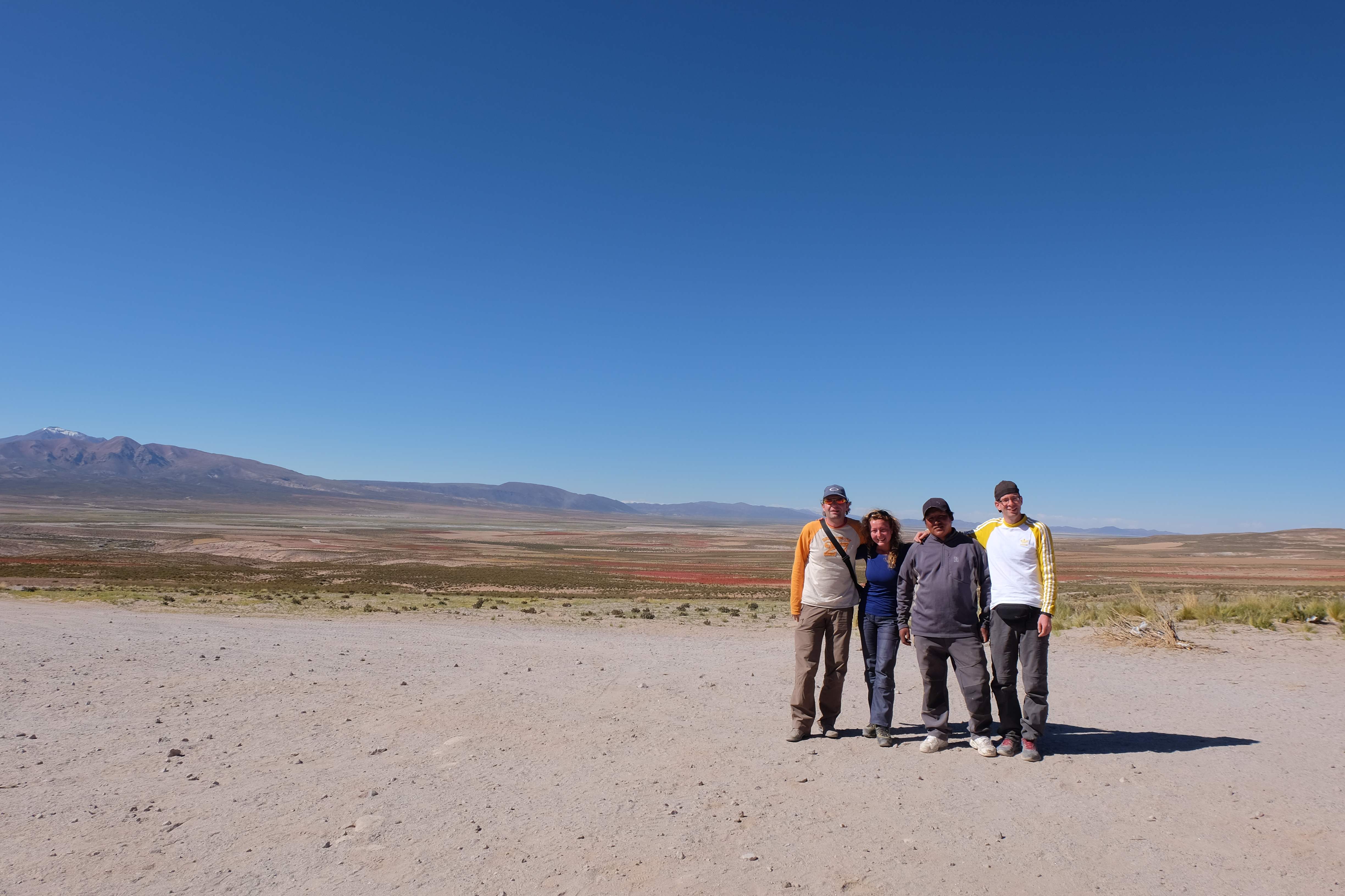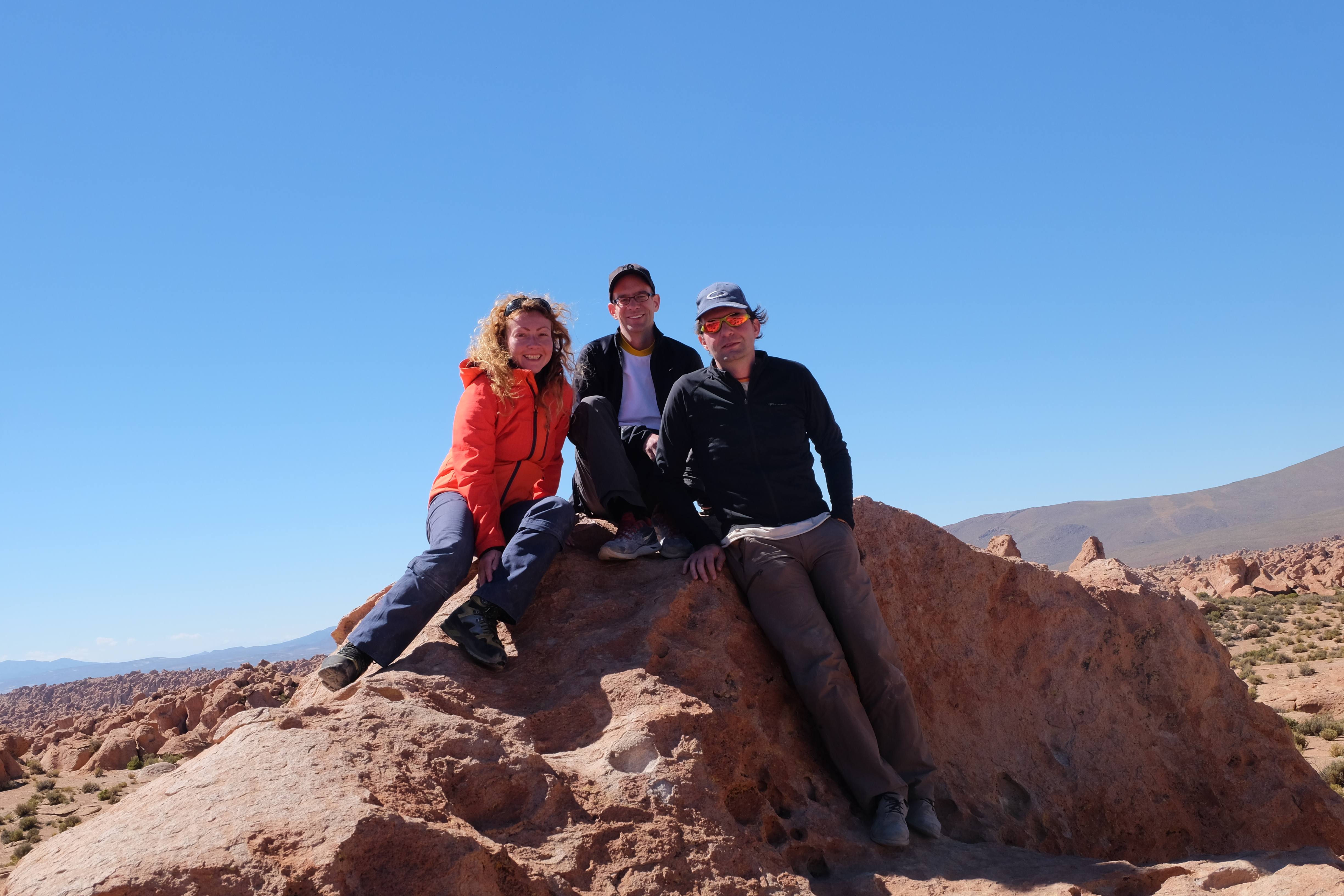 Am Tag darauf war es soweit: Patric kam an, wir packten alles und es ging los – das 3-tägige Abenteuer wartete auf uns. Alle – inklusive wir – fragten uns vor dem Touranfang, was es hier in der Gegend von Uyuni überhaupt zu sehen gäbe, dass die Tour 3 ganze Tage dauern musste. Ja, wir wussten, dass etwas über den Salzsee, der sollte ziemlich gross sein, aber abgesehen davon? Ehrlich gesagt waren unsere Hoffnungen nicht allzu hoch und unsere Erwartungen noch tiefer. Aber wir dachten uns: lieber irgendwo unterwegs sein als sämtliche 3 Tage in Uyuni in der Stadt zu verweilen und nur Leute heimlich fotografieren. 🙂
