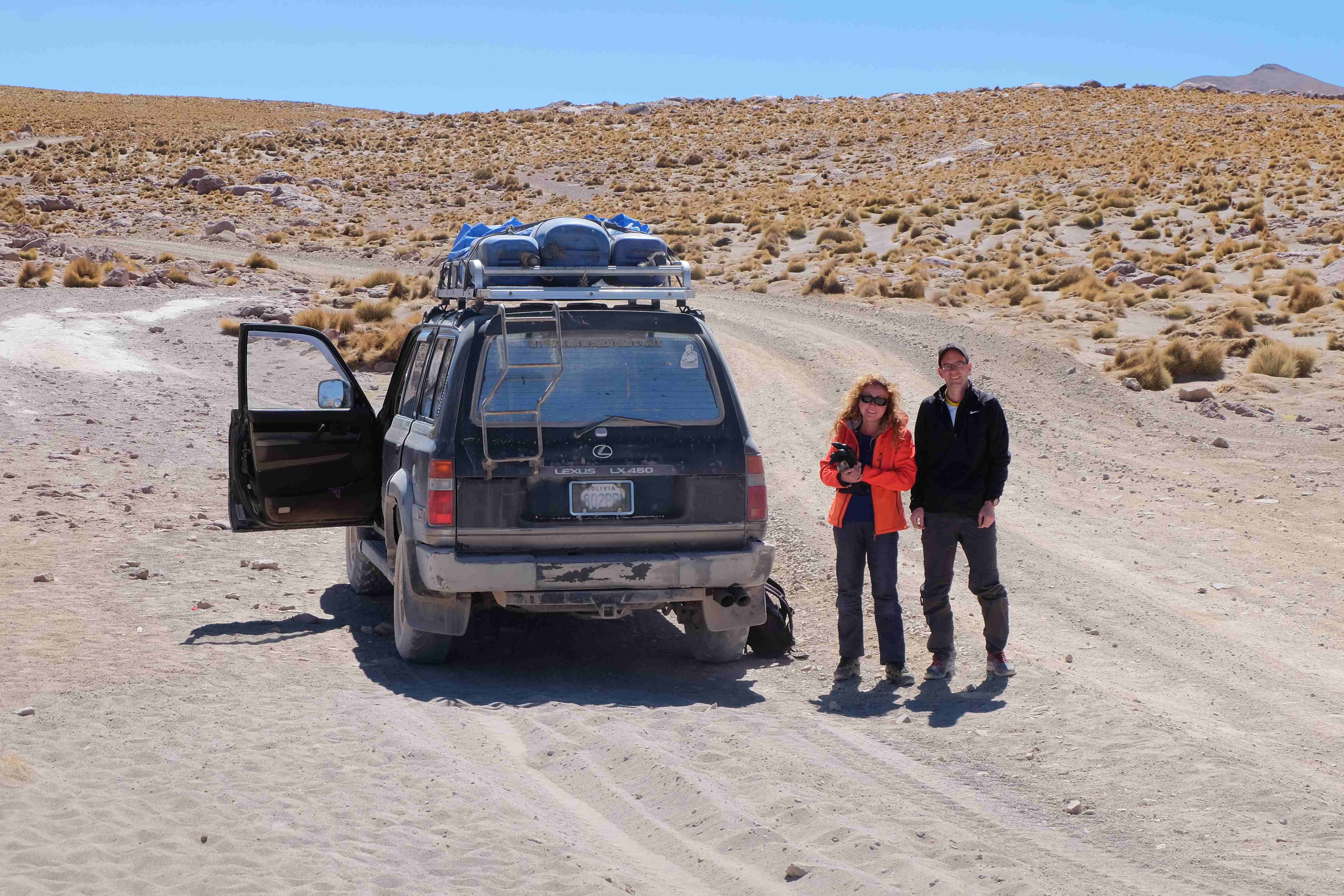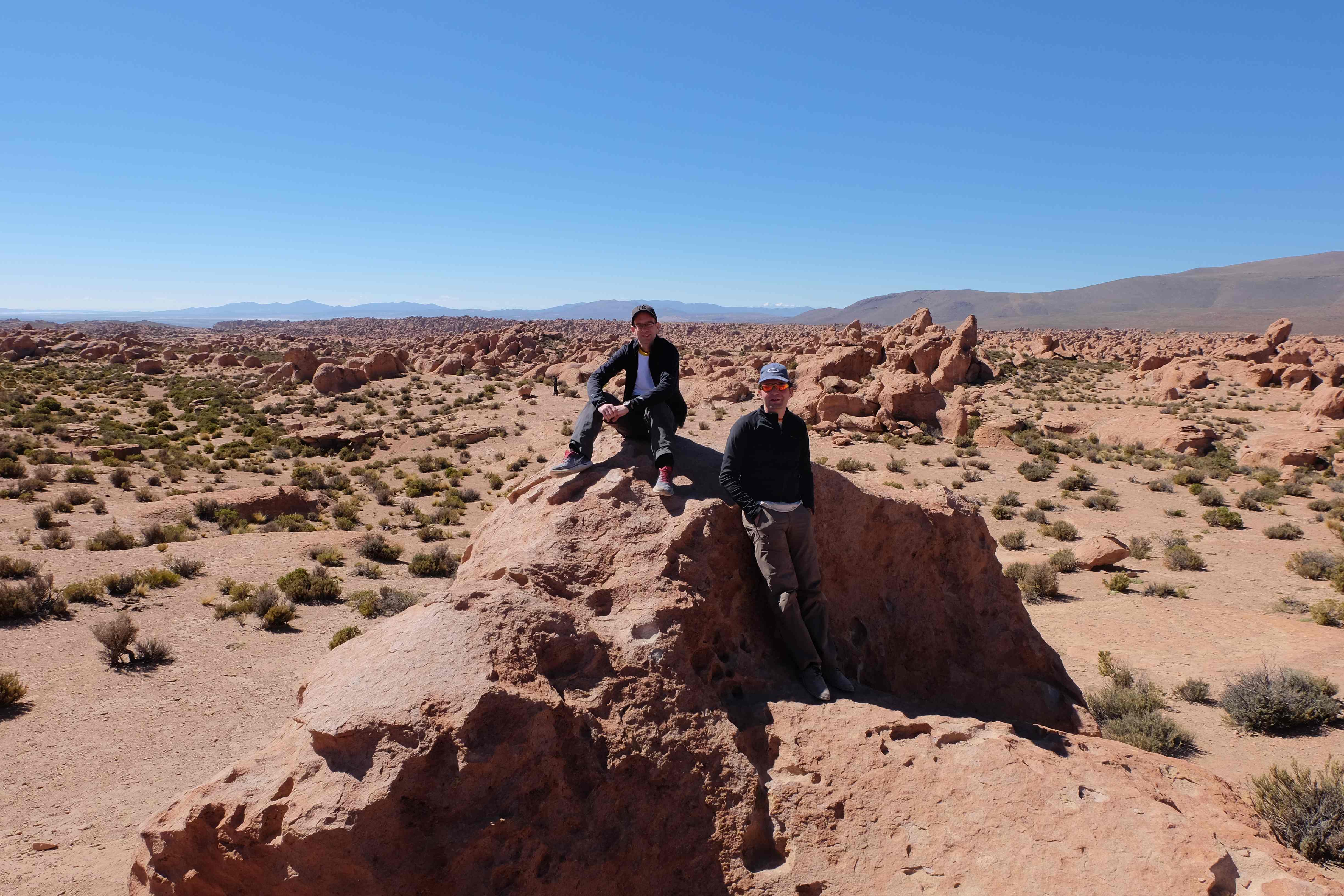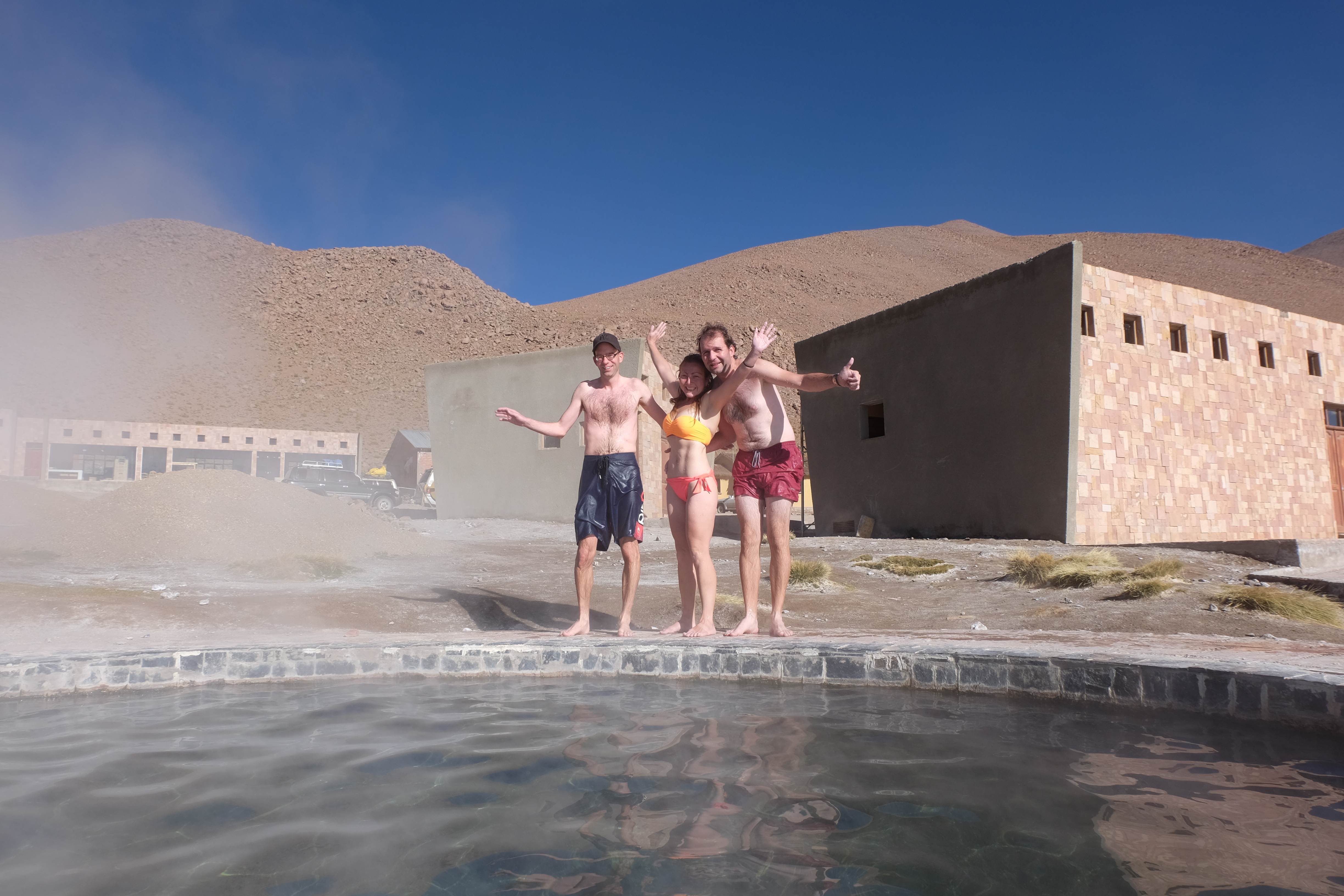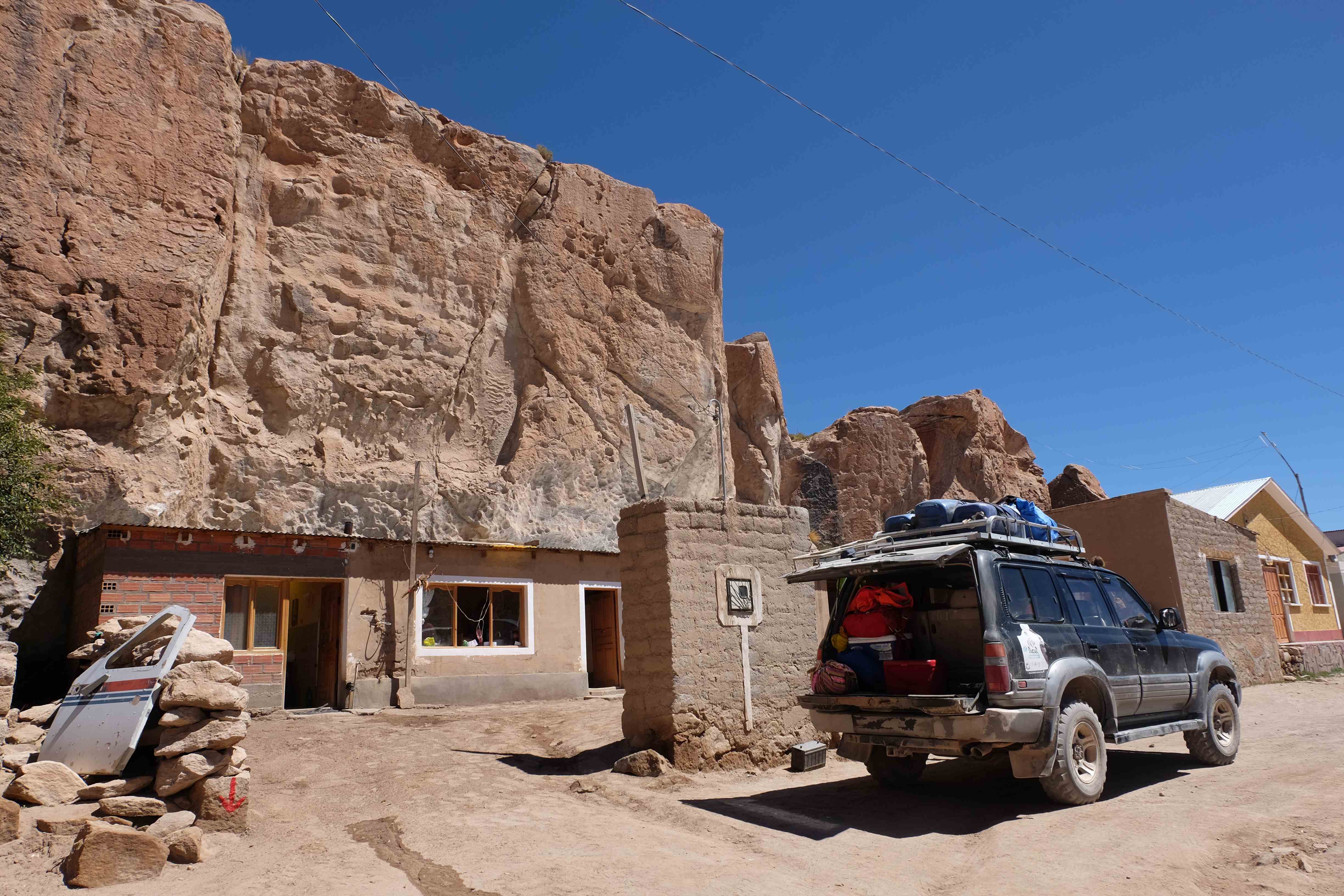 Am Tag darauf war es soweit: Patric kam an, wir packten alles und es ging los – das 3-tägige Abenteuer wartete auf uns. Alle – inklusive wir – fragten uns vor dem Touranfang, was es hier in der Gegend von Uyuni überhaupt zu sehen gäbe, dass die Tour 3 ganze Tage dauern musste. Ja, wir wussten, dass etwas über den Salzsee, der sollte ziemlich gross sein, aber abgesehen davon? Ehrlich gesagt waren unsere Hoffnungen nicht allzu hoch und unsere Erwartungen noch tiefer. Aber wir dachten uns: lieber irgendwo unterwegs sein als sämtliche 3 Tage in Uyuni in der Stadt zu verweilen und nur Leute heimlich fotografieren. 🙂