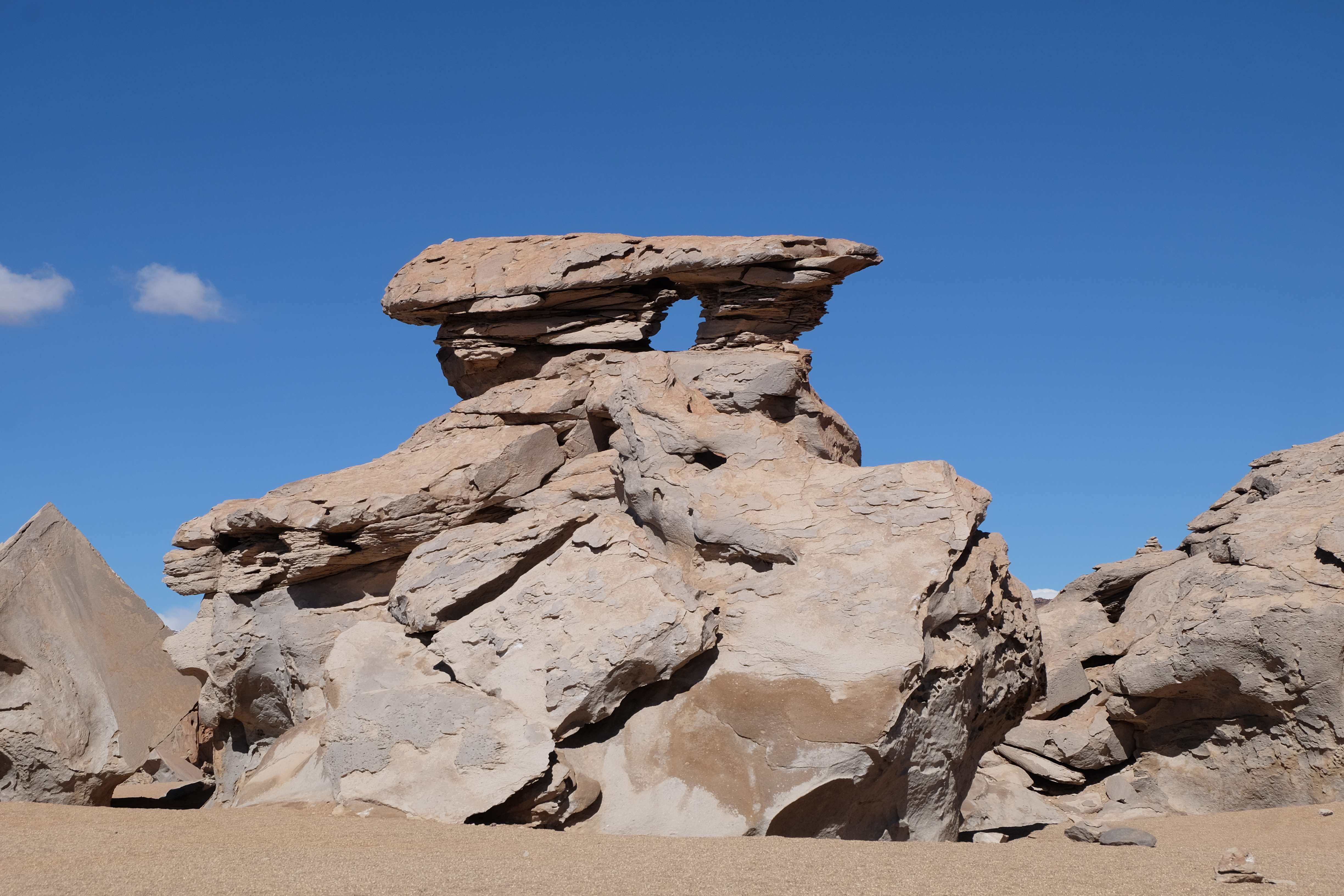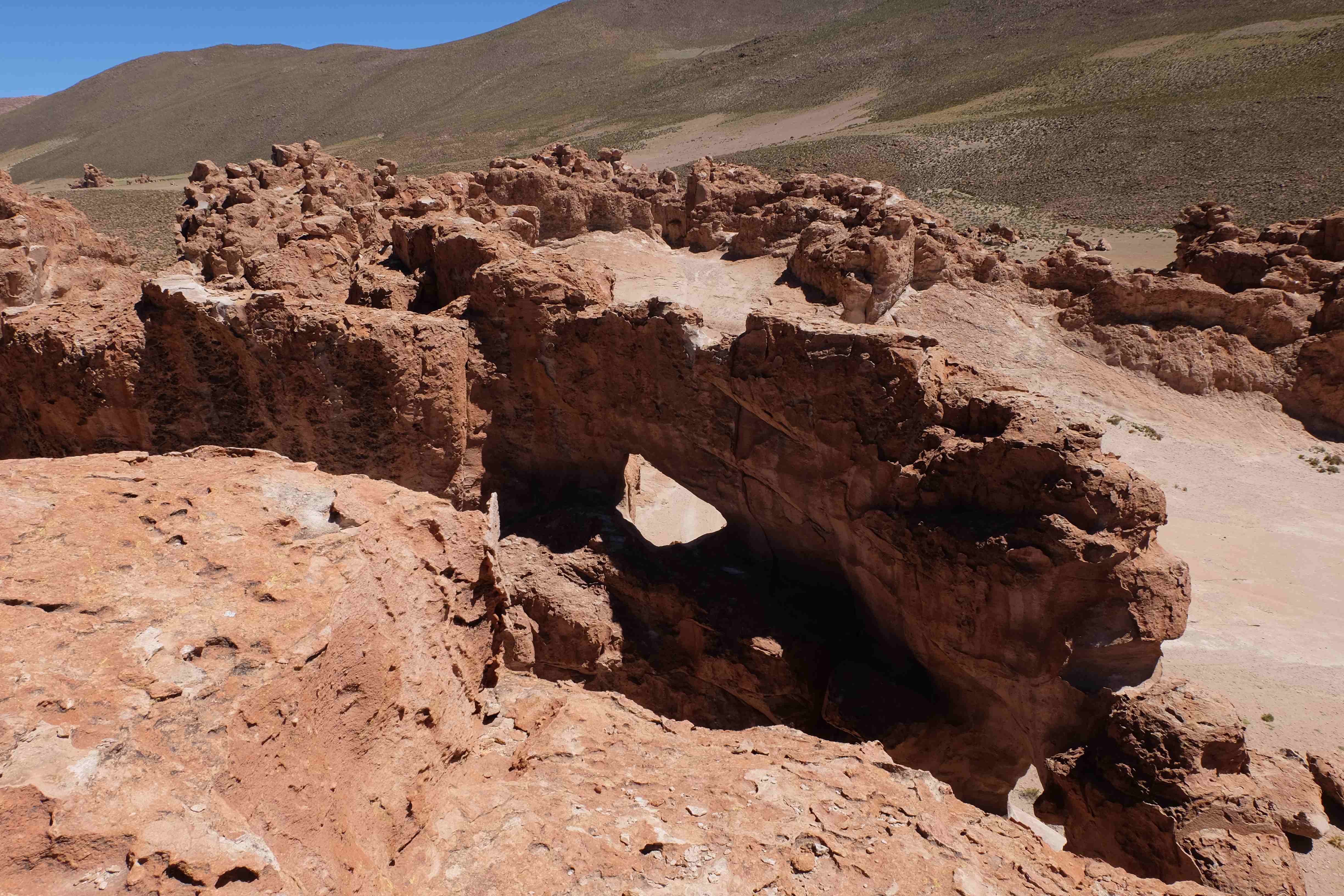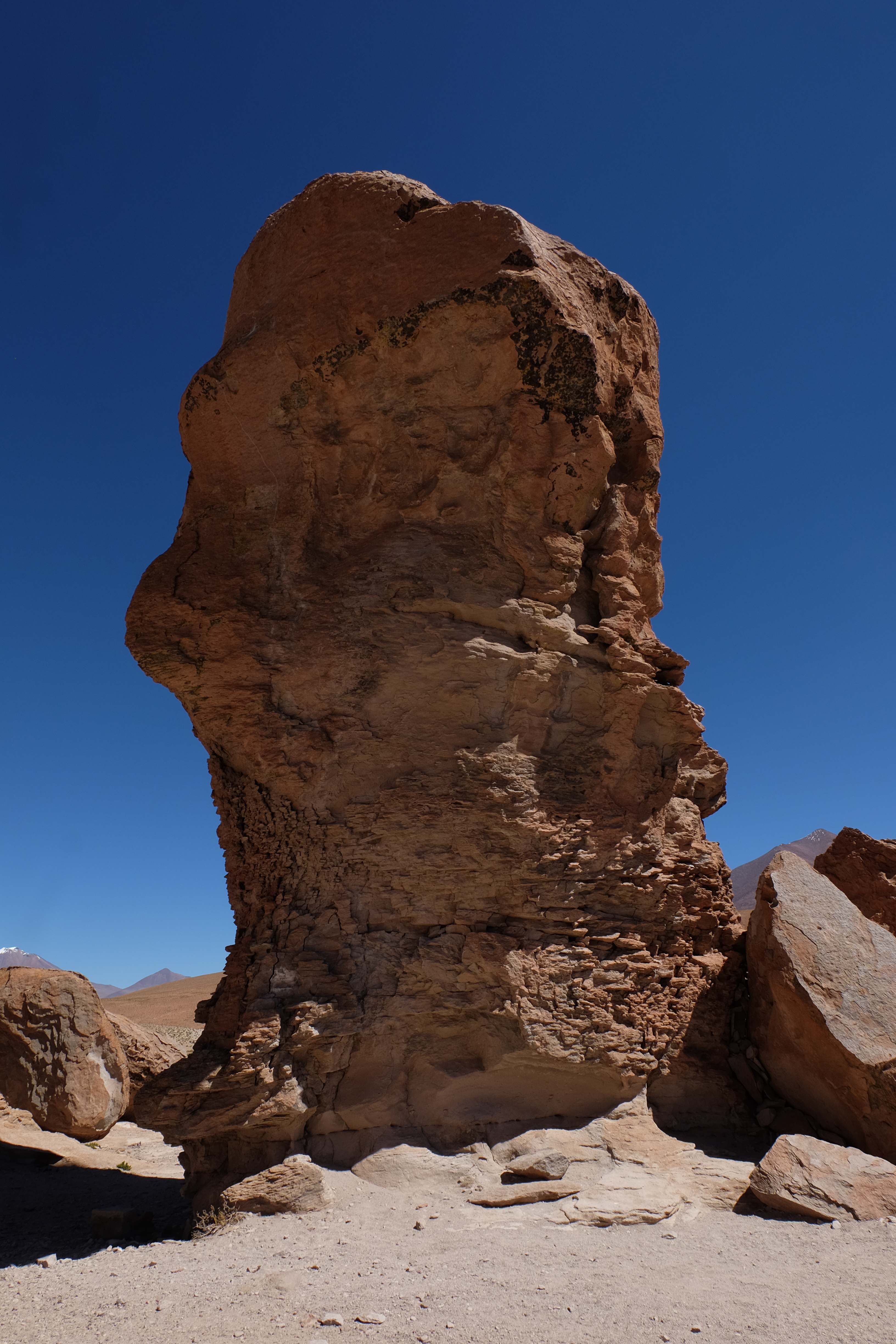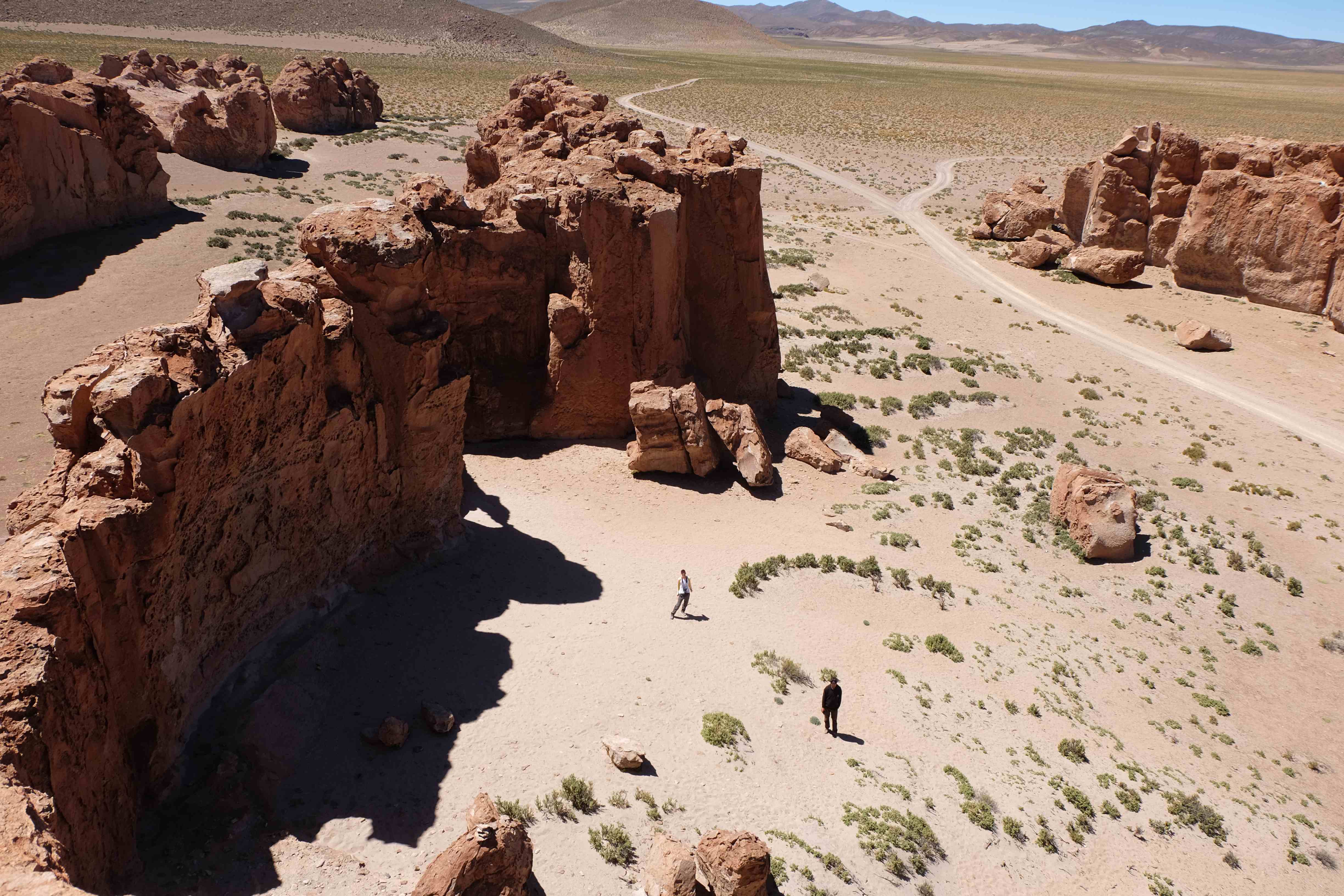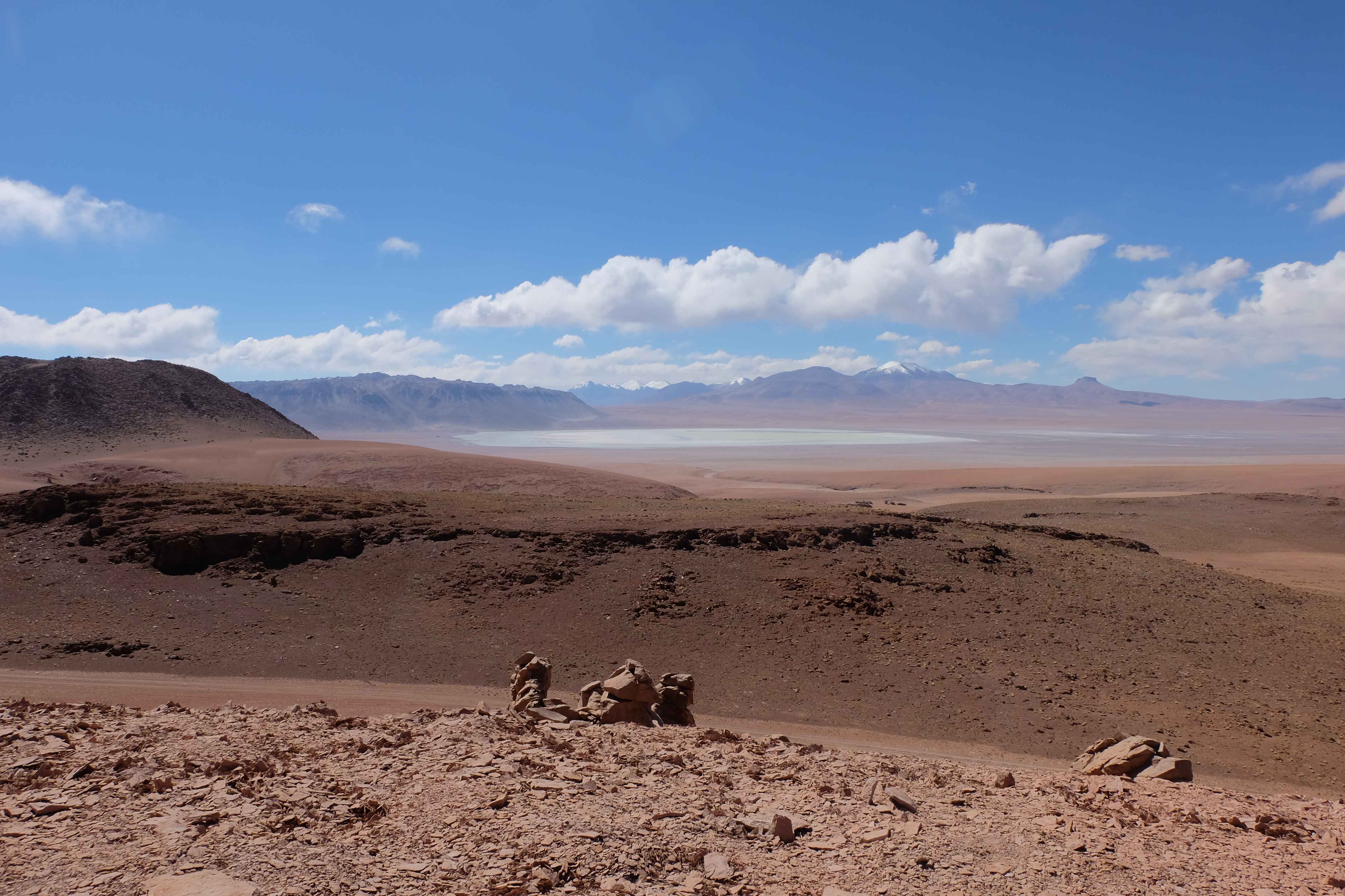 Konnte das Ganze noch getoppt werden? Gab es etwas Besseres? Der Tag fing zumal nicht schlecht an: nach Unmengen an Steinformationen, welche den Beweis darstellten, dass der Wind sich im Laufe der Jahrhunderte als Bildhauer versucht hatte, kamen sie: die in dieser Einsamkeit, dieser trockenen Wüstenlandschaft und unfreundlichen Umgebung so fehl am Platz und umso unglaublicher scheinenden Flamingos, welche nicht nur eine gewisse Eleganz, sondern auch genau den richtigen Farbenfleck verliehen um die Landschaft als herrlich zu bezeichnen. Da tobten wir uns mit dem Fotoapparat aus wie kleine Kinder, welche die Welt entdeckten – wir entdeckten sie nämlich auch und was für eine Welt! Eine in schwindelerregender Höhe (wir bewegten uns die ganze Zeit zwischen 4000 und 5000 m ohne das überhaupt zu merken, da einem alles flach vorkam, allein die schwerfälligen Atemzüge erinnerten einen daran, als man sich anstrengte), eine in der bolivianischen Ferne versteckte Wunderlandschaft, ein von niemandem erahntes und vermutlich von vielen unterschätztes Naturwunder welches sich nun vor unseren Augen in seiner vollen Pracht zeigte. Wir hatten uns verliebt… und der Tag war erst in der Hälfte.