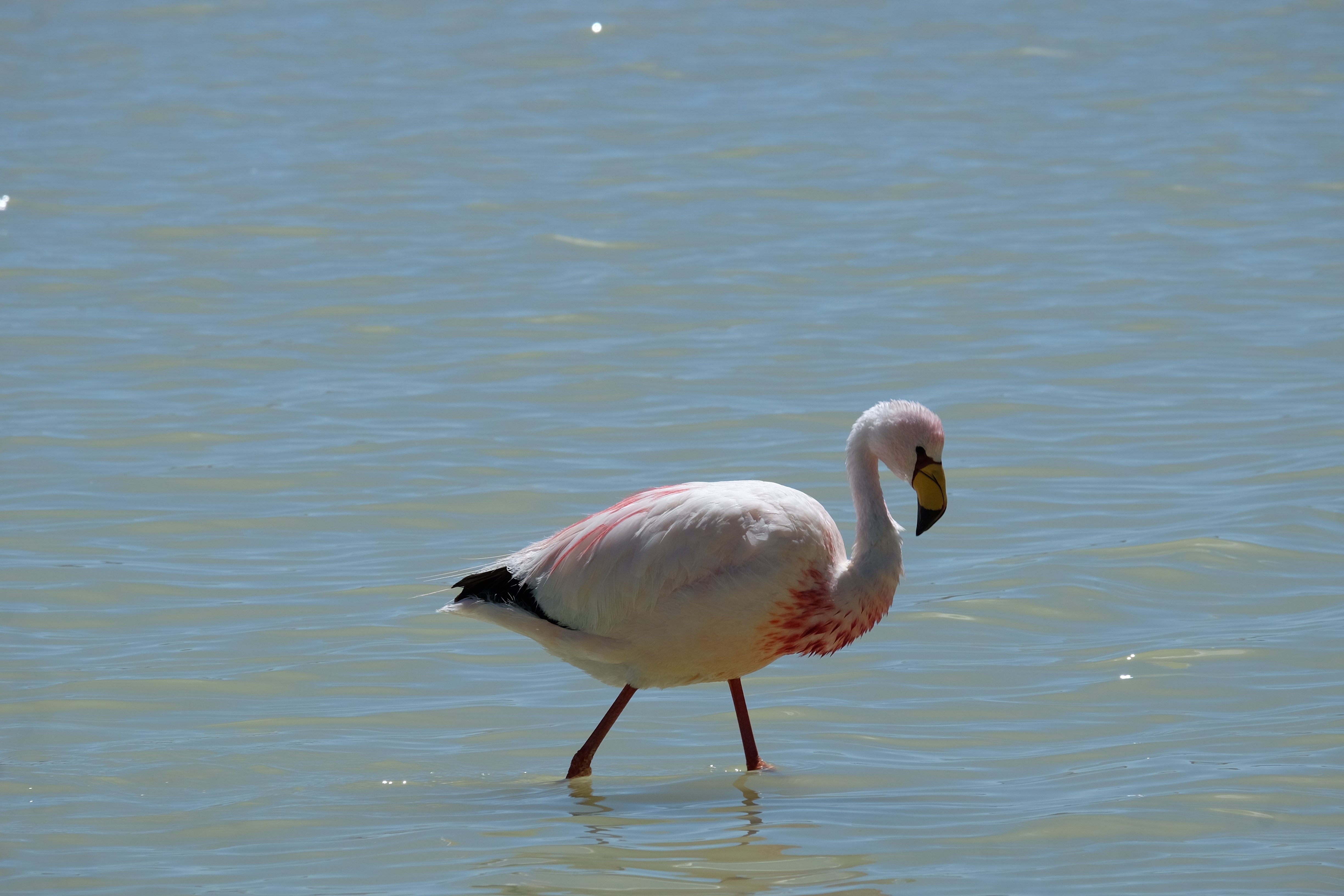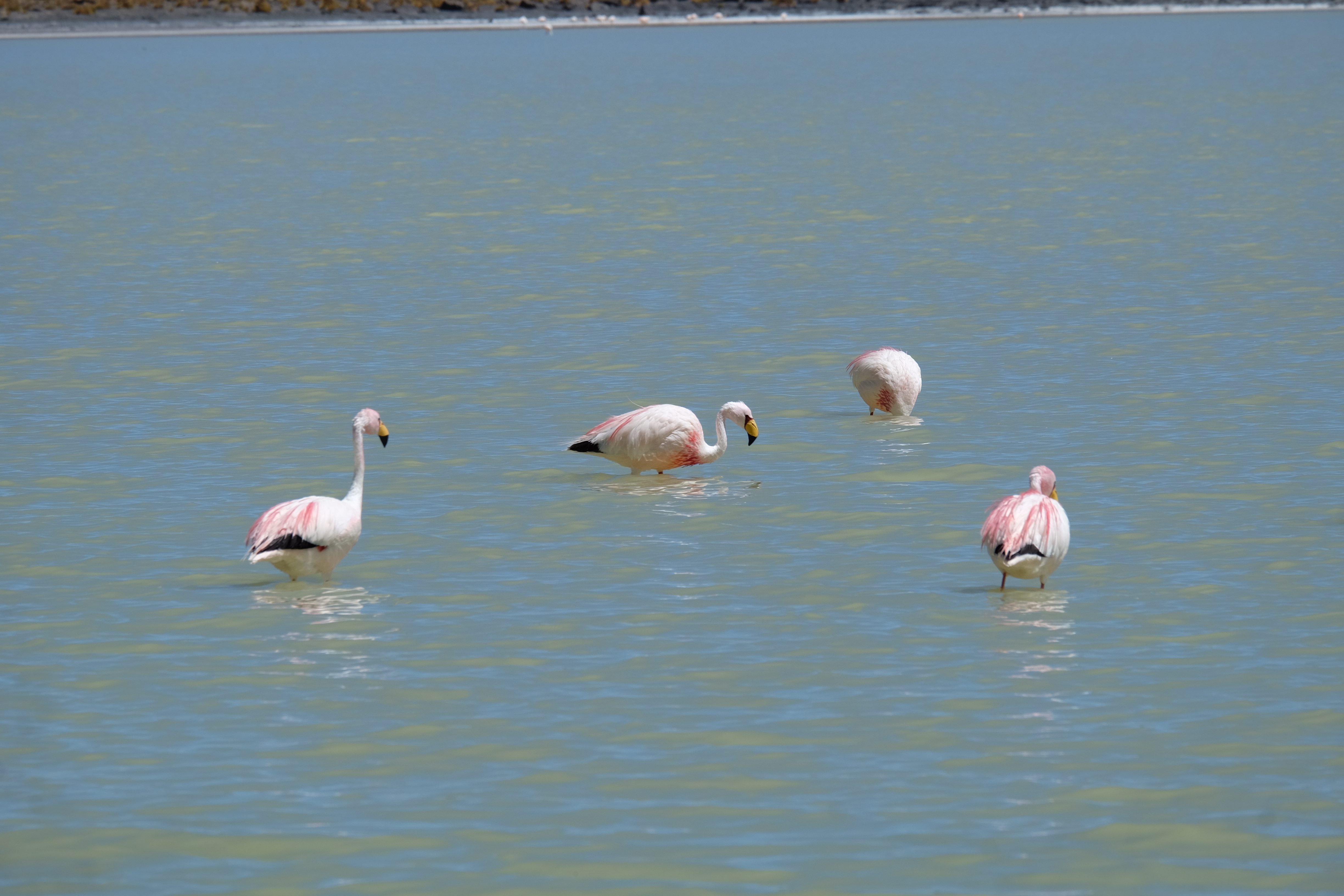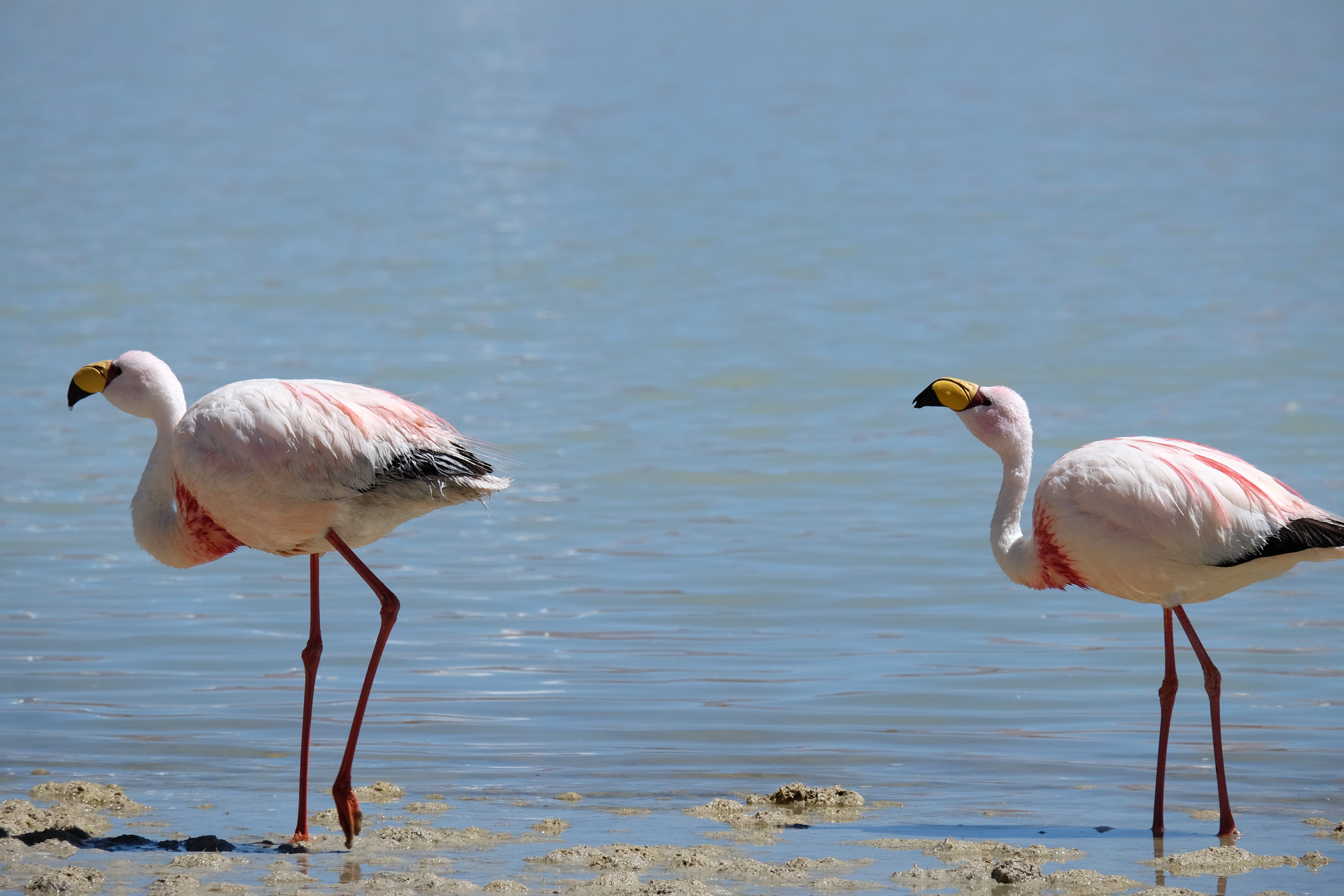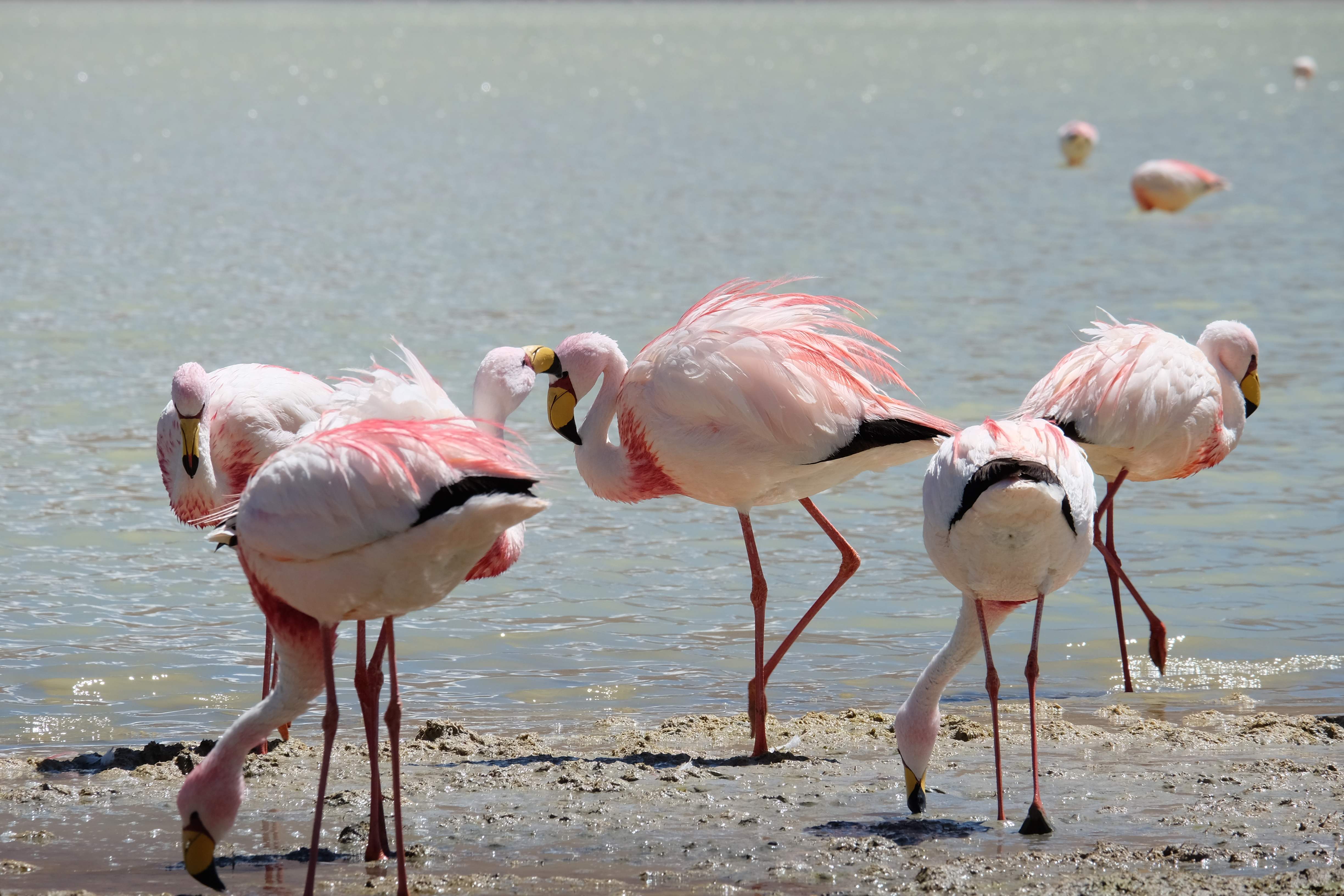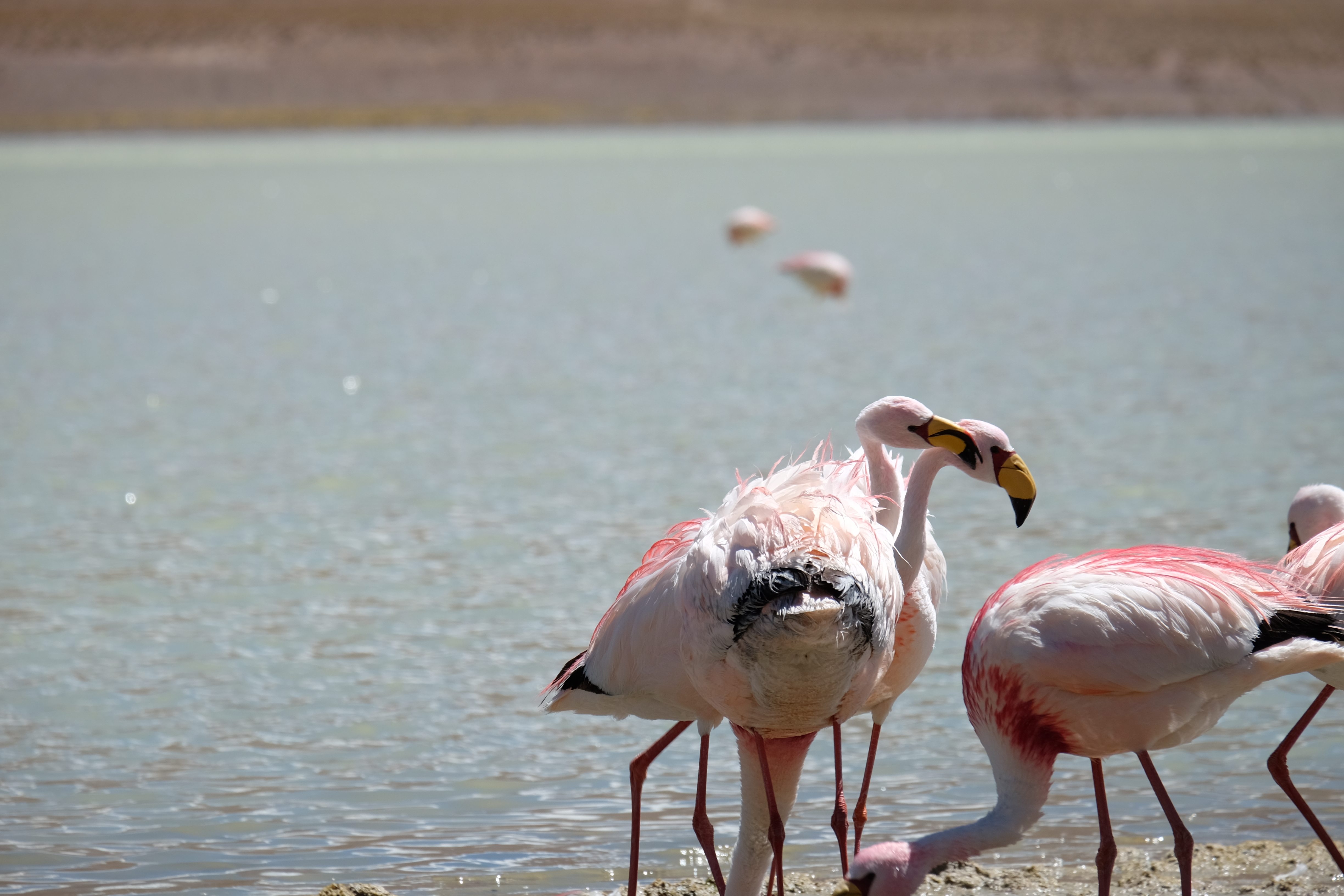 Oare putea sa devina si mai interesant? Putea sa intreaca ceva ceea ce deja vazuseram? Exista ceva si mai si? Ziua urmatoare incepuse in mod promitator: dupa o sumedenie de formatiuni de stanci si roci, care faceau dovada ca vantul isi incercase talentul de sculptor de-a lungul secolelor, au urmat ele: pasarile flamingo. Acele creaturi cu eleganta lor caracteristica si pata de culoare necesara pentru a transforma peisajul in ceva magnific care parca nu se potriveau deloc cu singuratatea si ariditatea acestor meleaguri, prezenta lor fiind astfel cu atat mai incredibila. Bineinteles ca ne-am lasat dusi de val si am inceput sa ne jucam cu aparatele de fotografiat asemeni unor copii care erau pe punctul de a descoperi lumea – si noi la randul nostru o descopeream, si inca ce lume! Una care isi ducea veacul in inaltimi uimitoare (intregul tur se desfasurase intre 4000 si 5000 m deasupra nivelului marii, insa parca nici nu iti dadeai seama ca te aflai la o asemenea altitudine, totul parea atat de plan, doar respiratia greoaie dupa cateva miscari mai solicitante iti aminteau unde te aflai), o lume de vis, o minune ascunsa undeva in indepartarile din Bolivia, o lume nebanuita de nimeni si probabil subestimata de multi care acum ni se asternea in fata ochilor in toata frumusetea sa. Ne indragostiseram… si ziua nici macar nu se terminase!