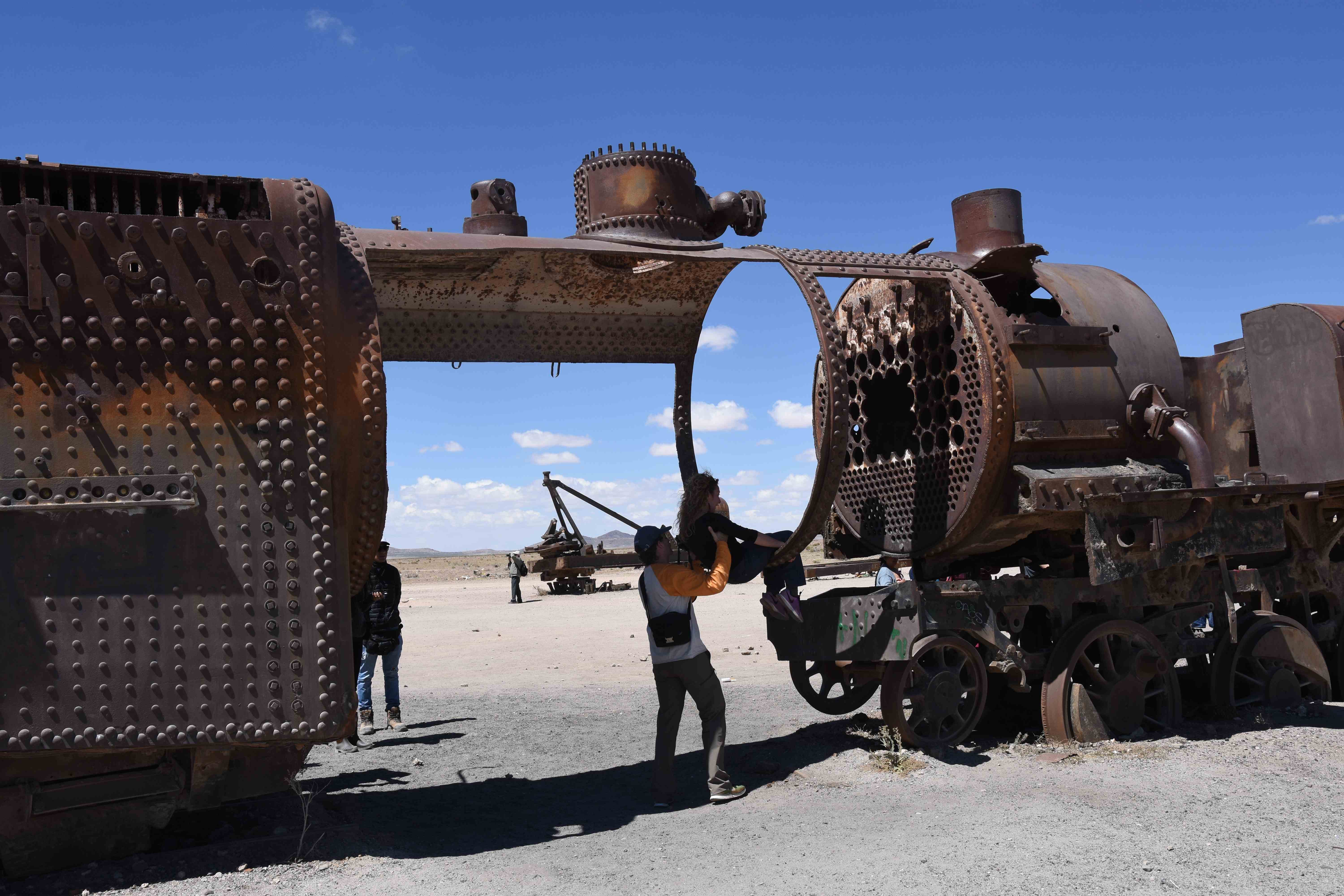 Turul nostru incepuse intr-o maniera foarte relaxata, am facut cunostiinta cu soferul (un tip foarte simpatic si de treaba) si cu ceilalti 3 pasageri. Cu acestia comunicarea a ramas la salutul initial pe care ni l-am dat, sa spunem ca nu au fost neaparat cei mai comunicativi 3-paduchi pe care i-am fi putut avea drept coechipieri de aventura. 🙂 Prima oprire a fost un cimitir de trenuri – cool, insa nu intr-atat incat sa ne lase masca – un loc in care fusesera depozitate trenuri vechi atat marfare cat si de pasageri, urmat de o oprire intr-un sat cu produse traditionale. Ce sa-i faci, chestii turistice ne zisaram noi… in timp ce speram ca dupa-masa sa fie mai interesanta.