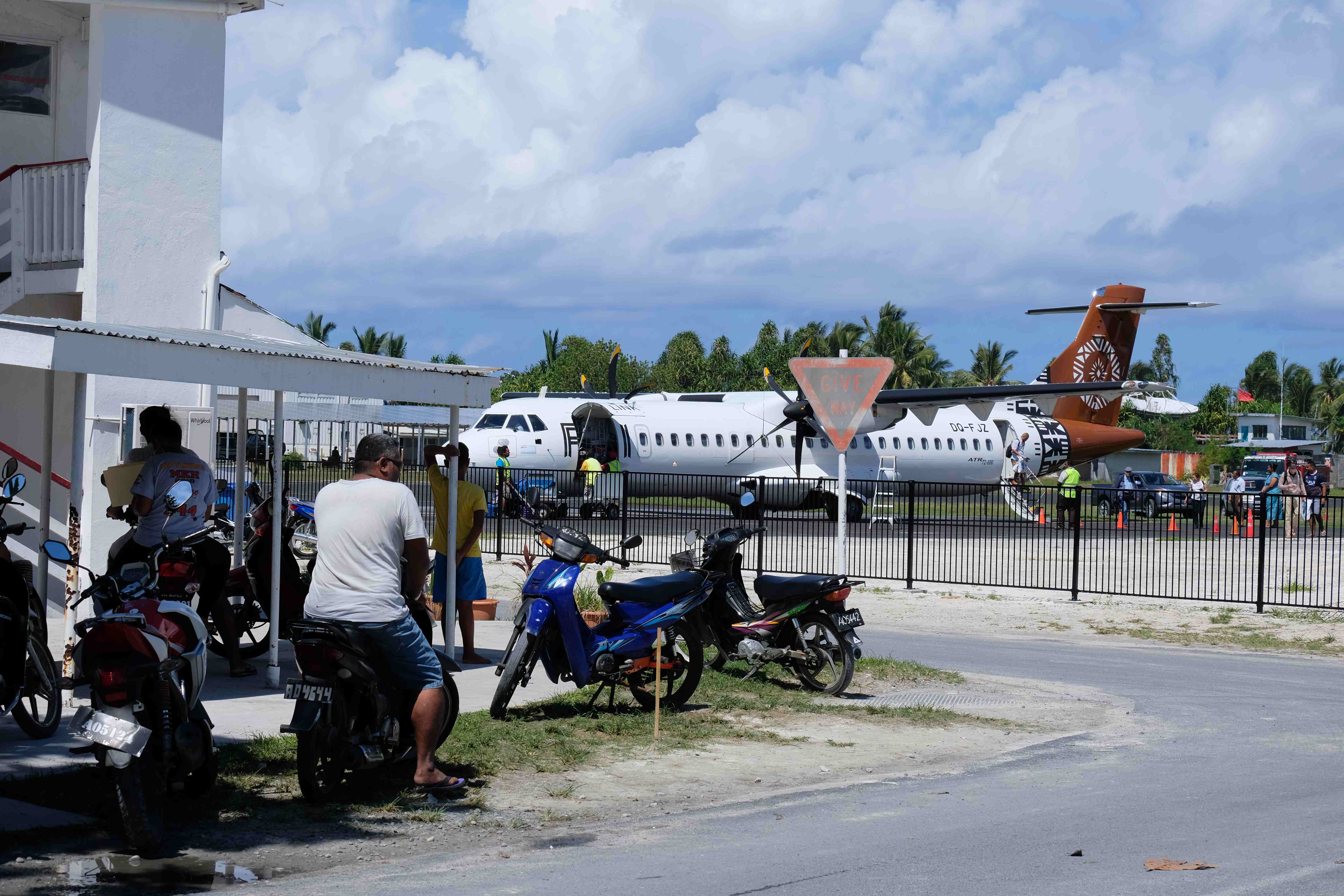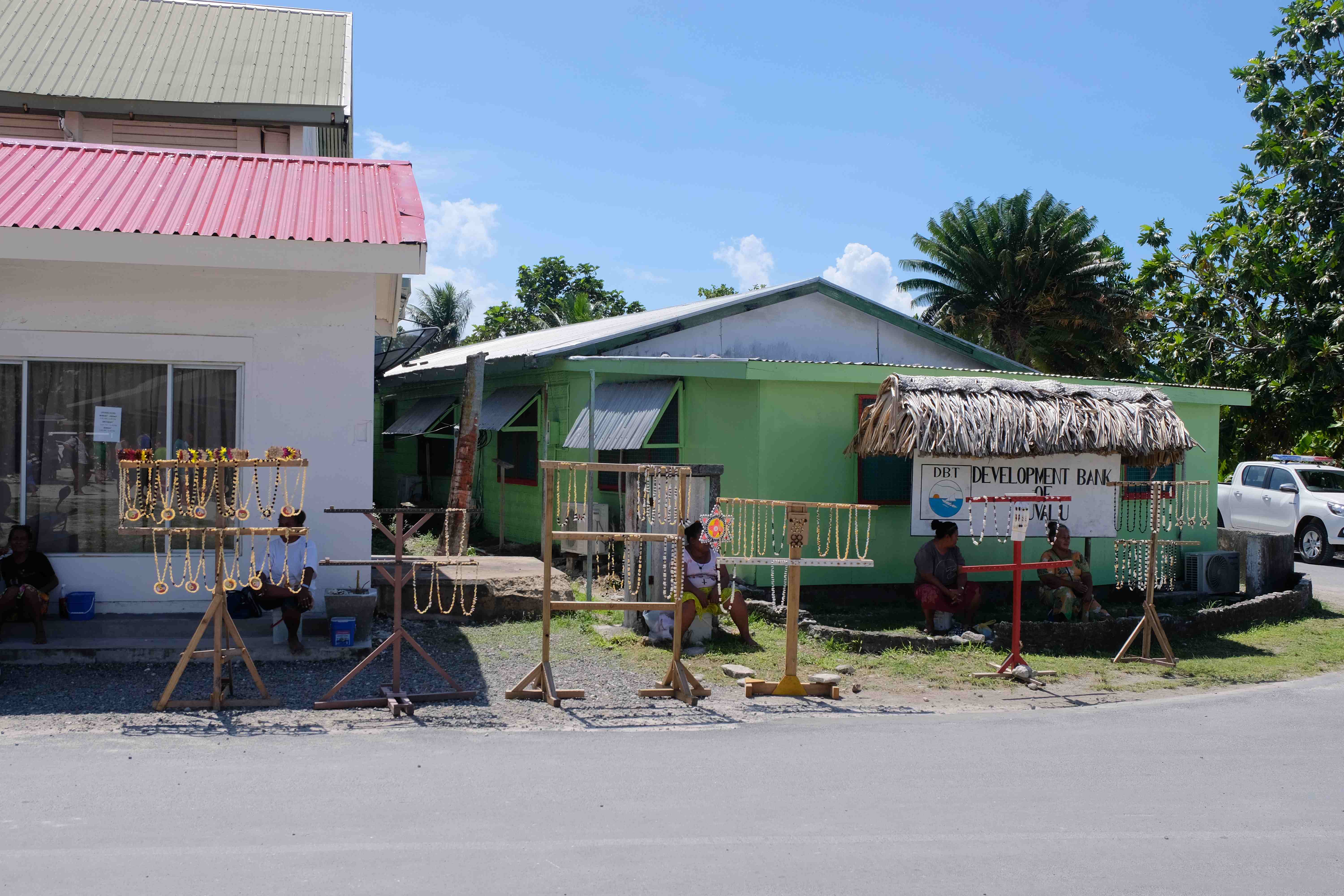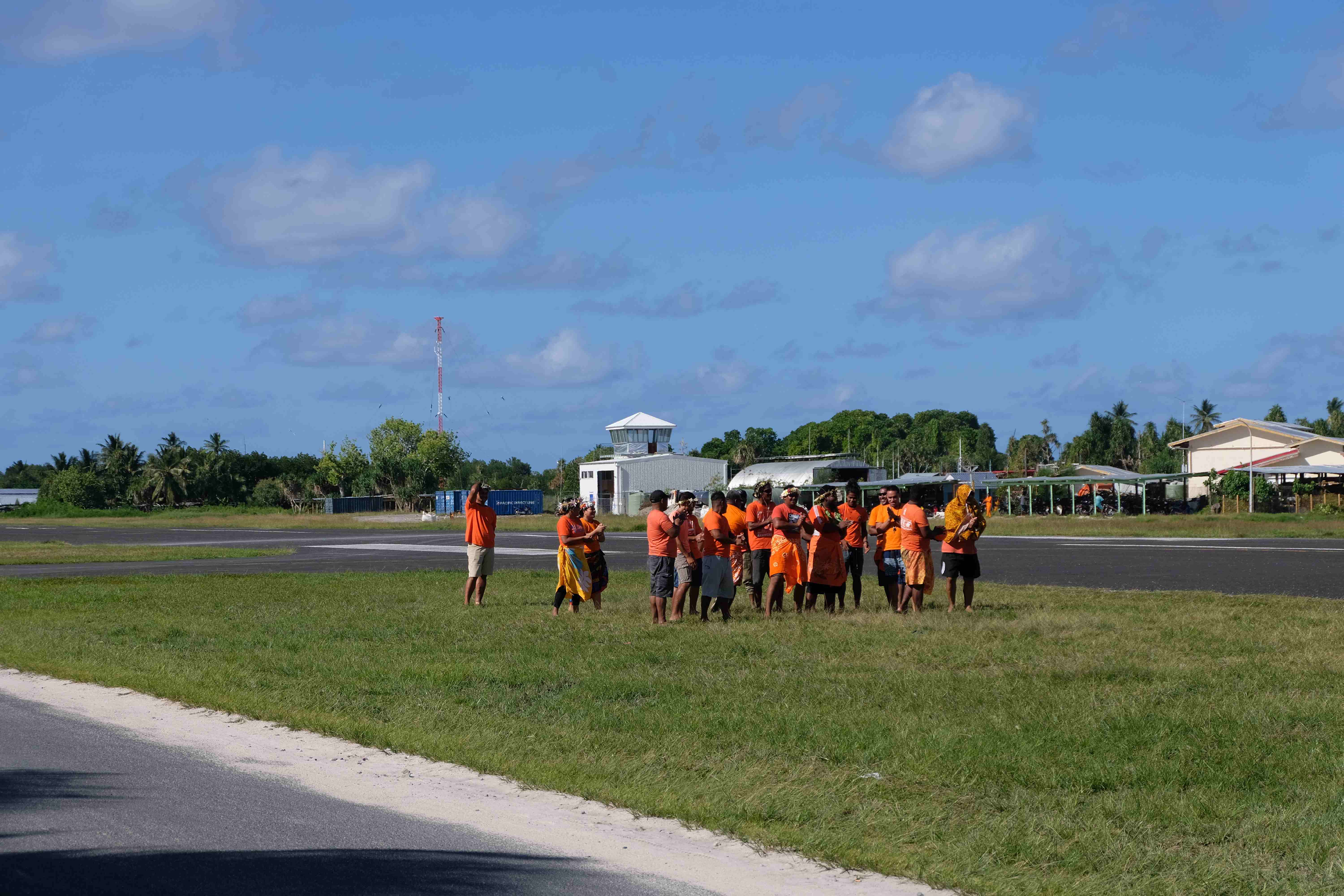 Willkommen in Tuvalu! Das Land, an dessen Nationalbankschalter man zwar direkt von der Landepiste anstehen kann, jedoch keine Geldautomaten beheimatet und in welches man daher mit einer Biege Bargeld einreisen muss; das Land, in welchem man landesweit der einzige Tourist ist, welcher an dem Tag eingereist war; das Land, dessen einziges Hotel sein Auto zum Flughafen geschickt hatte um die Gepäcksstücke der zukünftigen Gäste gerade mal 150 m bis ans Ziel zu fahren: nämlich dem Empfang; das Land, in welchem das Museum für Angewandte Kunst extra für deine Ankunft seine Tore öffnete: nämlich die einheimischen Frauen, welche im Schatten der Flughafenpalmen selbstgemachten Schmuck aus Muscheln verkauften… ein Landfleck im wahrsten Sinne des Wortes, von welchem wir fast keine Erwartungen hatten und welchem es gelang all diese um Welten zu übertreffen.