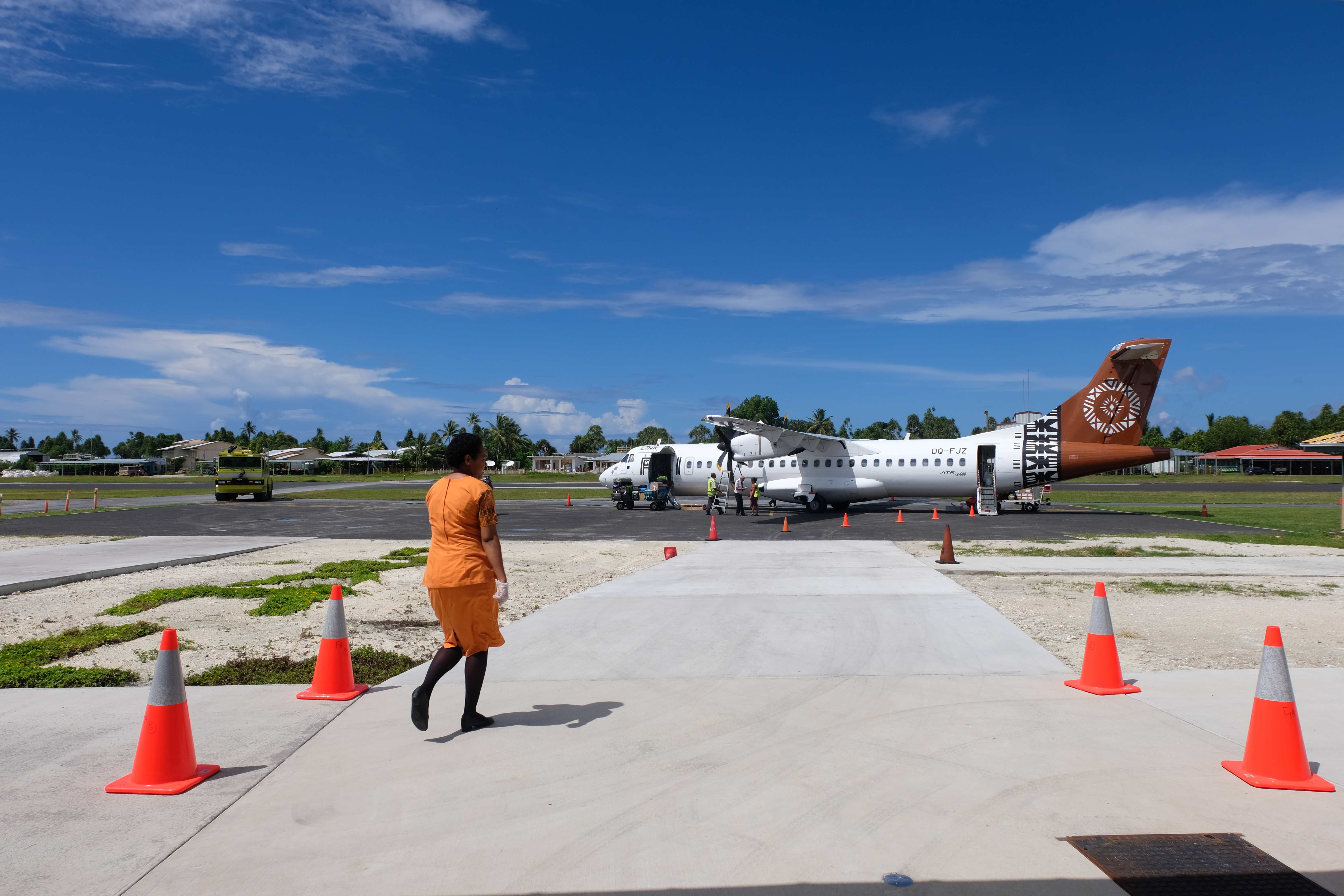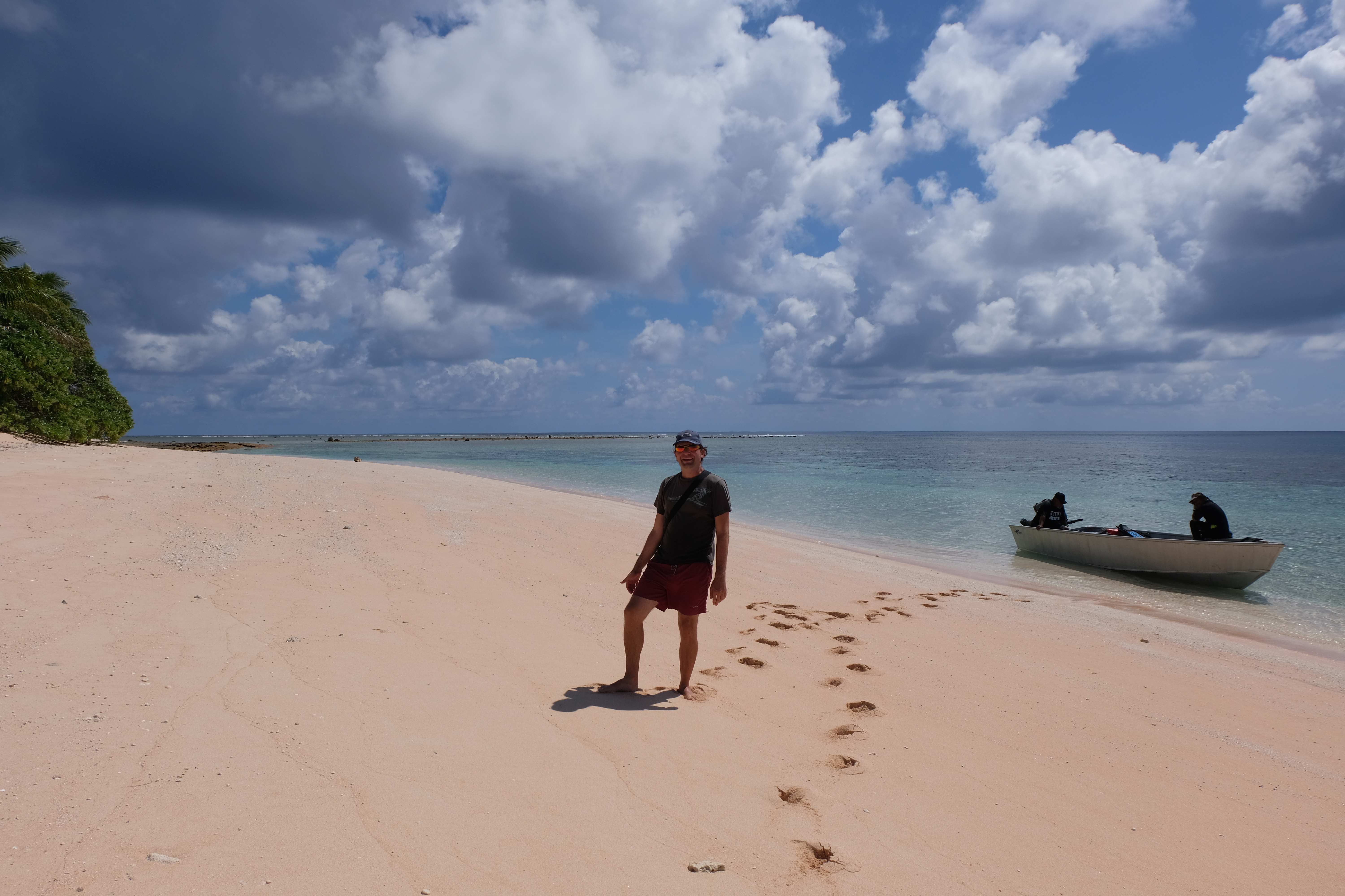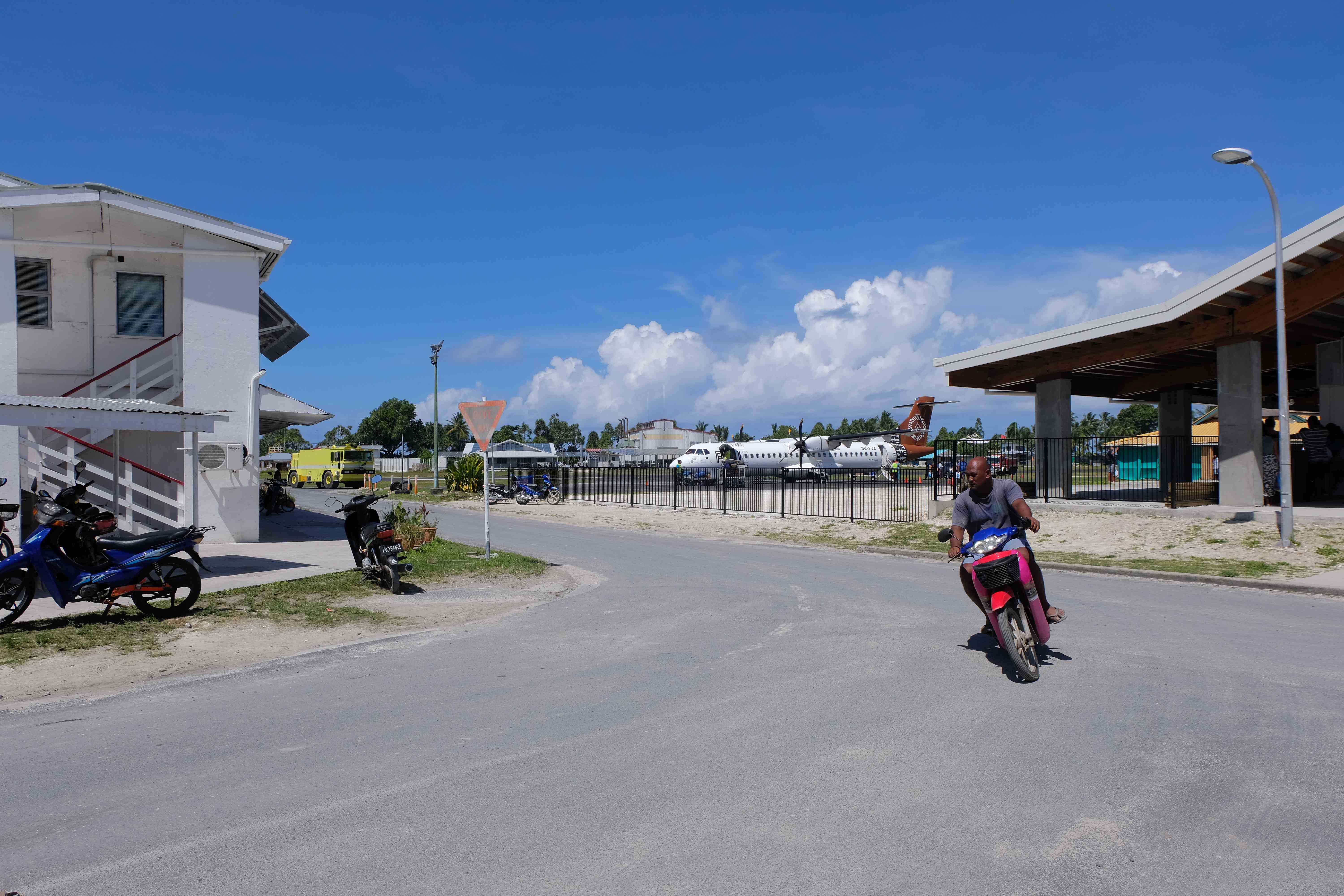 Willkommen in Tuvalu! Das Land, an dessen Nationalbankschalter man zwar direkt von der Landepiste anstehen kann, jedoch keine Geldautomaten beheimatet und in welches man daher mit einer Biege Bargeld einreisen muss; das Land, in welchem man landesweit der einzige Tourist ist, welcher an dem Tag eingereist war; das Land, dessen einziges Hotel sein Auto zum Flughafen geschickt hatte um die Gepäcksstücke der zukünftigen Gäste gerade mal 150 m bis ans Ziel zu fahren: nämlich dem Empfang; das Land, in welchem das Museum für Angewandte Kunst extra für deine Ankunft seine Tore öffnete: nämlich die einheimischen Frauen, welche im Schatten der Flughafenpalmen selbstgemachten Schmuck aus Muscheln verkauften… ein Landfleck im wahrsten Sinne des Wortes, von welchem wir fast keine Erwartungen hatten und welchem es gelang all diese um Welten zu übertreffen.