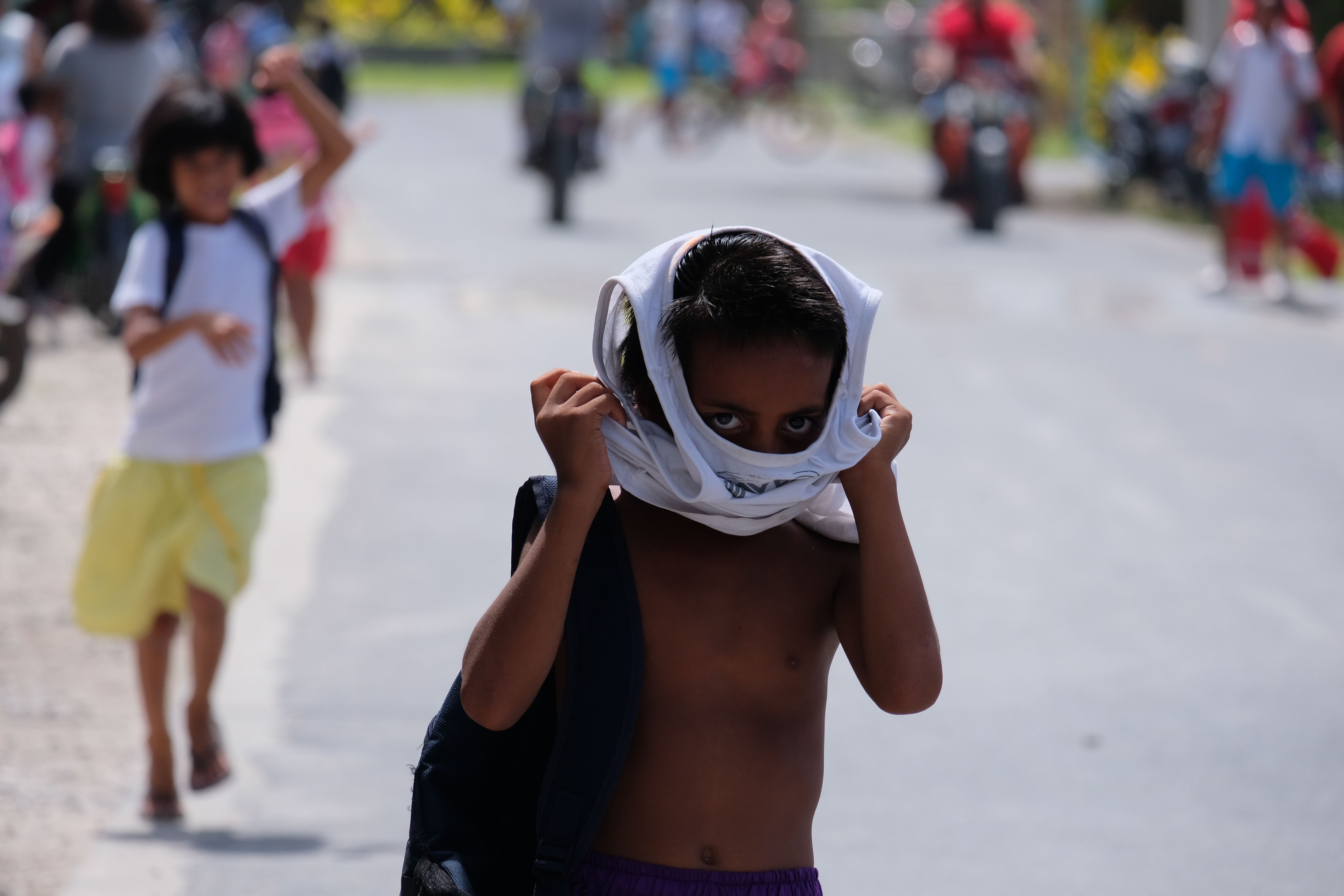 Da wir hier keinen Gastgeber finden konnten (welch Wunder!) kamen wir wortwörtlich nichts wissend an und mussten vor Ort nach einer Bleibe suchen. Nach dem netten Zimmerangebot des einzigen Hotels, welches wir aus homo rucksackus traegerus Finanzgründen ablehnen mussten, liessen wir unser Gepäck dort um uns auf der Suche nach Billigerem zu machen. Während unserer Erkundungsrunde von Gasthaustür zu Gasthaustür durften wir nicht nur ständig im eigenen springbrunnenartig hinunterfliessenden Schweiss duschen – ja, es ist nämlich ein bisschen heiss hier! – sondern uns auch mit den Einheimischen – vor allem mit den entlang der Strasse spielenden Kindern, welche uns bereits beim Namen nannten – anfreunden. Unsere Geduld und Perseverenz wurden schliesslich belohnt: wir fanden nicht nur den Geheimtipp der Insel, sondern auch den günstigsten und für uns luxuriösesten Ort! Während wir die gleiche (ziemlich lange) Strecke nun mit den Gepäcksstücken zurücklegen mussten, lächelten uns die Einheimischen ständig an: ob sie unsere Anwesenheit dermassen sympathisch fanden oder eher unseren nassen Schleppesel-Anblick sie belustigte, das sei dahingestellt! 🙂