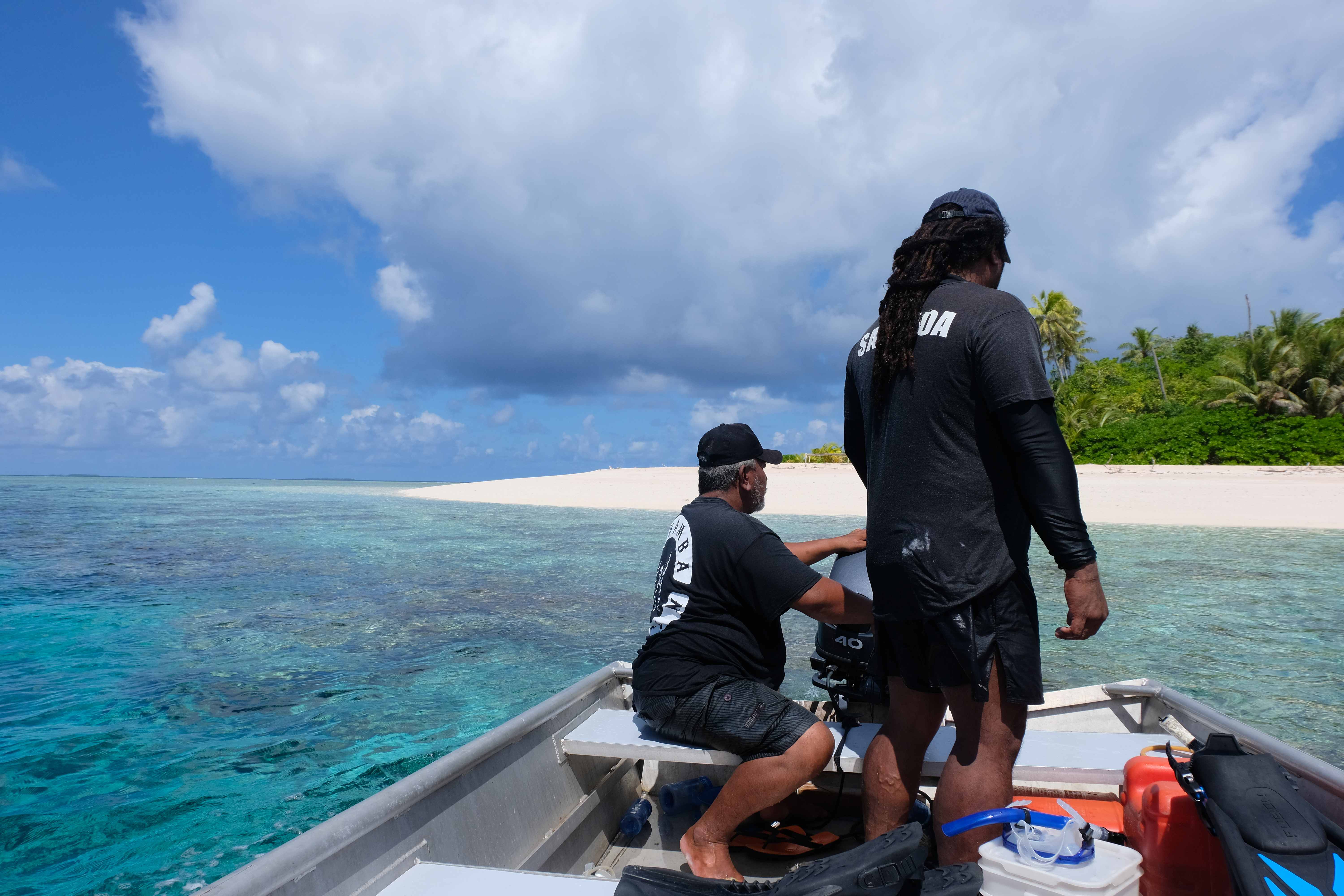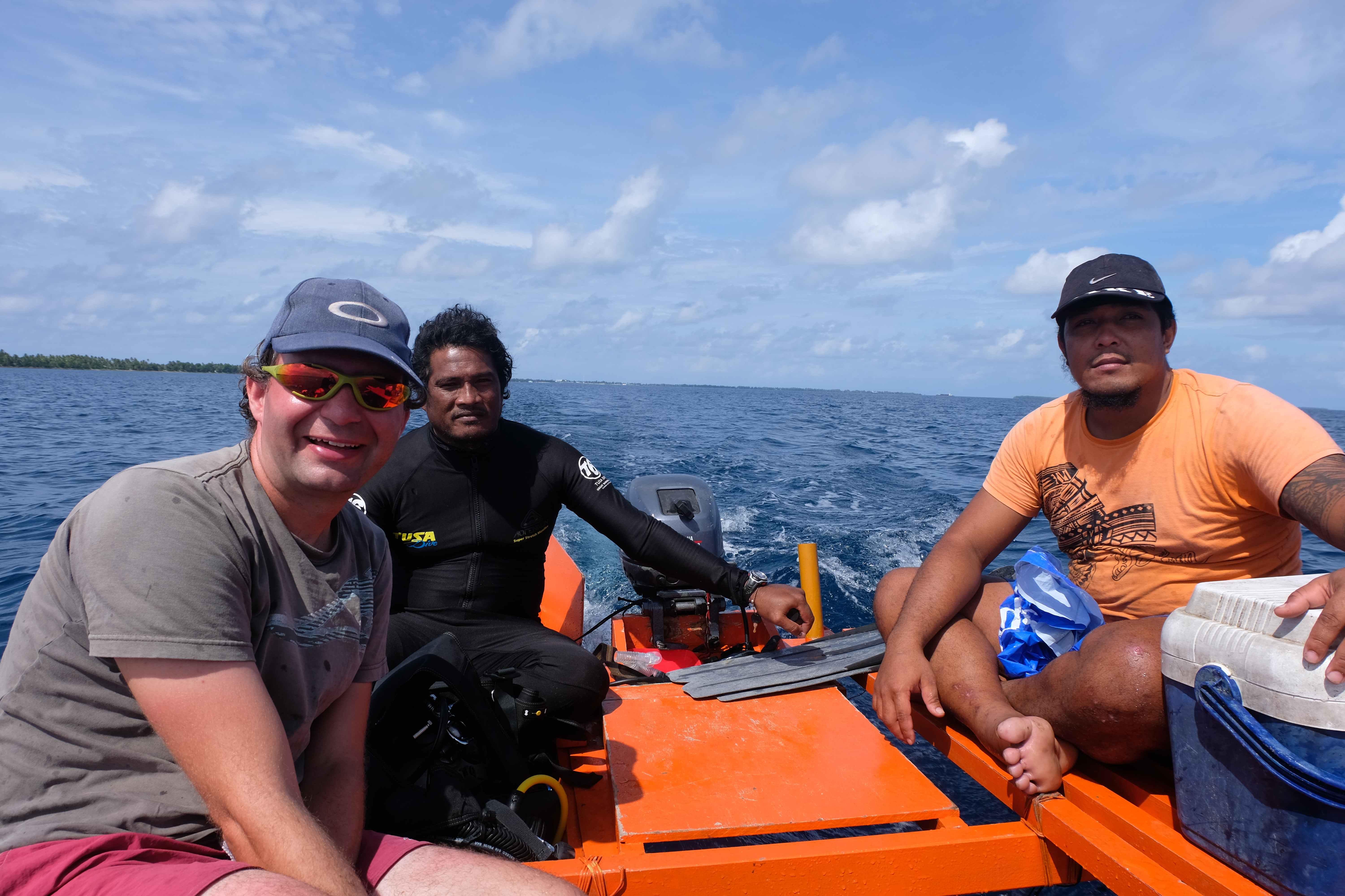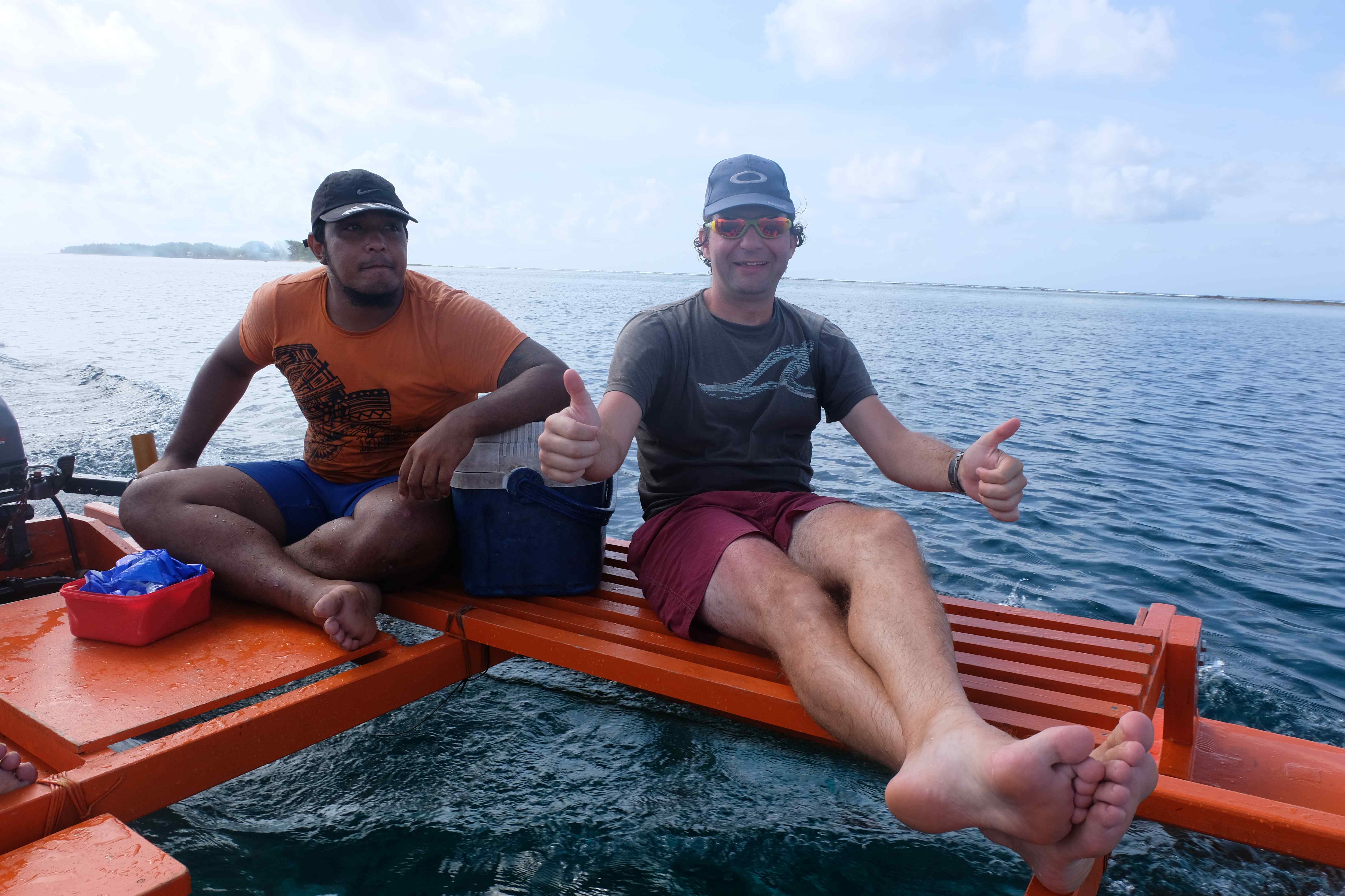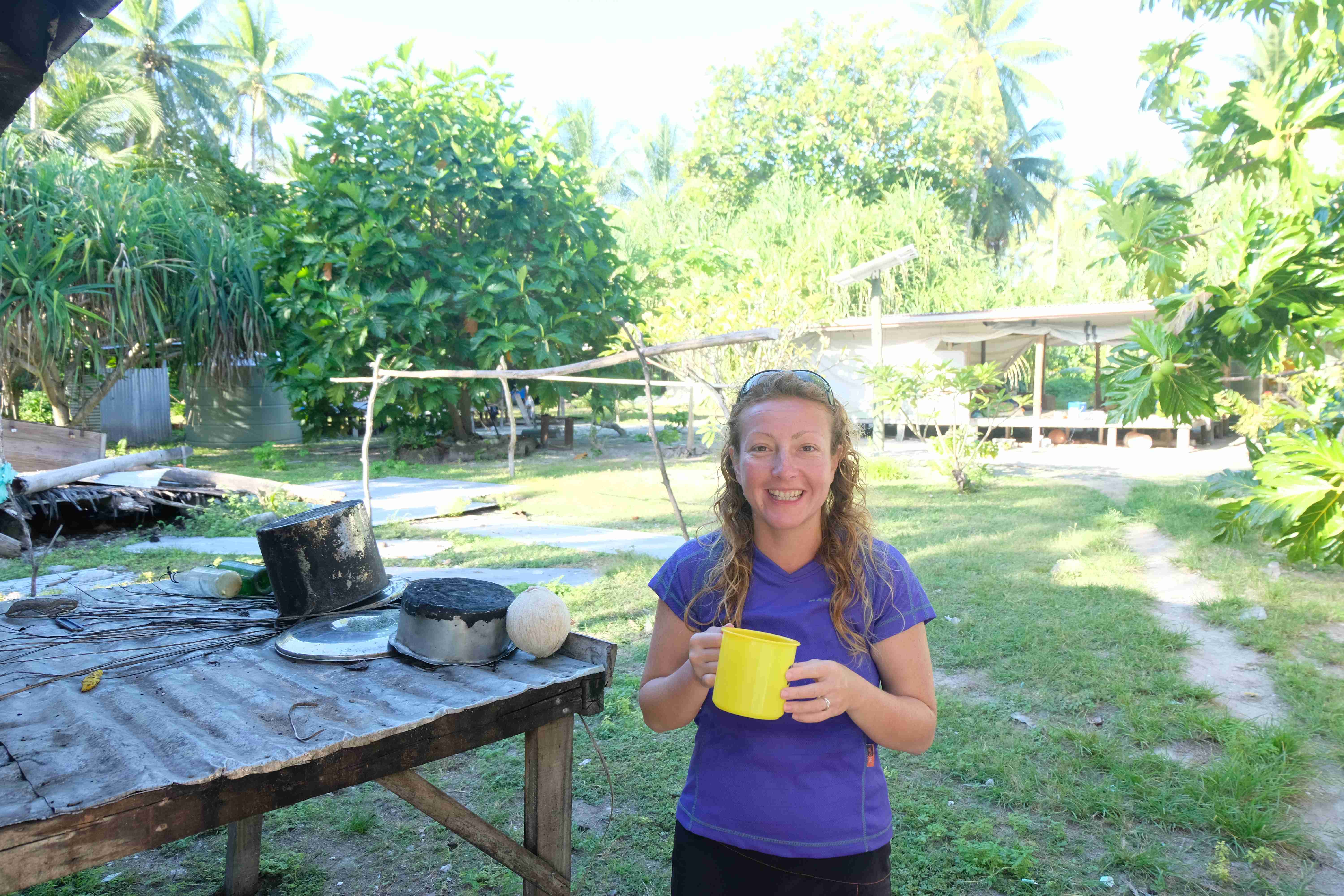 Nicht nur unglaubliche Taucherfahrungen und gratis Kokosnuss-Lieferdienst erhielten wir von unseren zwei Tour Leitern, sondern auch nützliche Ratschläge bezüglich ihrer Nachbarn: während wir uns vor den „Fijians“ und den „Kirbats“ in Acht nehmen sollten, da sie keine guten Menschen waren, sollten Staaten wie Samoa oder  Tonga kein Problem darstellen. Ihre Beschützer-Rolle verwandelte sich langsam in ein Freundschaftsangebot, welches sie unbedingt mit einem Geschenk markieren wollten. Erinnert ihr euch an den Red Toddy, den gekochten Palmensaft? Nun ja, wir sollten eine Flasche davon von ihnen erhalten. Allerdings teilten sie uns sehr seriös mit, dass wir ein offizielles Papier bräuchten, um diese bis in die Schweiz zu transportieren – nämlich eine Bestätigung von dem Landwirtschaftsministeriums Tuvalus für allfällige Zollkontrollen, dass wir berechtigt sind, dies mitzuführen. 🙂