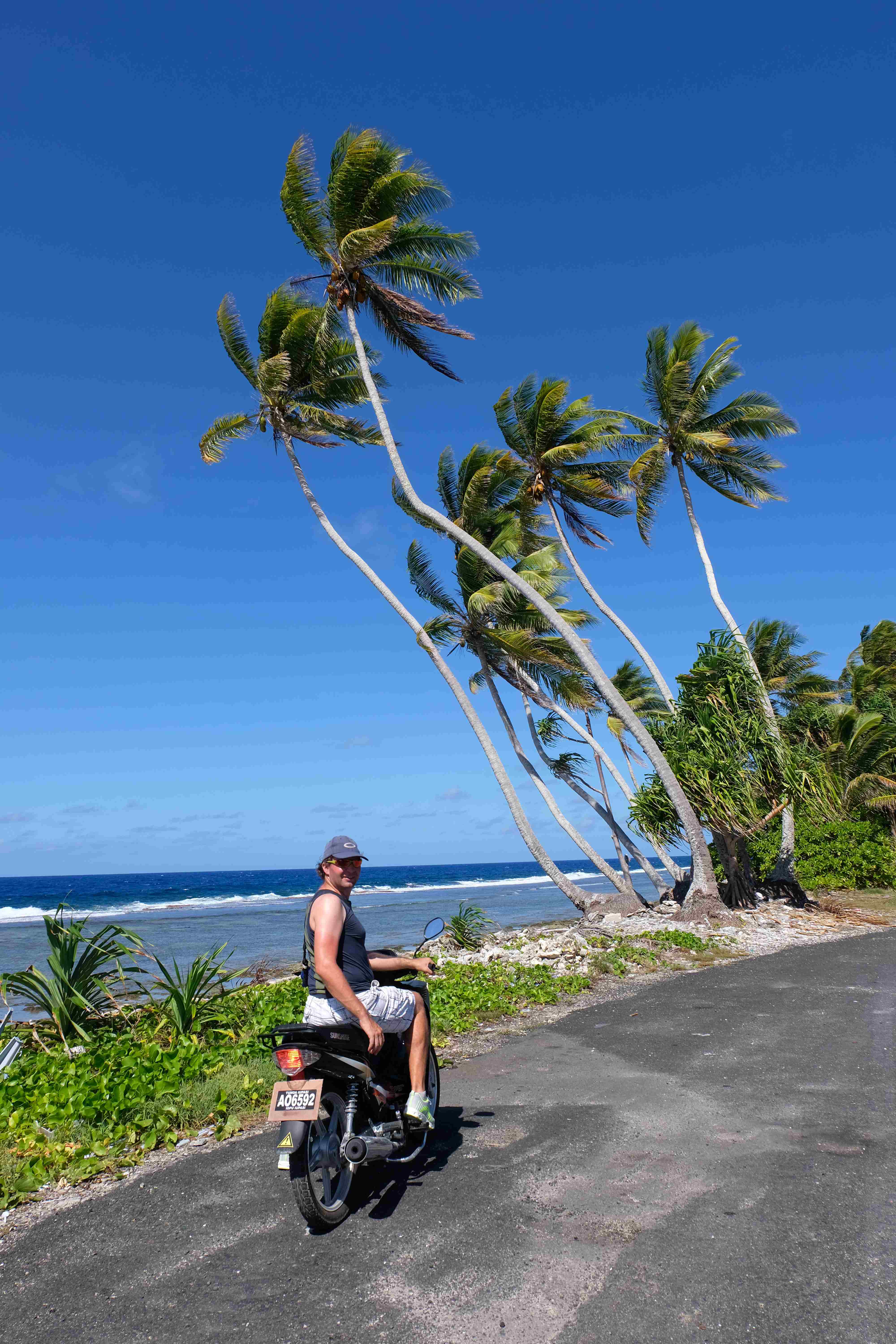 Froh und munter machten wir uns auf Entdeckungstour: es fehlte uns das Briefmarken-Museum (welches tolle Briefmarken vor unter anderem für Patric hatte!) und  noch die zweite Hälfte der Insel, also mieteten wir ein Scooter und nichts wie los. Nach einer etwa 10-minütiger Fahrt bereits am Ende des Landfleckes angekommen, stellten wir fest, dass die Mehrheit der Scooter fahrenden Einheimischen dies regelmässig zum Langeweilevertrieb und zur Abkühlung tat: die Insel hin und her mit einem motorisierten Fahrzeug zu befahren, den Wind in den Haaren geniessen und vermutlich davon sich dabei vorstellen, auf einer ewig langen Hauptstrasse irgendwo zu sein. 🙂