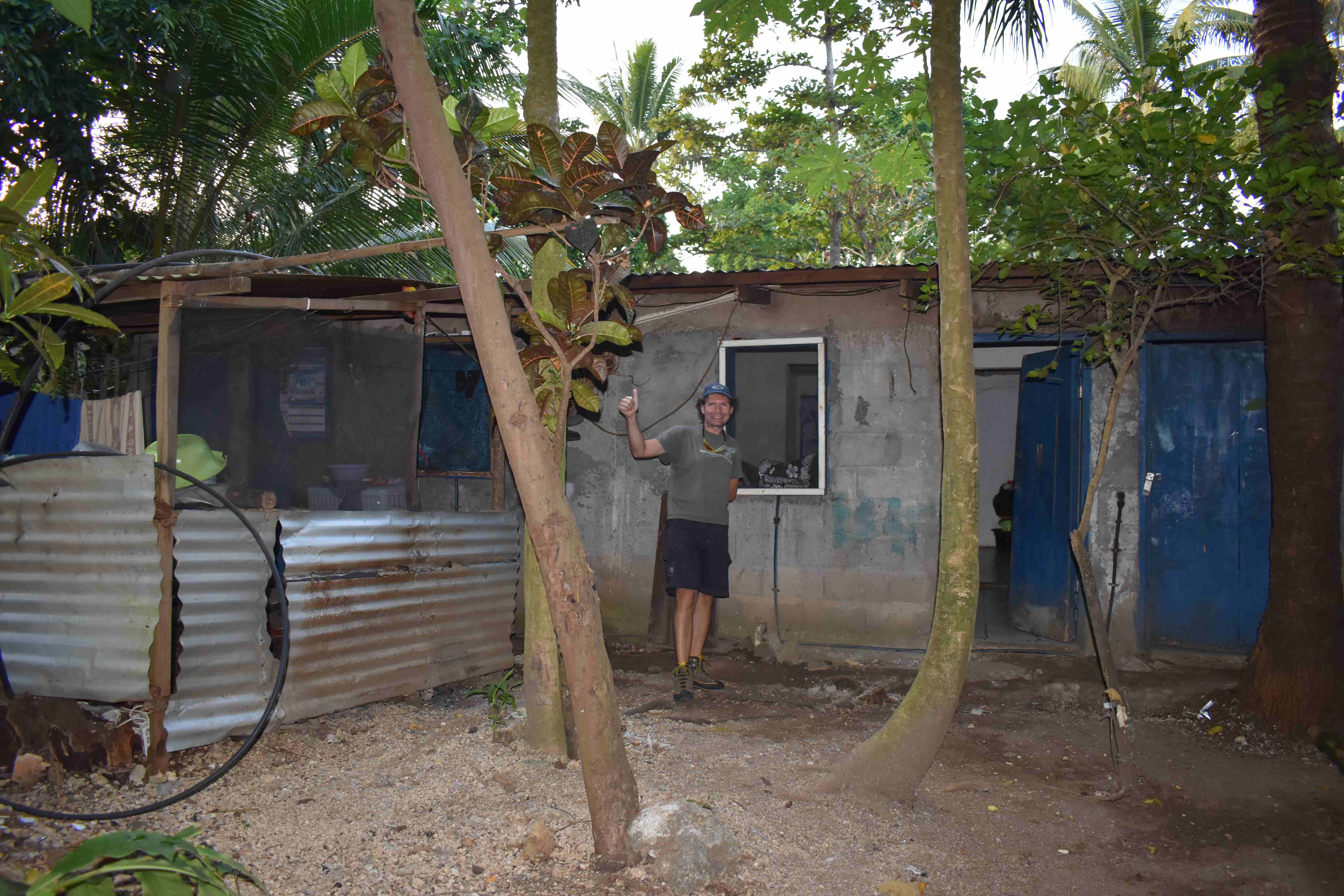 Was wir allerdings nicht fanden war unser Gepäck. Bei der Ankunft in Port Vila, der Hauptstadt Vanuatus, wurde uns freundlich mitgeteilt, dass wir zwar da, unser Gepäck aber noch in Fiji sei. Der Grund soll das Übergewicht des vollen Flugzeuges gewesen sein – ok, es stimmt schon, ich hätte auf diesem Flug problemlos als Buschi oder als Haustier reisen können, wenn man bedenkt was für Gewichtsangaben auf der Check-in Liste standen – und ja, ich meine tatsächlich Gewichte und nicht nur Namen, da wir vor dem Einsteigen ins Flugzeug alle brav auf die Waage mussten. Aufgrund der – lasst uns gemein sein – mit dem Flugzeug beförderten Walmigration, zogen unsere Gepäcksstücke den Kürzeren und mussten infolge der Entscheidung des Piloten ausgeladen und bis am darauffolgenden Tag in Fiji gelagert werden. Also standen wir da, mit dem was wir anhatten als Garderobe, mit unserer Elektro-Hightec-Sammlung laufender und nicht mehr laufender Geräten, welche es geschafft hatte mitzureisen, da sie sich im Handgepäck befand und… mit der Hoffnung auf eine schöne, entspannende Dusche zuhause bei unserem Gastgeber. Nun ja, die Hoffnung stirbt zuletzt, aber irgendwann gibt sie den Geist auch auf. Unser Gastgeber, ein sehr netter, etwas komischer, meistens mit geschlossenen Augen sprechender Oberhaupt einer Mehrgenerationen-Familie und eindeutig besessener Kirchengänger – ja, die Missionare knackten hierzulande, wie in fast allen pazifischen Inseln, den Jackpot – fuhr uns zu sich nach Hause. Hier lernten wir die gesamte Familie – gefühlt das gesamte Dorf – kennen: von den 80-jährigen Eltern bis hin zu den Säuglingskindern des Bruders, der Nachbarhund, die Ratte aus den Gassenkanalisation und die Kakerlaken aus der Badezimmerregion waren ebenfalls anwesend – ob zwecks Teilnahme am gemeinsamen Gebet vor dem Essen oder um uns willkommen zu heissen, das sei dahingestellt. Ach, da hätte es doch so tolle Portrait- und Fotografie -Gelegenheiten gegeben, aber eben, wenn man lediglich über eine Nikon-Kamera verfügt, die es mit der Detailschärfe nicht so auf die Reihe kriegt, da lässt man es ab und zu lieber sein, seufzt nostalgisch an die alte, sich im Handgepäck zusammen mit etwas Salzwasser befindende Fuji-Erste Liebe und schreibt eher komische Blog-Beiträge, um Nikon-Liebhaber aus dem Freundeskreis zu nerven. 🙂 Nachdem wir gefüttert wurden, ging es ab in unsere königlichen Gemächer. Na ja, ehrlich gesagt hatten wir nichts gegen die lediglich am Boden liegende Matratze, der aufgrund der hohen Feuchtigkeit entstandene Schimmelgeruch der Kissenbezüge und die uralten Decken störten uns auch nicht gewaltig. In Anbetracht der Tatsache, dass sich die Mücken mit Mosquito-Spray, die Ameisen durch das Nichtauspacken von Essen und die Kakerlaken mit dem Licht vertreiben liessen war es ja sogar ein Vieher-freier Ort. Die einzigen Sachen, die wir – unter den jetzigen Umständen – als problematisch empfanden, war der Strom- und somit Lichtmangel im Zimmer (da ich in Port Vila eigentlich vorhatte 5 Tauchspezialitäten und den Rettungstaucherkurs zu besuchen, musste ich ebensoviele Bücher lesen, was hier schwierig bis unmöglich werden könnte) sowie die nichtexistente Dusche. (ja, wir hatten bereits an vielen Orten mit Wasser aus einem Eimer geduscht, aber hier war es kalt, wirklich kalt und wirklich eklig!) Ausserdem sollte unser Gastgeber – wie es sich später herausstellte – durch seine Bugger-Babysitter-Beschützer- und im Stil „hallelujah, lass mich eure Nerven und eure Geduld testen“ religiös-polizeiliche Bodyguard-Art ebenfalls ein Problem werden, welches wir vermeiden wollten. (übrigens, Cosmin hätte ihn geliebt! :-)) Also entschieden wir uns nach zwei Nächten – und wieder in Empfang genommenem Gepäck – mit einer (zugegebenermassen erfundenen) Ausrede abzuhauen und unsere Residenz zu verlegen.