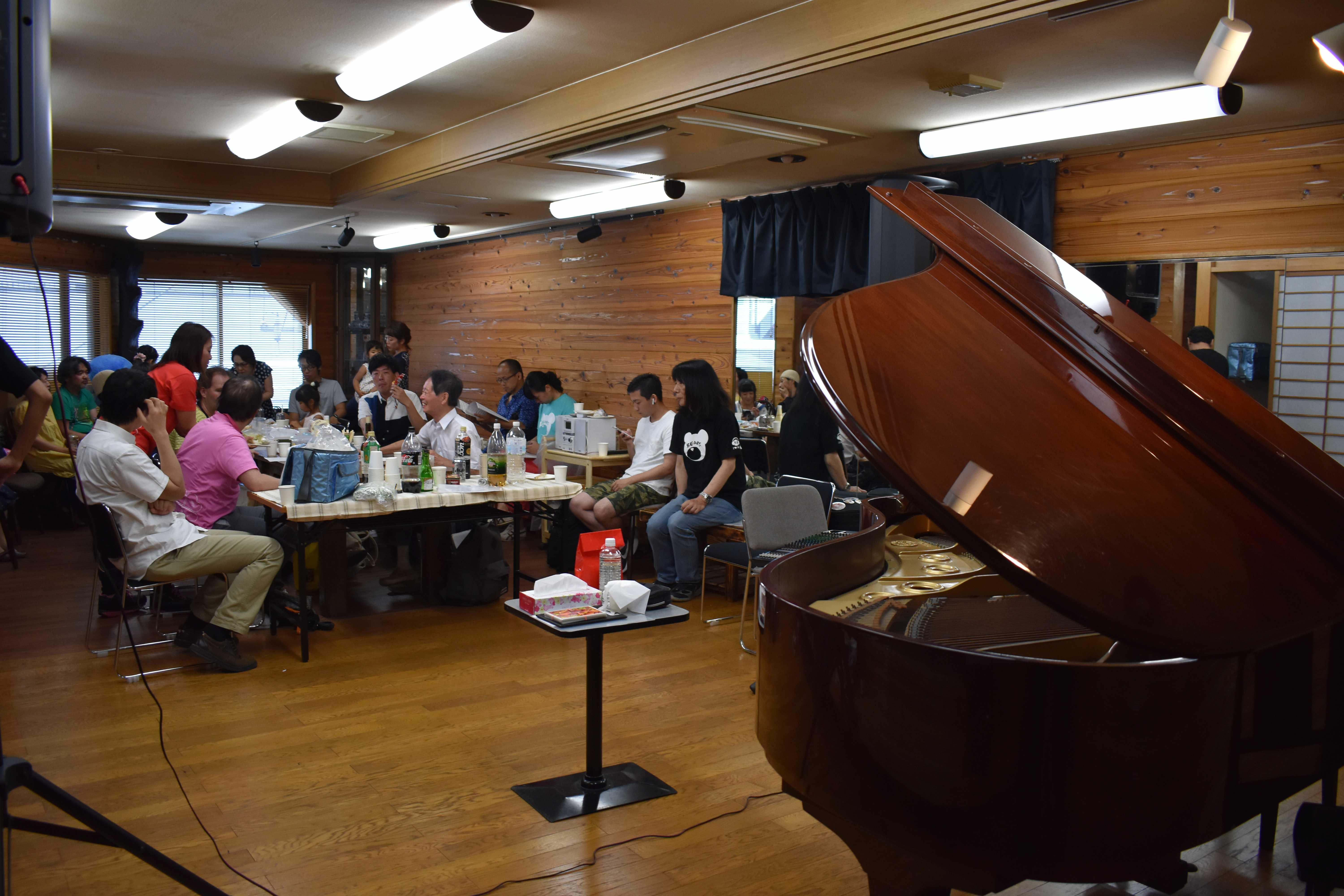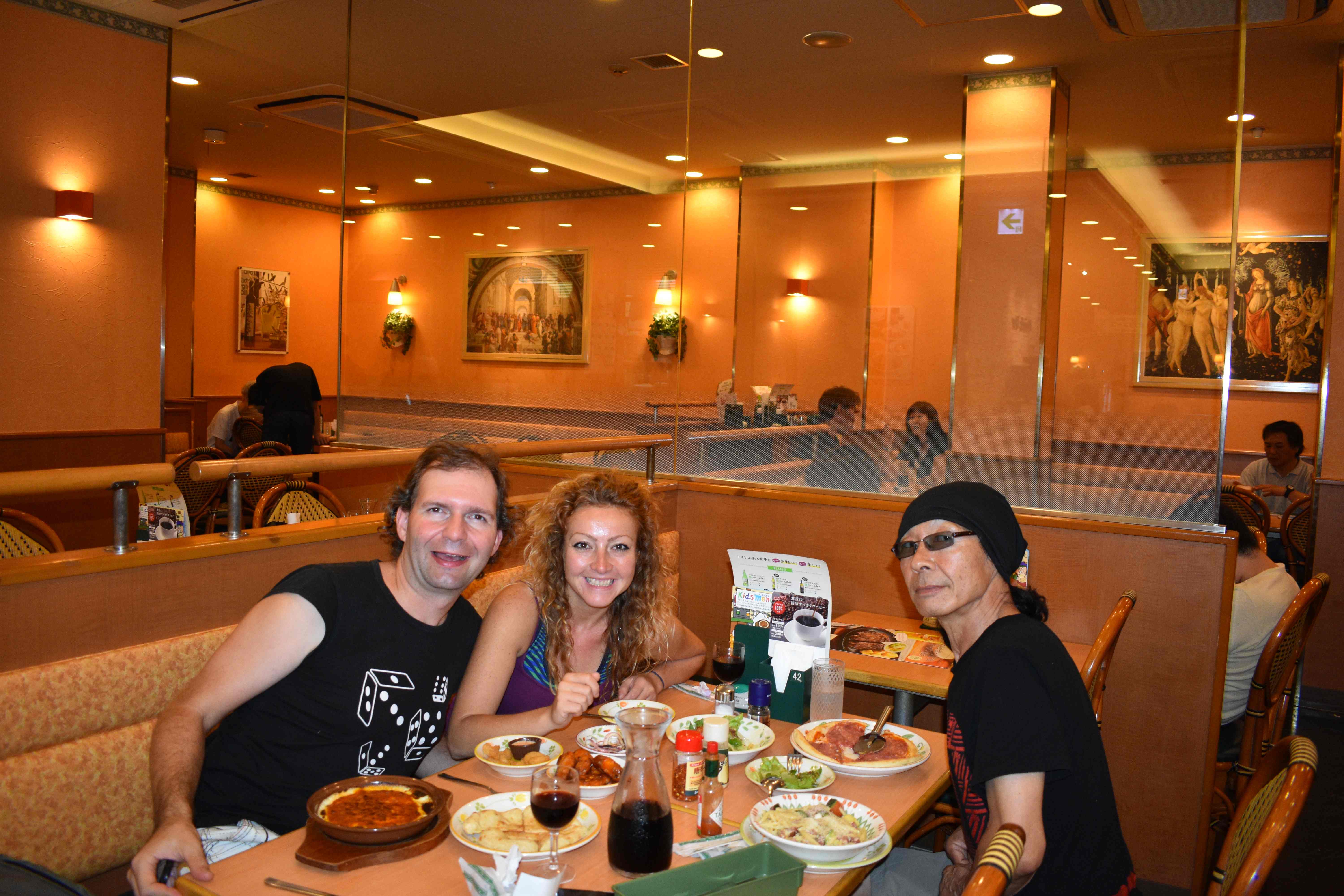Guten Morgen aus Tokyo! Und wir meinen richtig Morgen, da wir bereits um 6 Uhr am Bahnhof sein mussten, um den Zug nach Tokyo nicht zu verpassen. Der Grund für die sehr frühe Aktion: die Schüler der Frau unseres Gastgebers in Tokyo – eine Musiklehrerin – hatten am Mittag eine kleine jährliche Aufführung in ihrer Musikschule, an welcher wir ebenfalls eingeladen wurden. Ok, Zeit mal richtig einheimische Japan-Luft zu schnuppern! 🙂 Nachdem wir unseren Gastgeber – einen spindeldürren, nervösen, japanisch angehauchten Speedy Gonzalez – kennenlernten, wurden wir von diesem höchstpersönlich in die Musikschule seiner Frau eskortiert und es konnte losgehen! Ok, stellt euch das folgendermassen vor: Musik, Trinken und Essen, alles in Einem. Denn es war Mittagszeit, also Essenszeit. Zuerst wurde schön der Magen gefüllt – je nach Präferenz: die einen mit Essen, die anderen mit Bier und Sake – und nachher wurde vorgeführt. Die Hauptakteure bunt gemischt: herzige Kinder, welche – je nachdem – mit mehr oder weniger Selbstvertrauen ihre ersten Fähigkeiten im Klavierspielen zur Schau stellten und sich auf die darauf zur Belohnung erhaltenen Plüschtierchen freuten; alte Hasen, welche französische Chansons mit der gleichen Aussprache sangen, wie der ehemalige rumänische Präsident als er Englisch sprach; junge Leute, welche a capella auftraten und die Noten sehr modern vom Natel-Bildschirm ablasen und dort verirrte Europäer, welche vor dem Auftritt vor Lampenfieber in Tränen ausbrachen. Kurz und bündig – um unseren Gastgeber zu zitieren: eine Freak-Show! 🙂