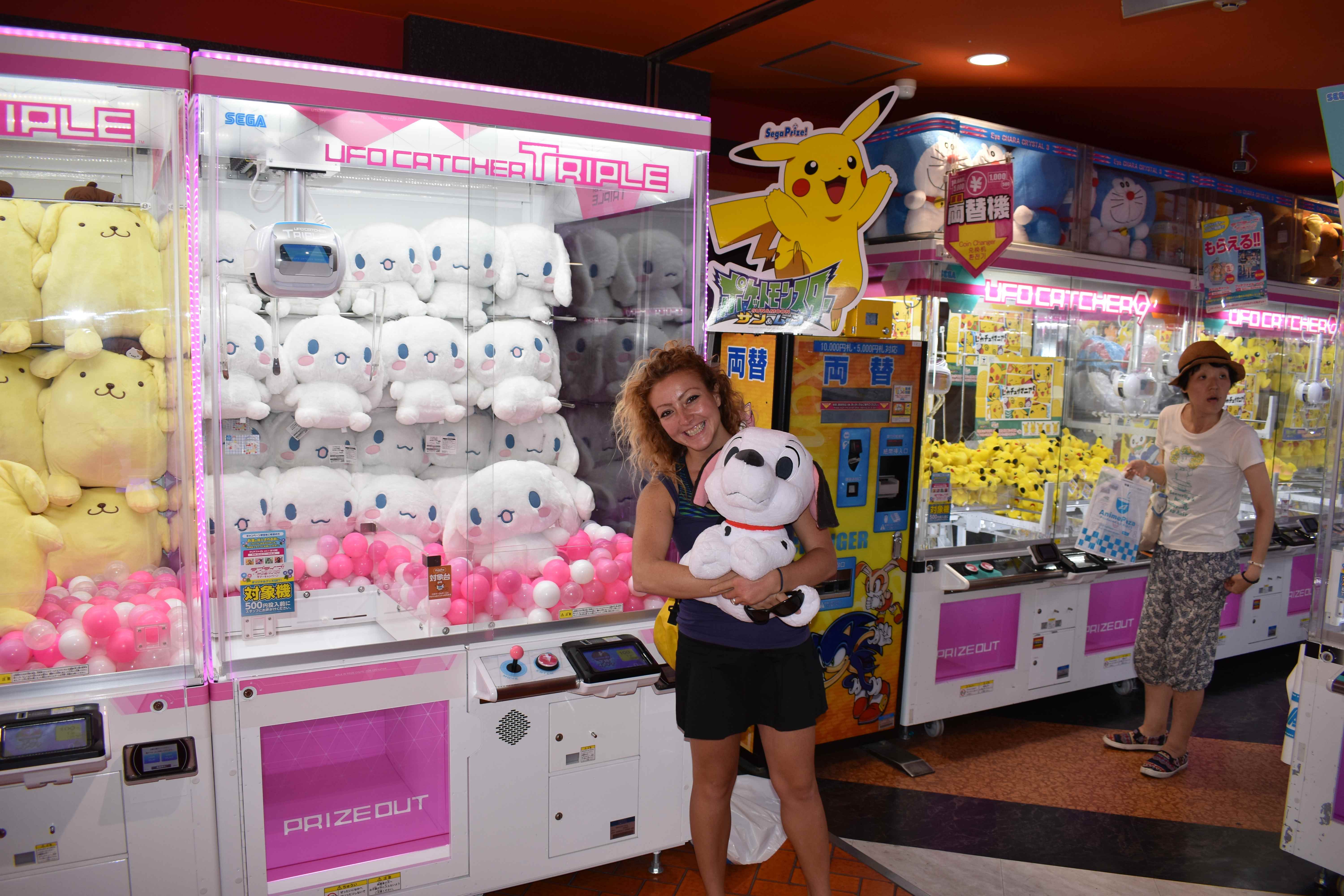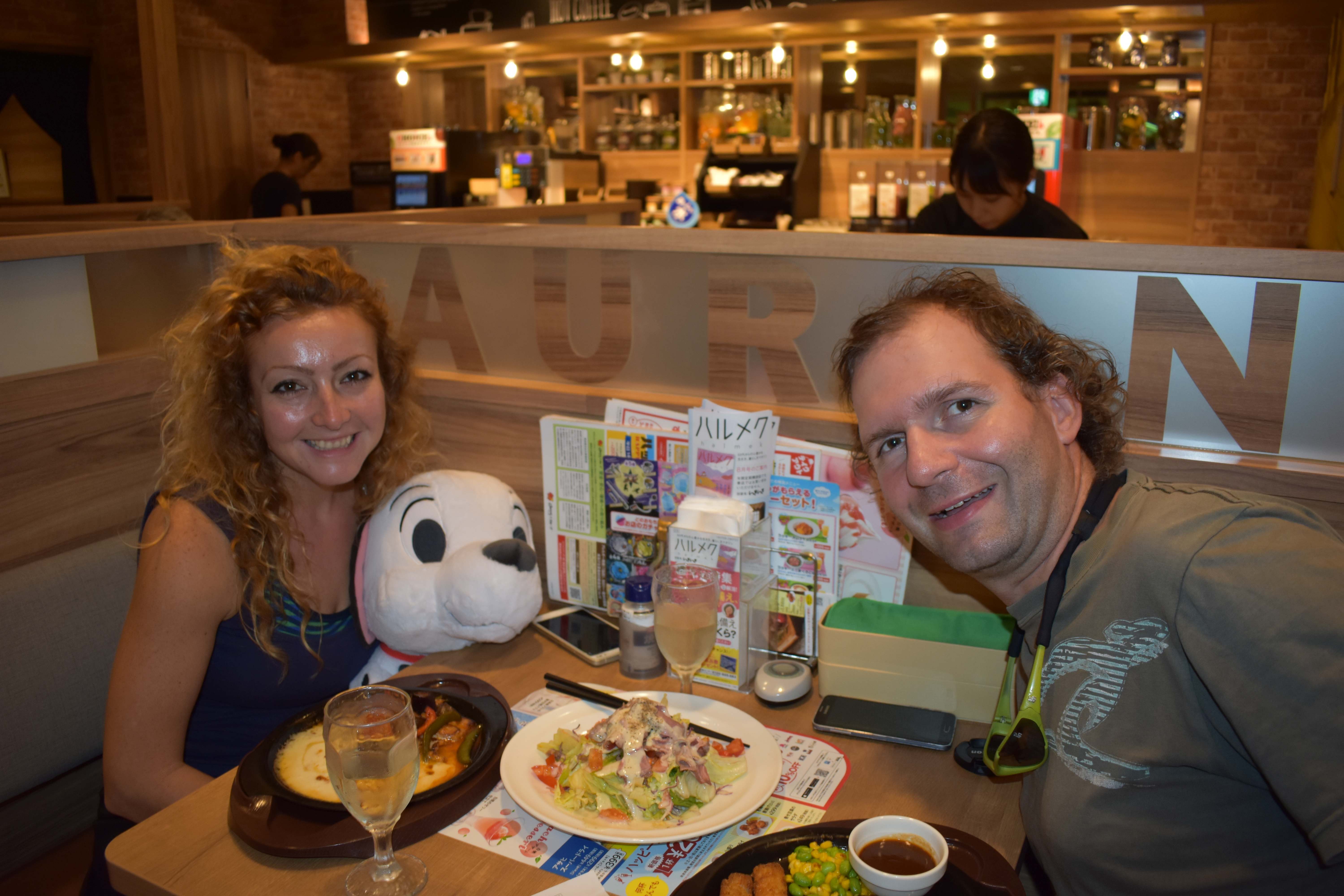 Nach einem ersten Morgen, an dem wir ausschlafen konnten – ach ja, gute Nachricht: die Tokyo-er Gastgeber sind die etwas langfristigere Lösung: wir durften je 4 Nächte bei einem bleiben! – wollten wir – was sonst! – das sehen, wofür Japan sehr berühmt und Tokyo ein Mekka sein soll: Roboter, heilige Stätte für Gamer, Manga- und Anime-Comics besessene, Paradies der Elektronik-Shops mit jeglichem Angebot: von hochwertigen Produkten bis hin zu unvorstellbarem Schrott und DER Ort für verrückte Themen-Cafés. Also ab ins Akihabara Electric City. Unsere Neugierde wurde in sämtlichen Punkten gesättigt, ausser im Bereich Roboter. Heilige Stätte für Gamer: ja, durchaus! Die unvorstellbarsten Gaming-Anlagen auf mehreren Stockwerken mit den verrücktesten Spiel-Automaten sind ein Augenfang für Neulinge wie wir: von eleganten Anzugträgern in ihrer Mittagspause bis hin zu kindisch angezogenen jungen Frauen, das vom Gamen besessene Publikum lässt keine Wünsche offen. Manga- und Anime Besessene kommen hier ebenfalls auf ihre Kosten: tausende Exemplare von den bizarrsten Publikationen findet man in jedem zweiten Laden: von harmlosen, herzigen Kinder-Geschichten zu kitschigen Stories und echten Porno-Bänden mit Manga-Figuren… diese Welt ist definitiv eine japanische Einzigartigkeit! Elektronik-Shops mit einem unglaublichen Angebot: von Top zu Schrott – here we are! Man kann im gleichen Laden 1-USD made in China batteriebetriebene Hand-Ventilatoren kaufen und eine Hasselblad- oder Leica-Profikamera in Wert von 30.000 USD in der Hand halten. Verrückte Themen-Cafés gefällig? – einfach der Hauptstrasse entlang laufen: die verkleideten Japanerinnen, welche dafür werben, werden euch den Weg schon zeigen. Etwas Katzenliebe nötig? Ein klarer Fall für den Besuch des Cat-Cafés, in dem man einfach Katzen streicheln kann während man zufrieden aus der Kaffeetasse schlürft. Einfach eine verrückte Welt! Wie gesagt, alles was das Herz begehrt, ausser Roboter! Achtung: wer nach Japan – oder gezielt nach Akihabara reist in der Hoffnung ein völlig automatisiertes Land zu sehen und von Robotern an jeder Strassenecke begrüsst zu werden, der lebt in einer Seifenblase. Entgegen des allgemein verbreiteten Eindruckes, ist dies in Japan nicht der Fall. Roboter sind äusserst spärlich anzutreffen und man muss diese sogar suchen. Was macht man dann, wenn man auf Roboter-Suche geht und keine findet? Man spielt halt bei den Slot-Maschinen, bis einen neuen Reisegefährten gewinnt: es ist mir eine Ehre unseren neuen Begleiter vorzustellen! 🙂