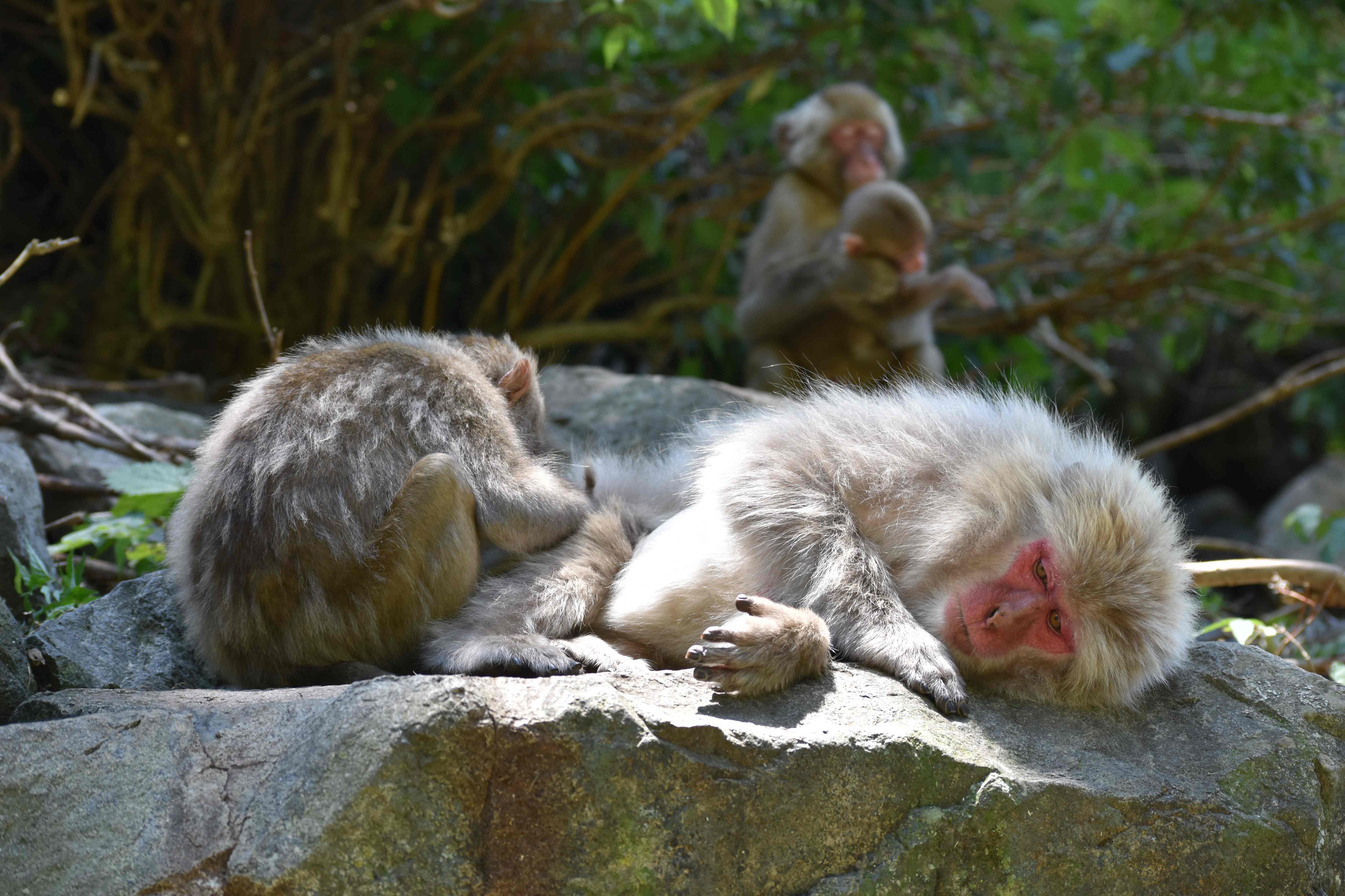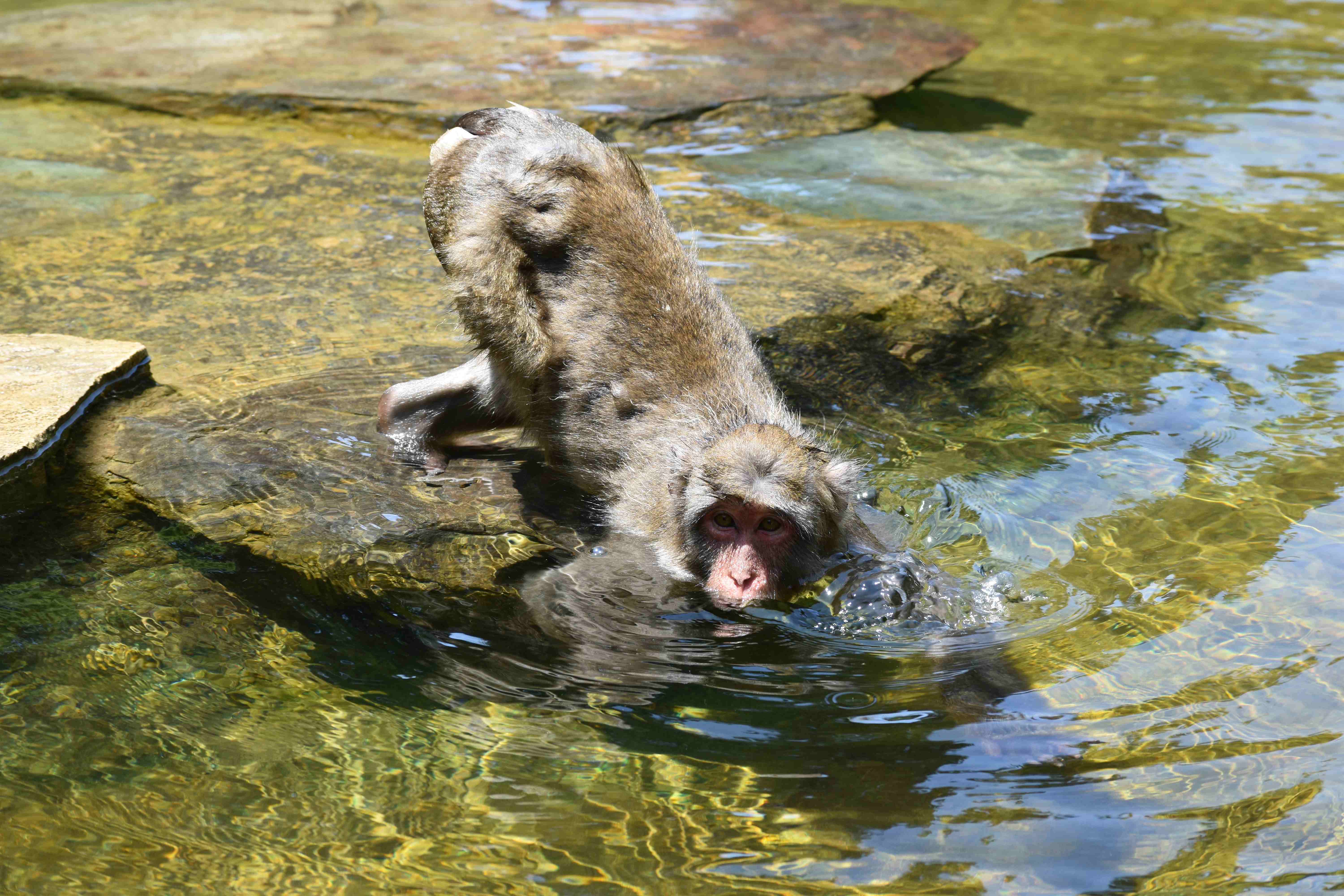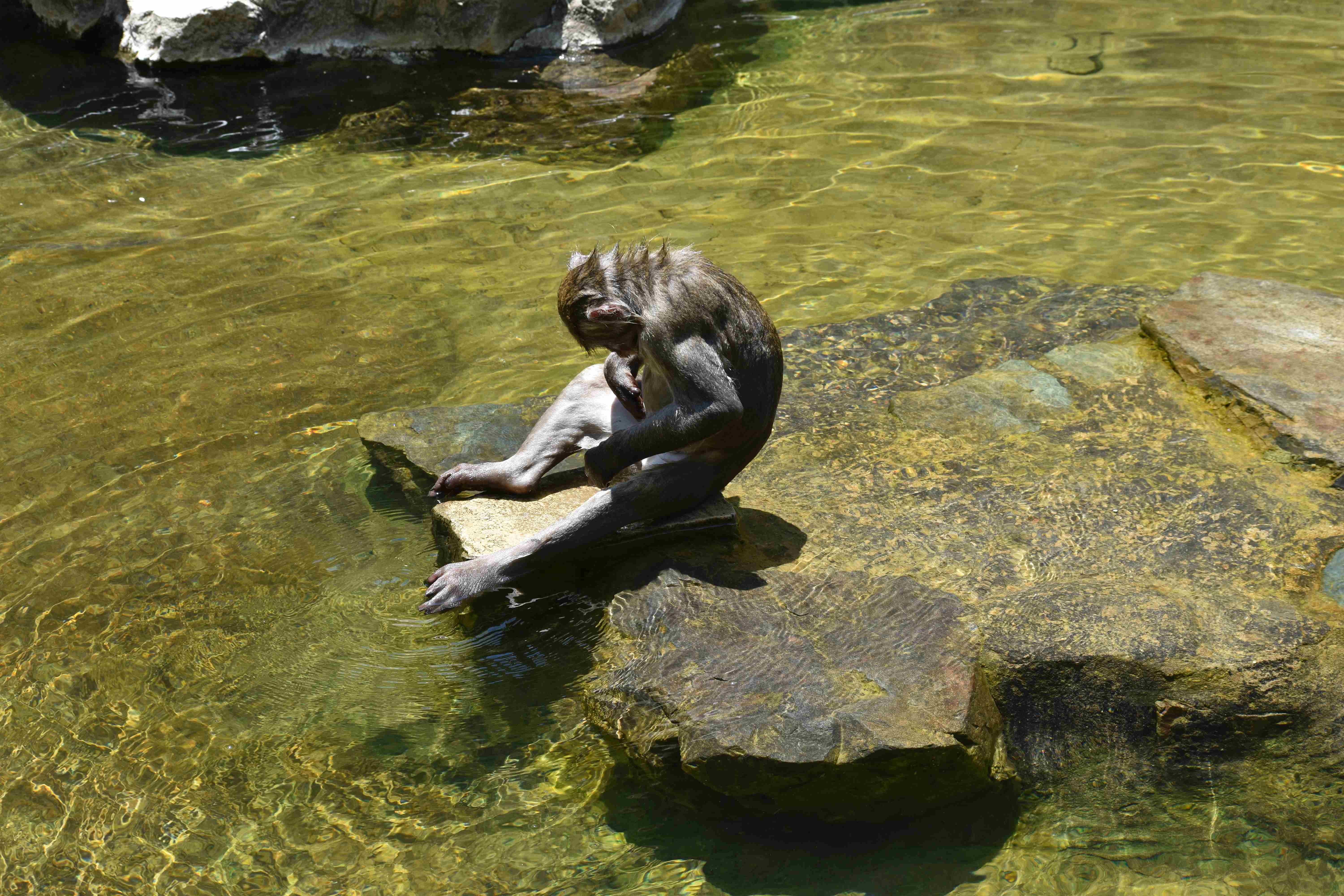 Am nächsten Tag war es wieder mal an der Zeit einen Tagesausflug zu unternehmen – also gingen wir zum sogenannten Snow Monkey-Park in der Nähe von Nagano. Der Park sollte vor allem im Winter sehenswert sein, da die sich in einem natürlichen Jacuzzi verwöhnenden Affen eine Seltenheit darstellen. Diese Affen leben in den Bergen und kommen in der kalten Jahreszeit jeden Morgen hinunter ins Tal um sich hier in den Thermal-Teichen aufzuwärmen – ein sog. Affenspa soll es sein. Nun ja, natürlichen waren wir wieder mal zur falschen Zeit am richtigen Ort – die Affen konnten wir aber trotzdem sehen. Leider mieden sie nun eher das Wasser, da ihnen darin bei dieser Hitze eher ein Kreislauf-Kollaps drohte. 🙂 Eine gute alte Bekanntschaft sahen wir dafür – unerwartererweise – dort. Hmmmm, möchtest du Cristine einen Affen schenken oder war es dein Zwillingsbruder Reto? 🙂 Auf dem Rückweg machten wir – trotz der von der Hitze verursachten Trägheit – doch noch in Nagano halt und sahen uns das gemütliche – für japanische Verhältnisse – kleine, für uns jedoch grosse Städtchen an. Hier einige Bilder davon: