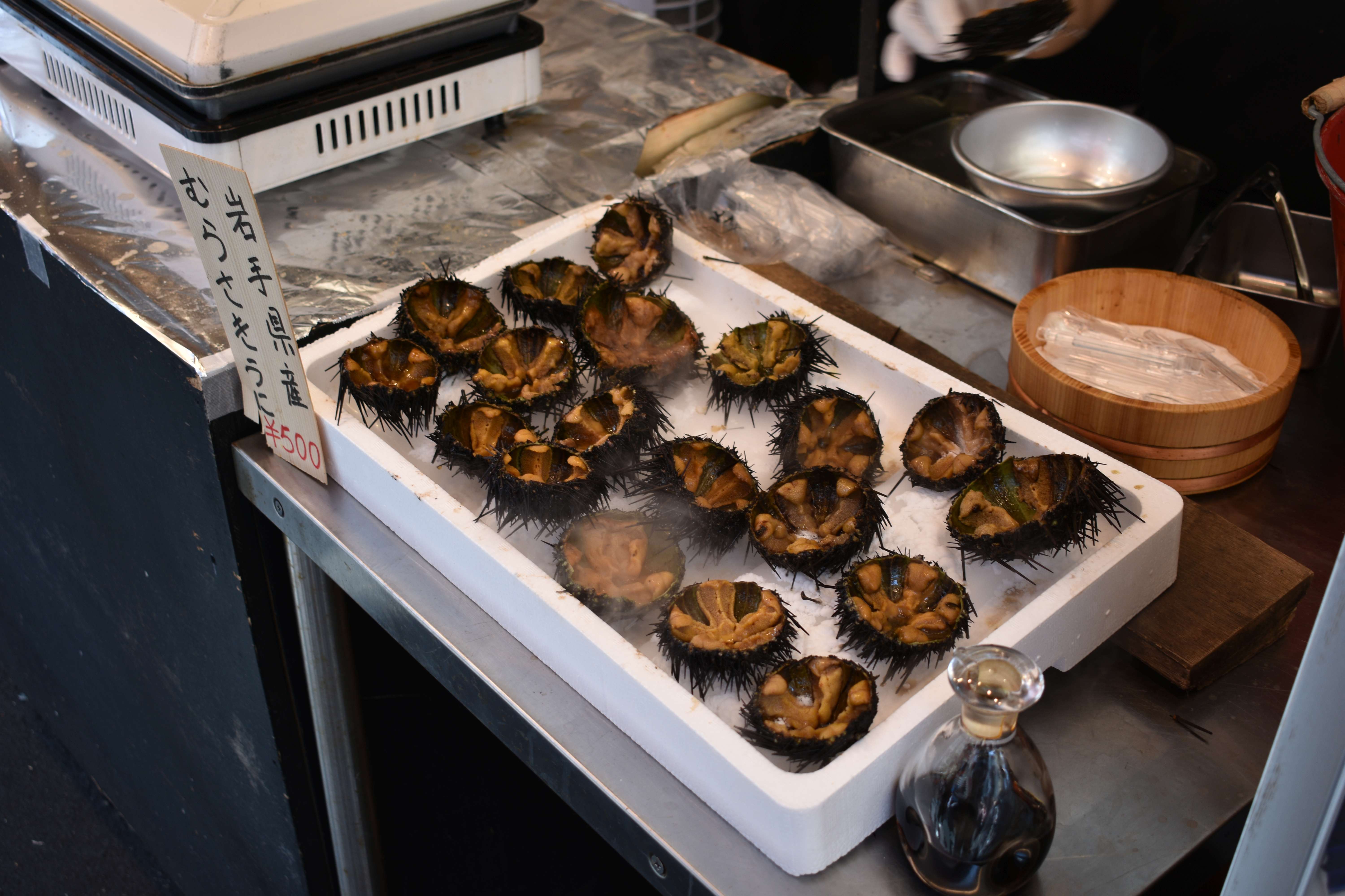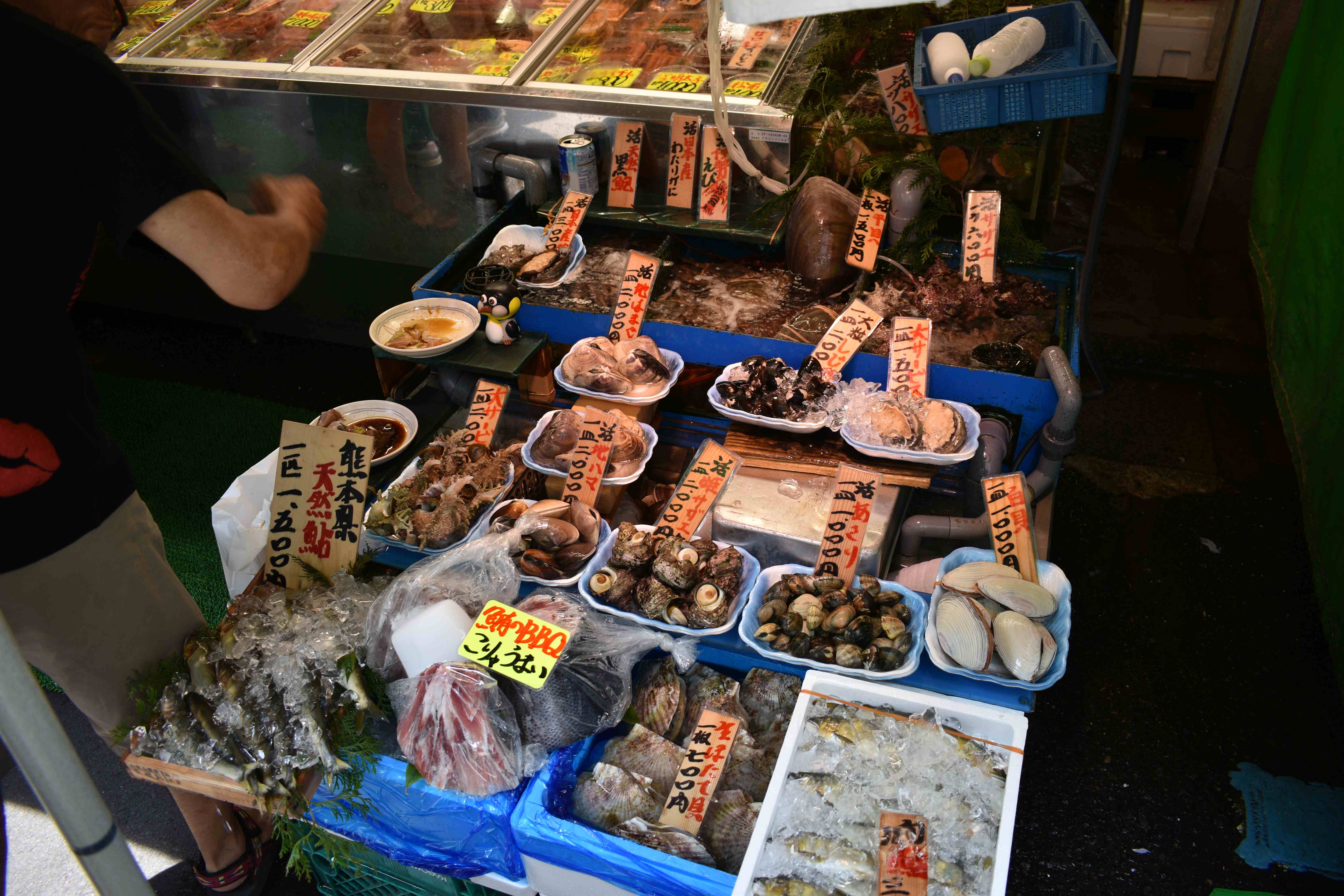 Abgesehen vom üblichen Gastgeberwechsel standen noch der Besuch einiger „verrückten“ und kitschigen Einkaufsstrassen und des – wieder mal hochgepriesenen – Hello Kitty Bahnhofes auf unserem Programm. Dieser soll – laut online Beschreibungen – völlig in den Händen der Comic-Figuren sein. An diesem angekommen erblickt man lediglich eine bunte Deckenbemalung und 2 vereinzelte, einfach zu übersehene Figürchen, welche die Fahrplan-Anzeigen schmücken – ansonsten ist es ein ganz normaler Bahnhof. Enttäuschungsfaktor unendlich! 🙁 Da kann nicht einmal der sehr grosse Fischmarkt mit den leckeren Austern das wiedergutmachen! 🙁