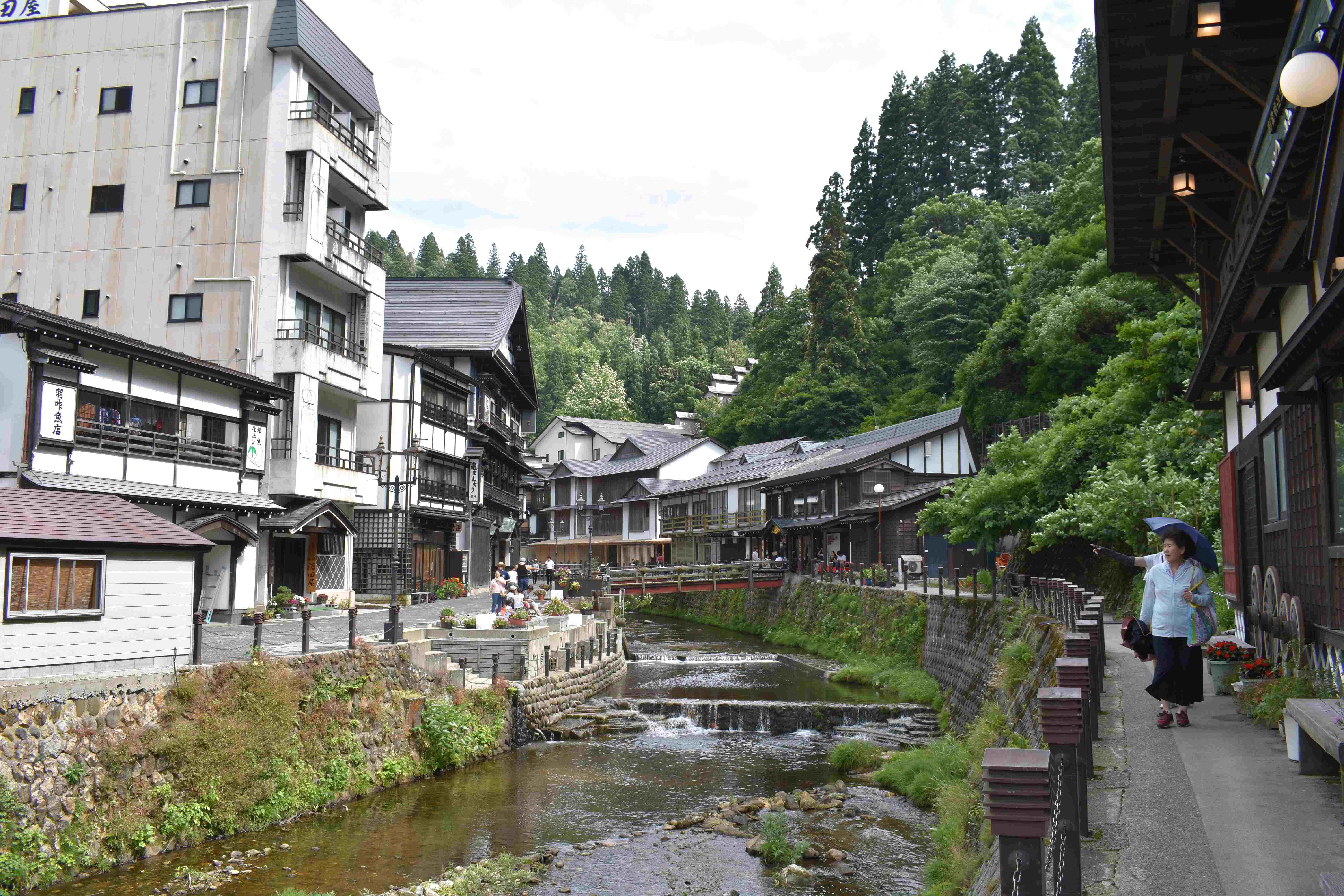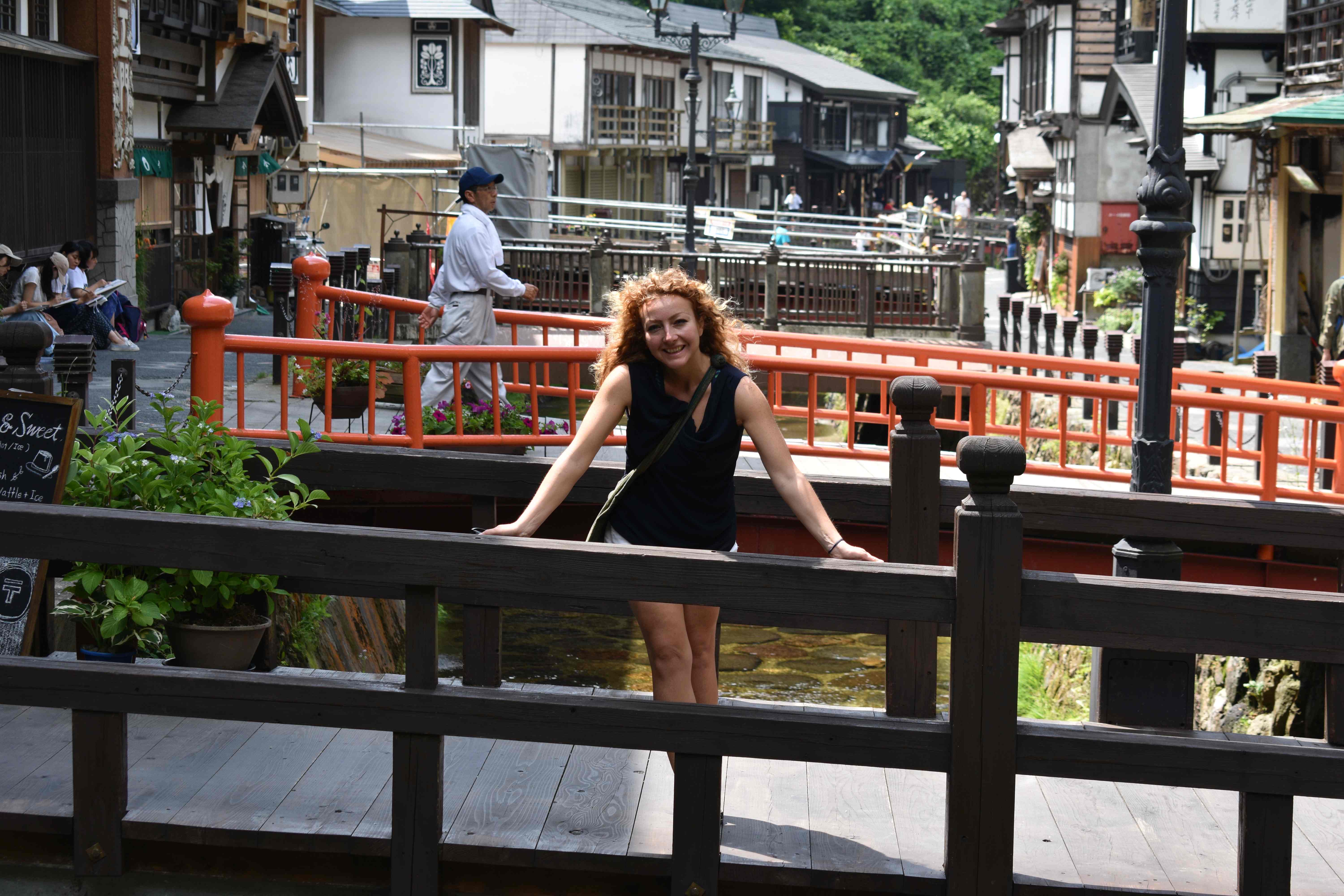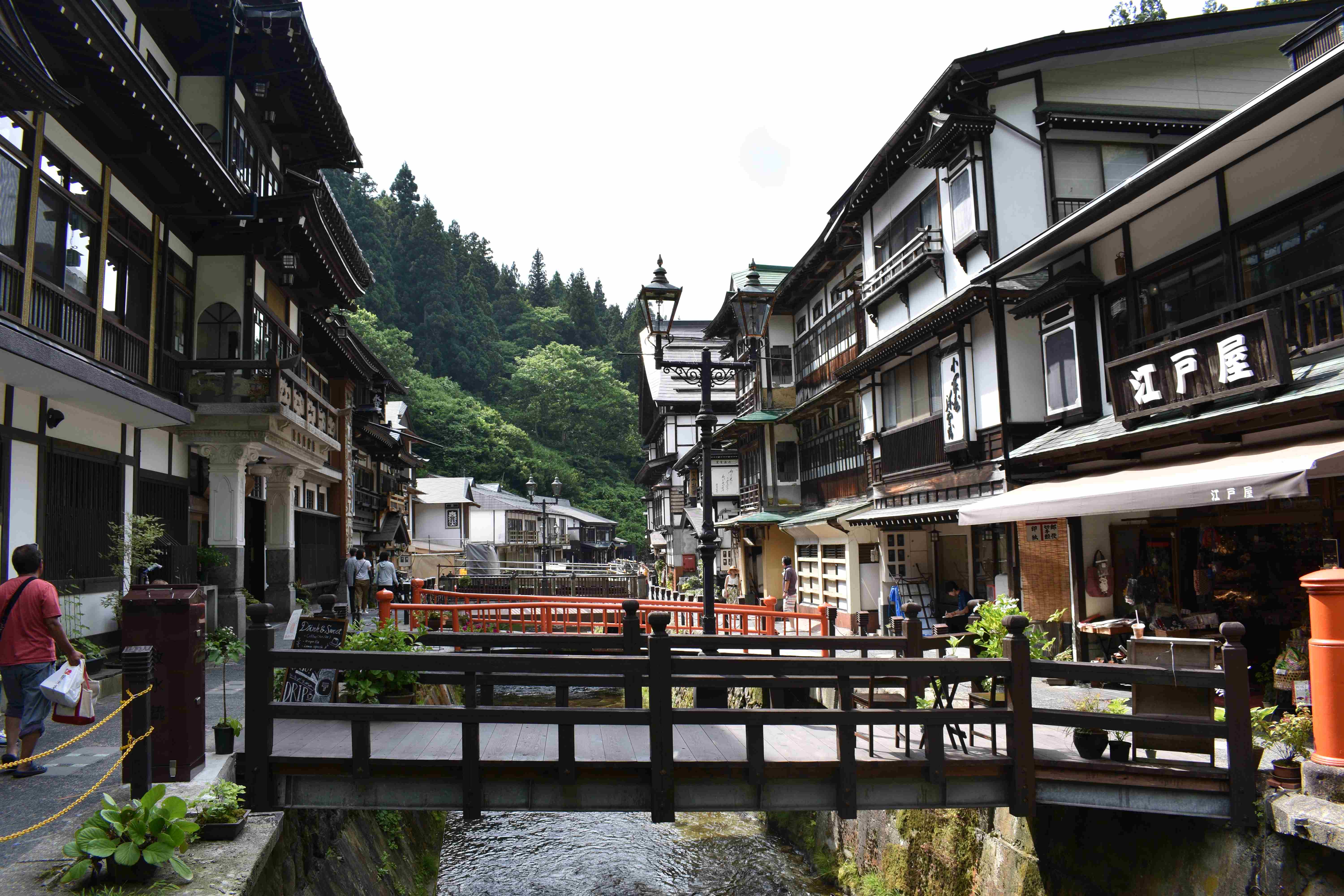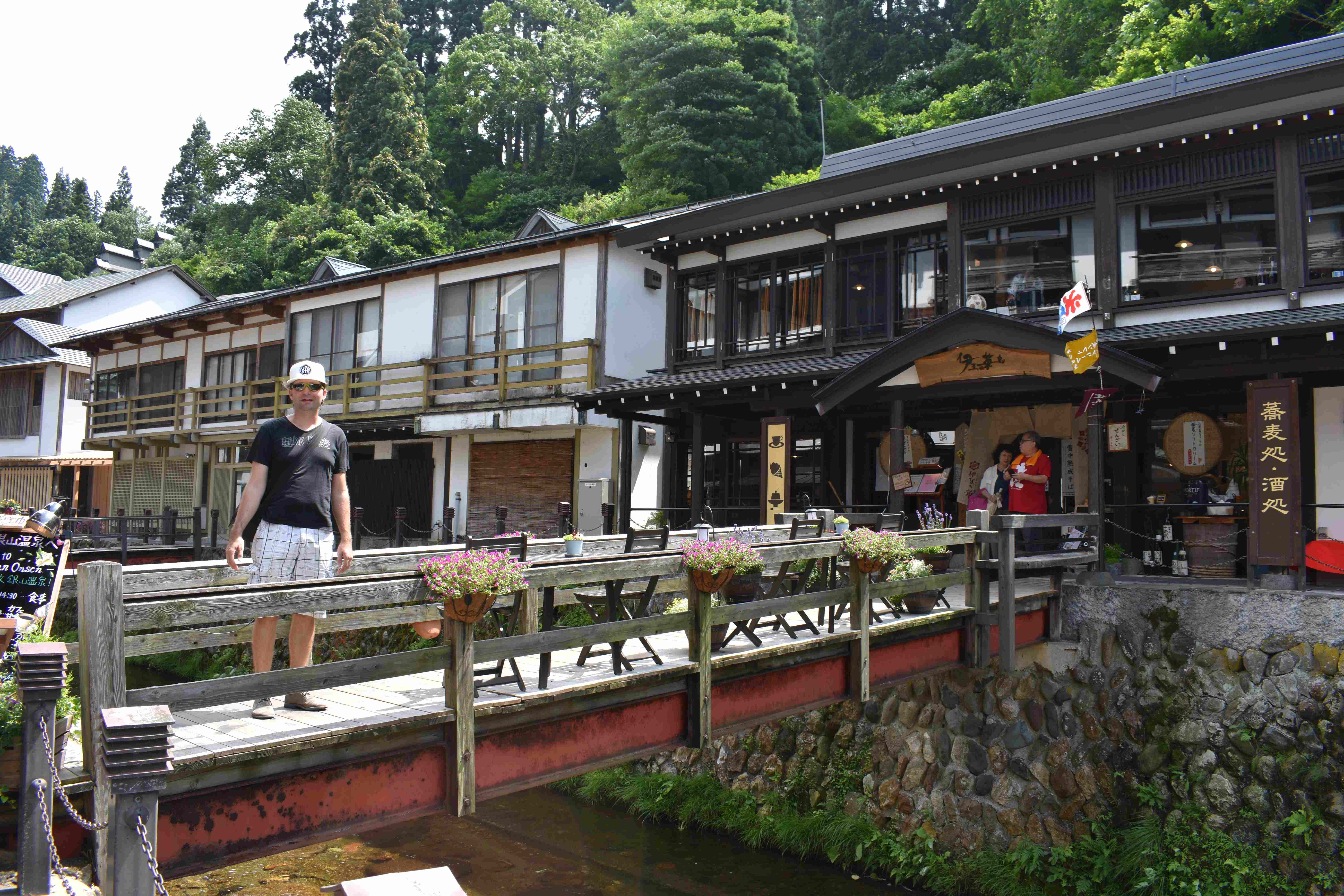 Insa inapoi la intentia noastra: excursia lunga de o zi. Avand in vedere ca pana acum vazuseram doar orase si zone urbane, acum am avut chef sa cunoastem un pic si latura mai de la tara si mai bogata in natura a Japoniei. De aceea ne-am decis sa mergem la Ginzan Onsen. Acesta este un loc idilic, cunoscut in special precum satuc balnear foarte frecventat pe timp de iarna. Aici inca se poate respira un pic de aer cu iz de Japonie veche si admira arhitectura in alte locuri de mult pierduta. Si ce sa vezi: exact cand renuntasesi deja la orice speranta iti taie calea Robocop iesit la plimbare! 🙂