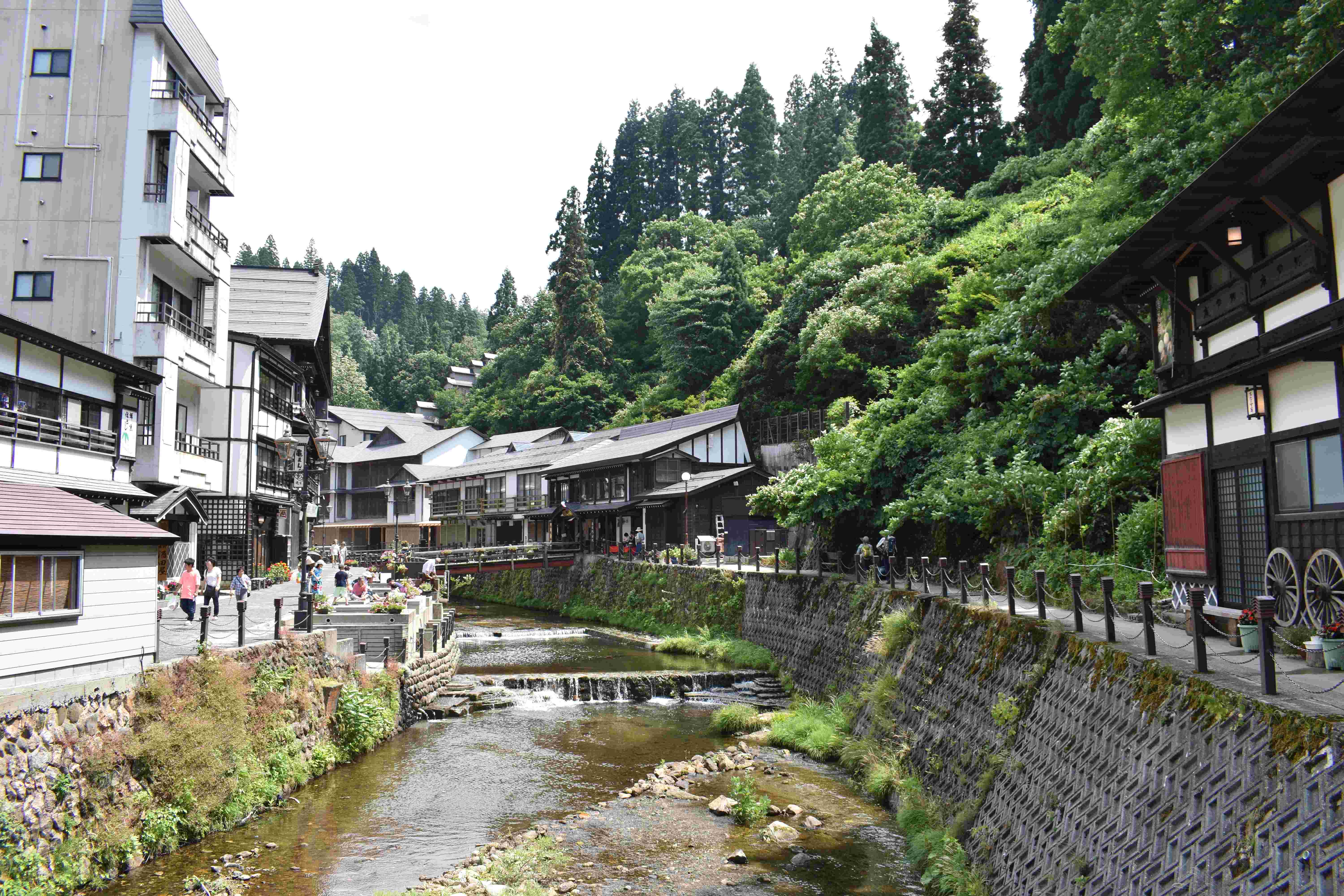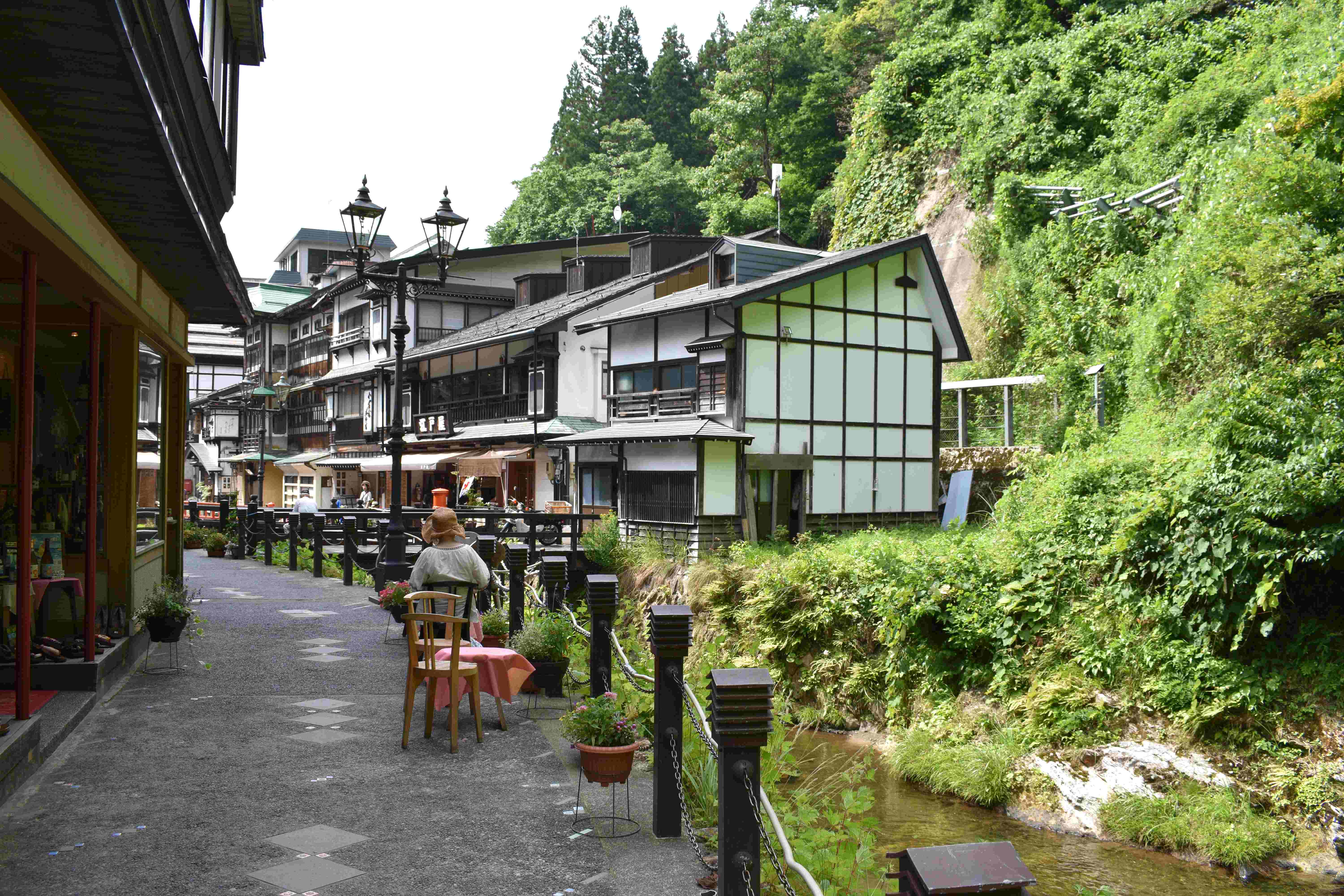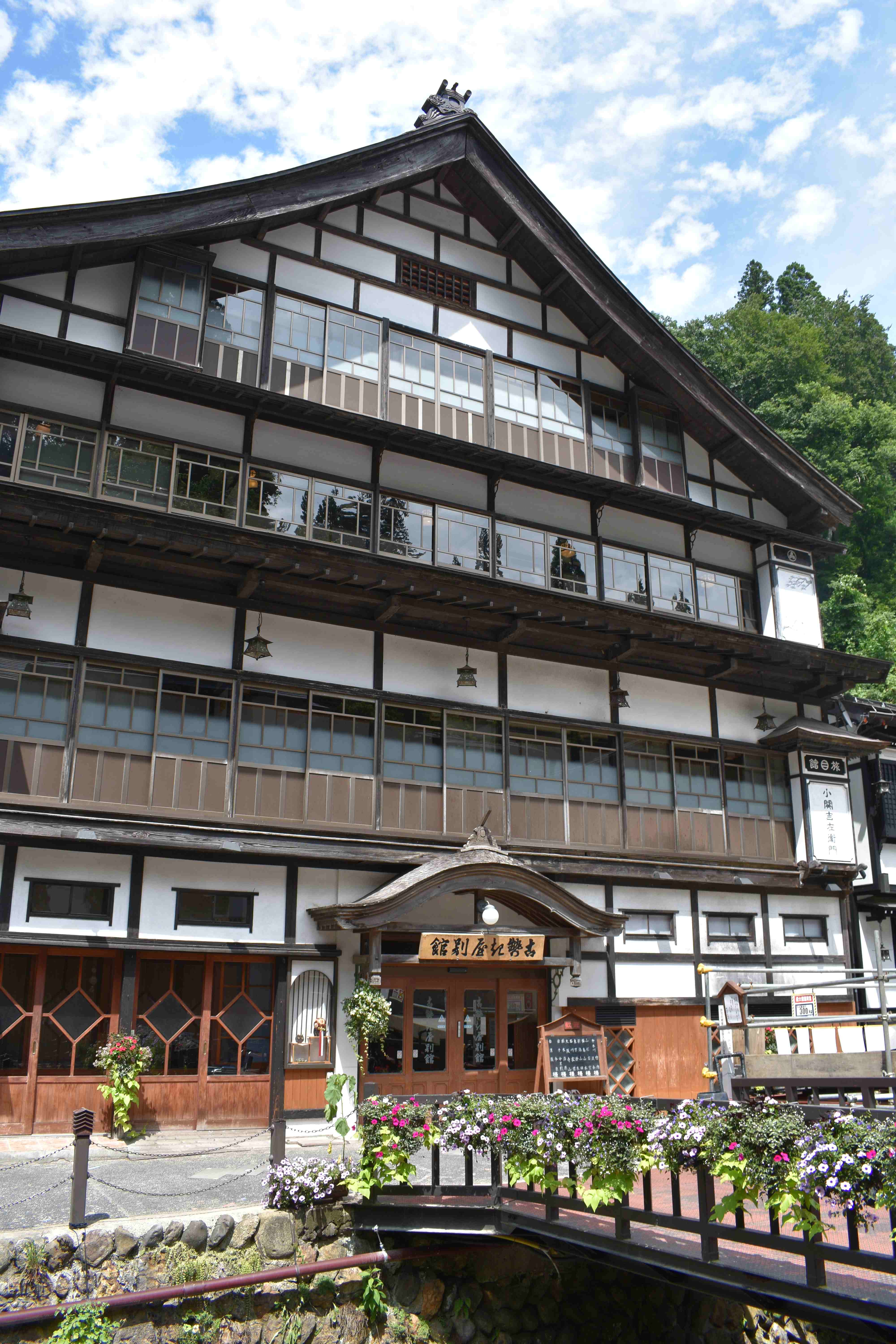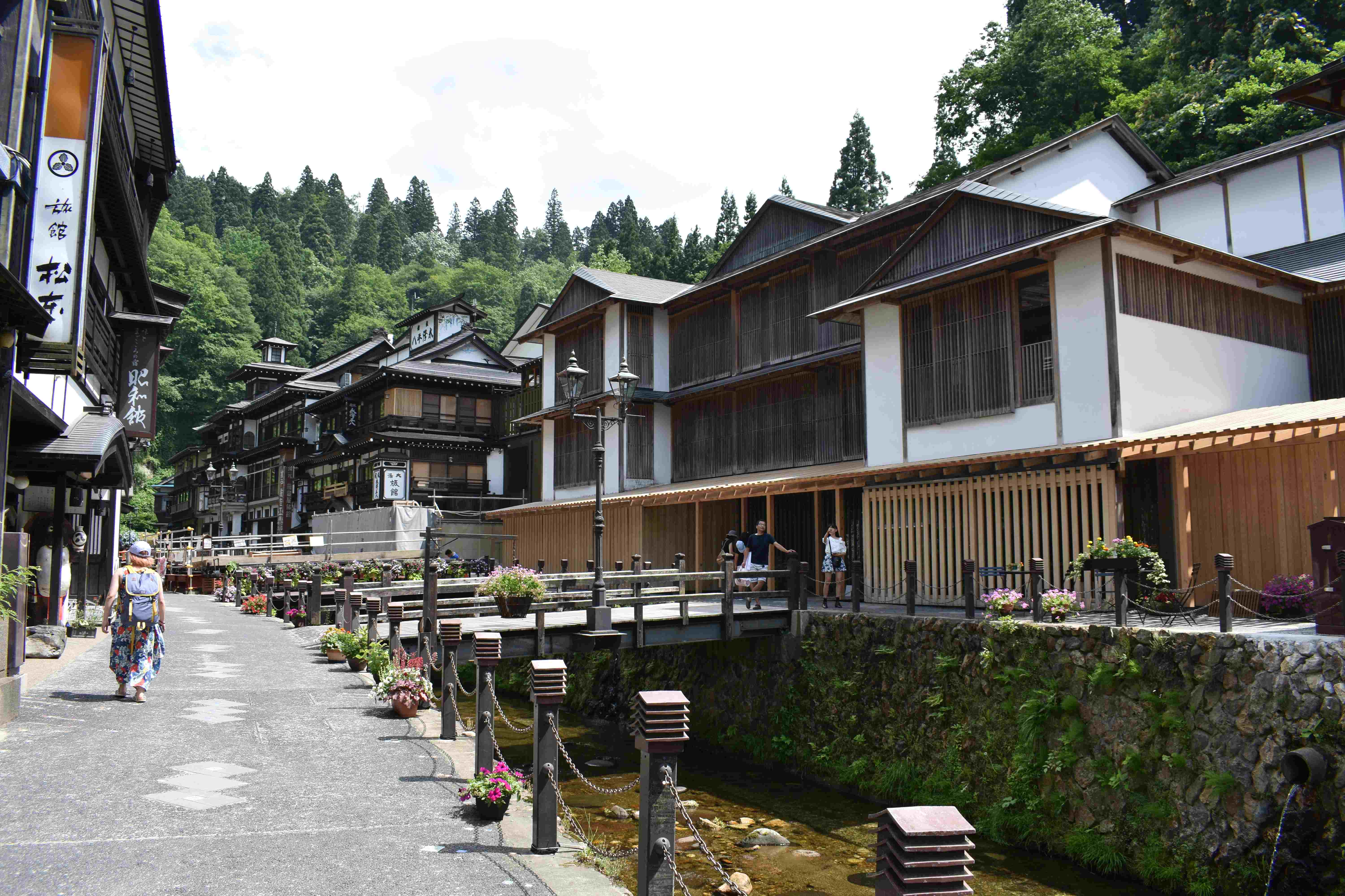 Insa inapoi la intentia noastra: excursia lunga de o zi. Avand in vedere ca pana acum vazuseram doar orase si zone urbane, acum am avut chef sa cunoastem un pic si latura mai de la tara si mai bogata in natura a Japoniei. De aceea ne-am decis sa mergem la Ginzan Onsen. Acesta este un loc idilic, cunoscut in special precum satuc balnear foarte frecventat pe timp de iarna. Aici inca se poate respira un pic de aer cu iz de Japonie veche si admira arhitectura in alte locuri de mult pierduta. Si ce sa vezi: exact cand renuntasesi deja la orice speranta iti taie calea Robocop iesit la plimbare! 🙂