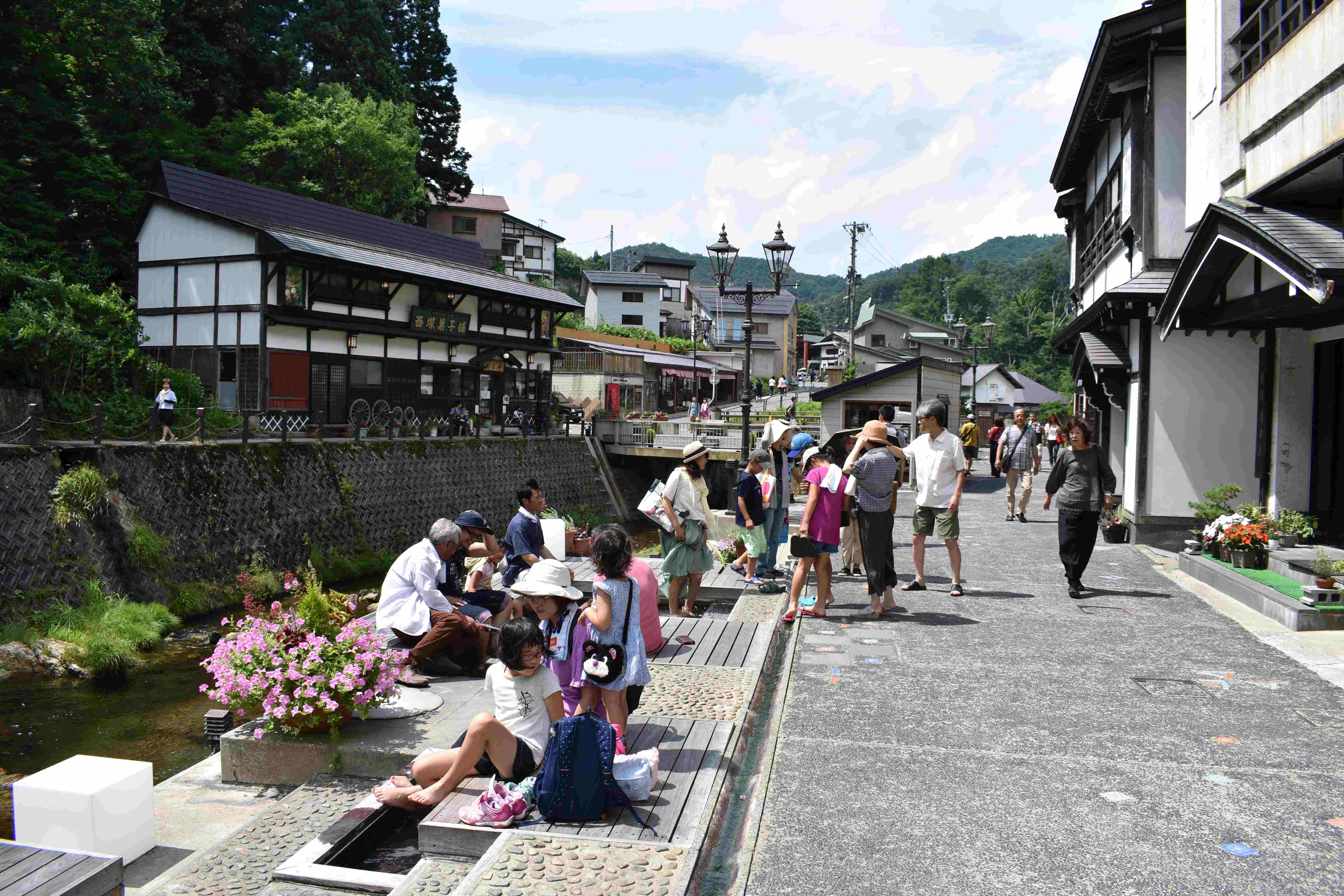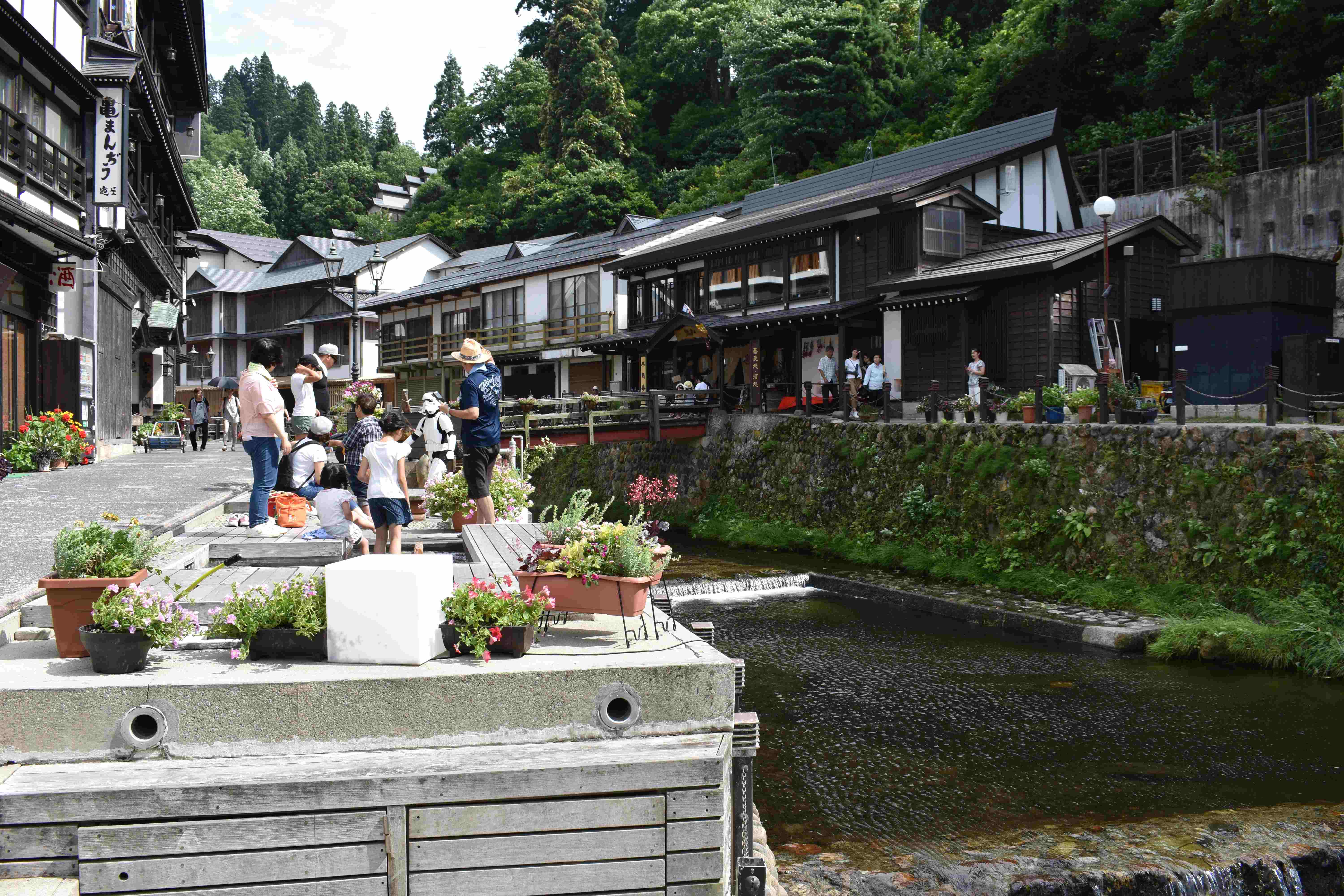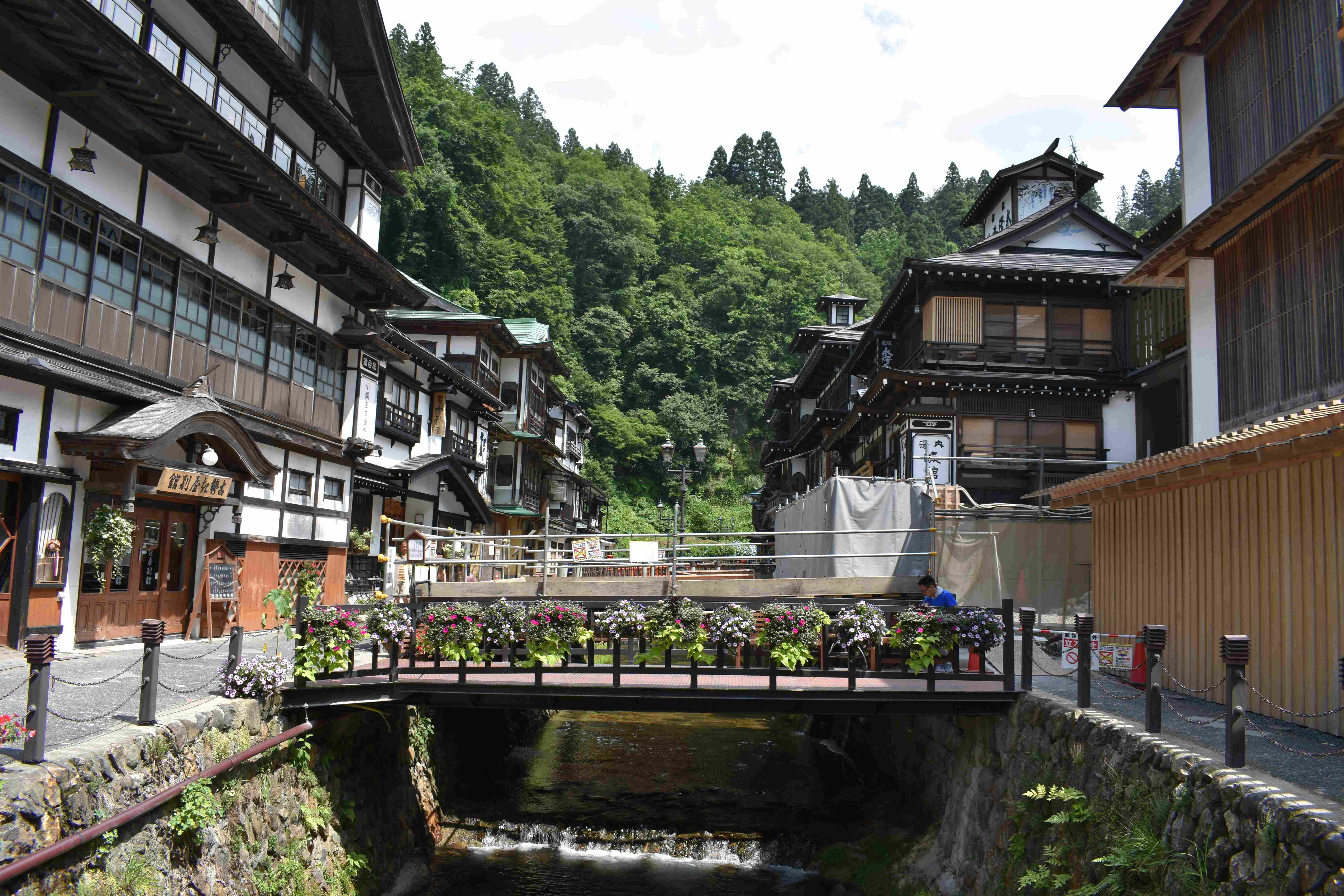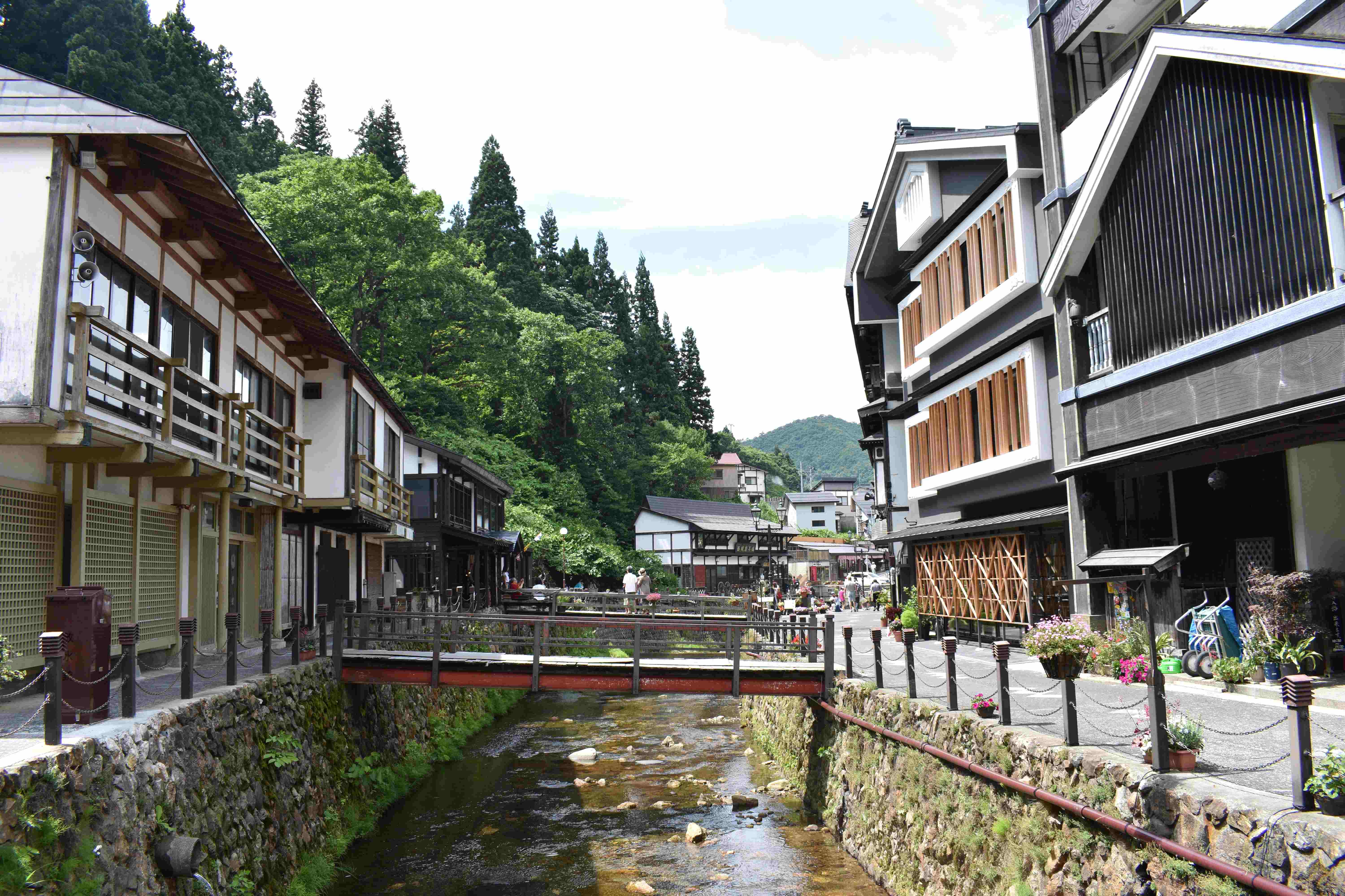 Insa inapoi la intentia noastra: excursia lunga de o zi. Avand in vedere ca pana acum vazuseram doar orase si zone urbane, acum am avut chef sa cunoastem un pic si latura mai de la tara si mai bogata in natura a Japoniei. De aceea ne-am decis sa mergem la Ginzan Onsen. Acesta este un loc idilic, cunoscut in special precum satuc balnear foarte frecventat pe timp de iarna. Aici inca se poate respira un pic de aer cu iz de Japonie veche si admira arhitectura in alte locuri de mult pierduta. Si ce sa vezi: exact cand renuntasesi deja la orice speranta iti taie calea Robocop iesit la plimbare! 🙂